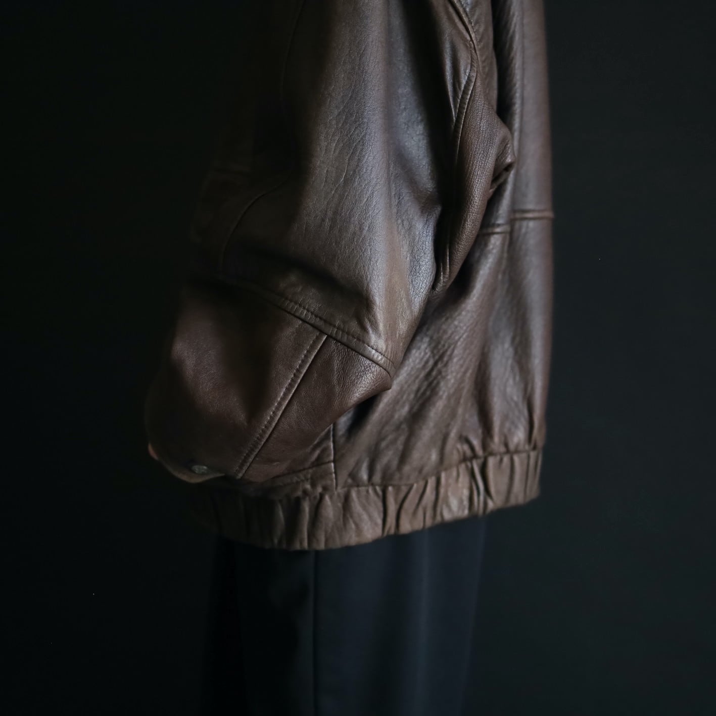 レザー着用時に気になりがちな肩周りのラインも,ラグラン仕様と柔軟なレザーで滑らかなシルエットに.