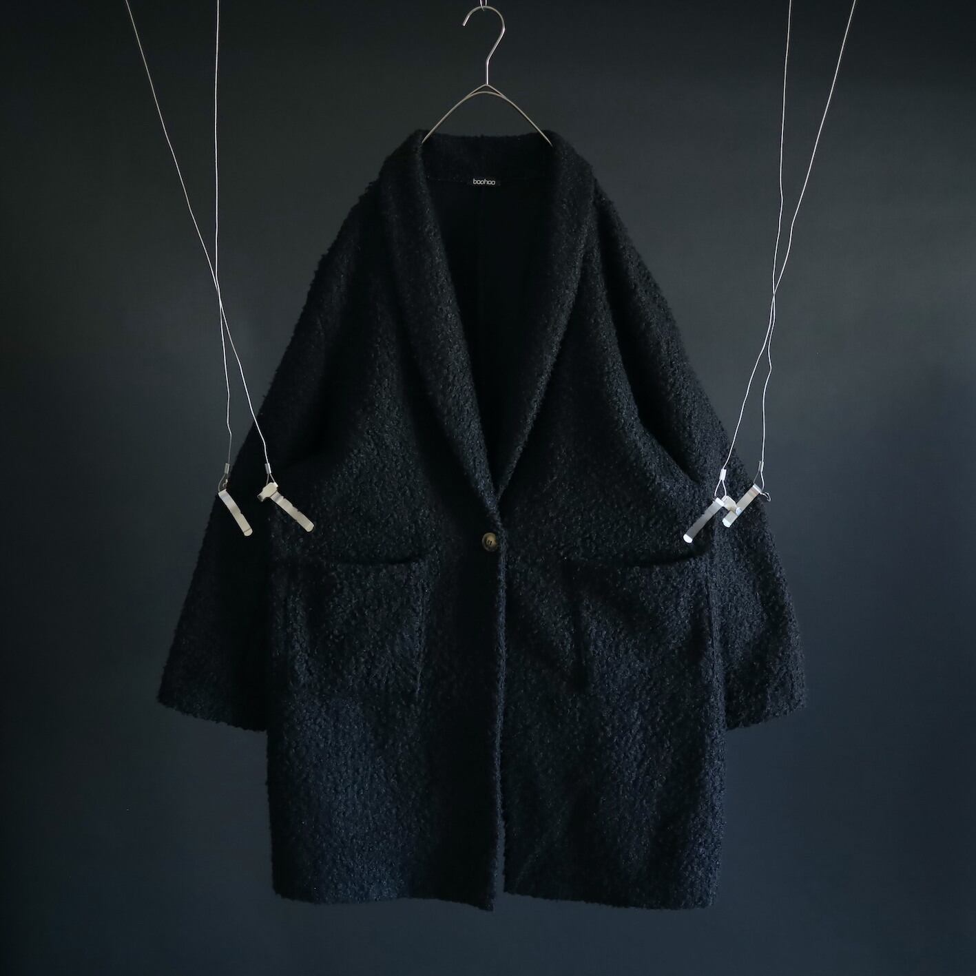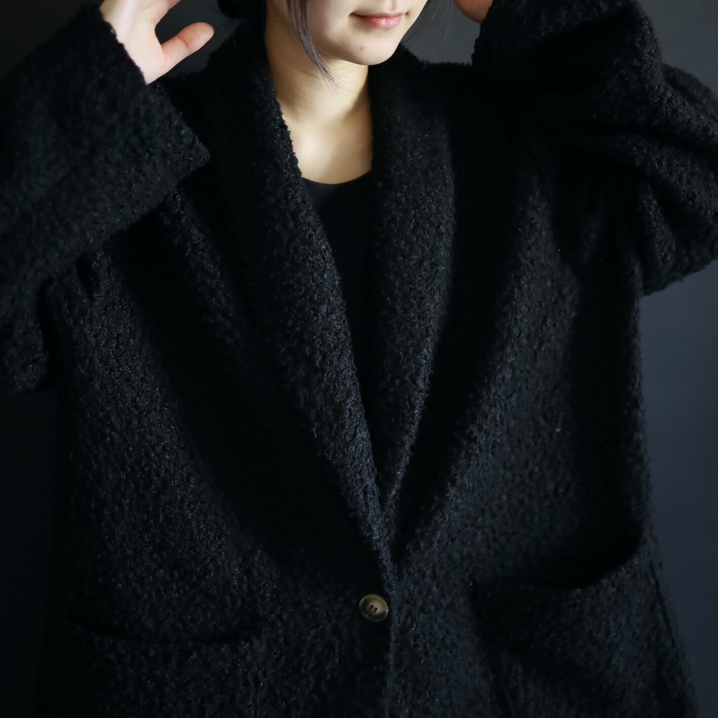 ゆったりロングシルエットの1ボタンボアジャケット.