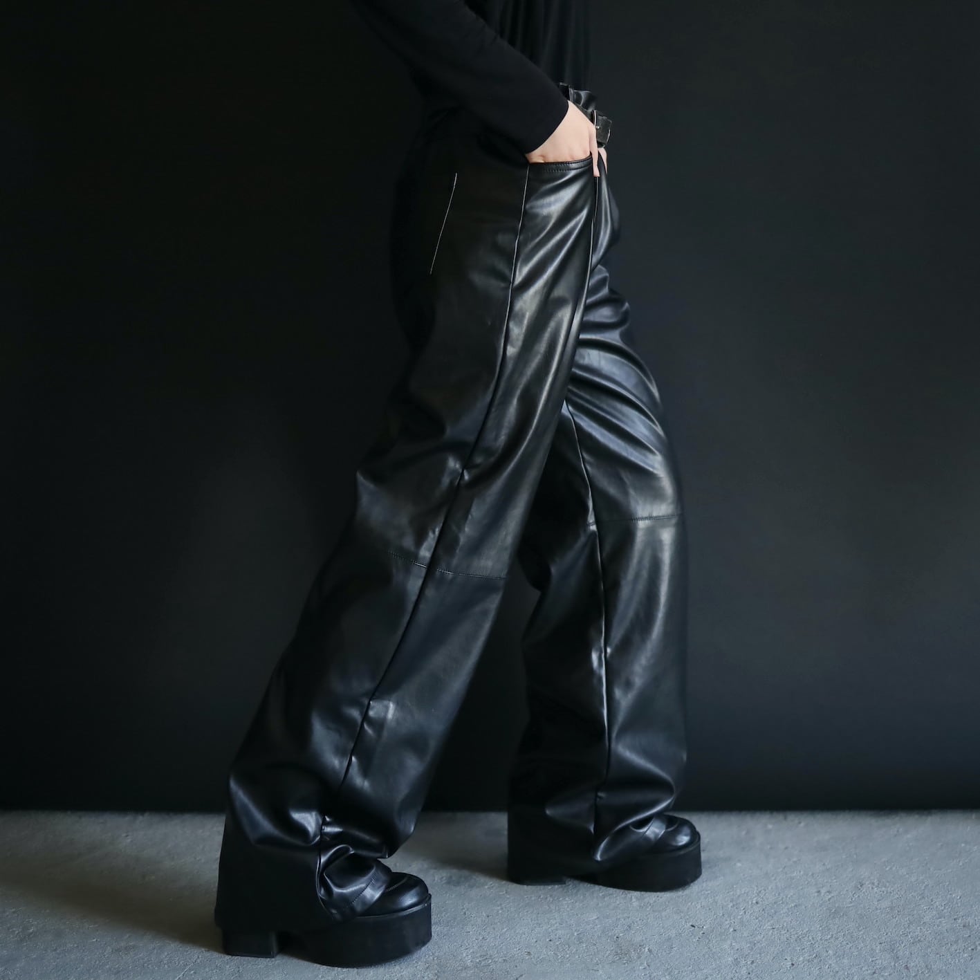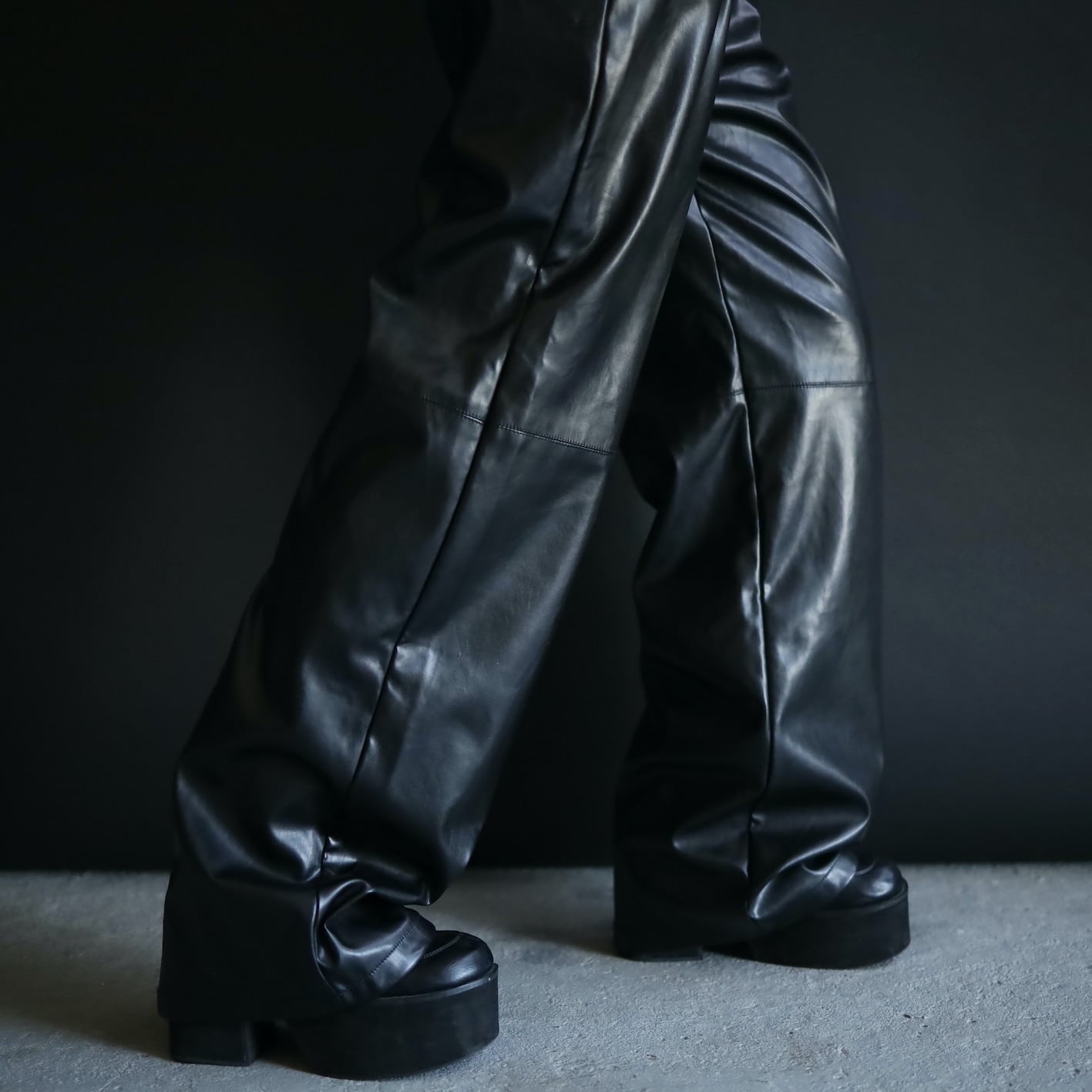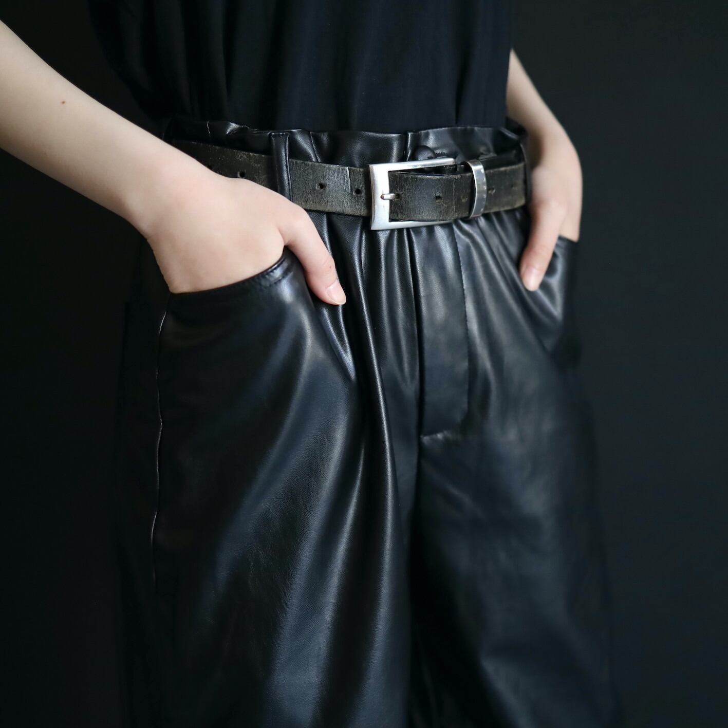 ワイドシルエットフェイクレザーパンツの入荷です.