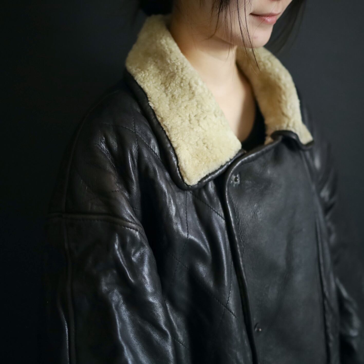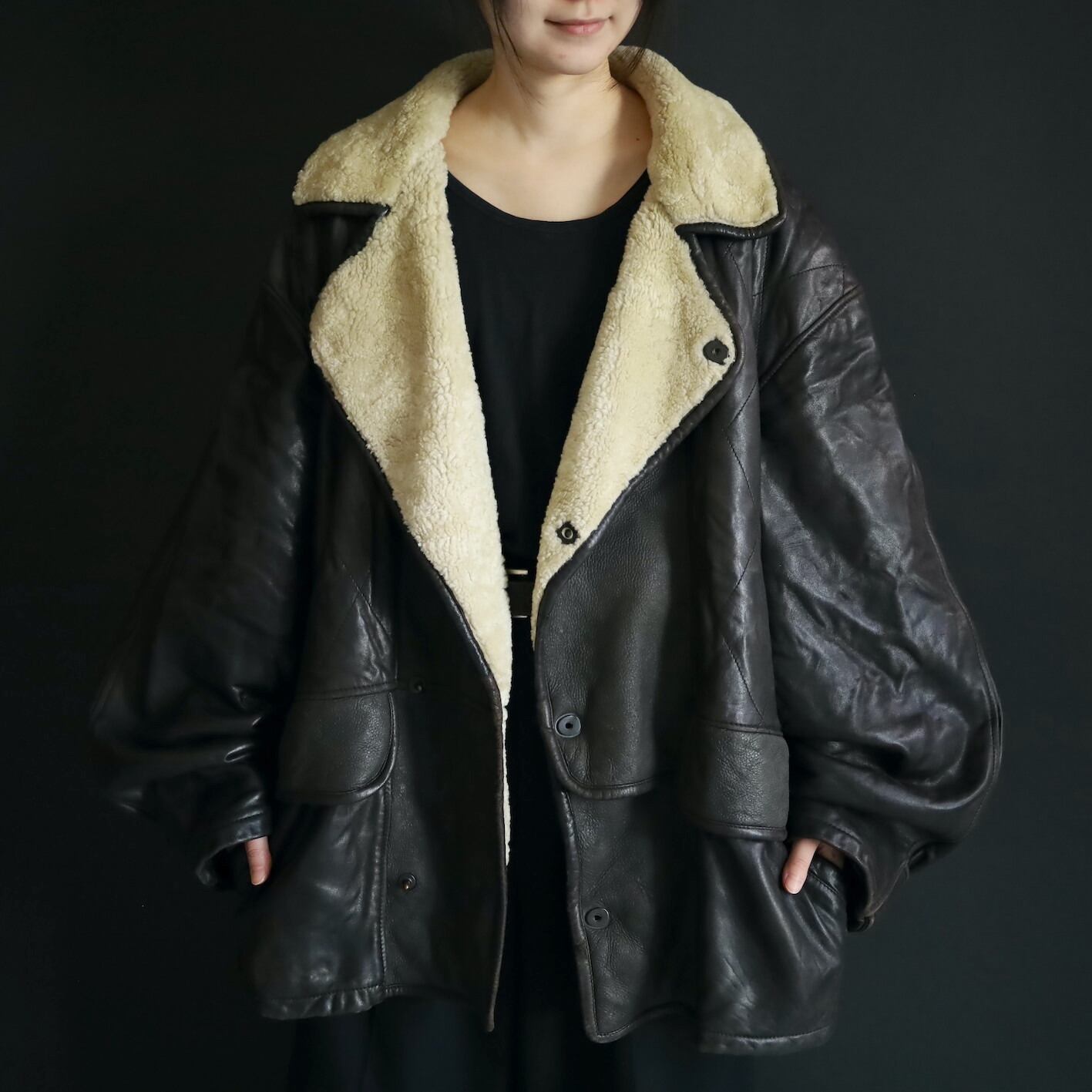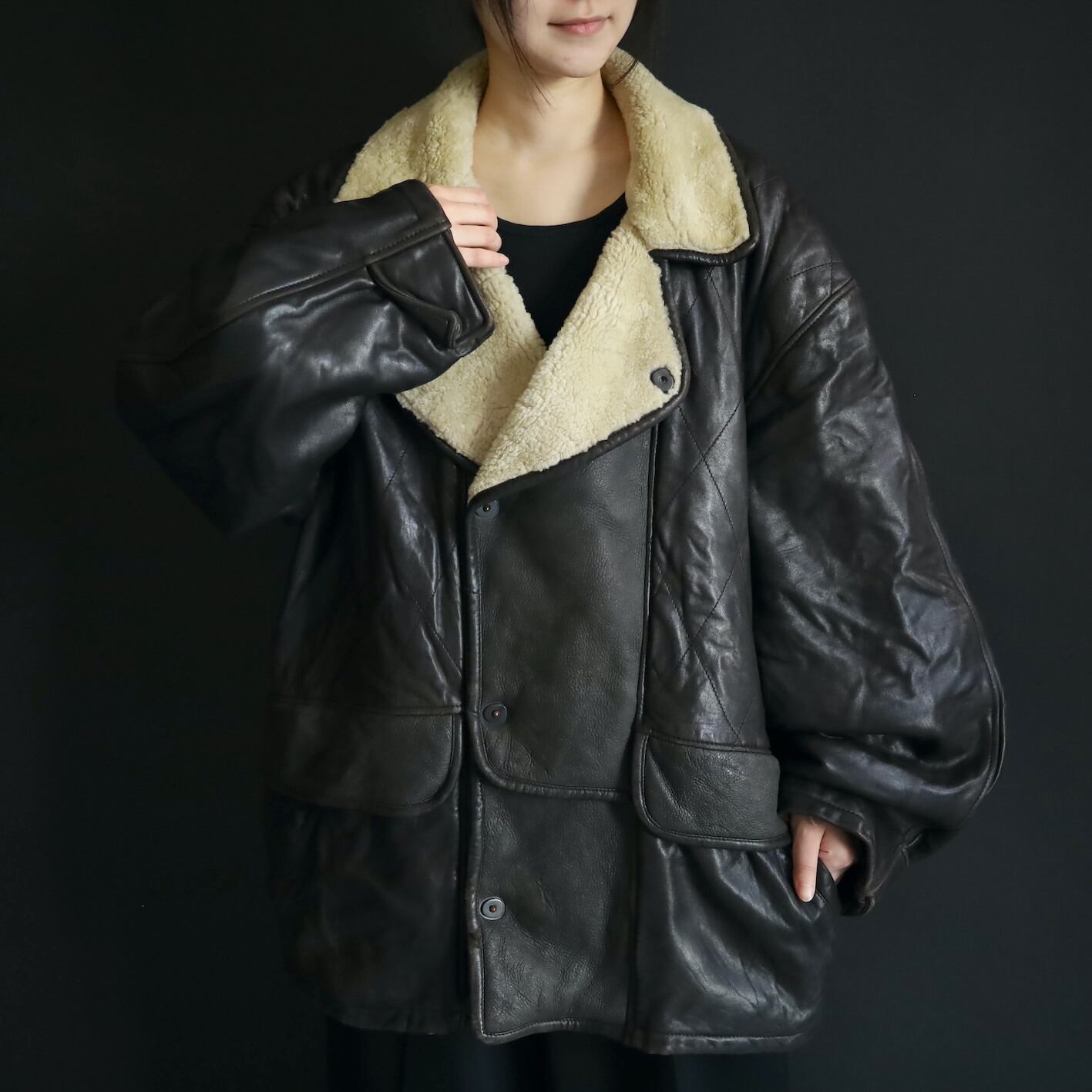 イタリー古着はシュッとしたものが多い印象ですが,こちらは身幅もアーム幅もたっぷりとしたゆとりでレイヤードコーデにも落とし込みやすい一枚.