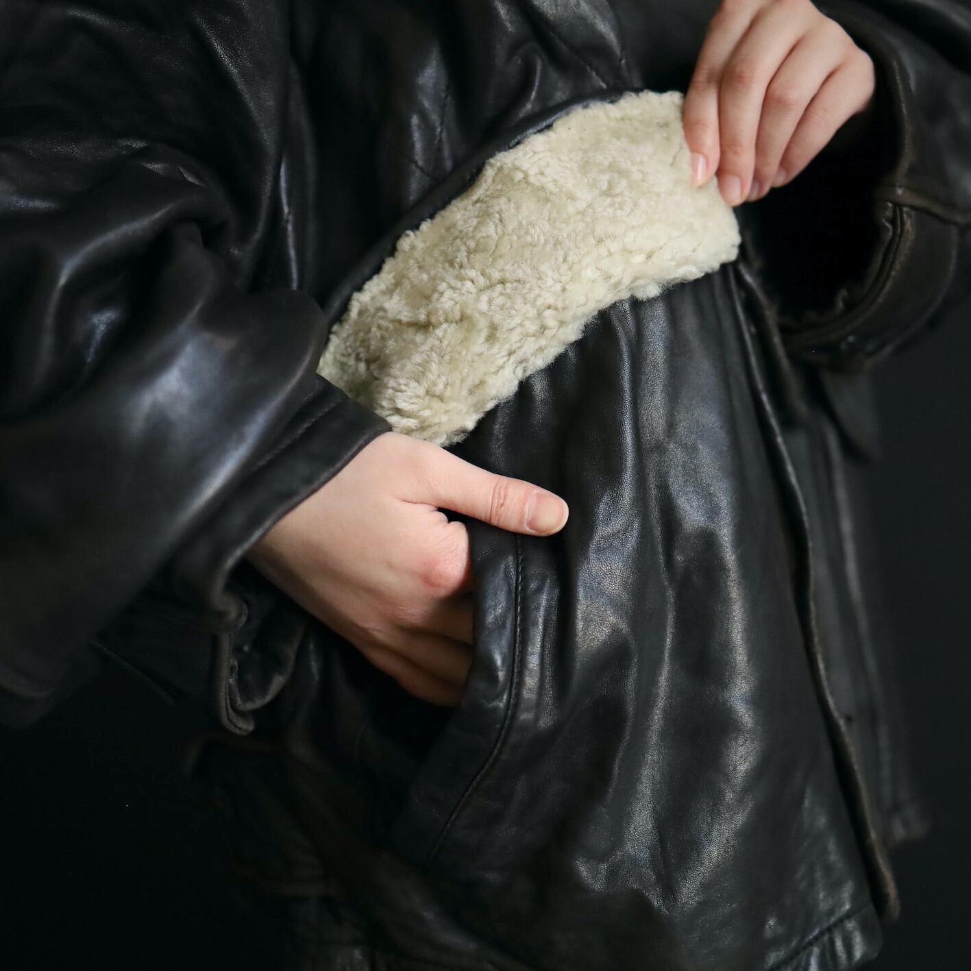 レザーは肉厚ながらもしっとりと柔らかく,この厚みでいて非常に着心地のよい仕上がり.