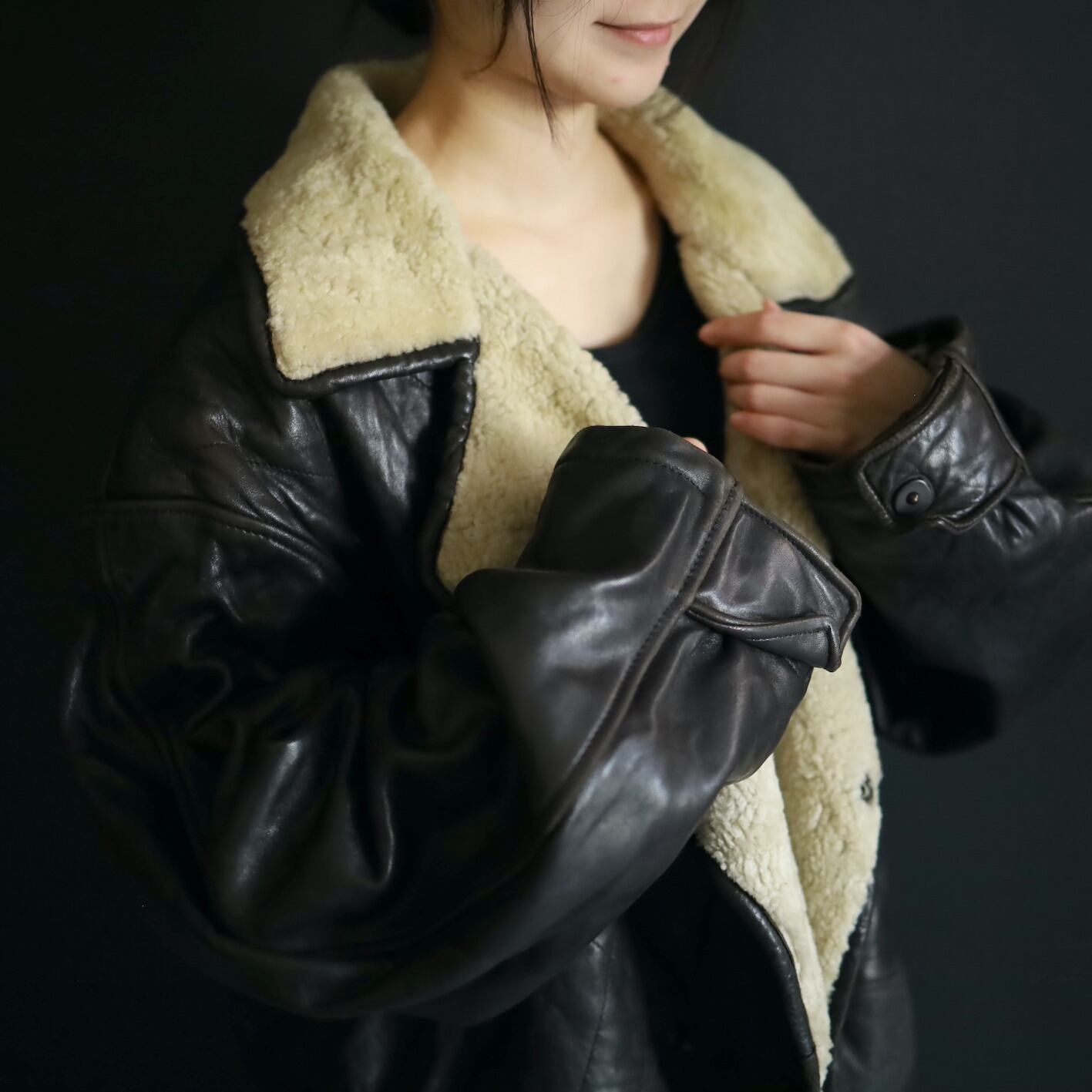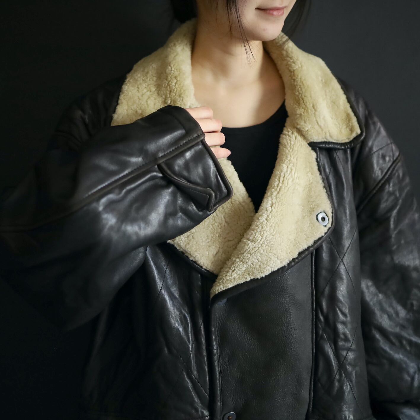 ボタン止める位置によって表に出るボアの面積が変わり,同時に表情も変えてお楽しみいただけます.