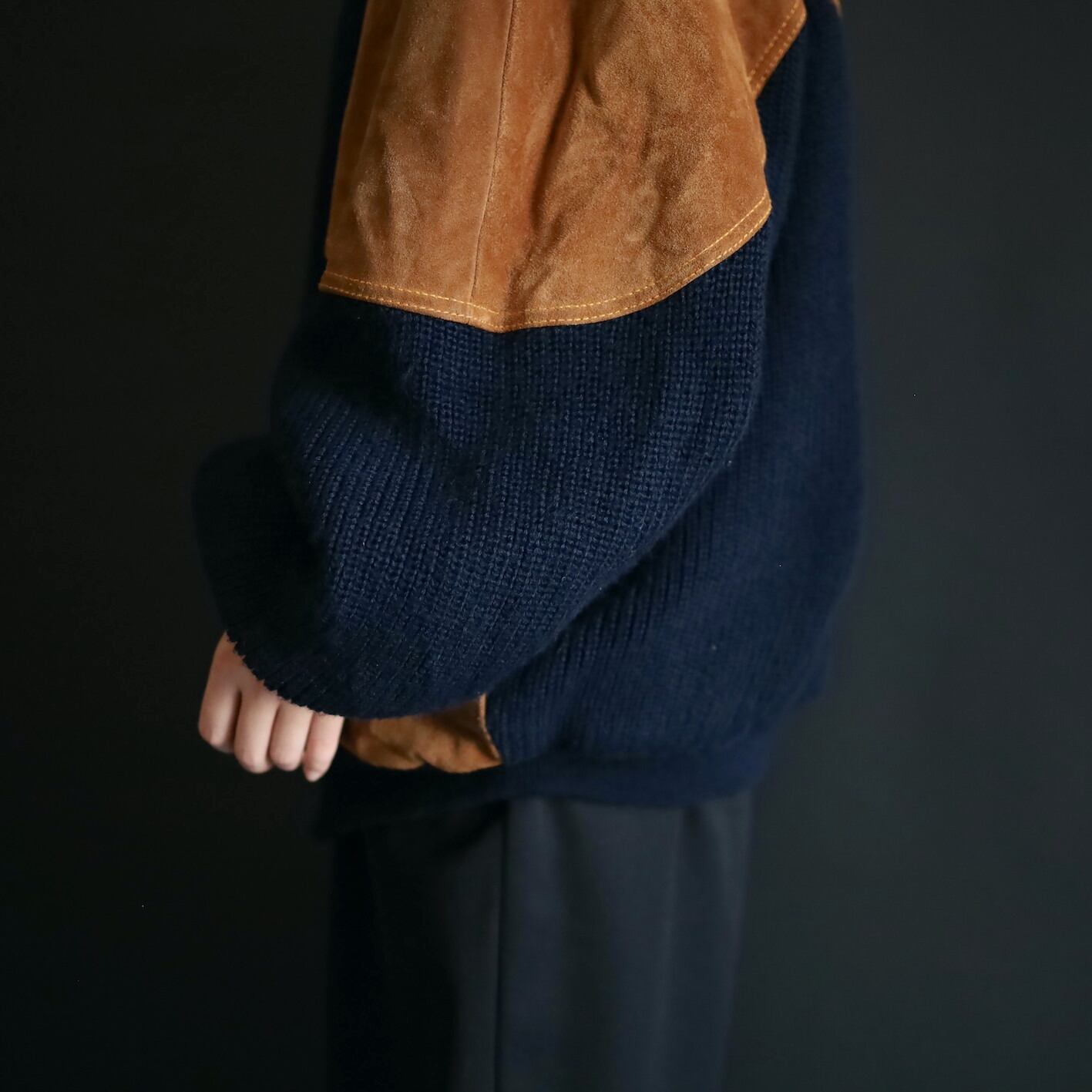 しっとり肉厚なスエードレザー,同様に肉厚でふわっとしたニット生地.