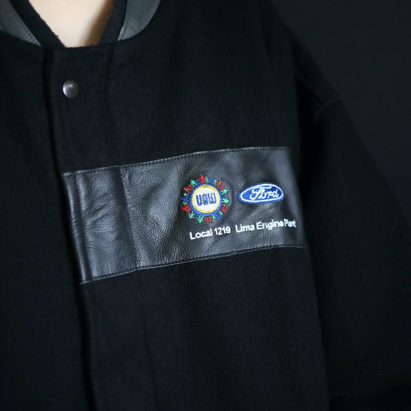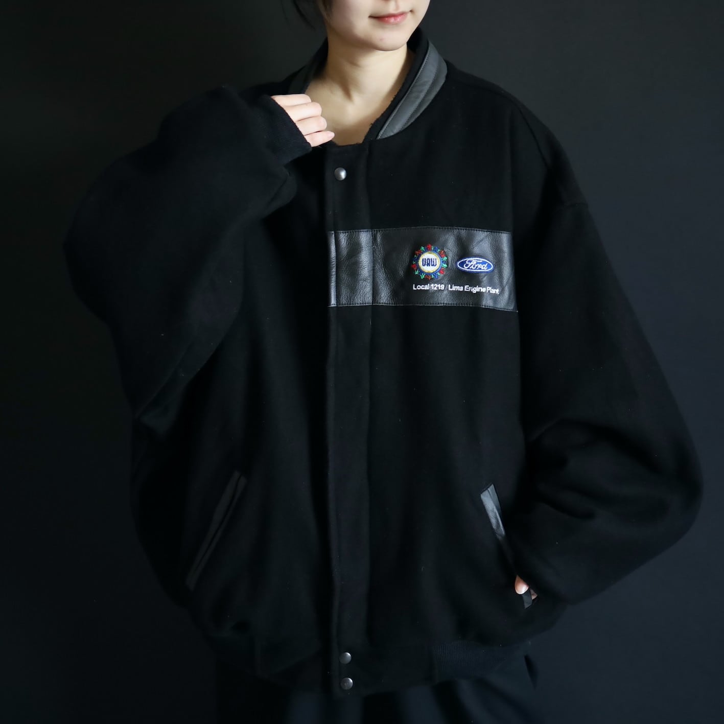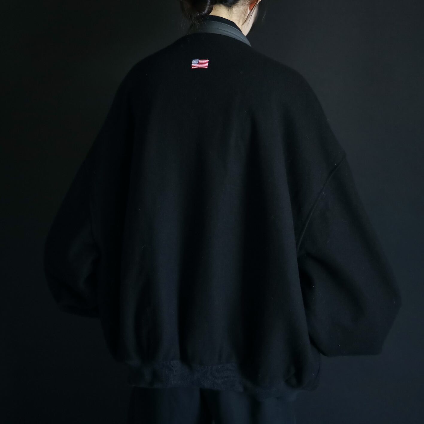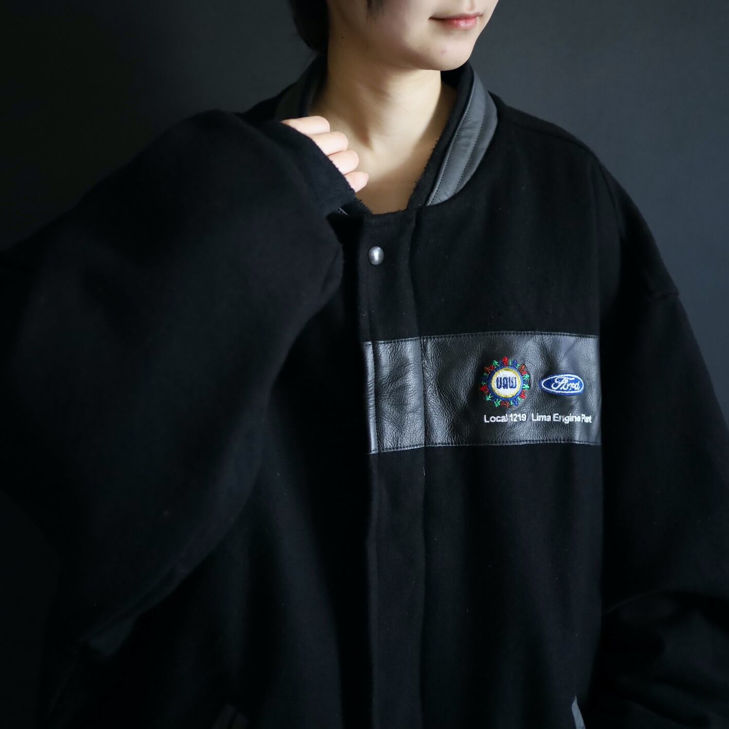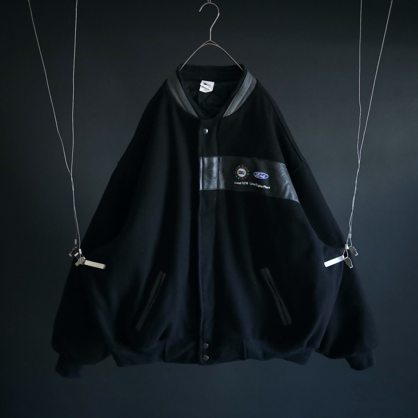 ブラックカラーのウールボディをベースに,左胸部のみレザーのワンポイント切替.