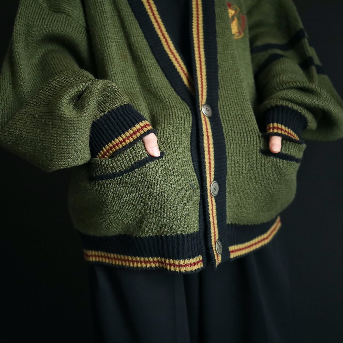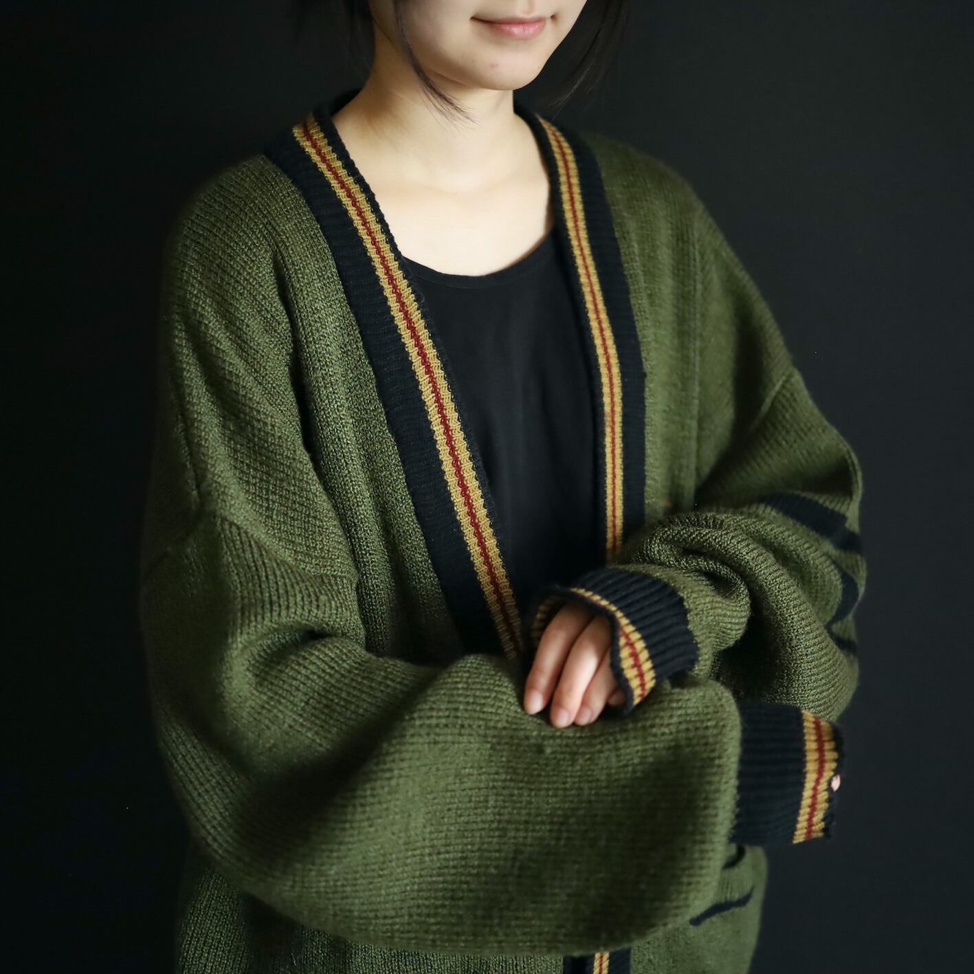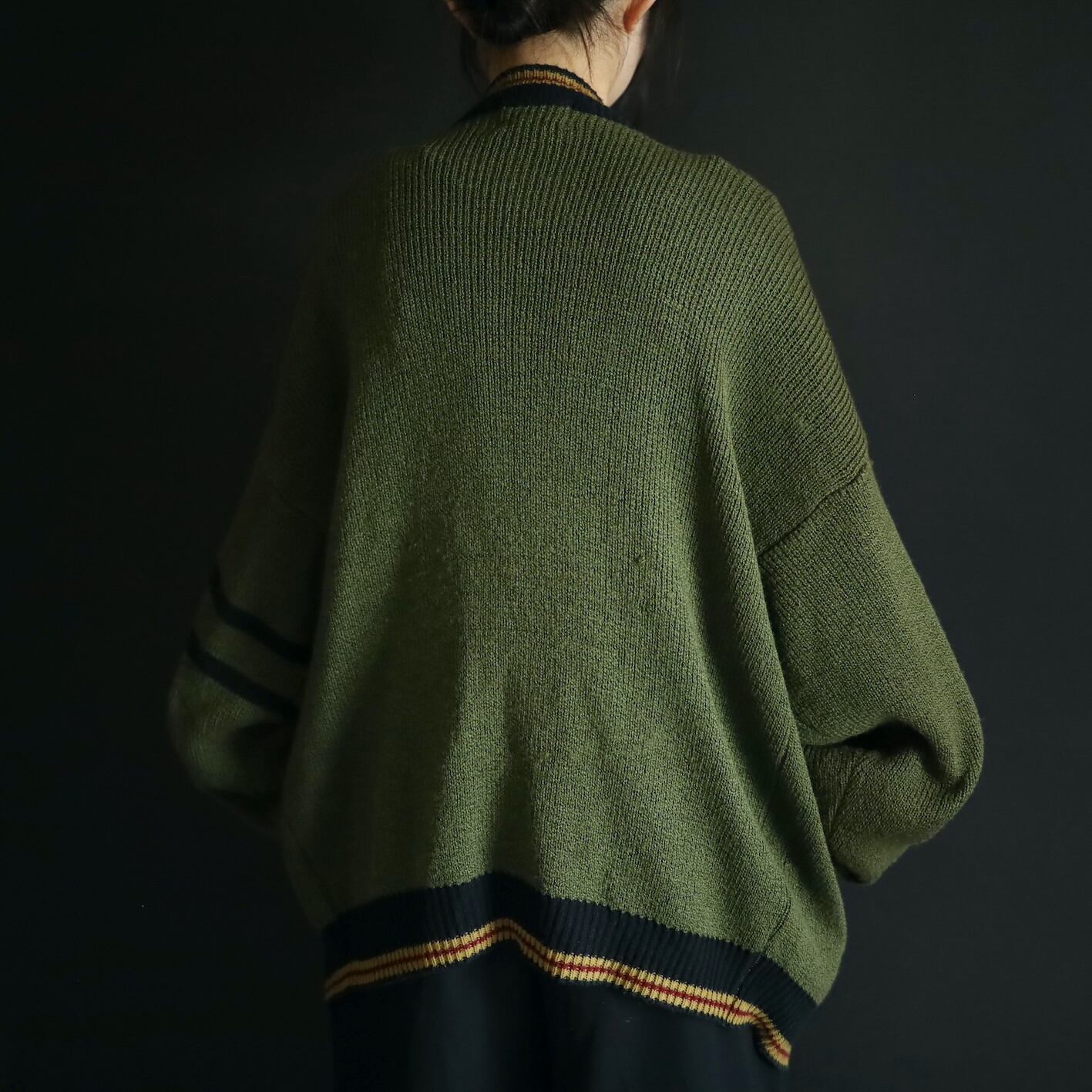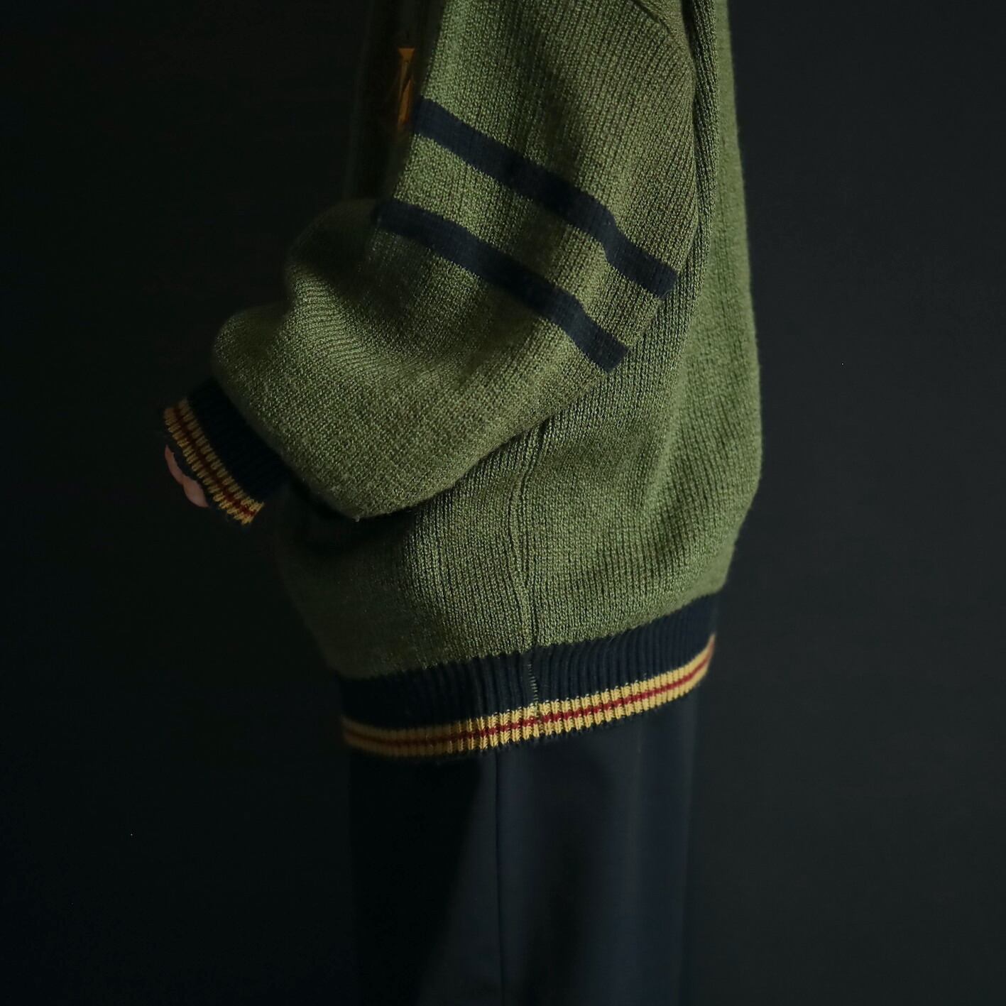 綺麗なカーキカラーのボディをベースに,ワインレッド,ネイビー,マスタードカラーのライン切替.