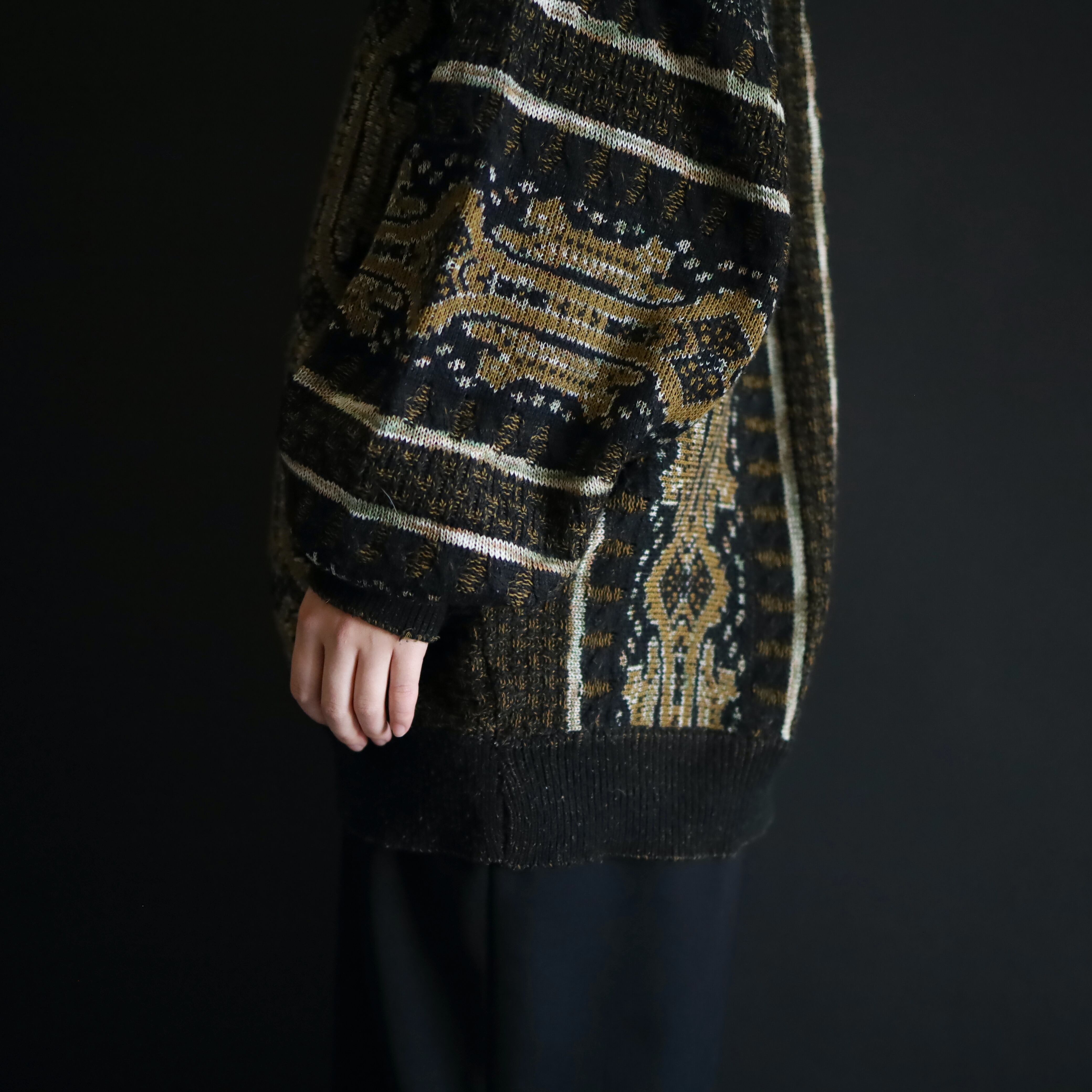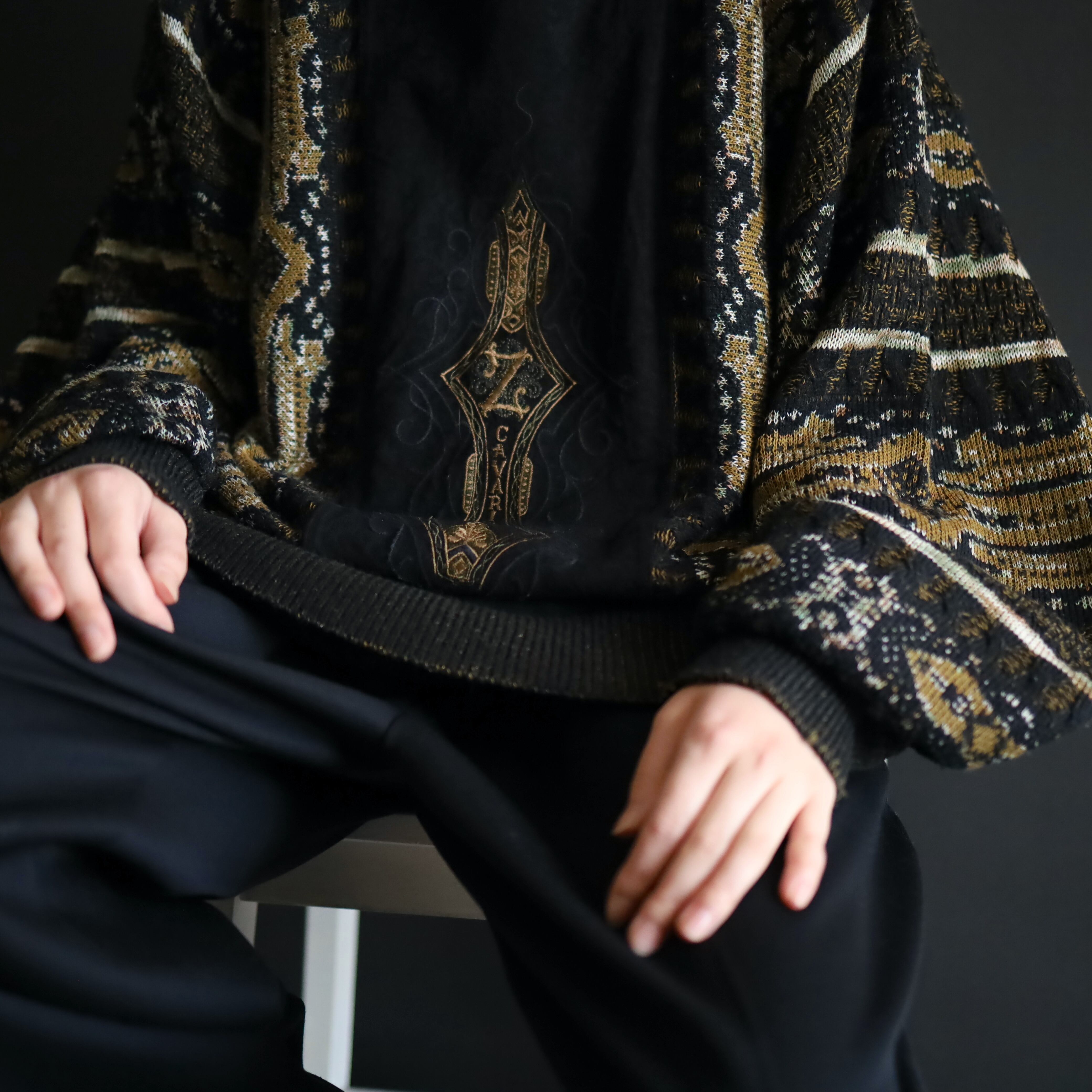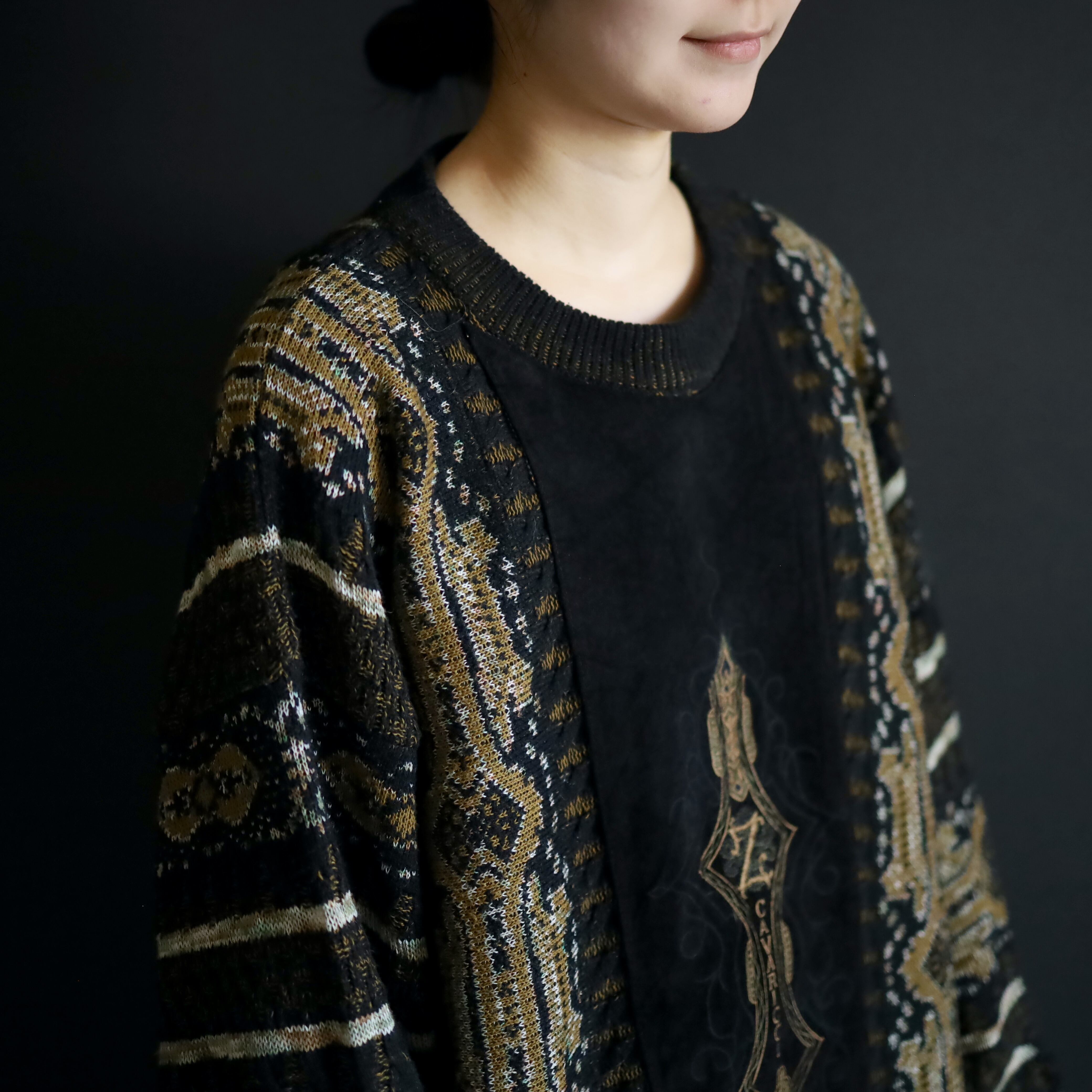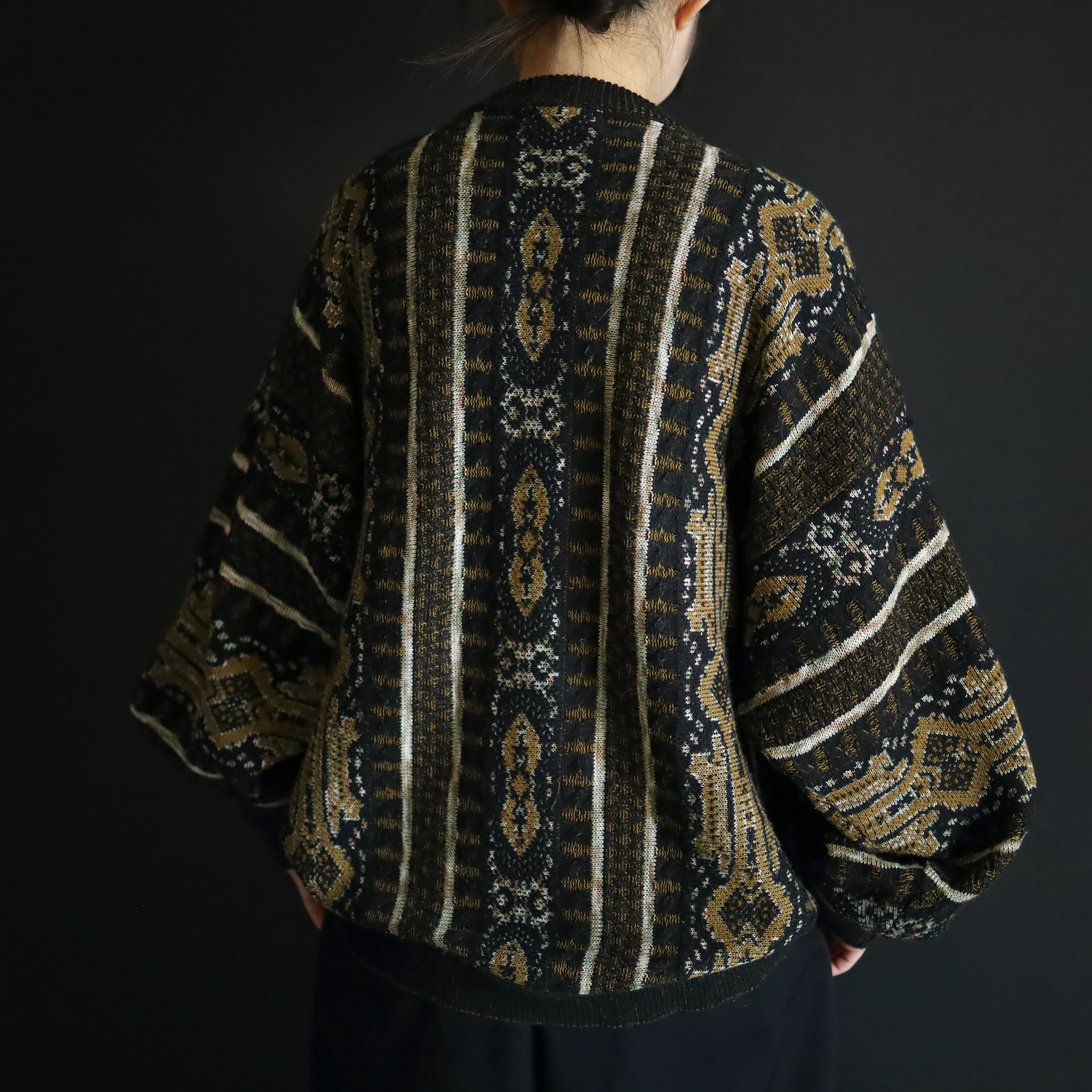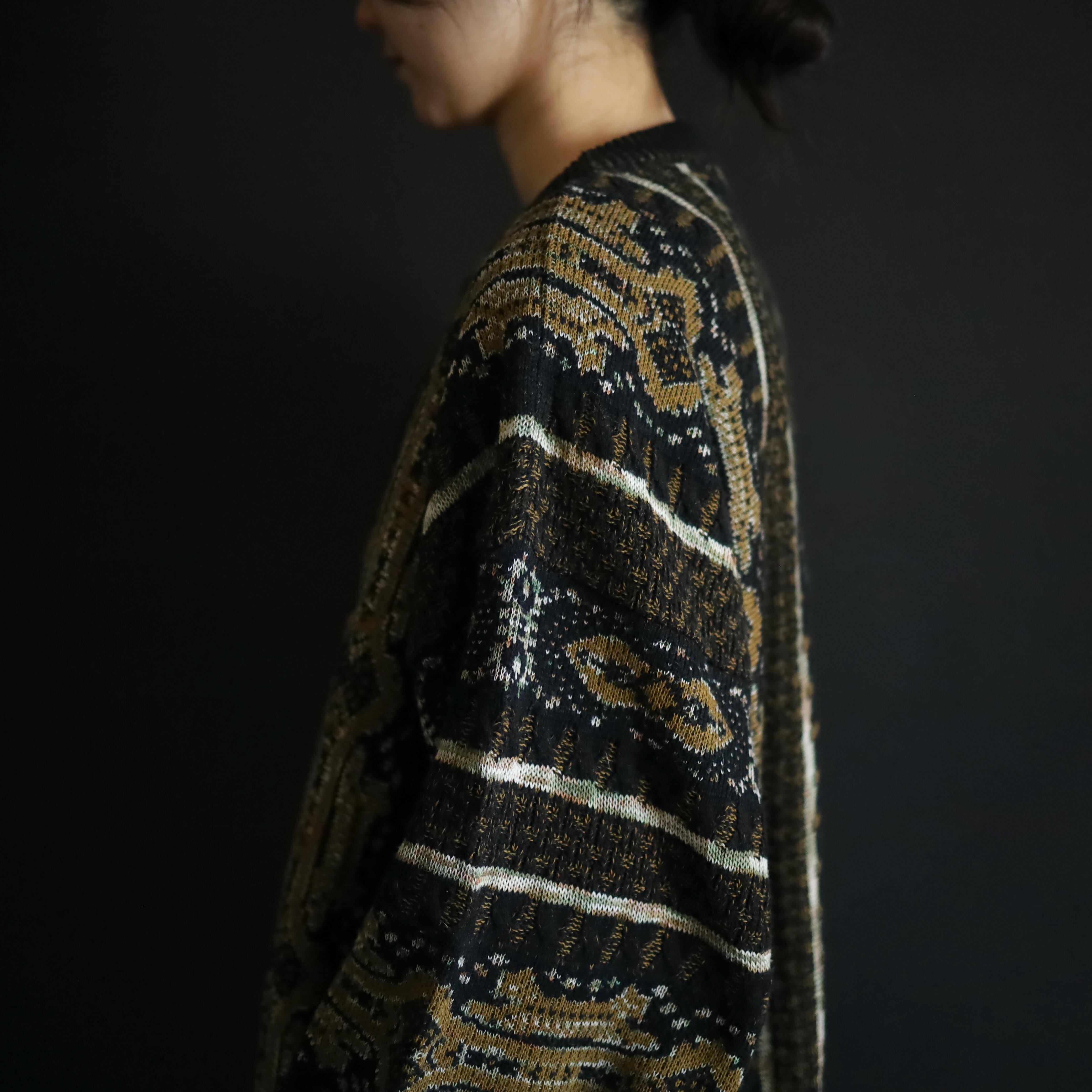 ブラックカラーをベースに,ベージュとキャメルを合わせたジャガード編み.