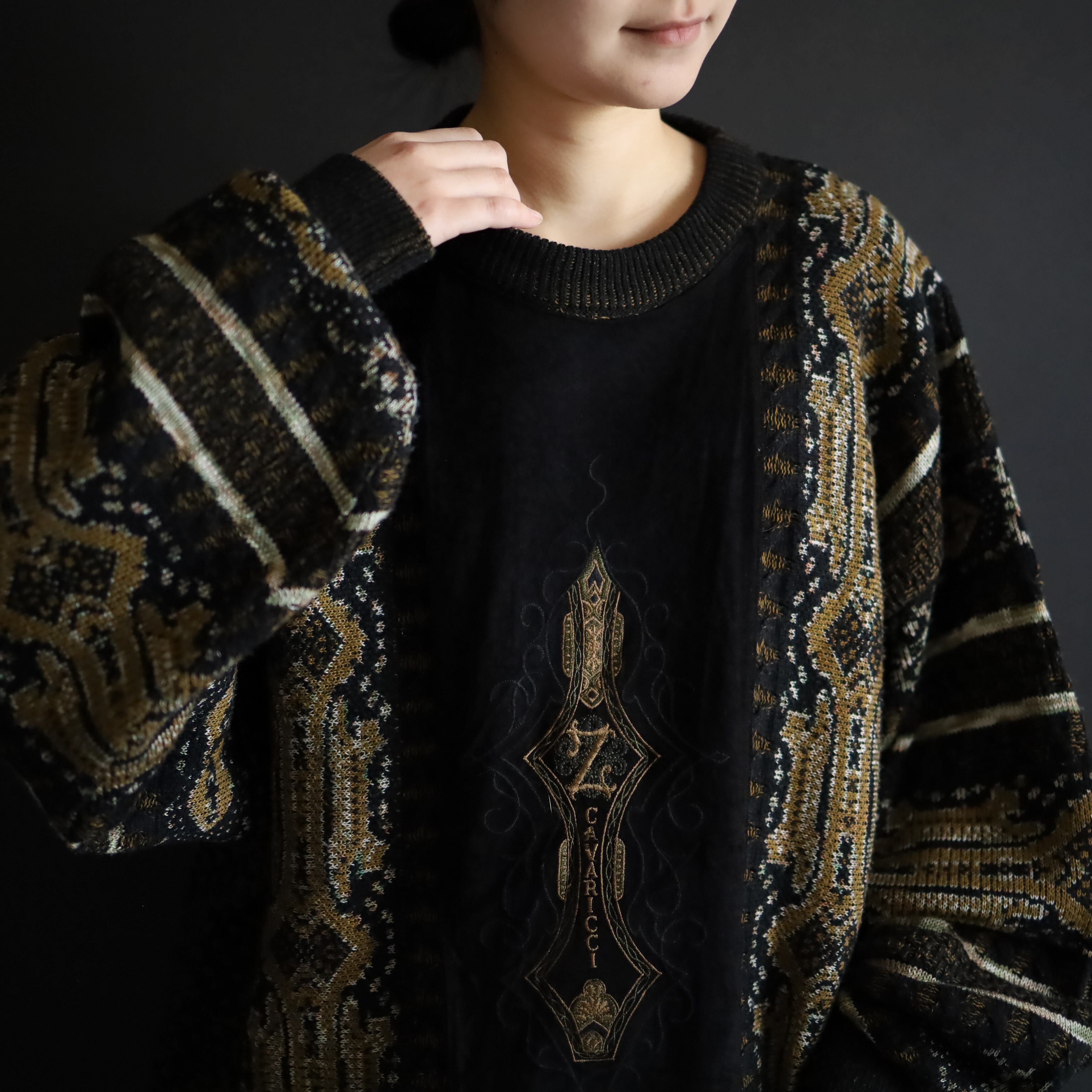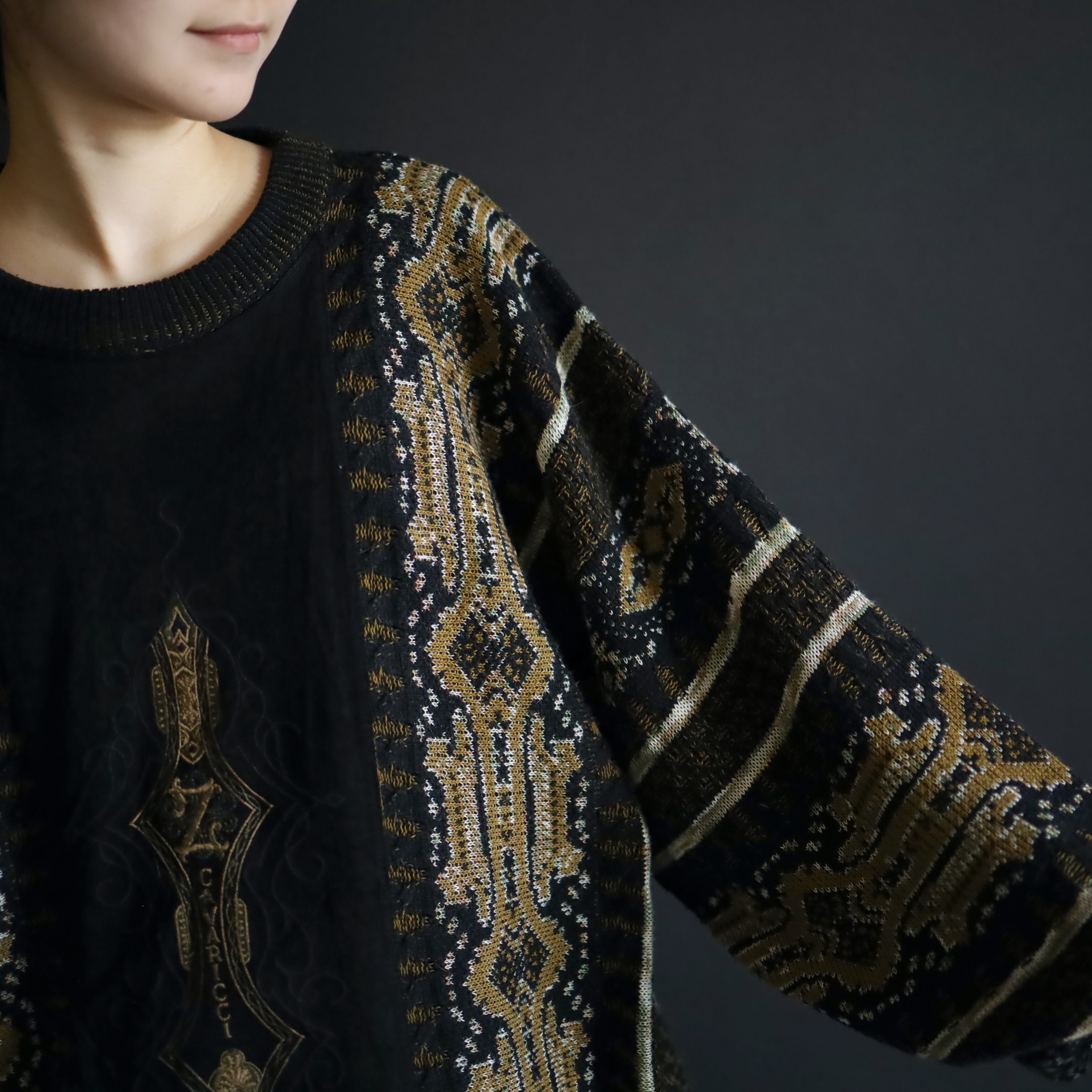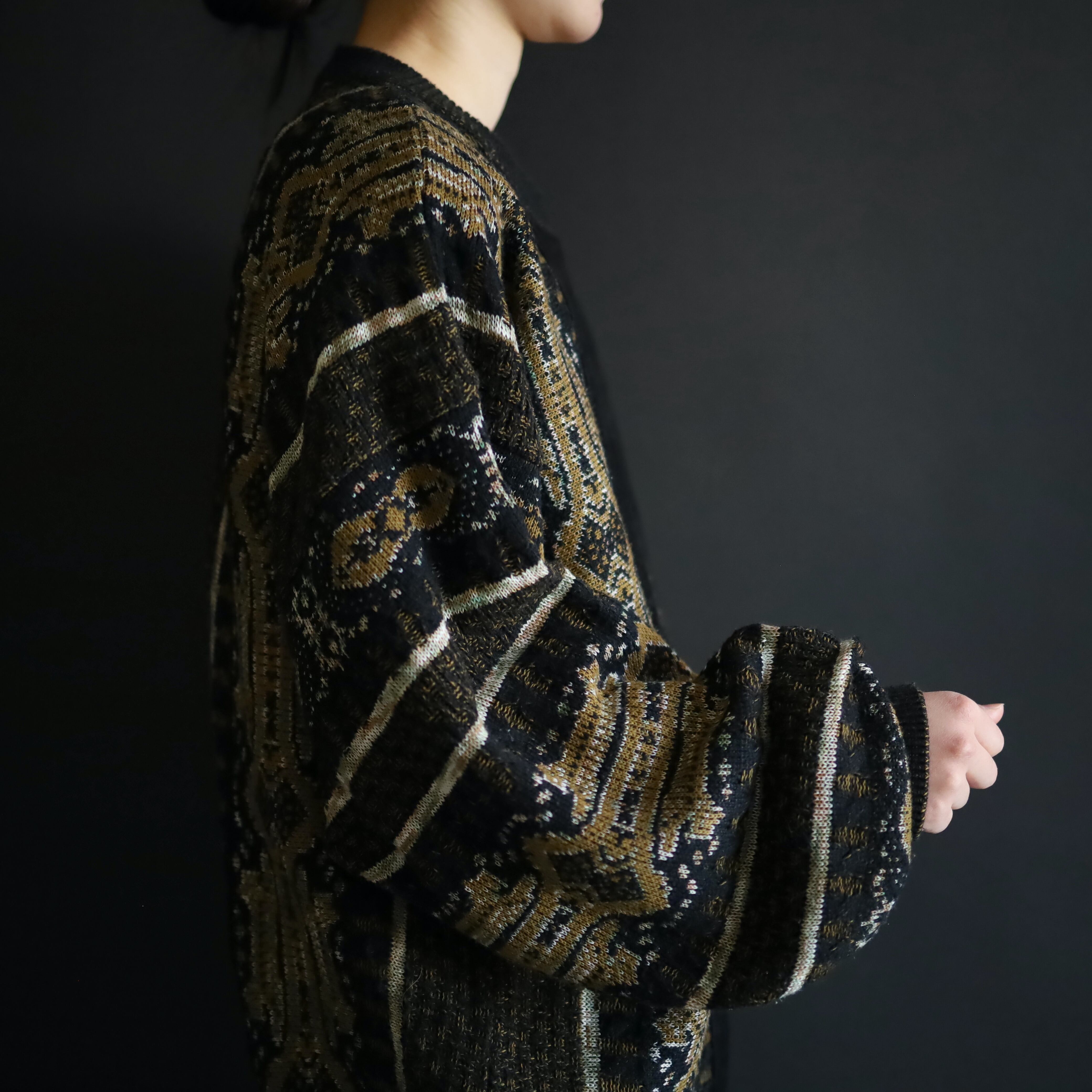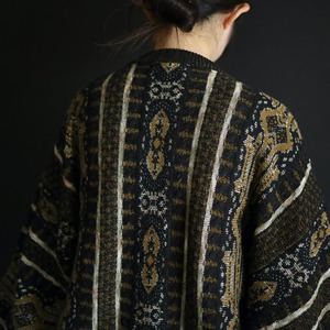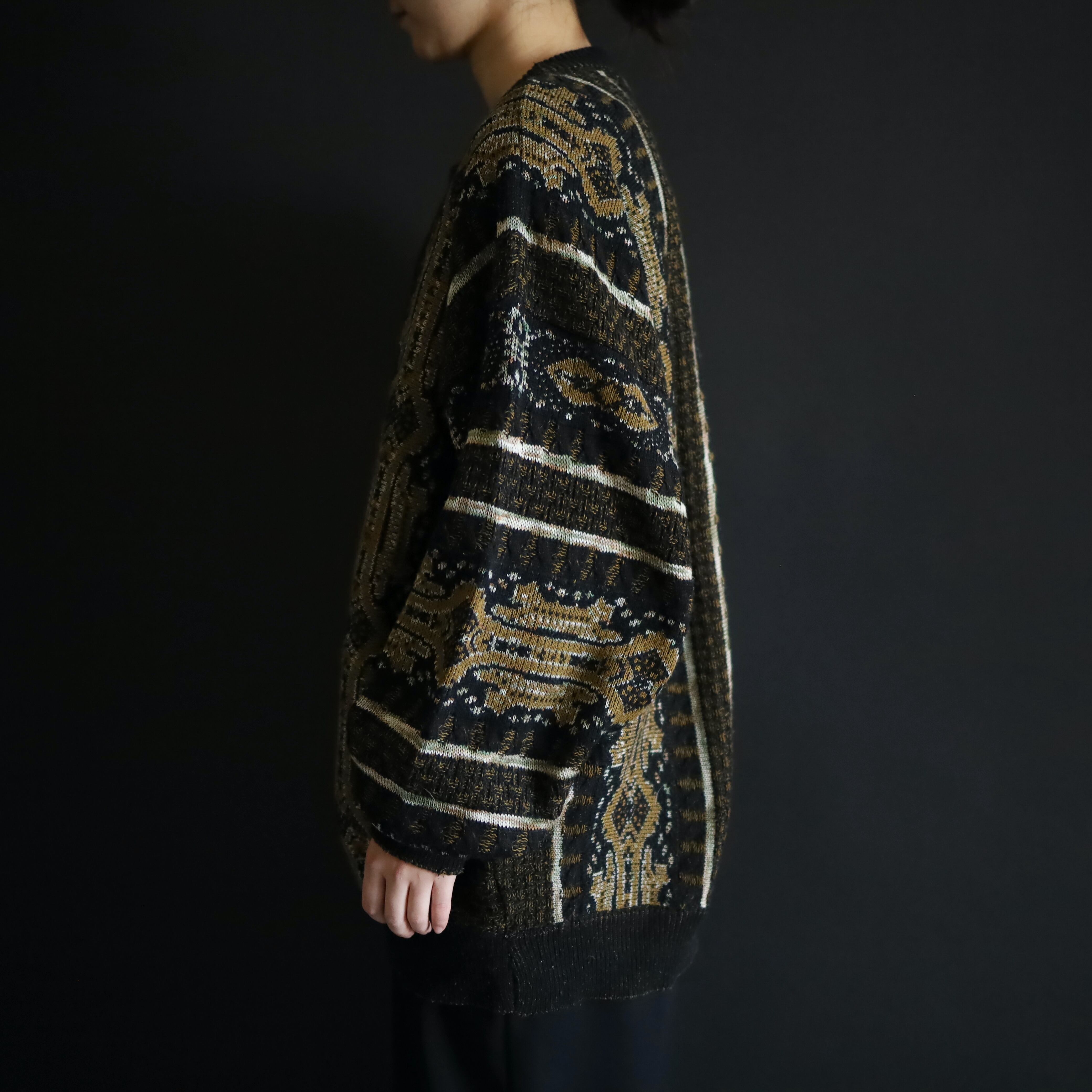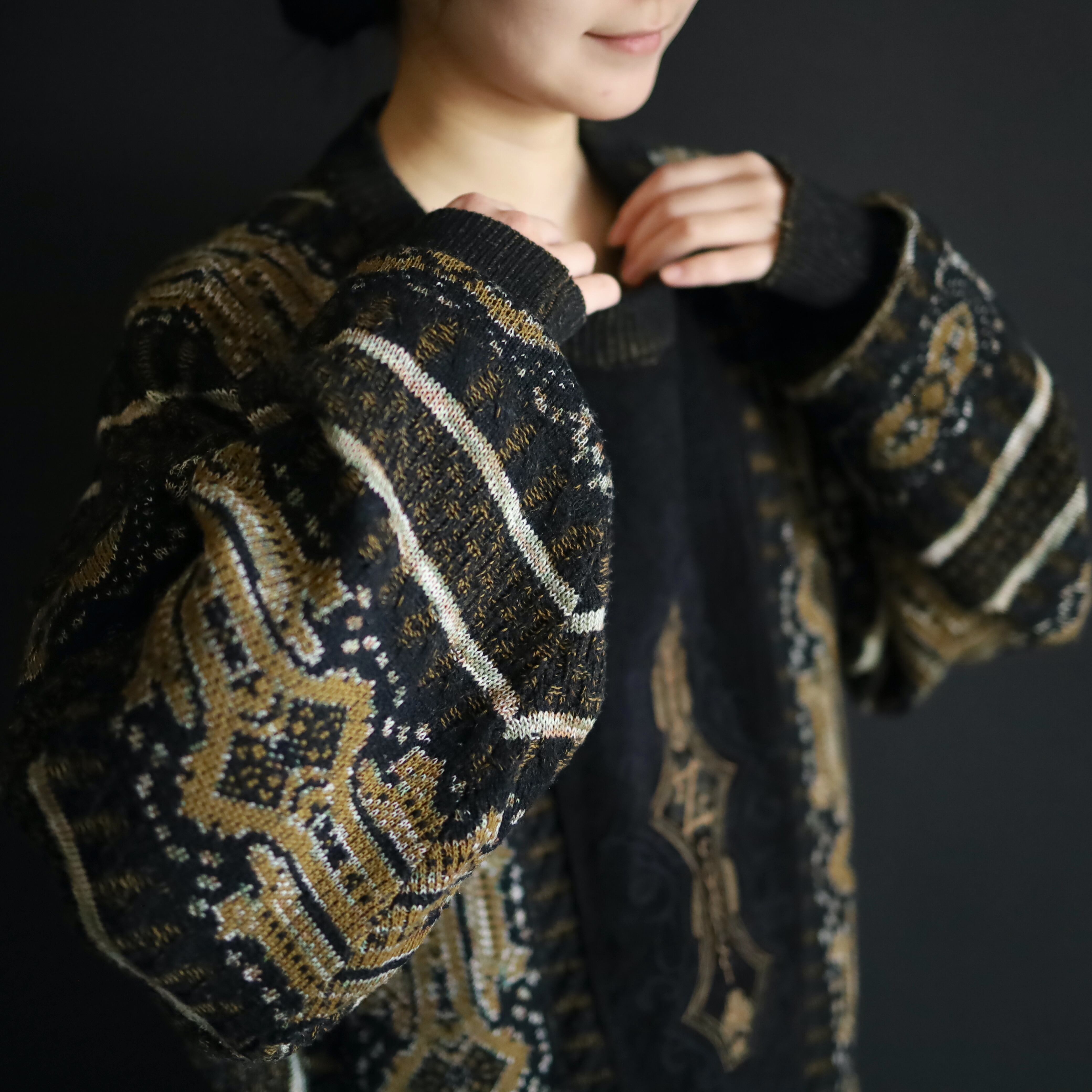 ブラックカラーをベースに,ベージュとキャメルを合わせたジャガード編み.
