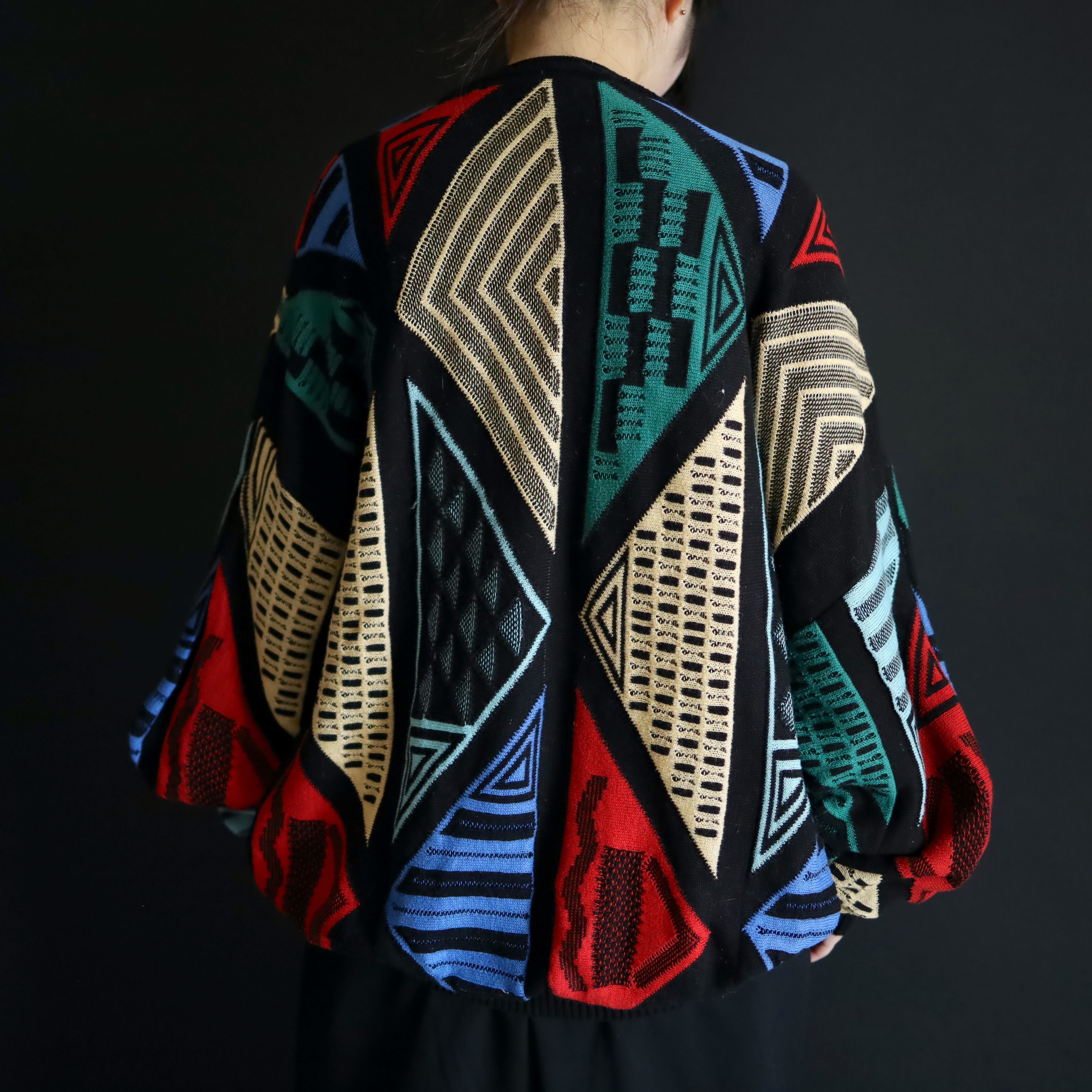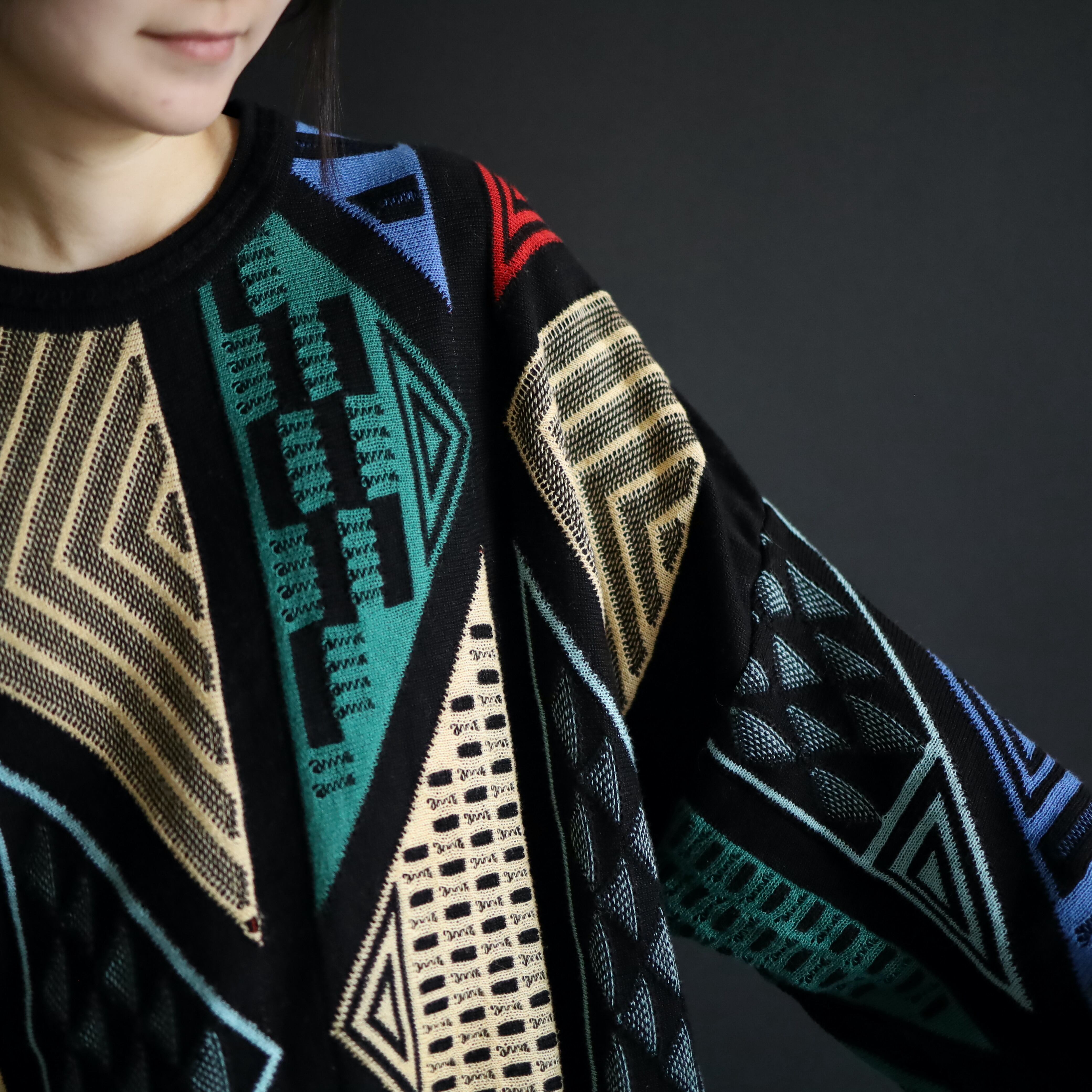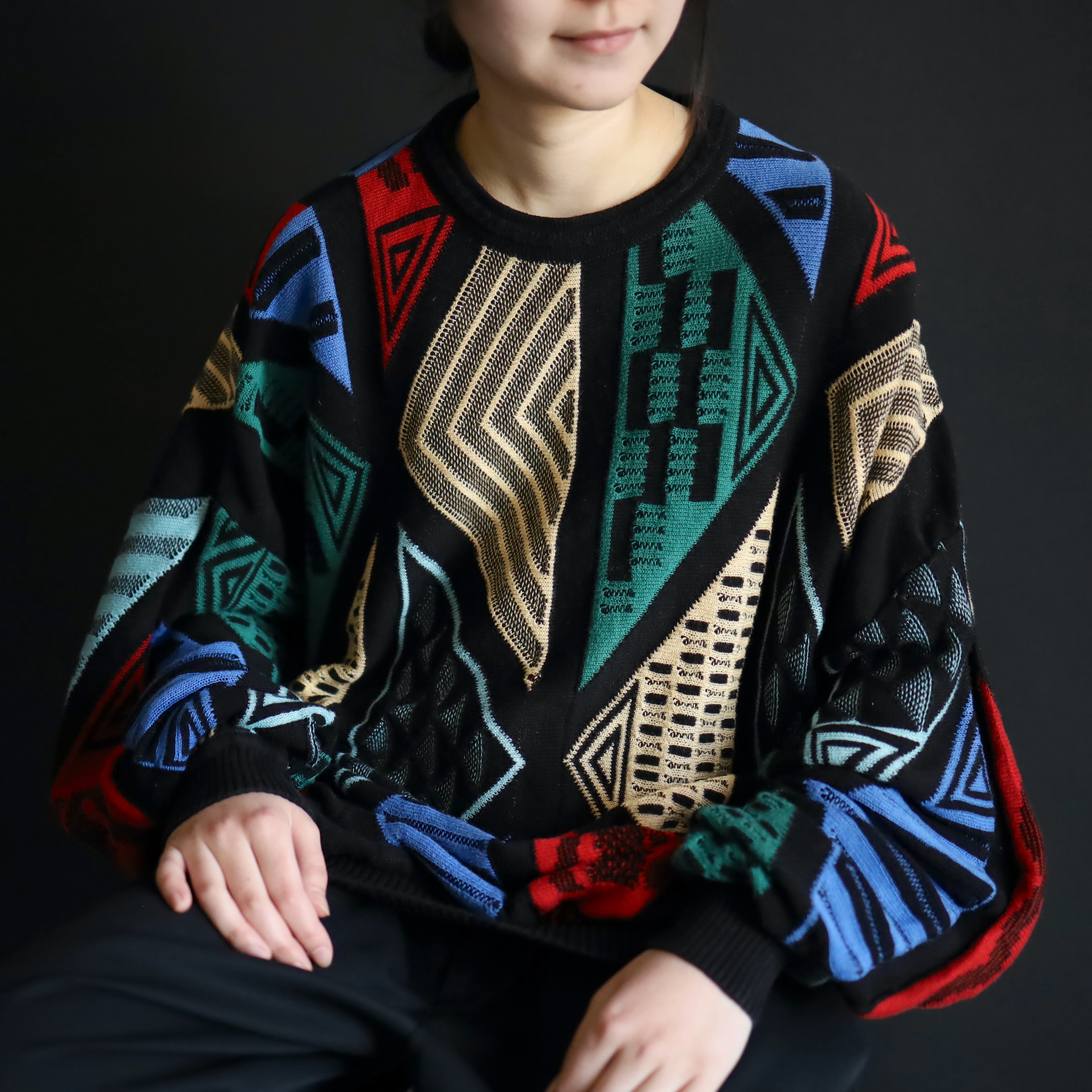 コットンニットのため春先には一枚で着て,コーデを華やかに個性的に演出してくれる逸品です.