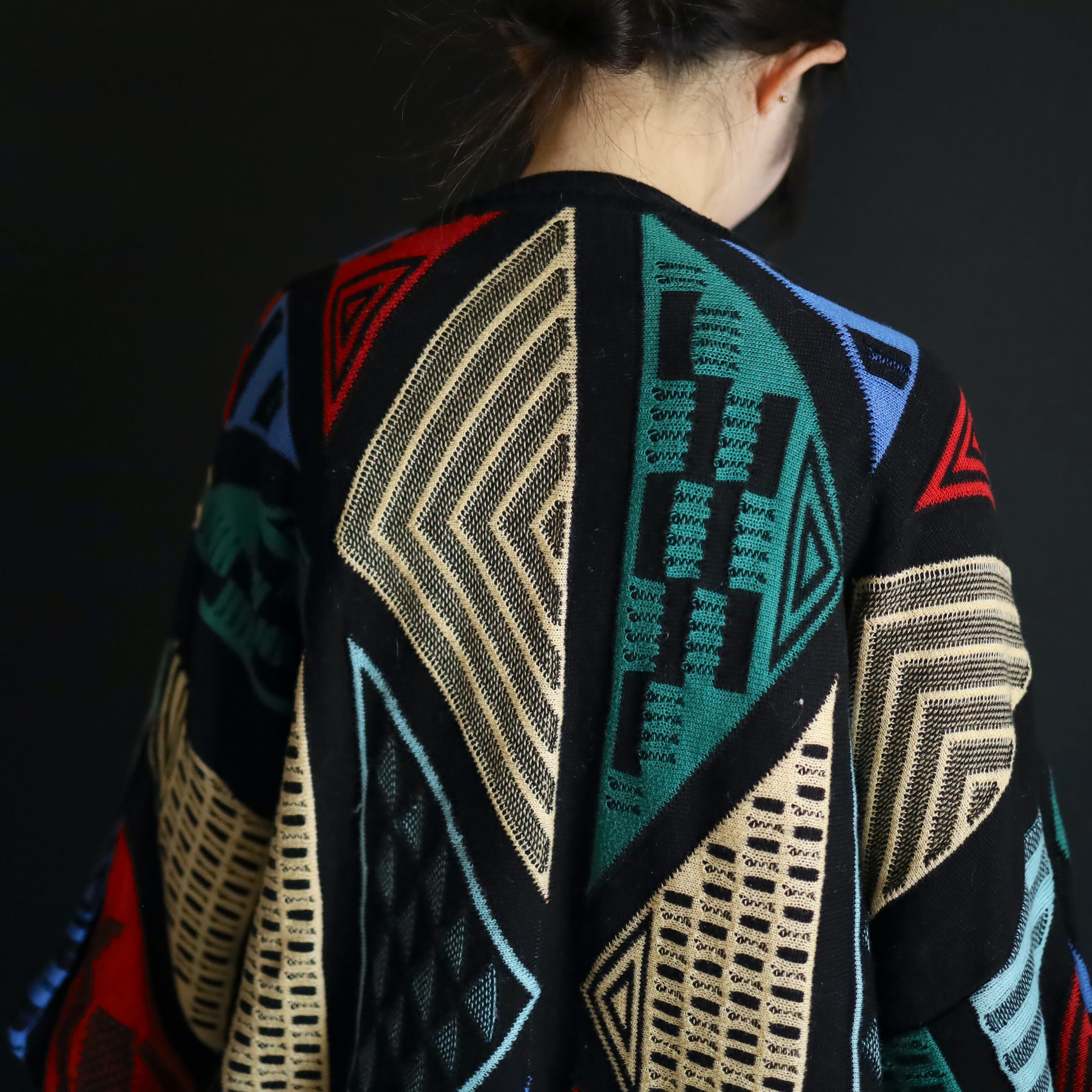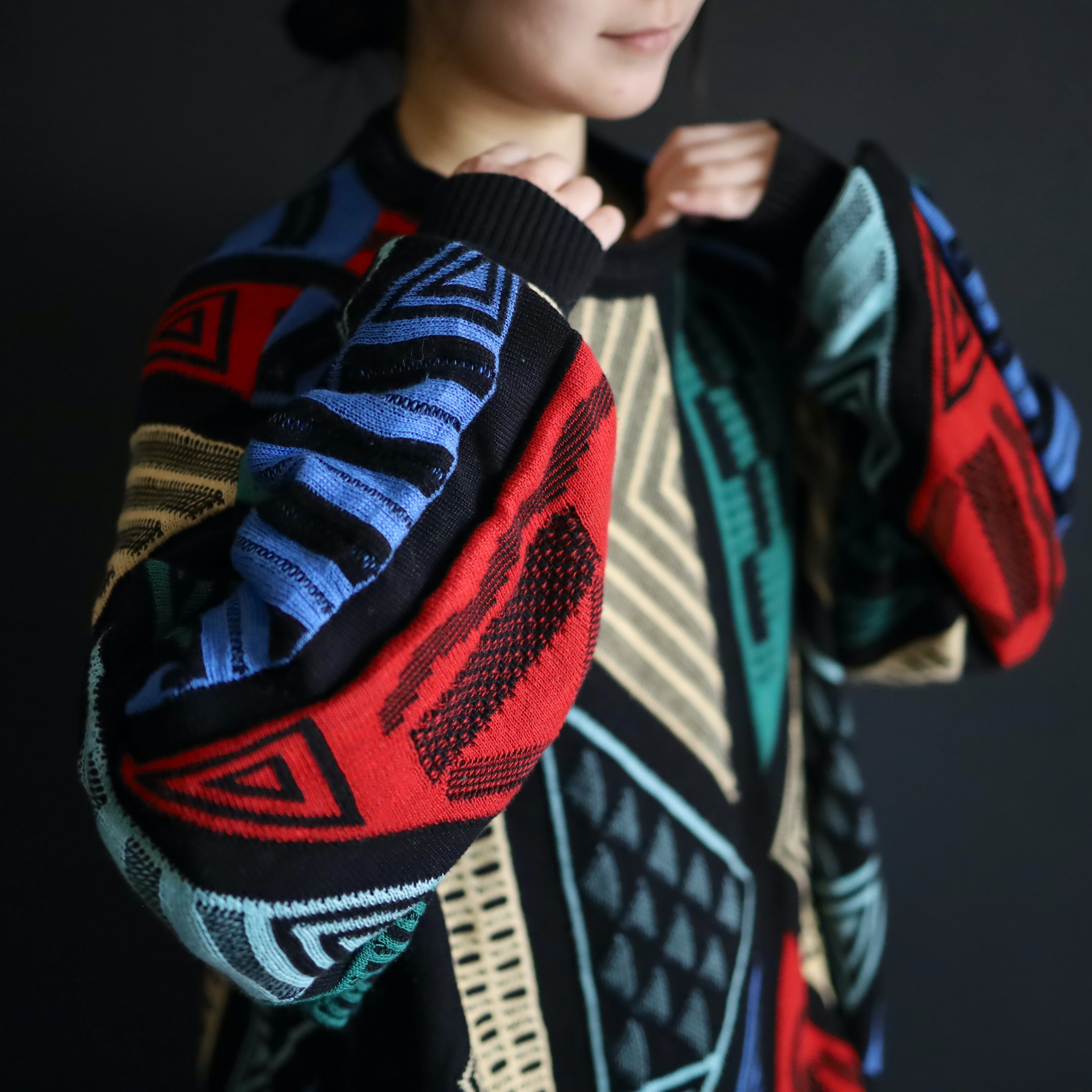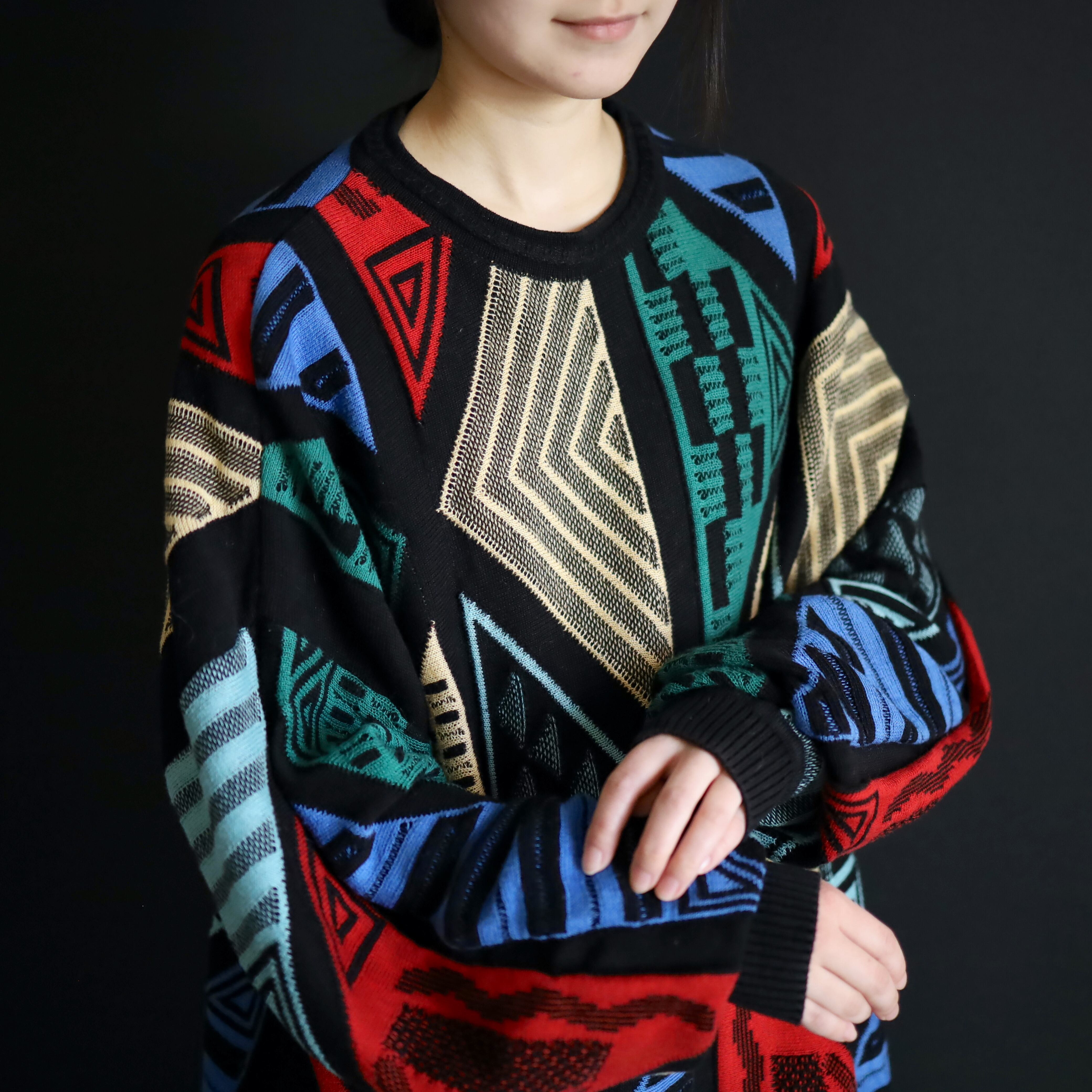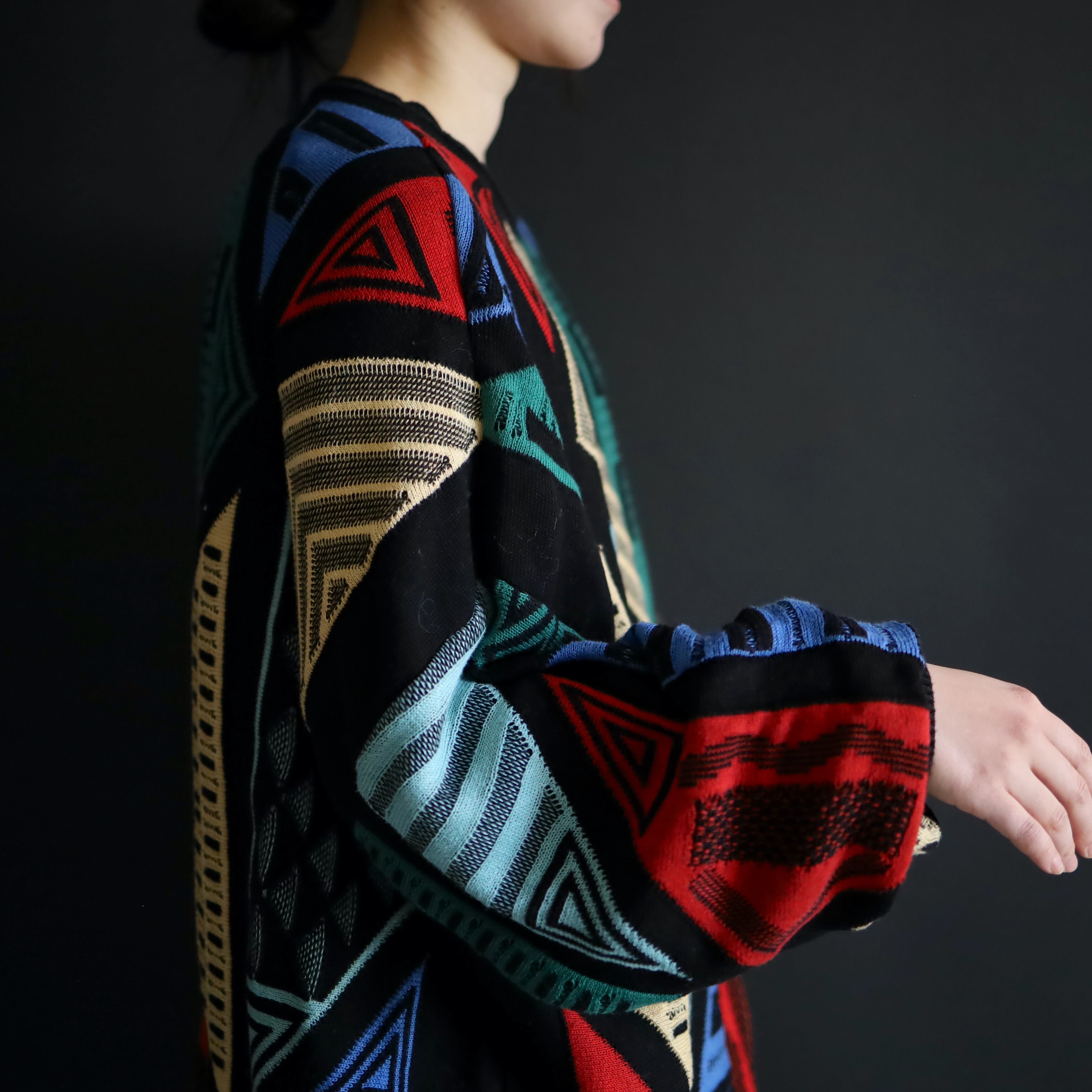 コットンニットのため春先には一枚で着て,コーデを華やかに個性的に演出してくれる逸品です.