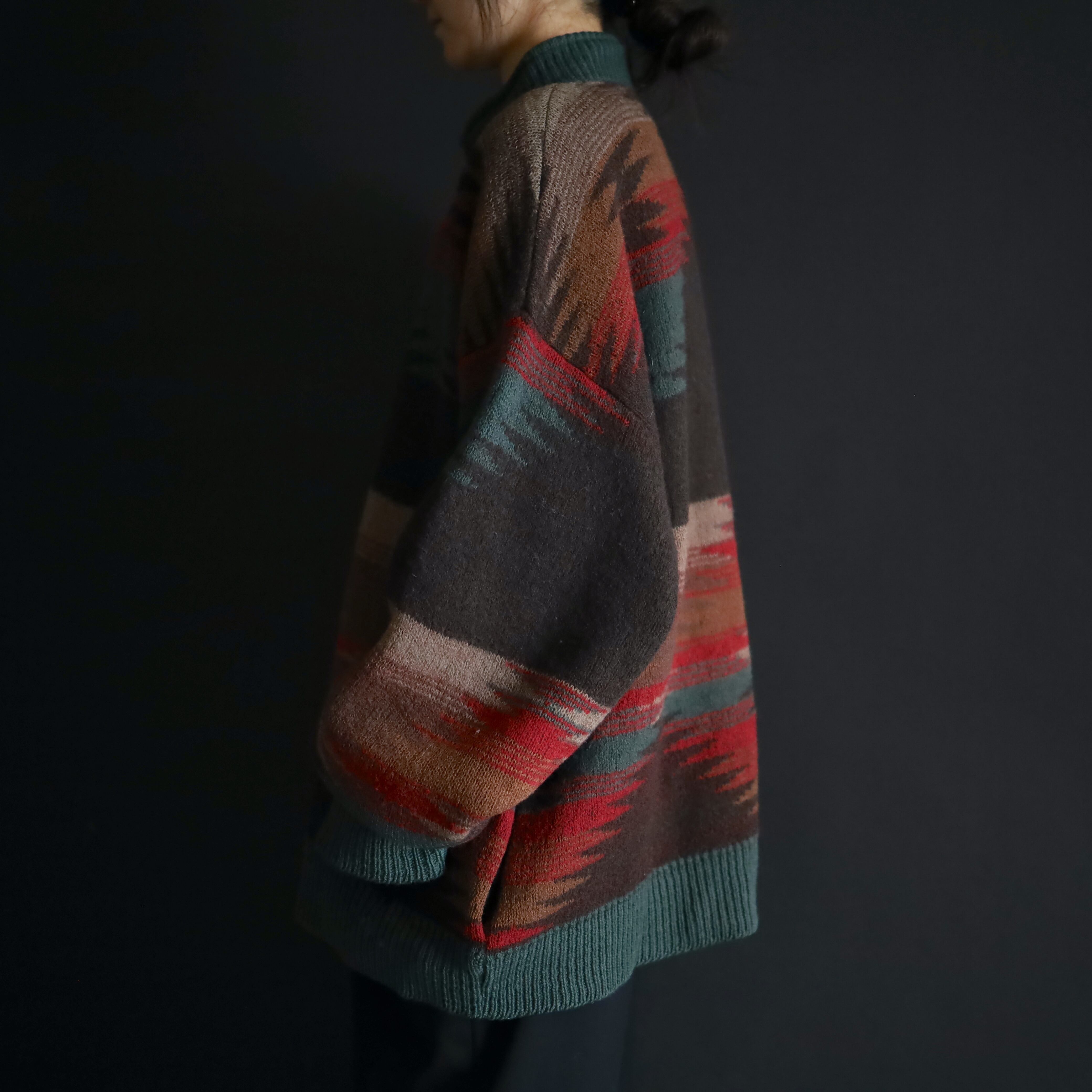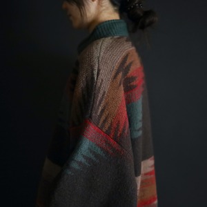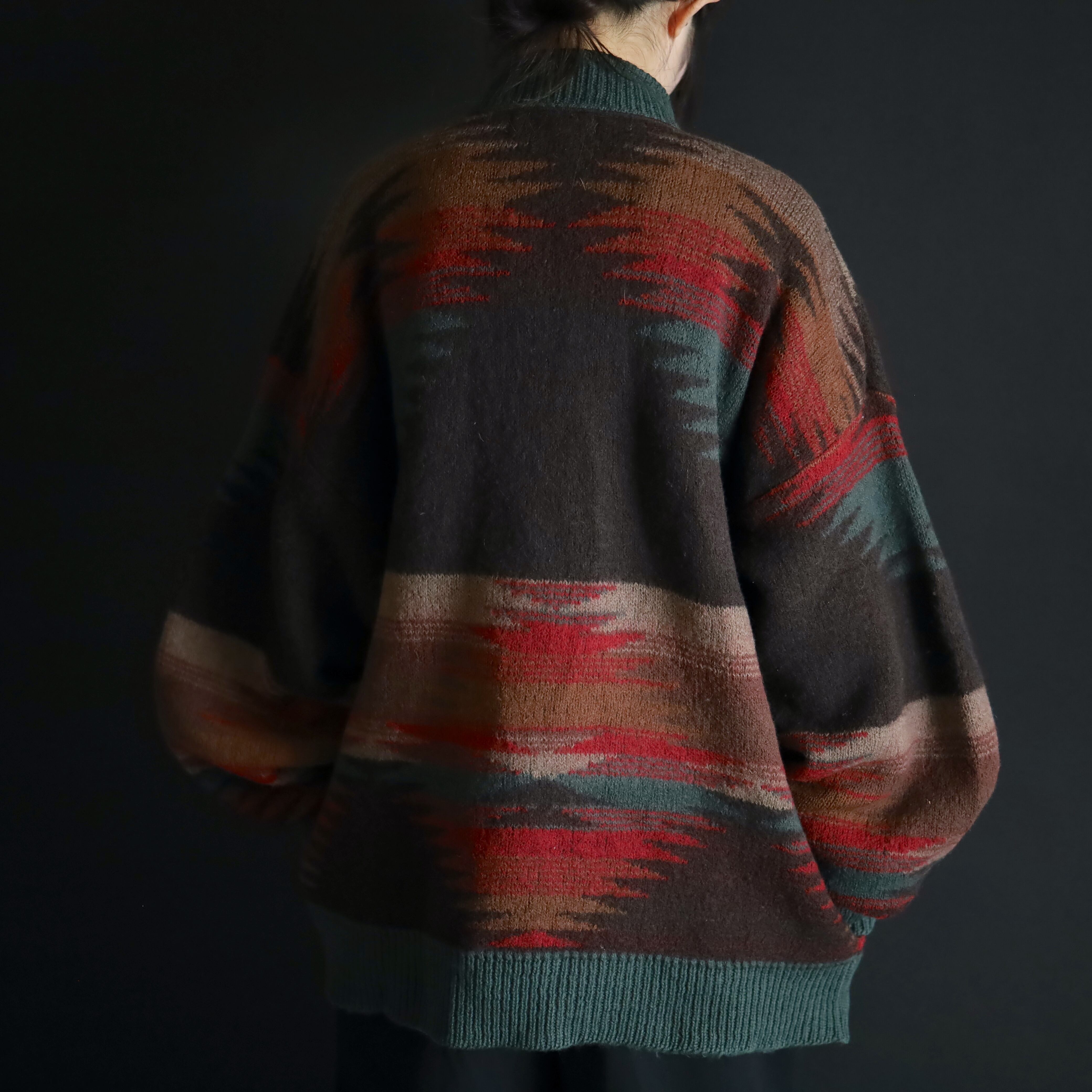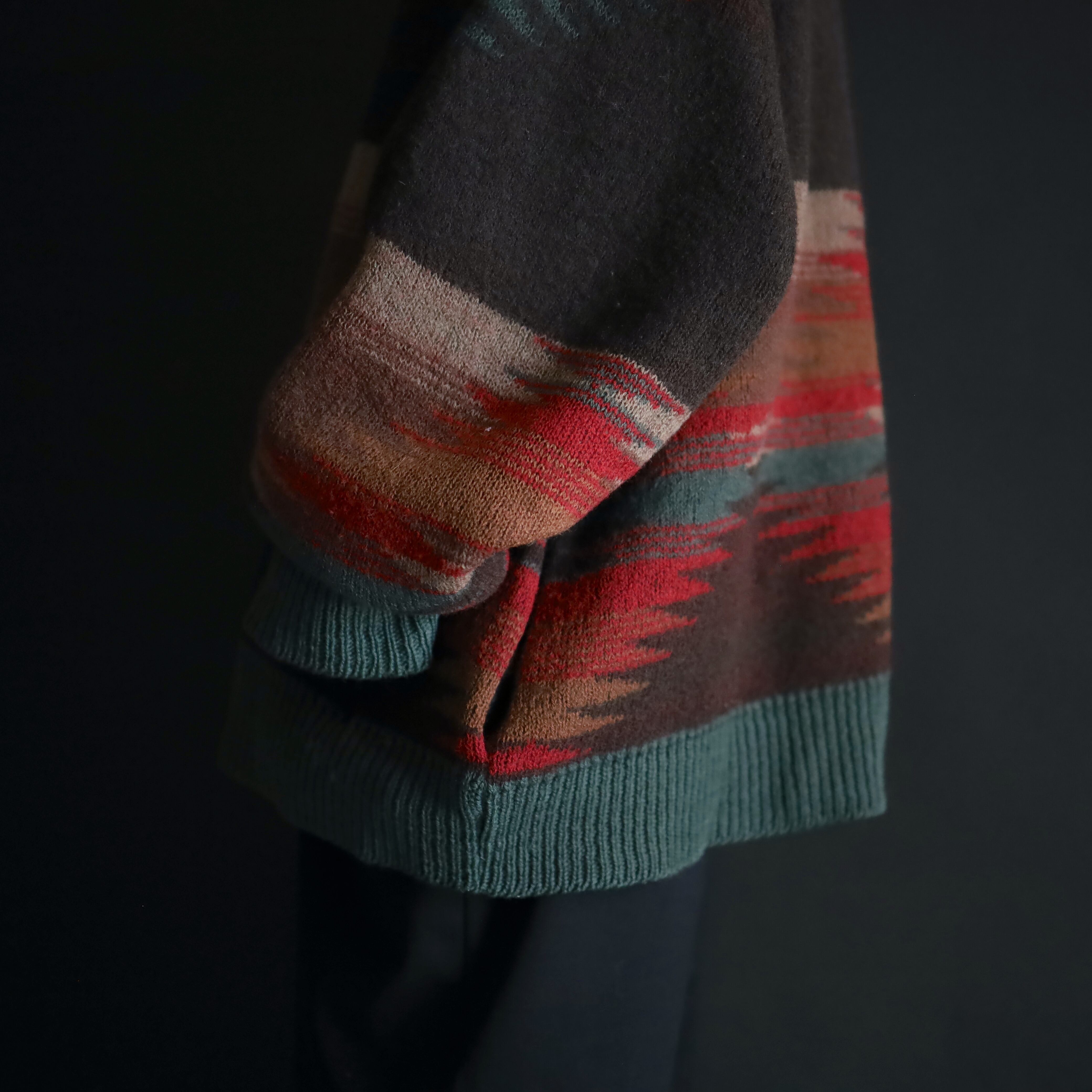 レッド,ブラウン,ベージュ,グリーンなどで構成された,ネイティブ柄の中でもクセのない表情.