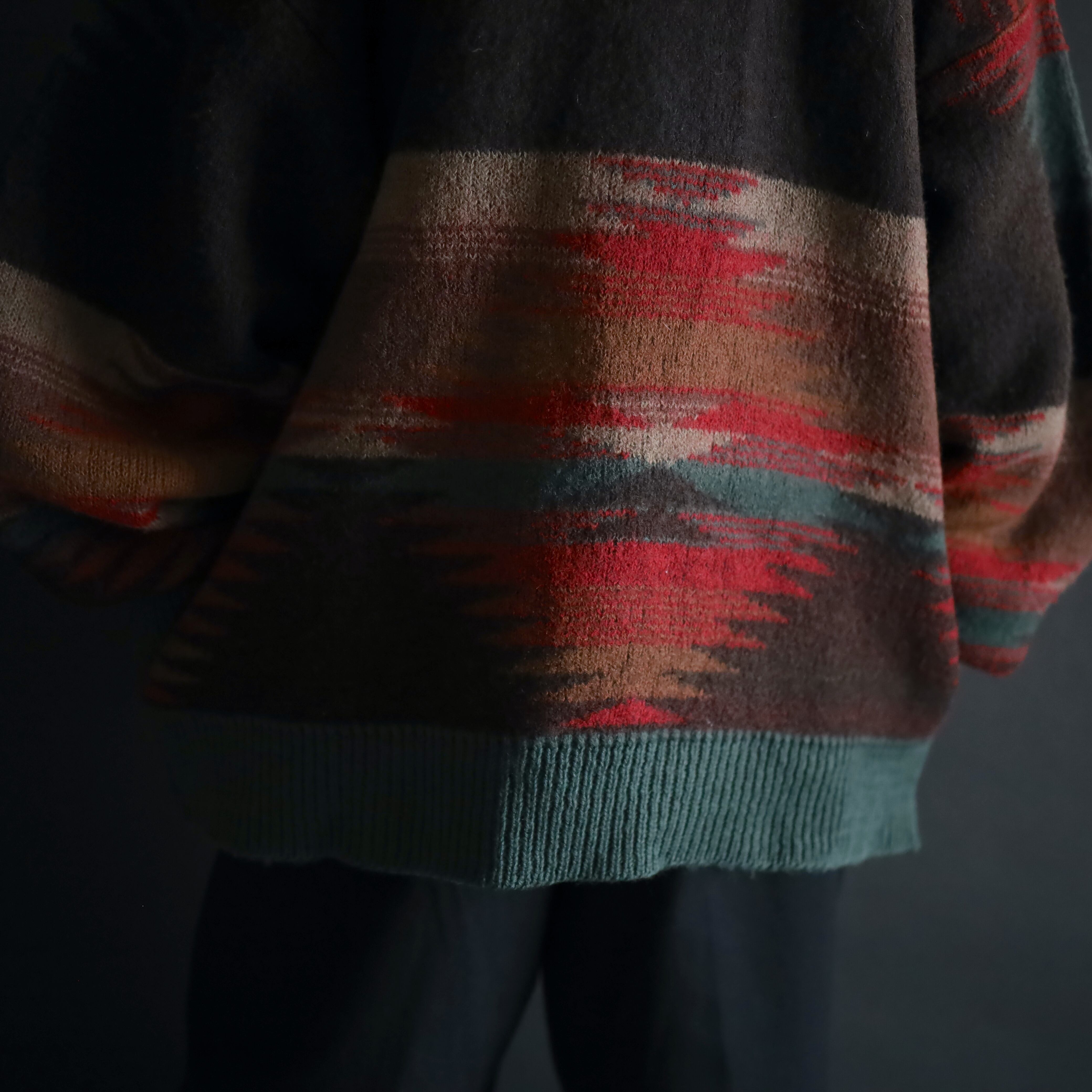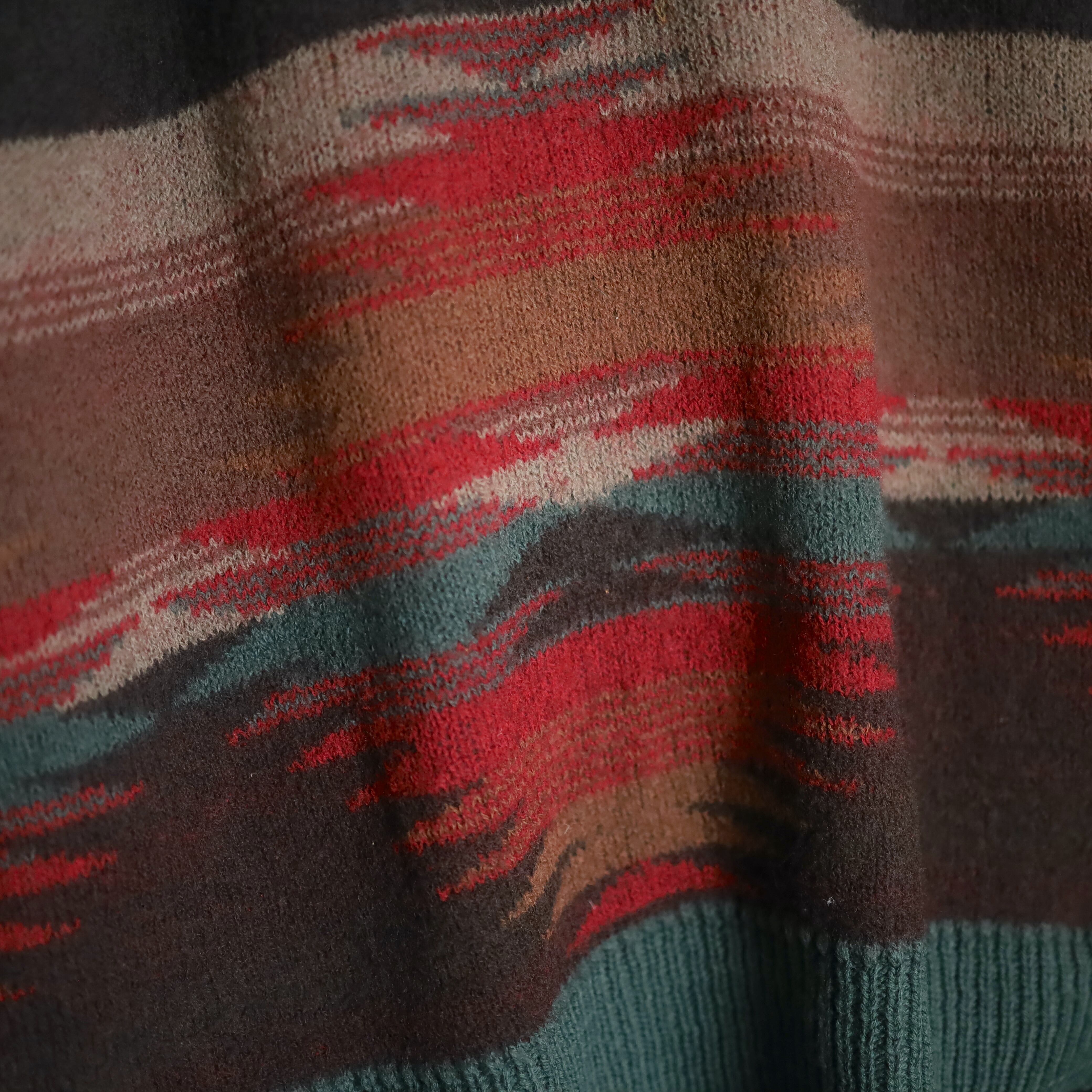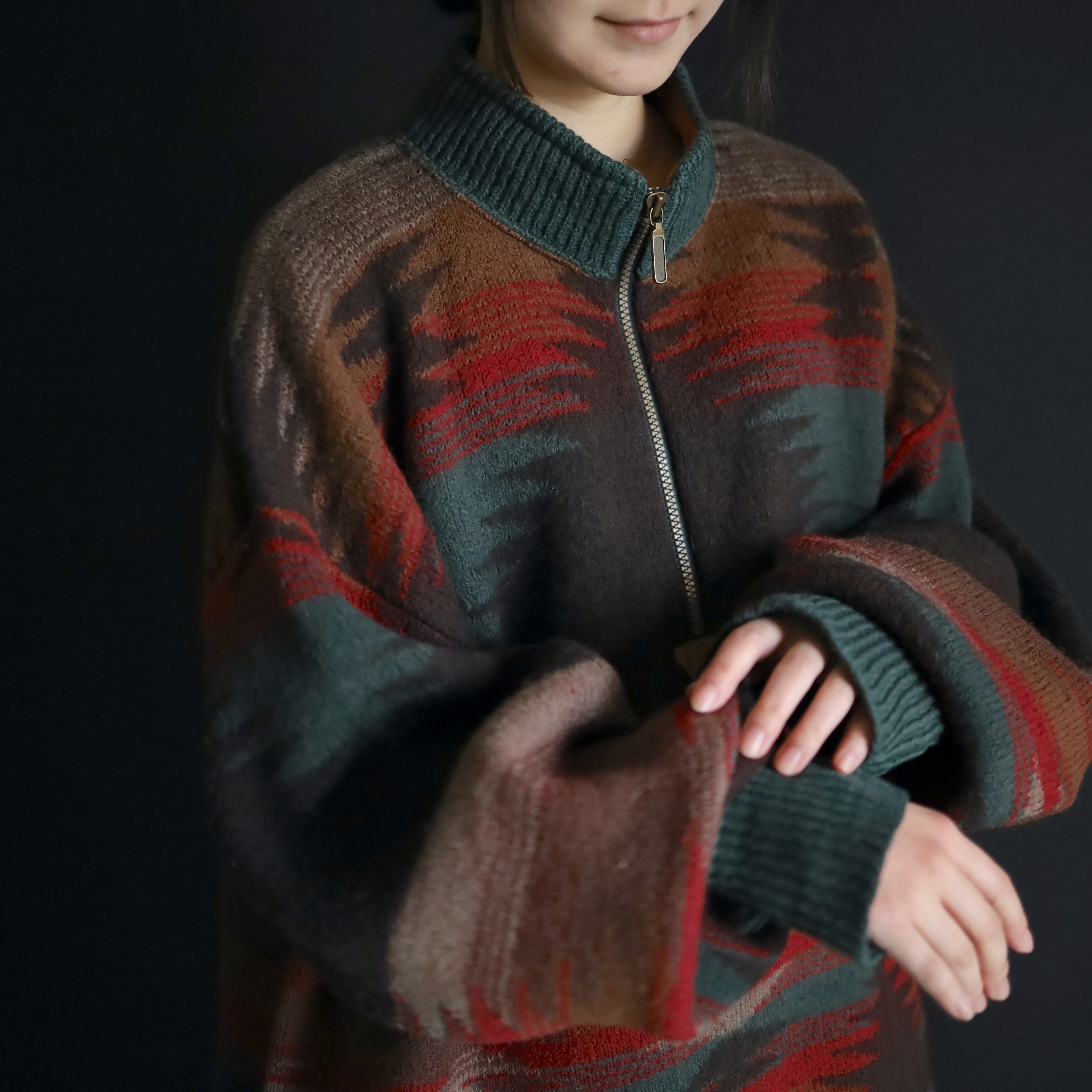 レッド,ブラウン,ベージュ,グリーンなどで構成された,ネイティブ柄の中でもクセのない表情.