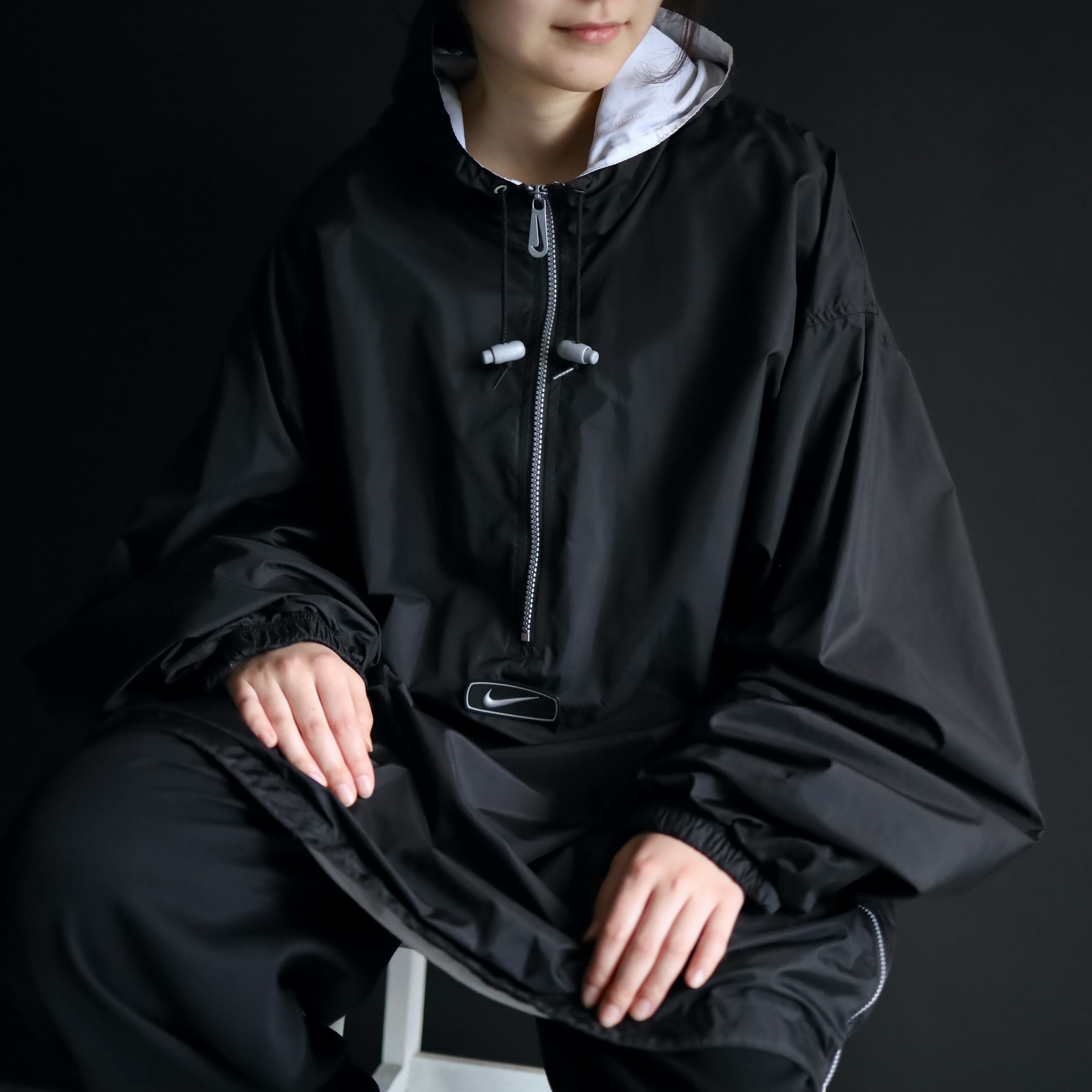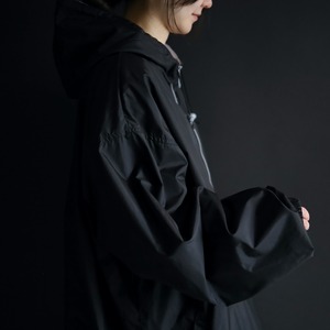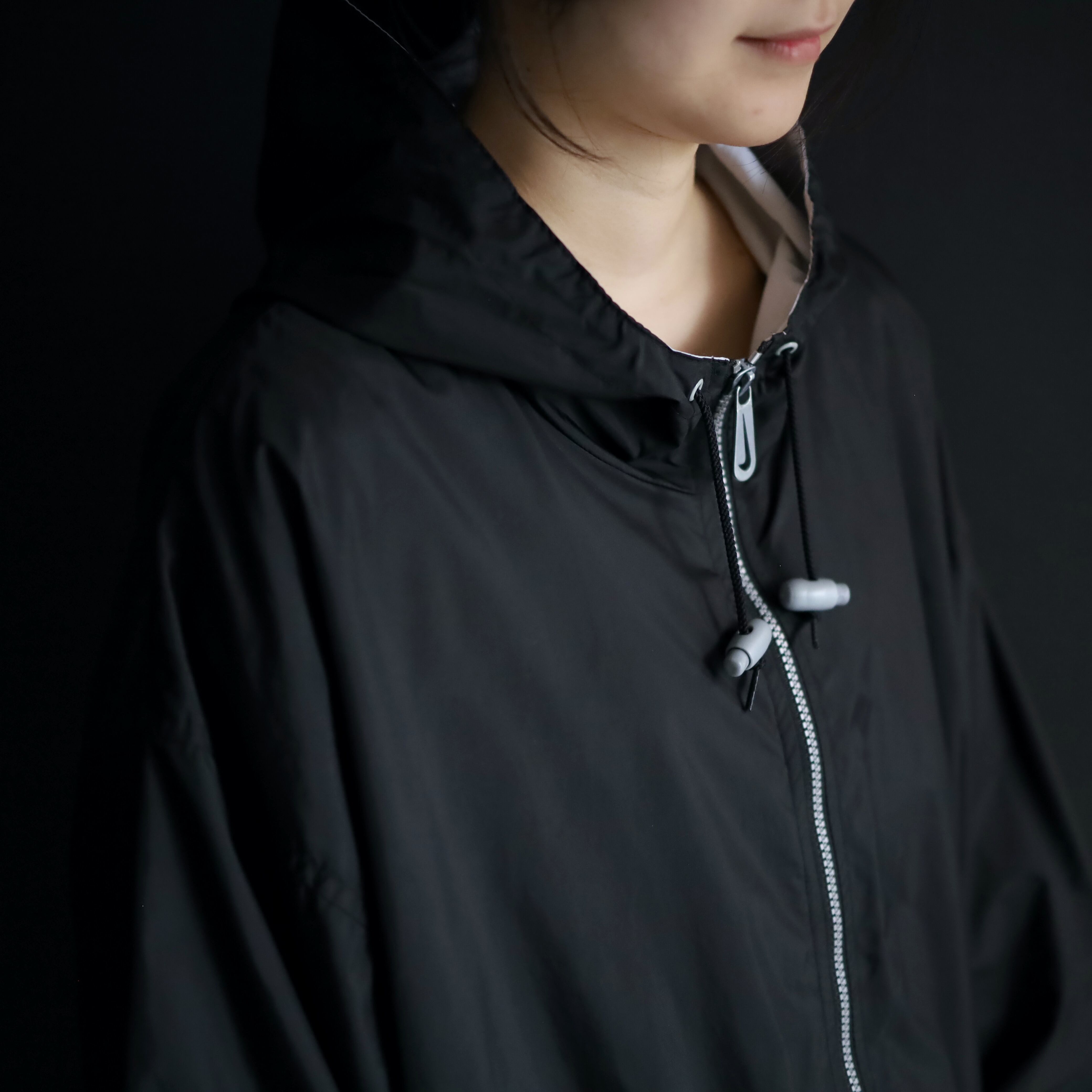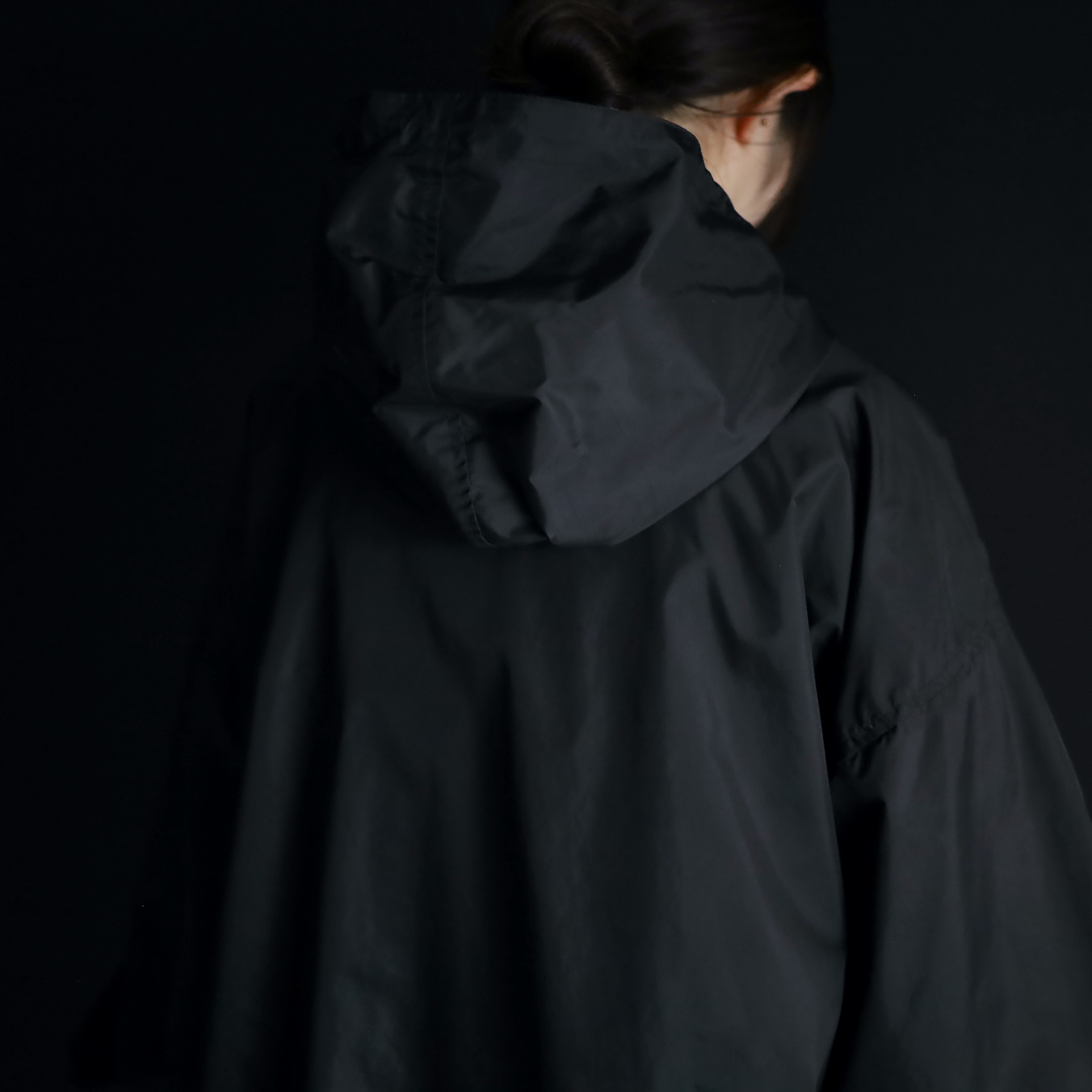 両裾サイドのジッパー,首下のハーフジップは無機質で,ブラックボディとのコントラストが◎