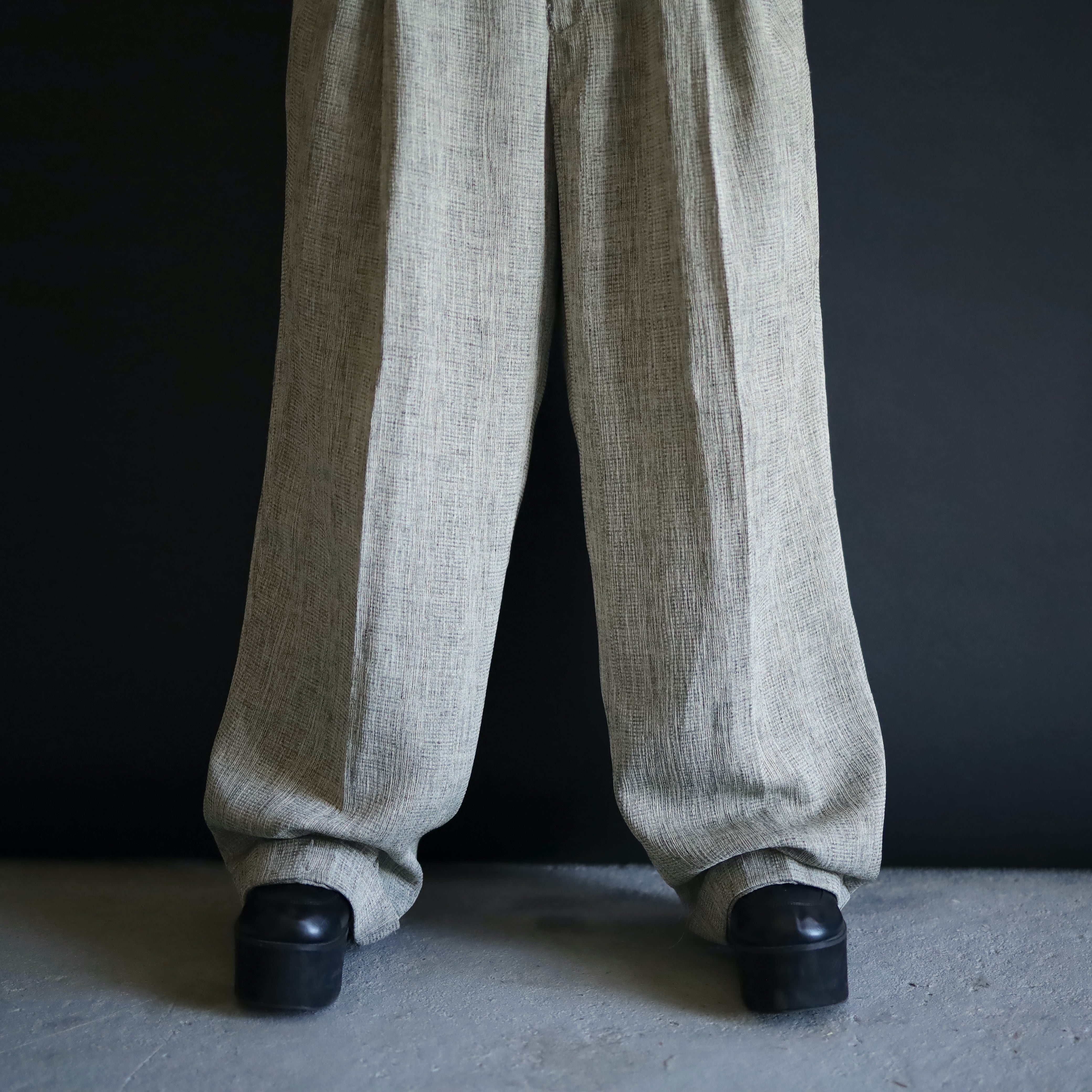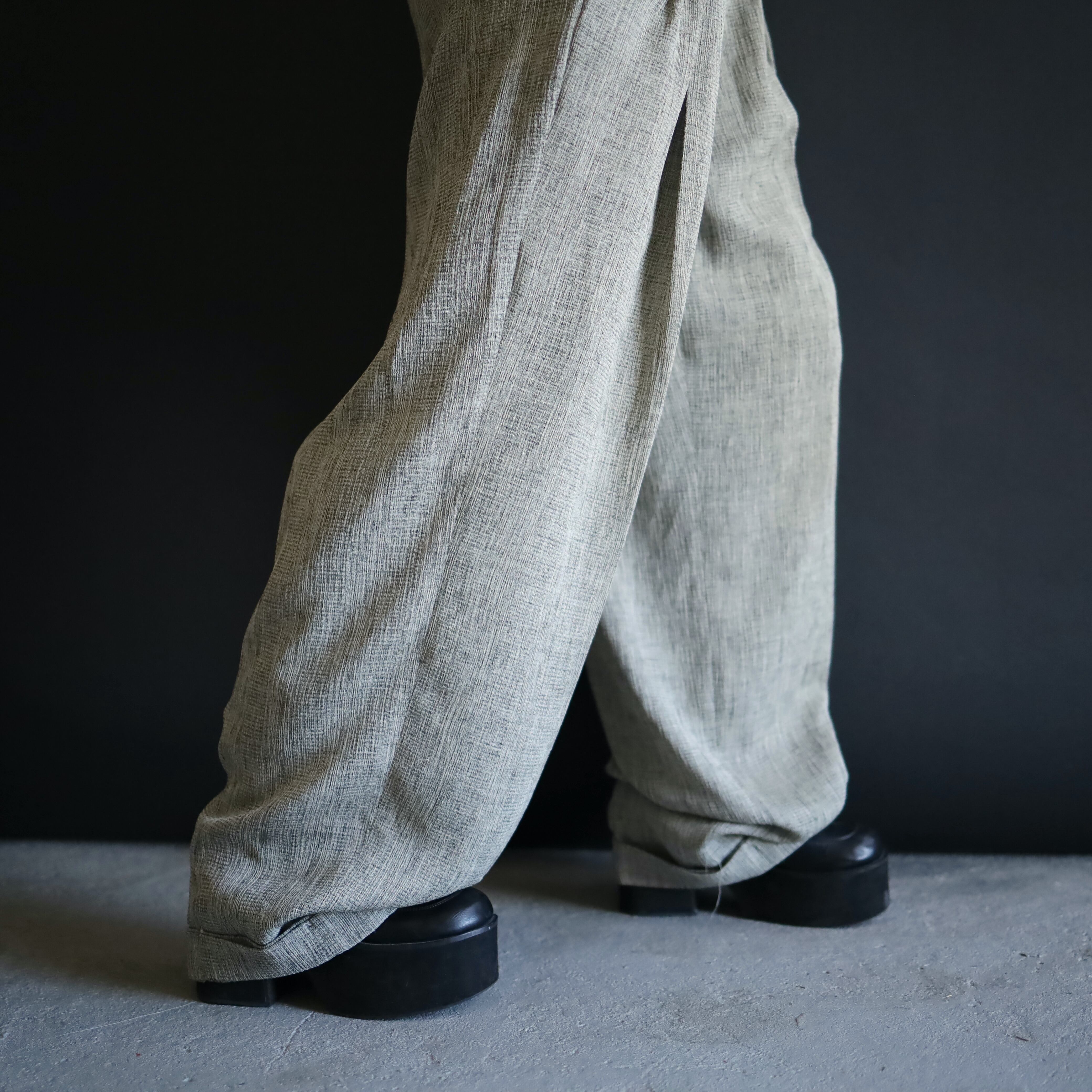 柔らかい生地感に加えて,ワイドな仕立てによって,着用時の動きに合わせて揺れ泳ぐシルエットが極上.