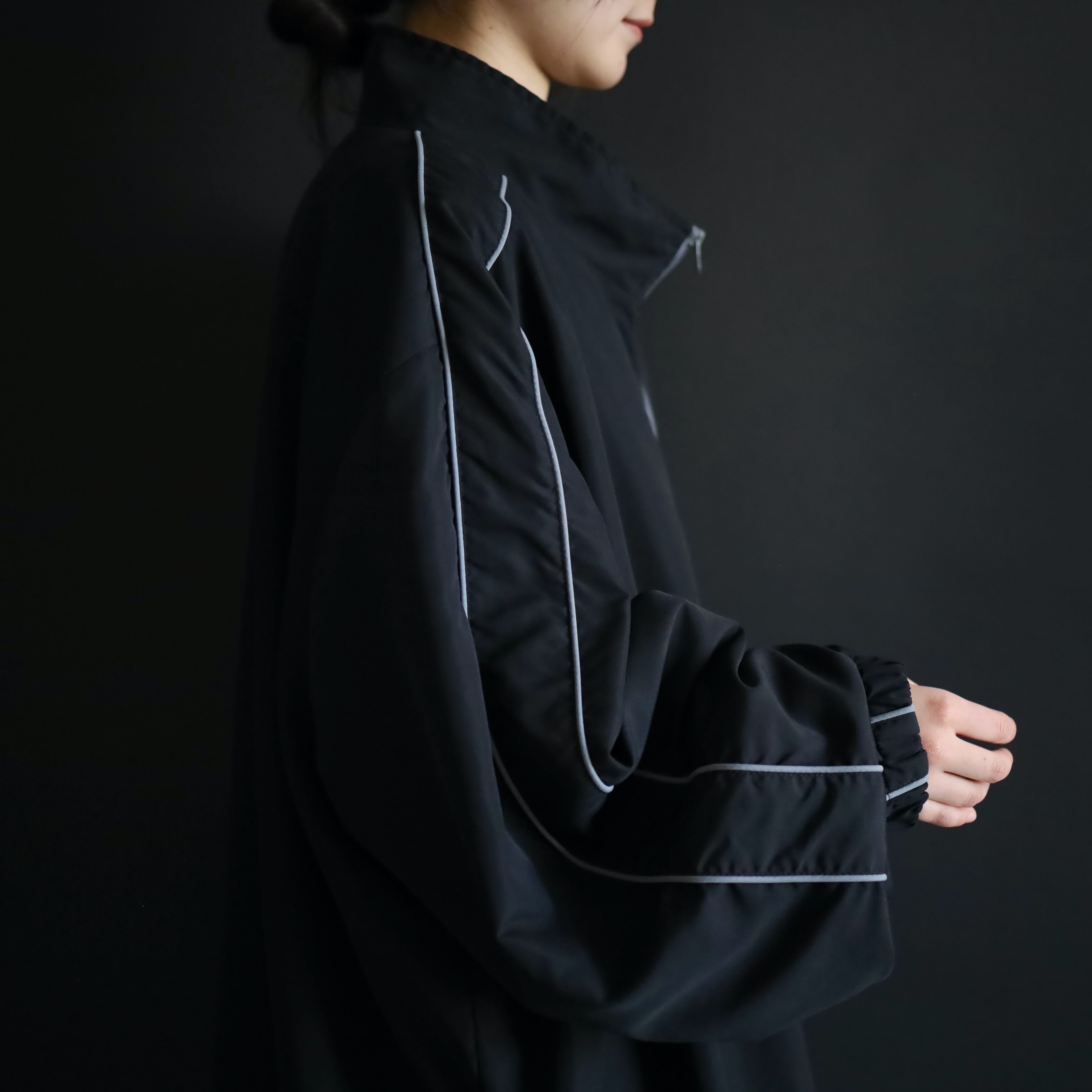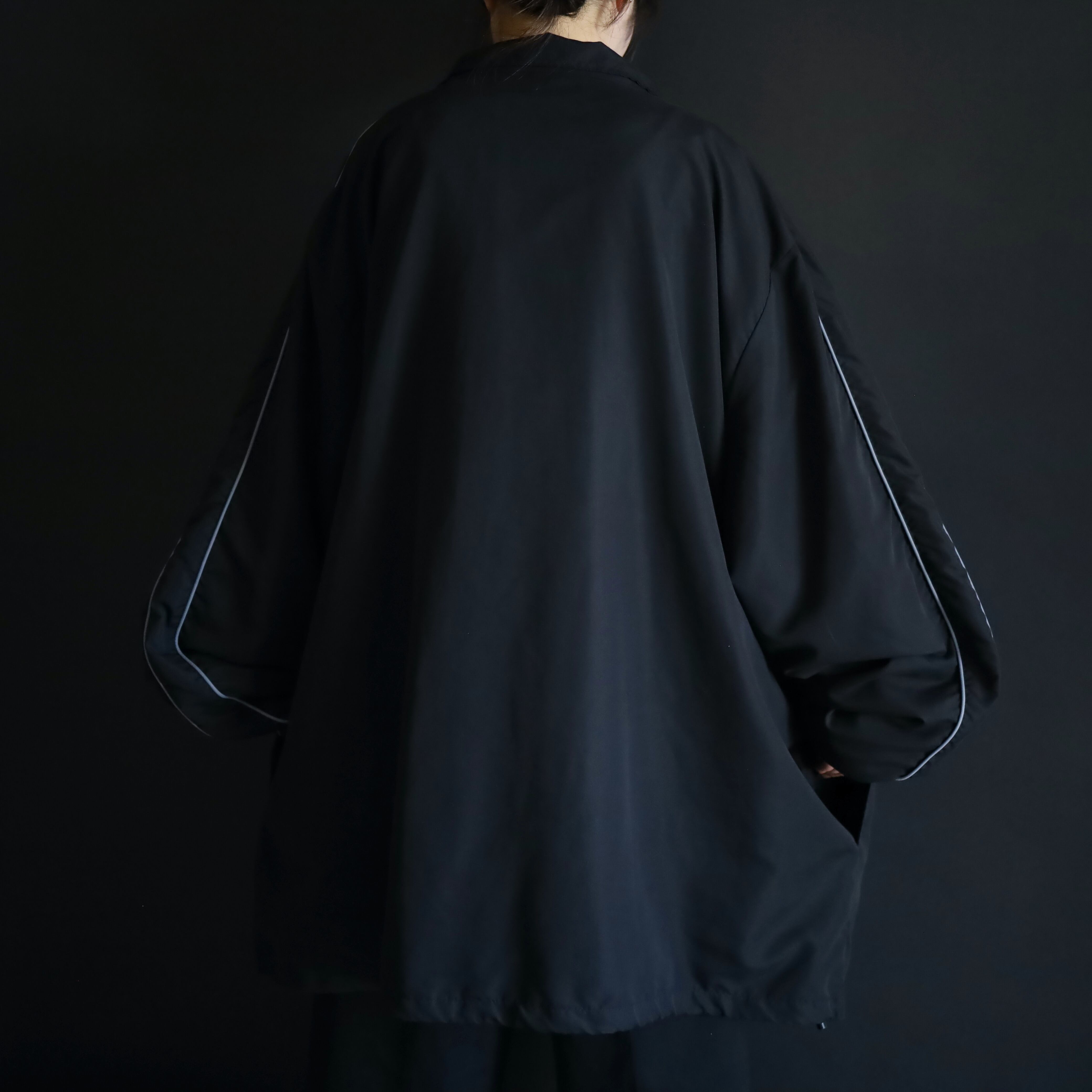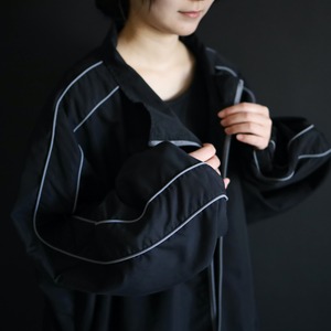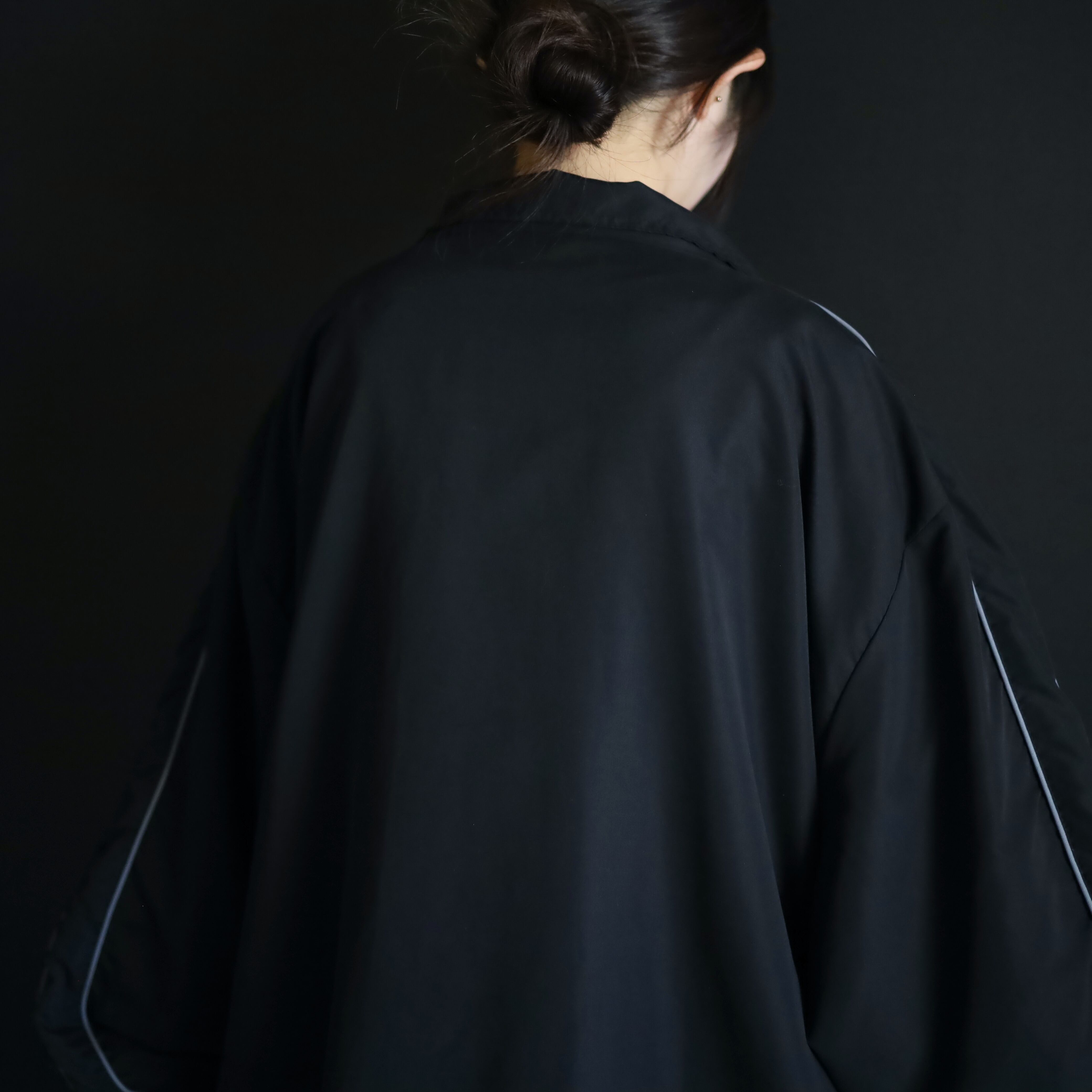 首元から肩を通り,袖先まではグレーのパイピング仕様.