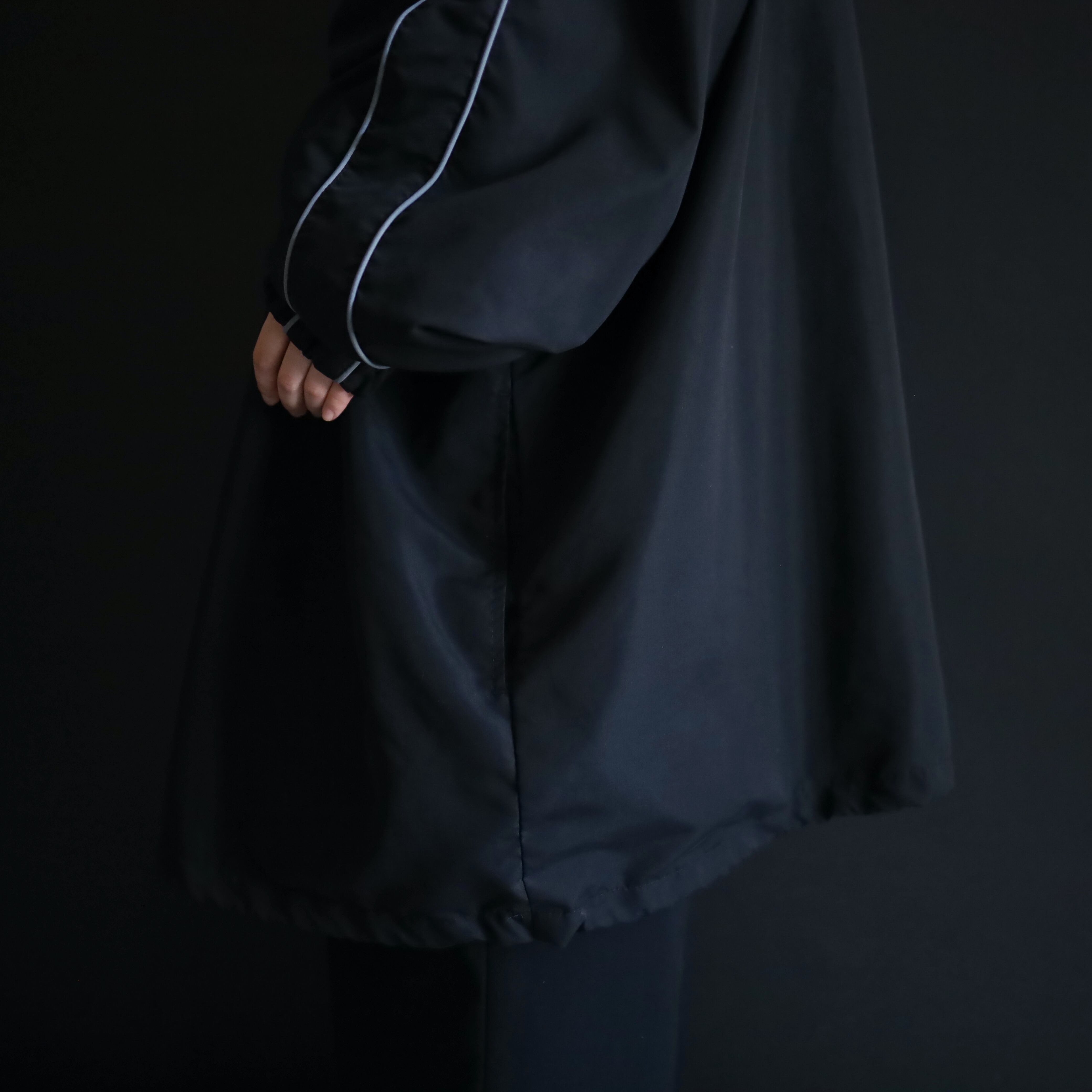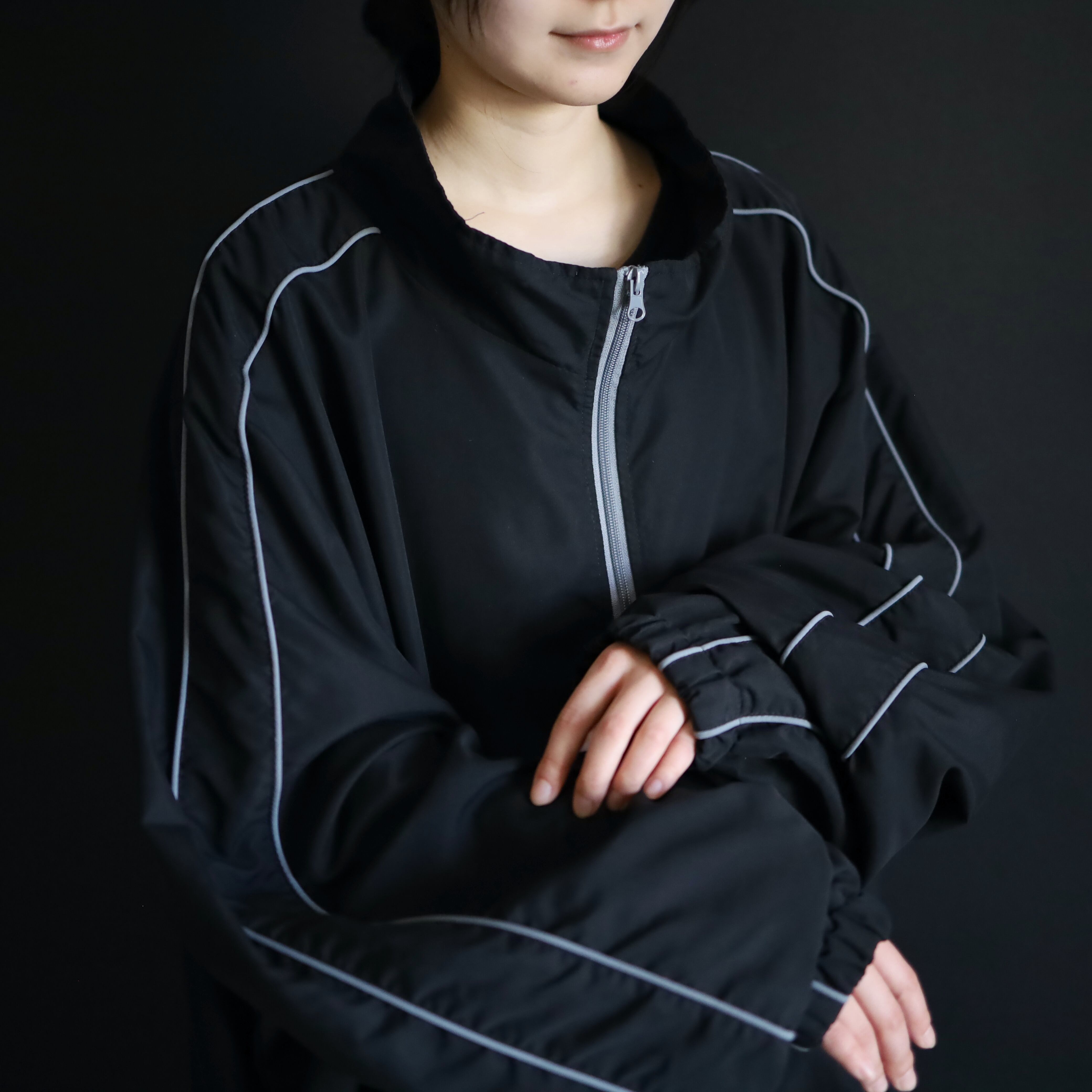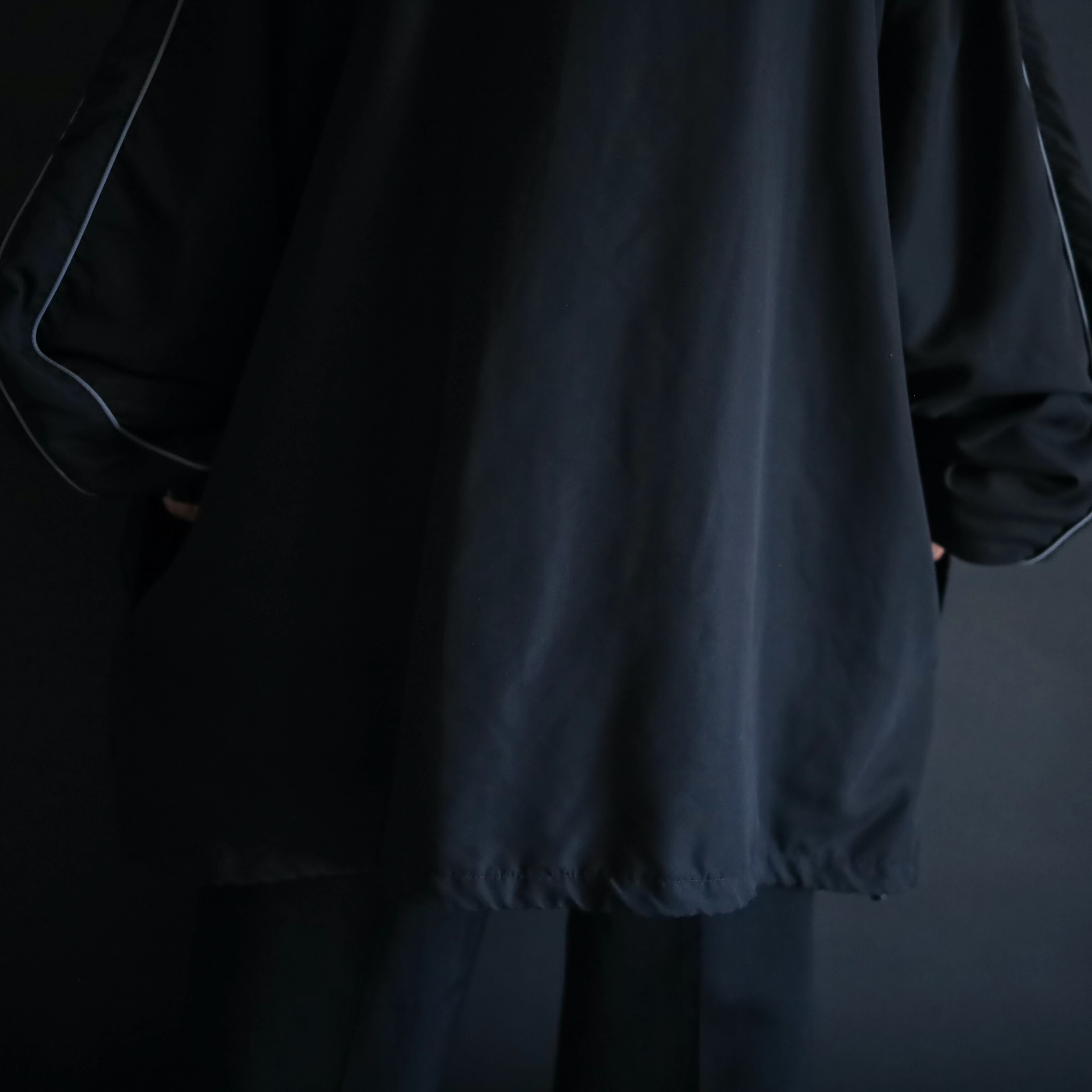 首元から肩を通り,袖先まではグレーのパイピング仕様.