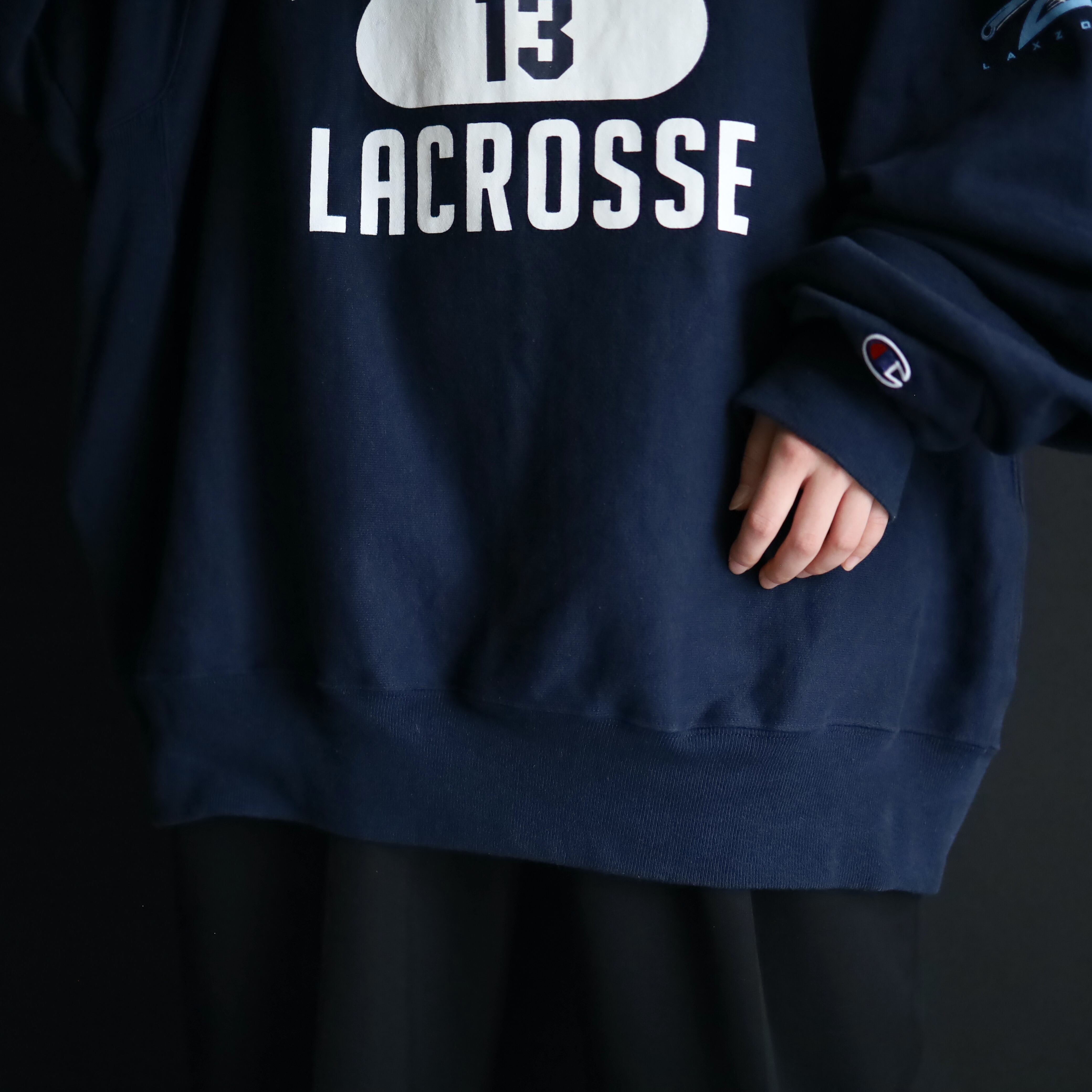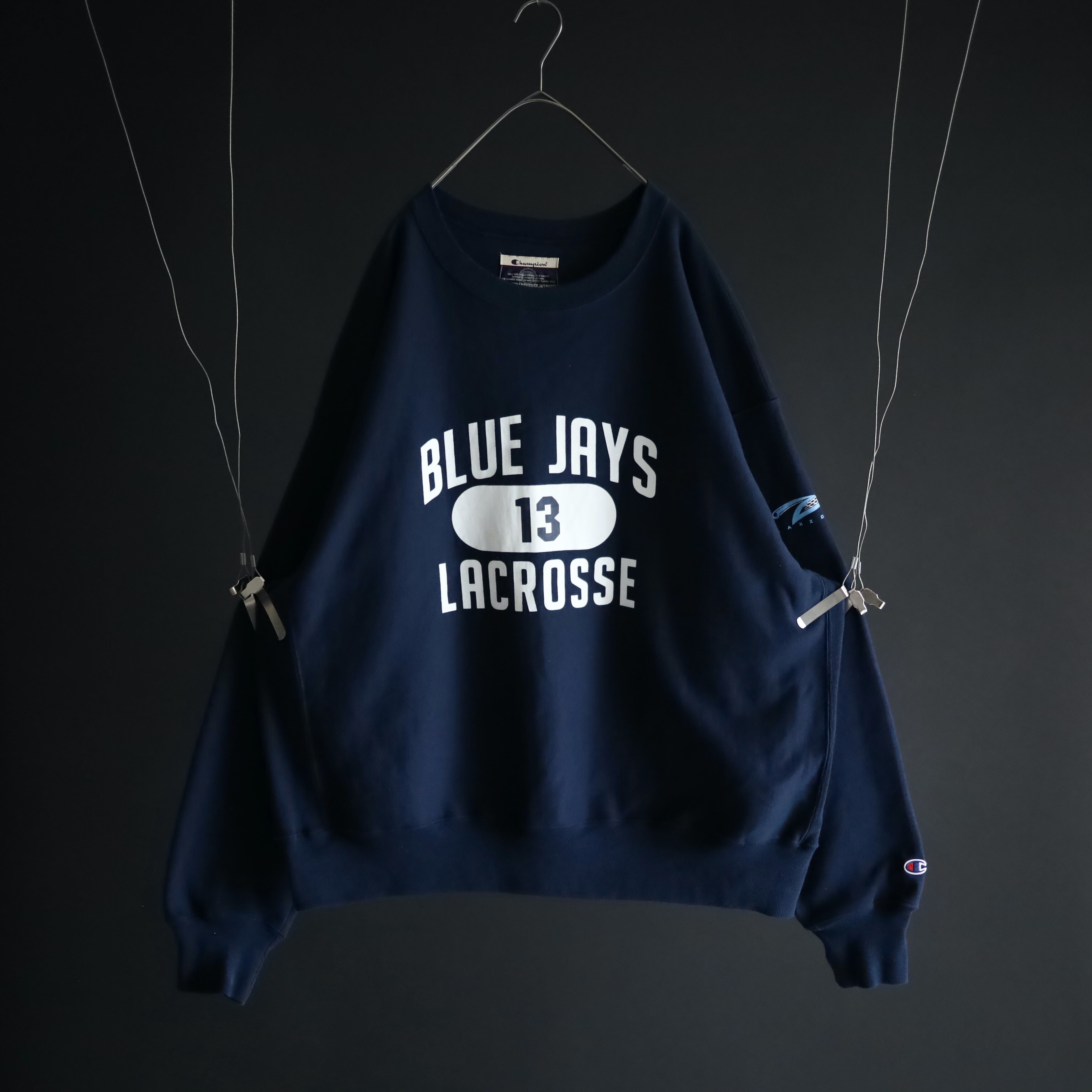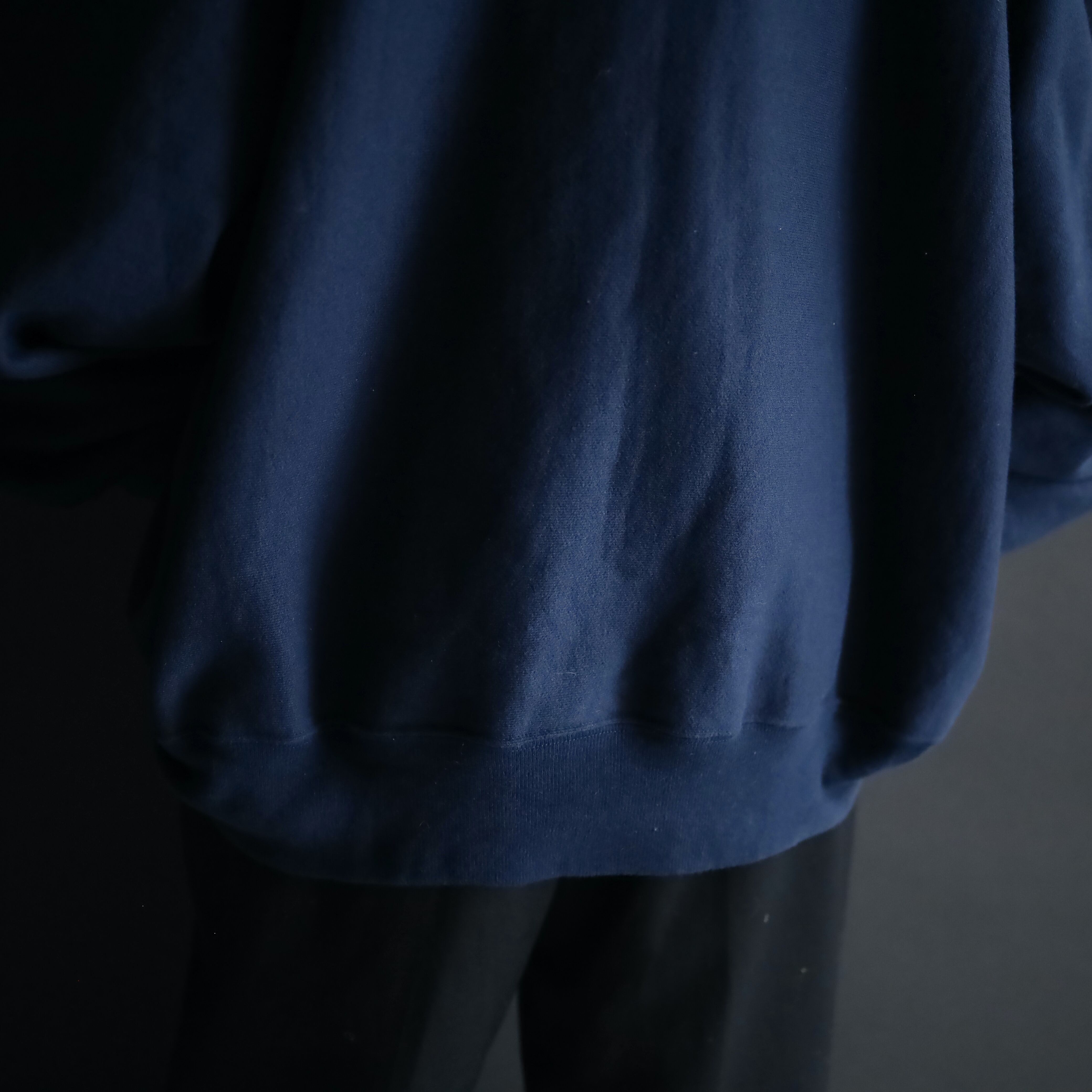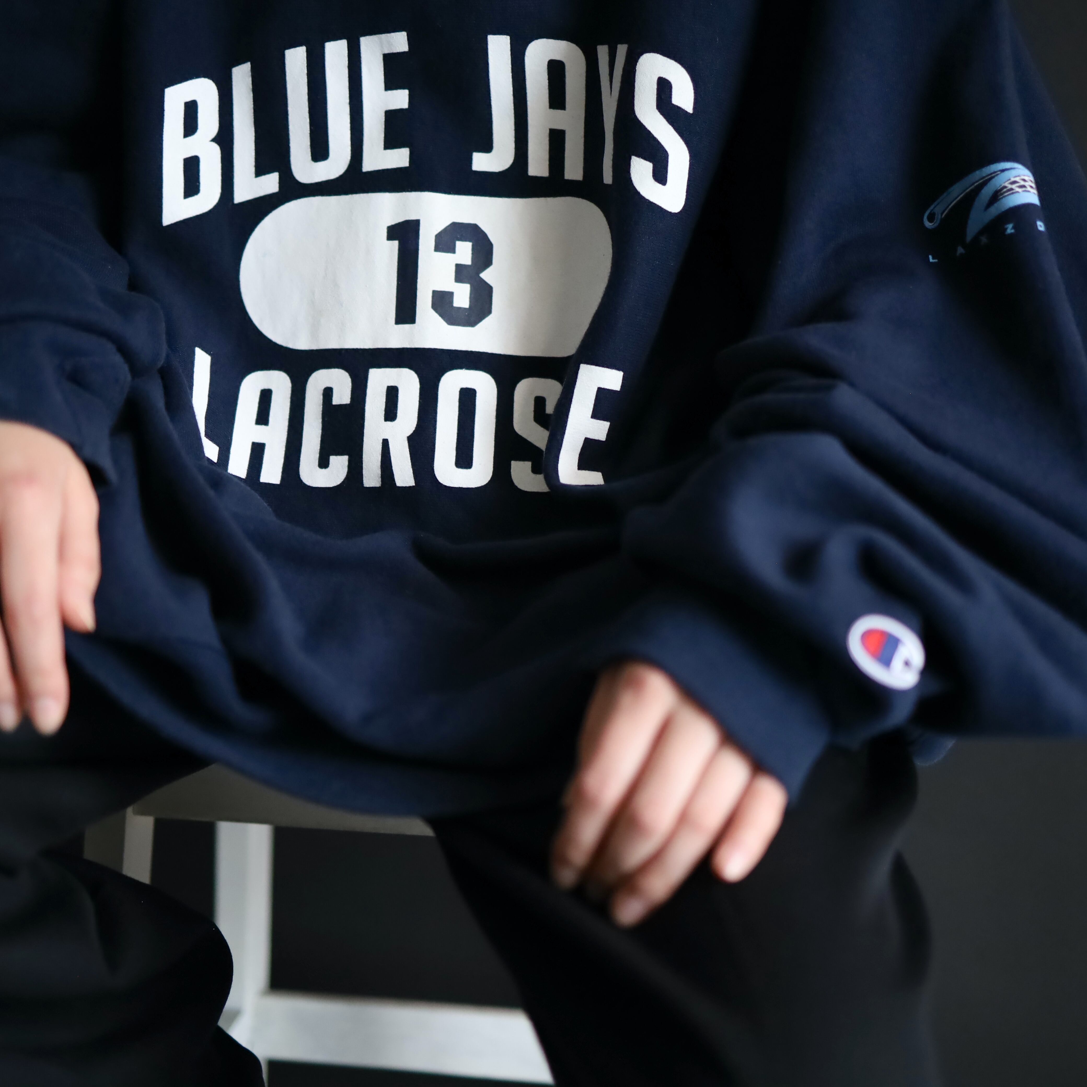 深めのネイビーカラーをベースに,フロントには3段のホワイトラバープリント.