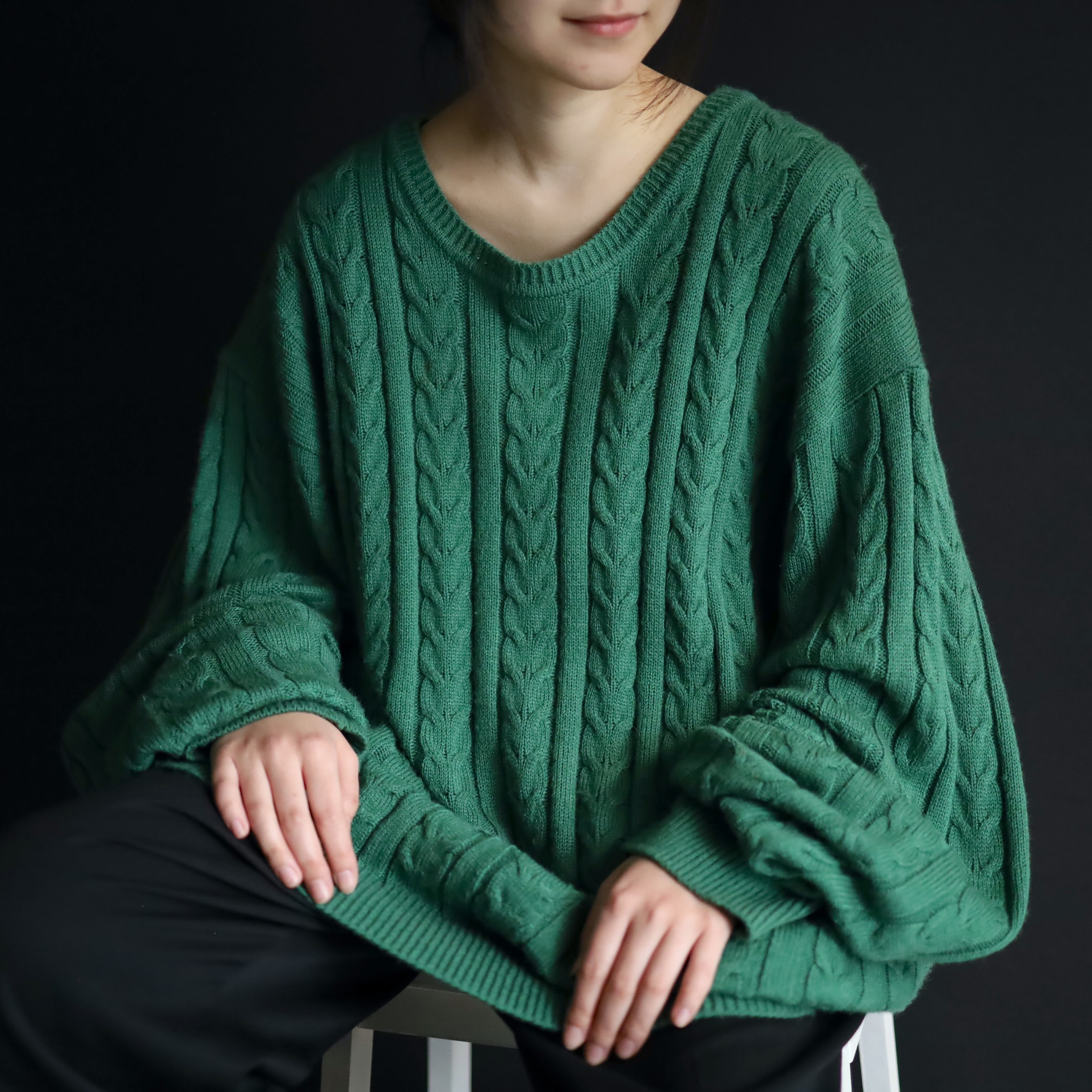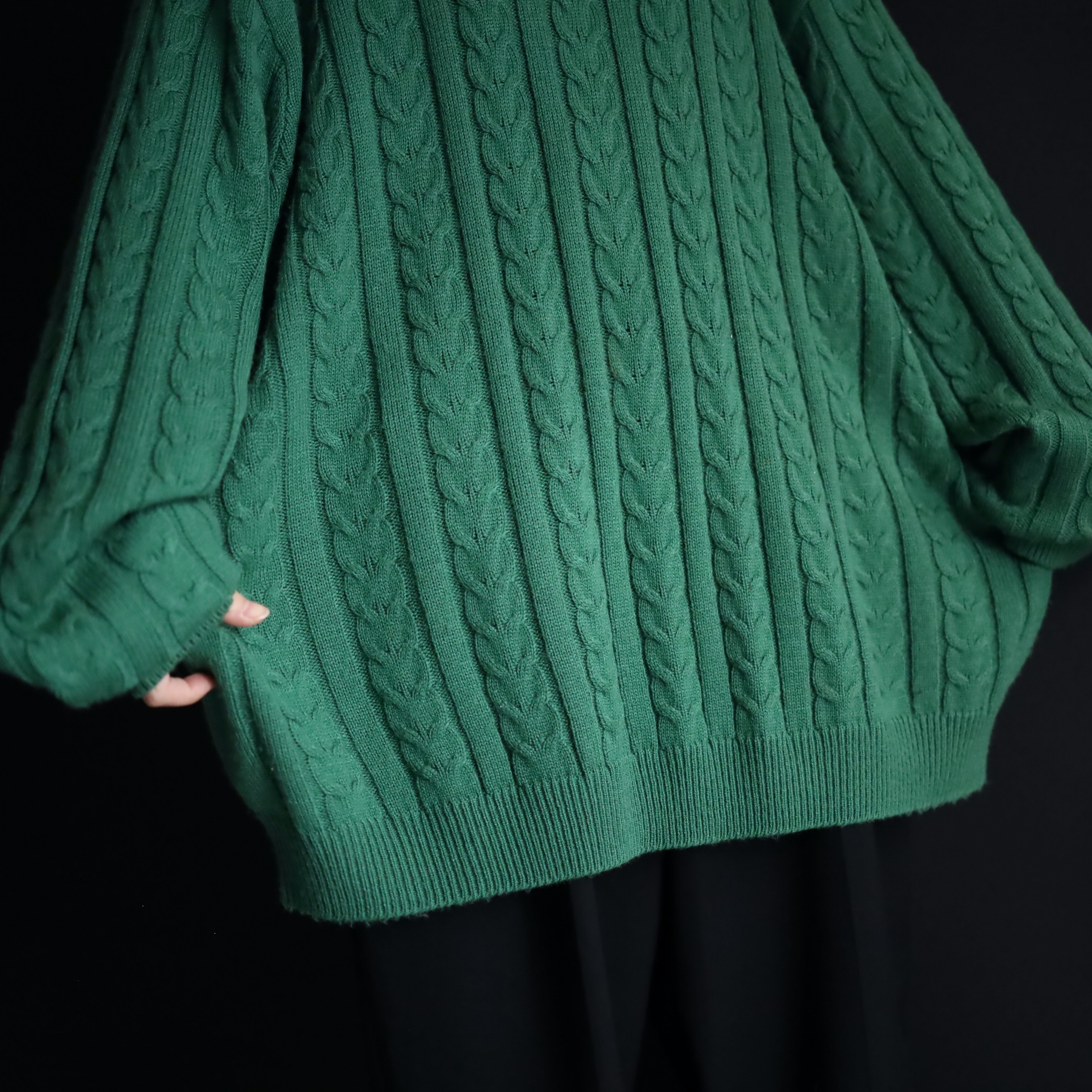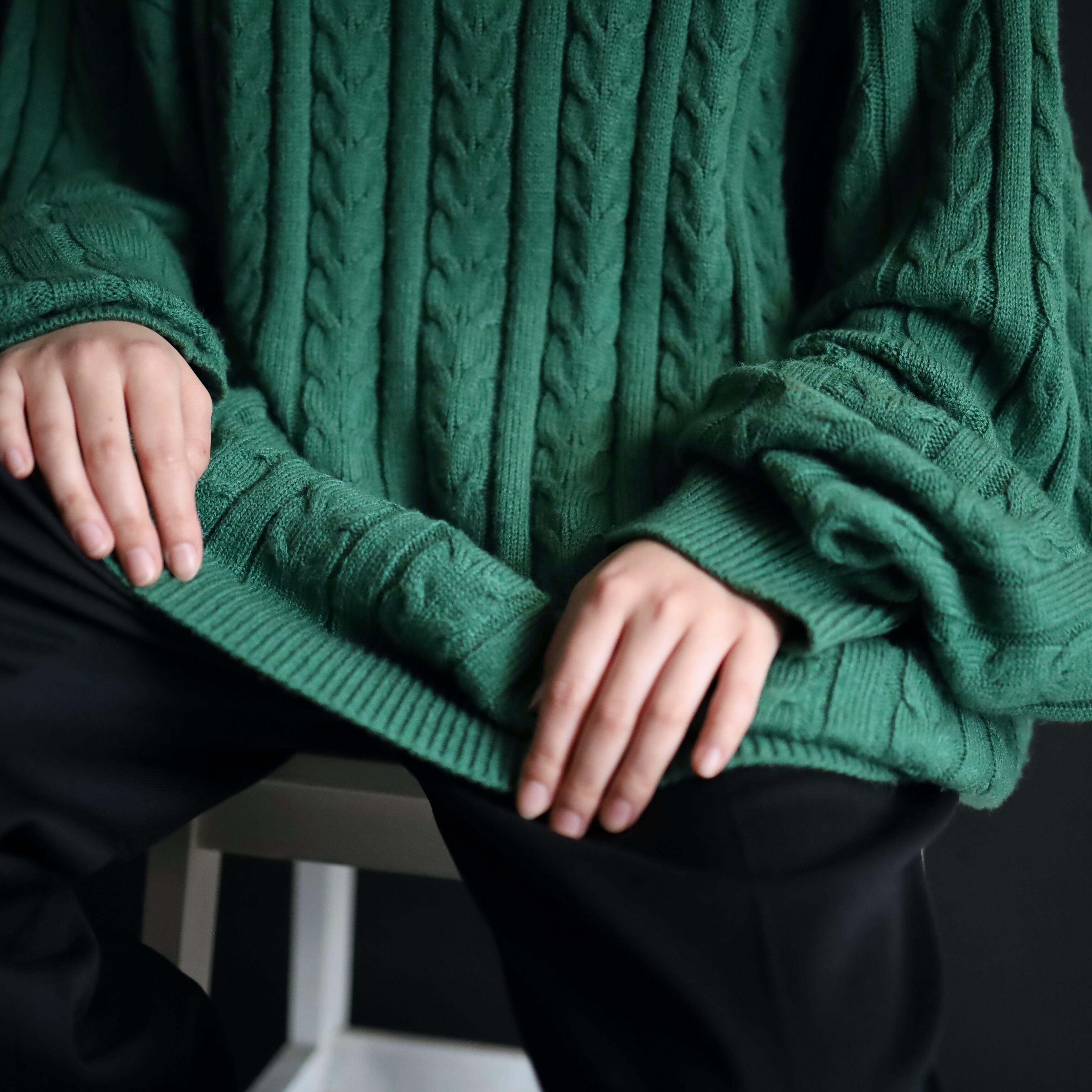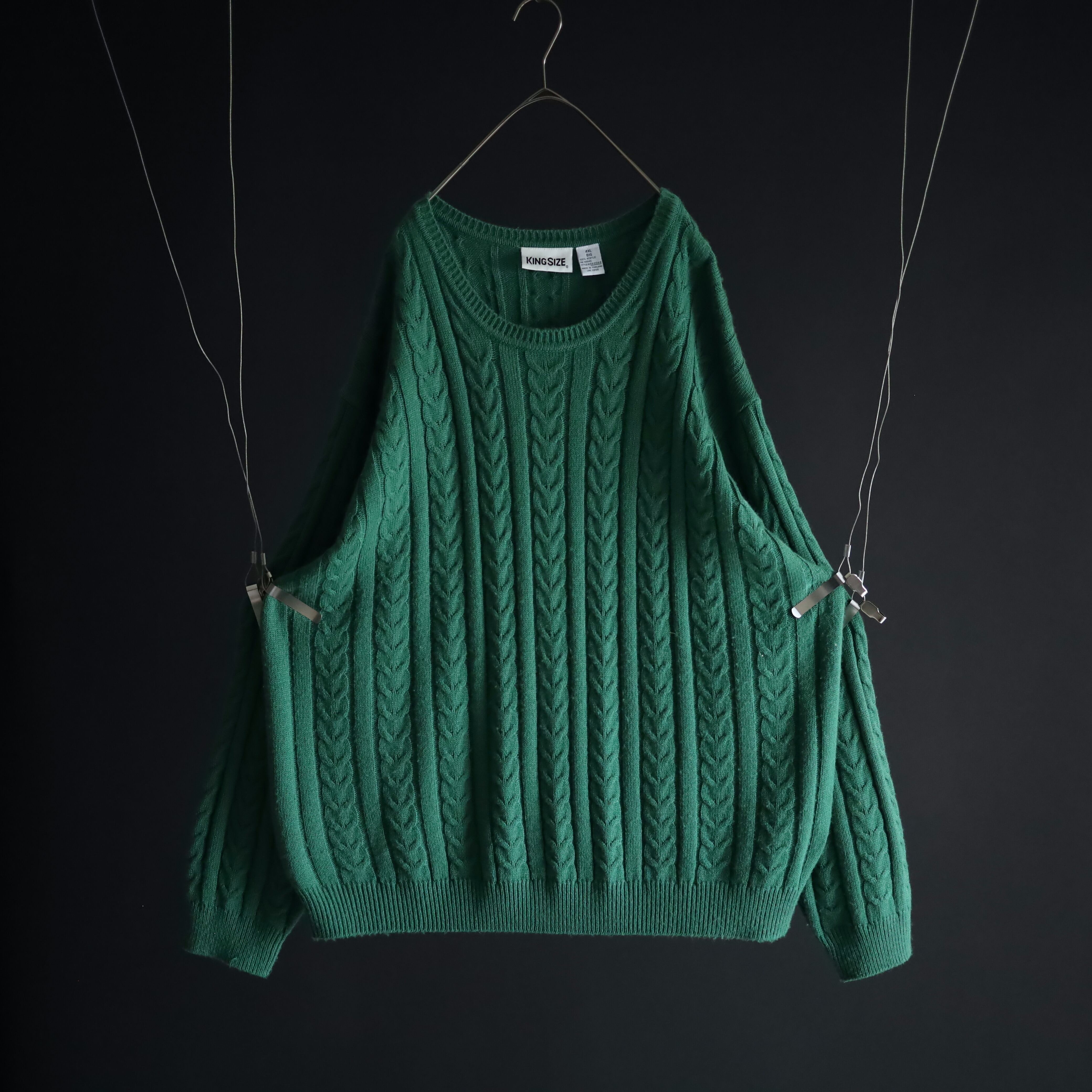 90s'オールドのKING SIZEより,ゆるだぼケーブル編みカラーニットセーター.
