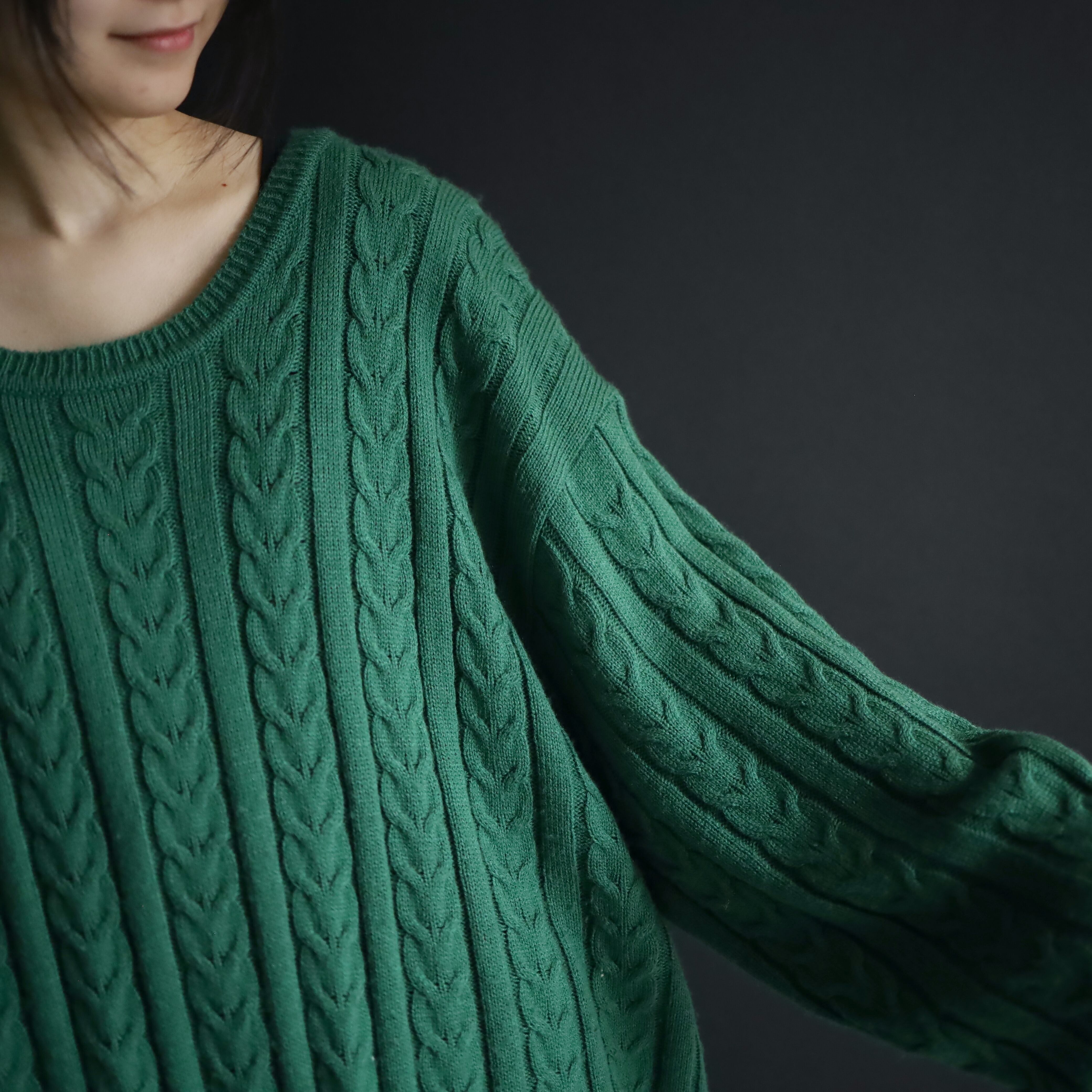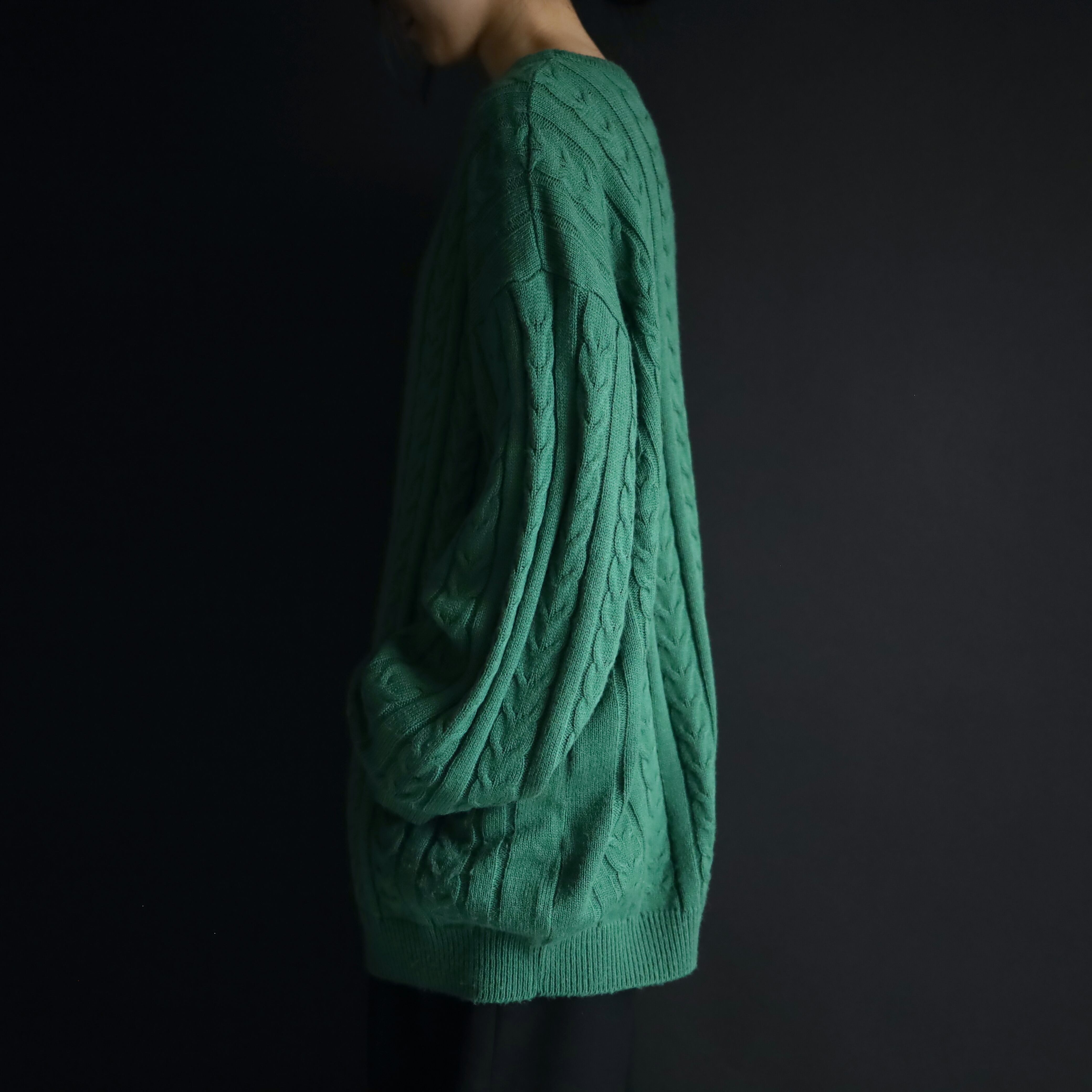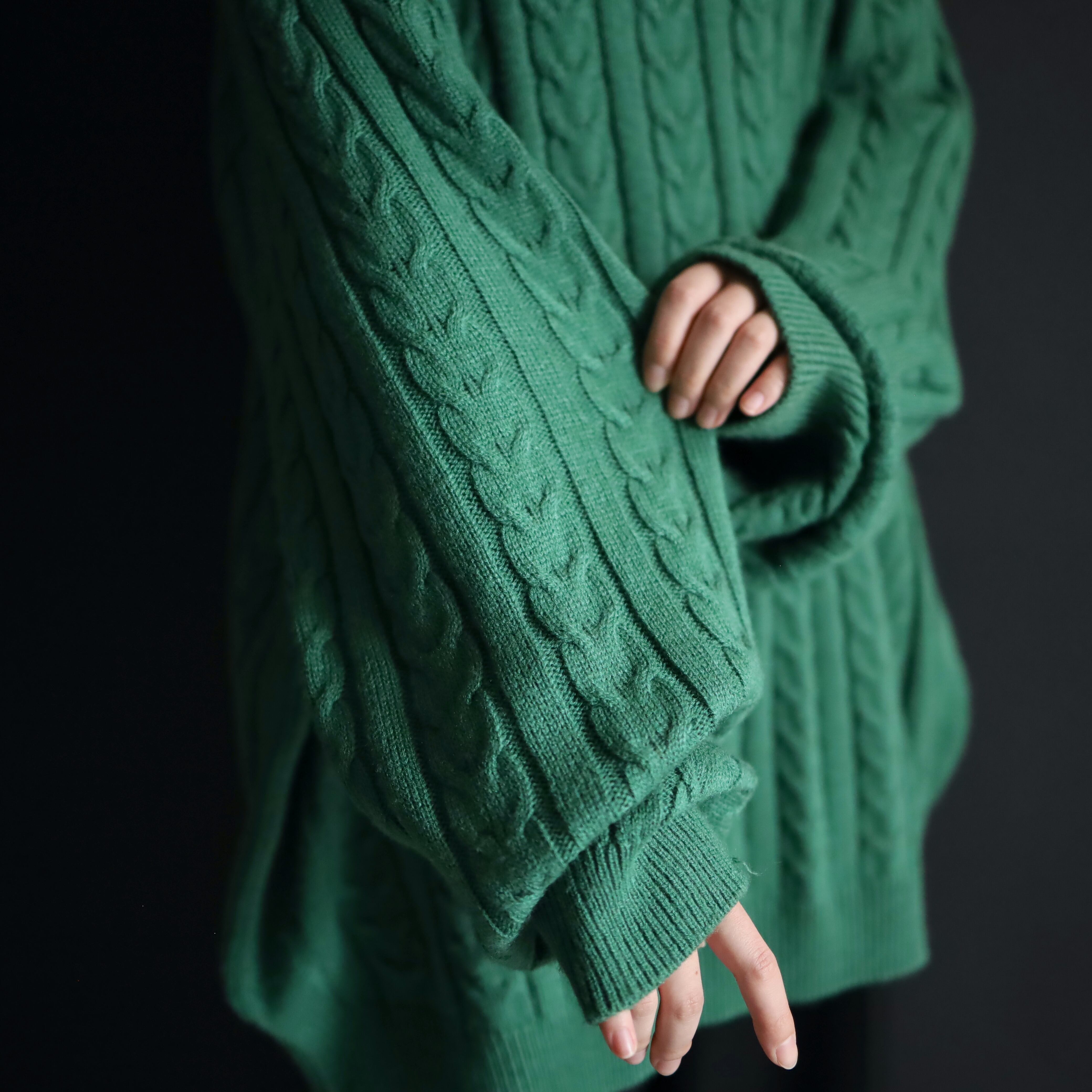 90s'オールドのKING SIZEより,ゆるだぼケーブル編みカラーニットセーター.