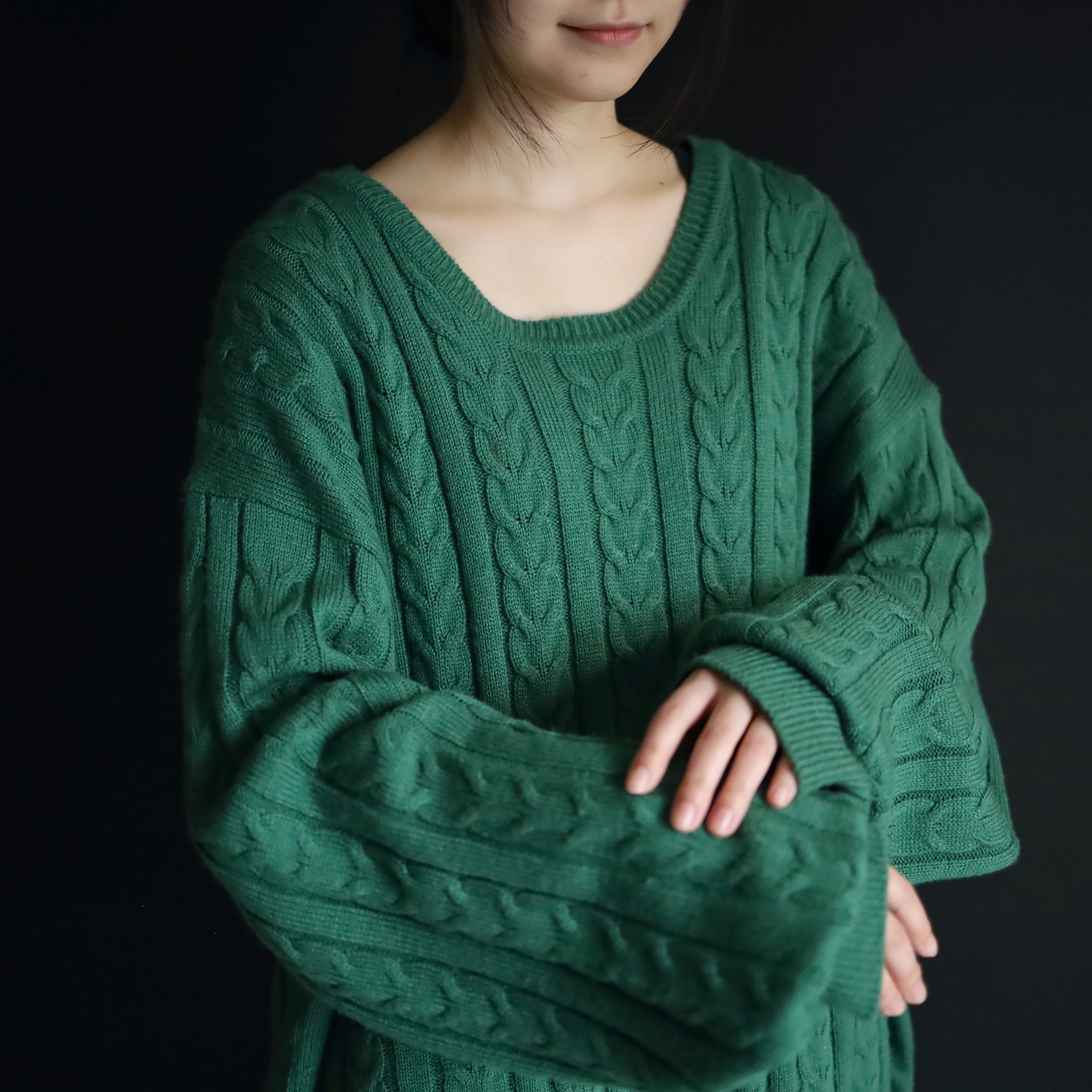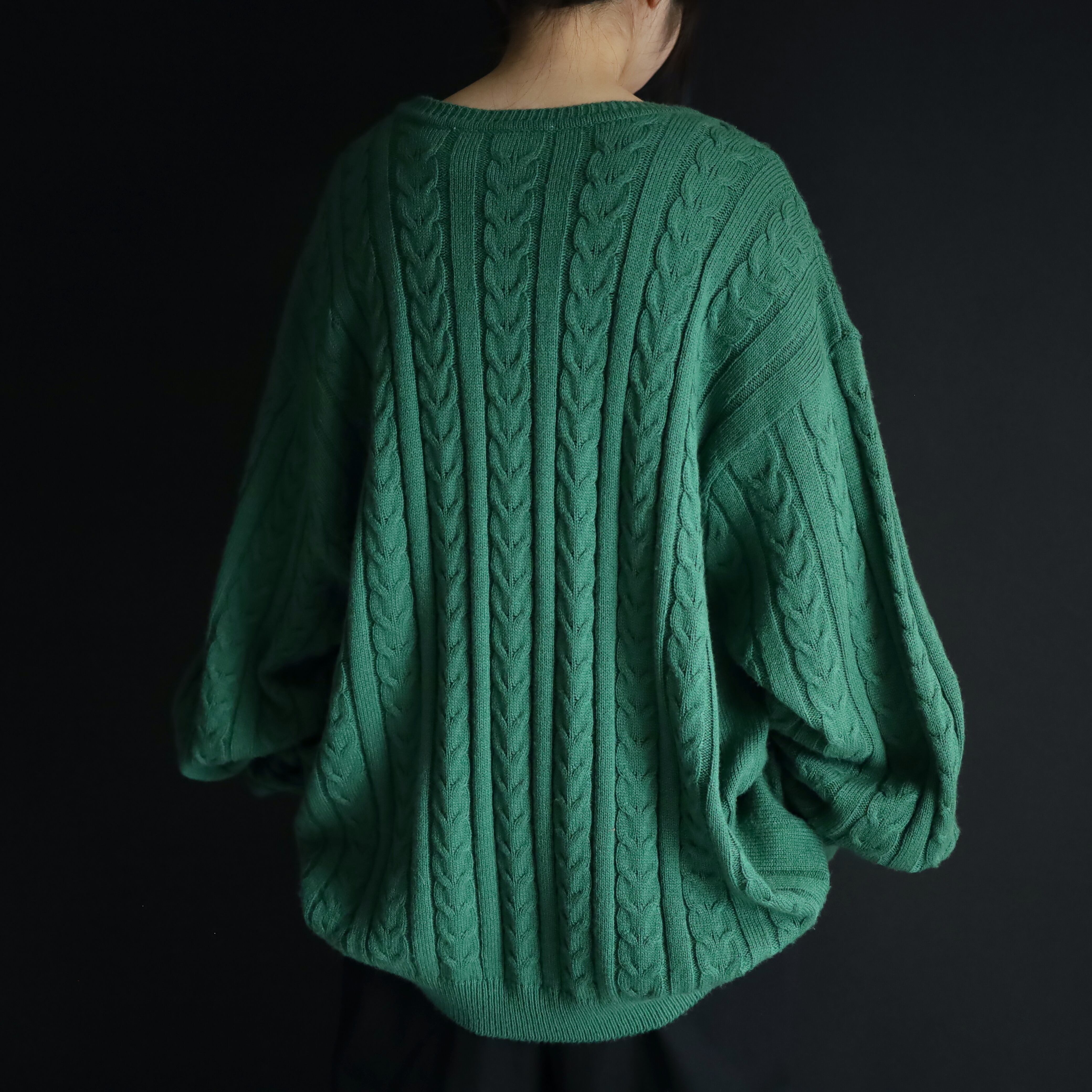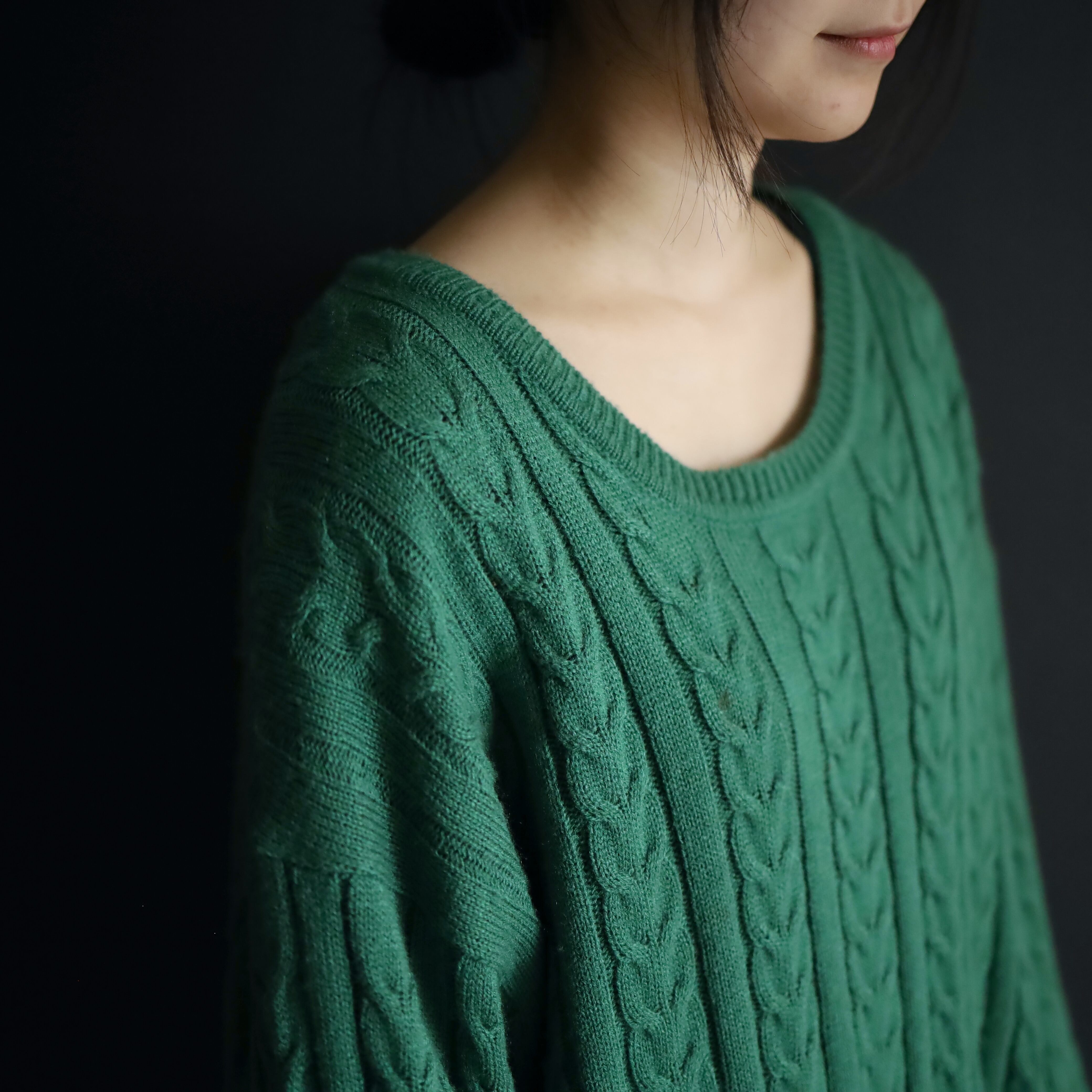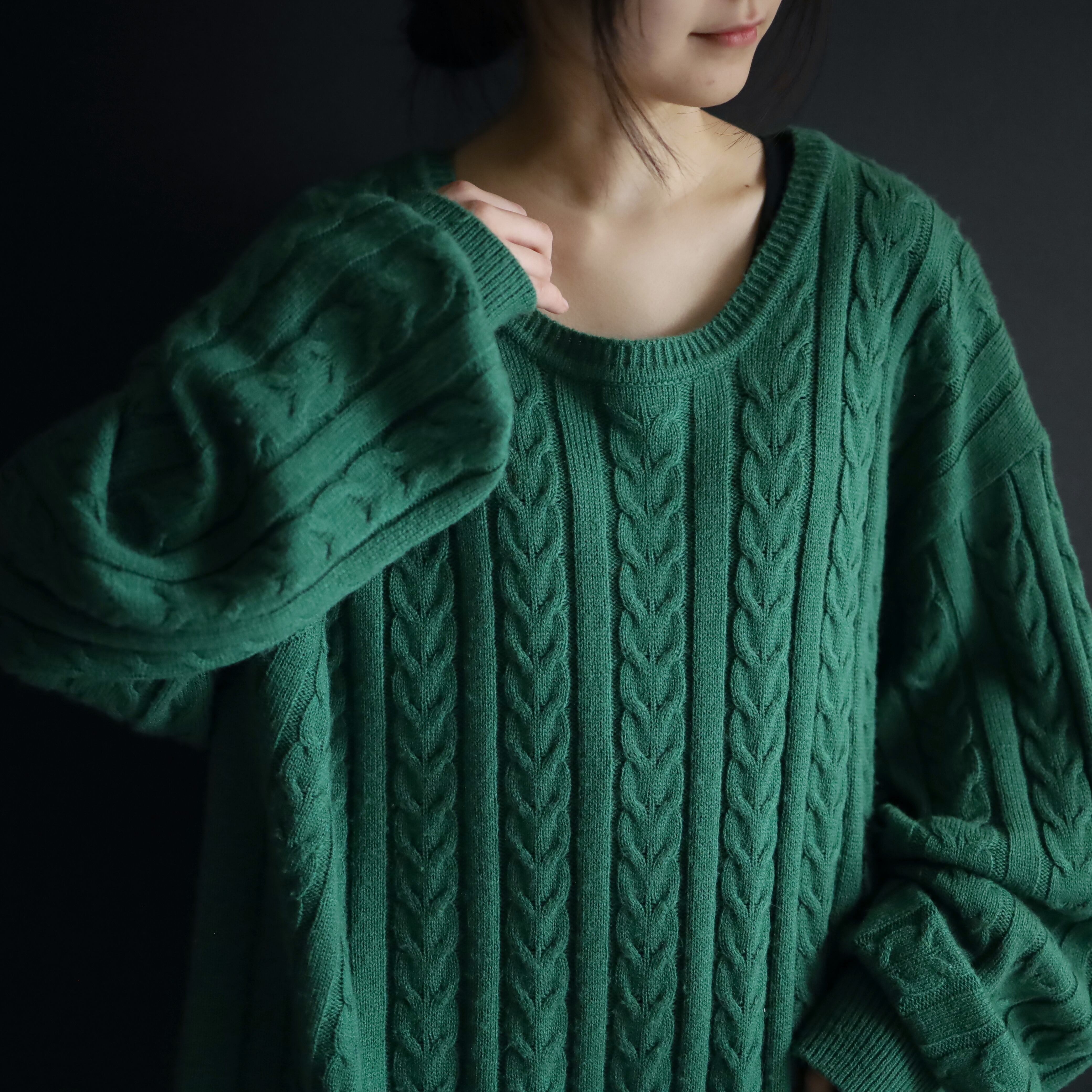 90s'オールドのKING SIZEより,ゆるだぼケーブル編みカラーニットセーター.