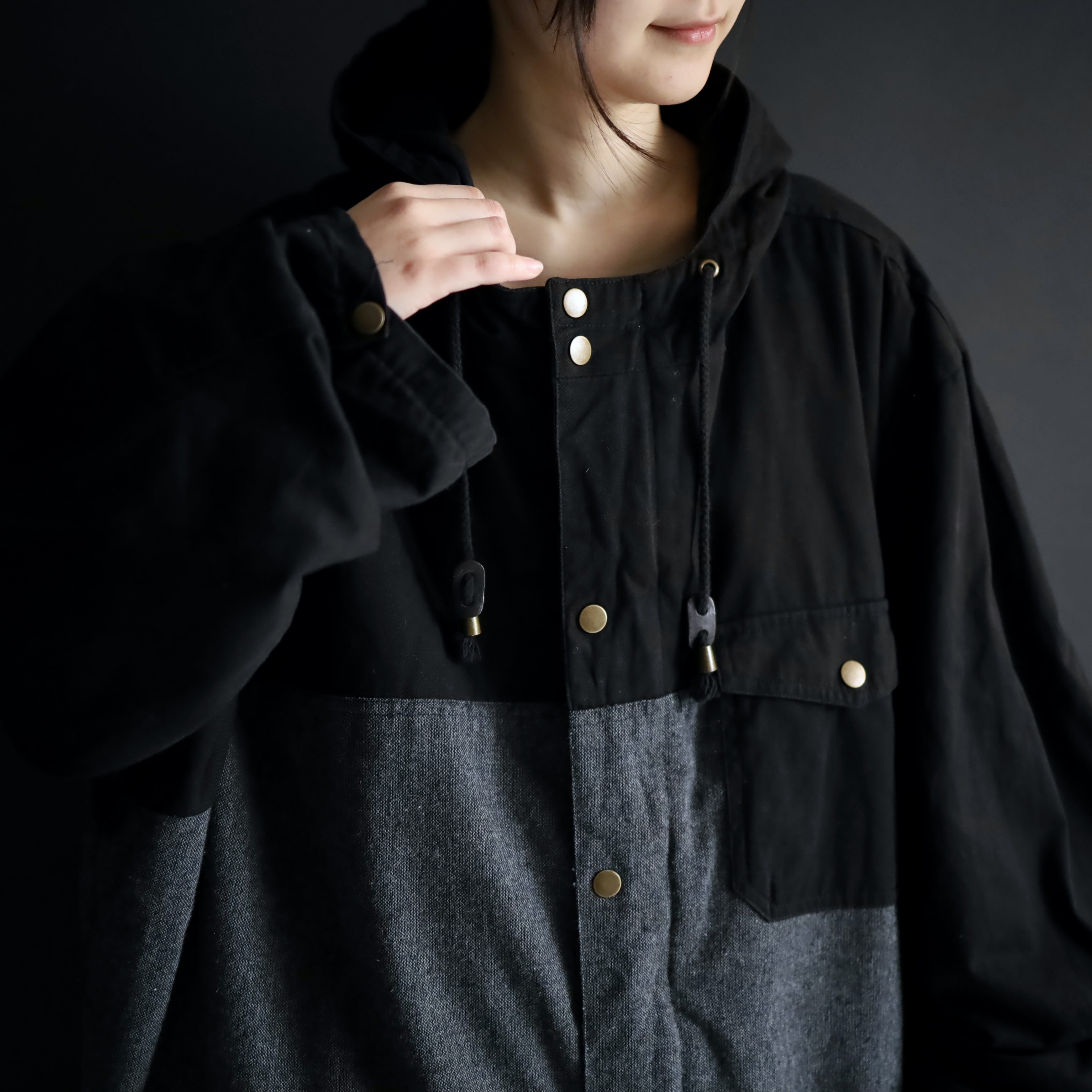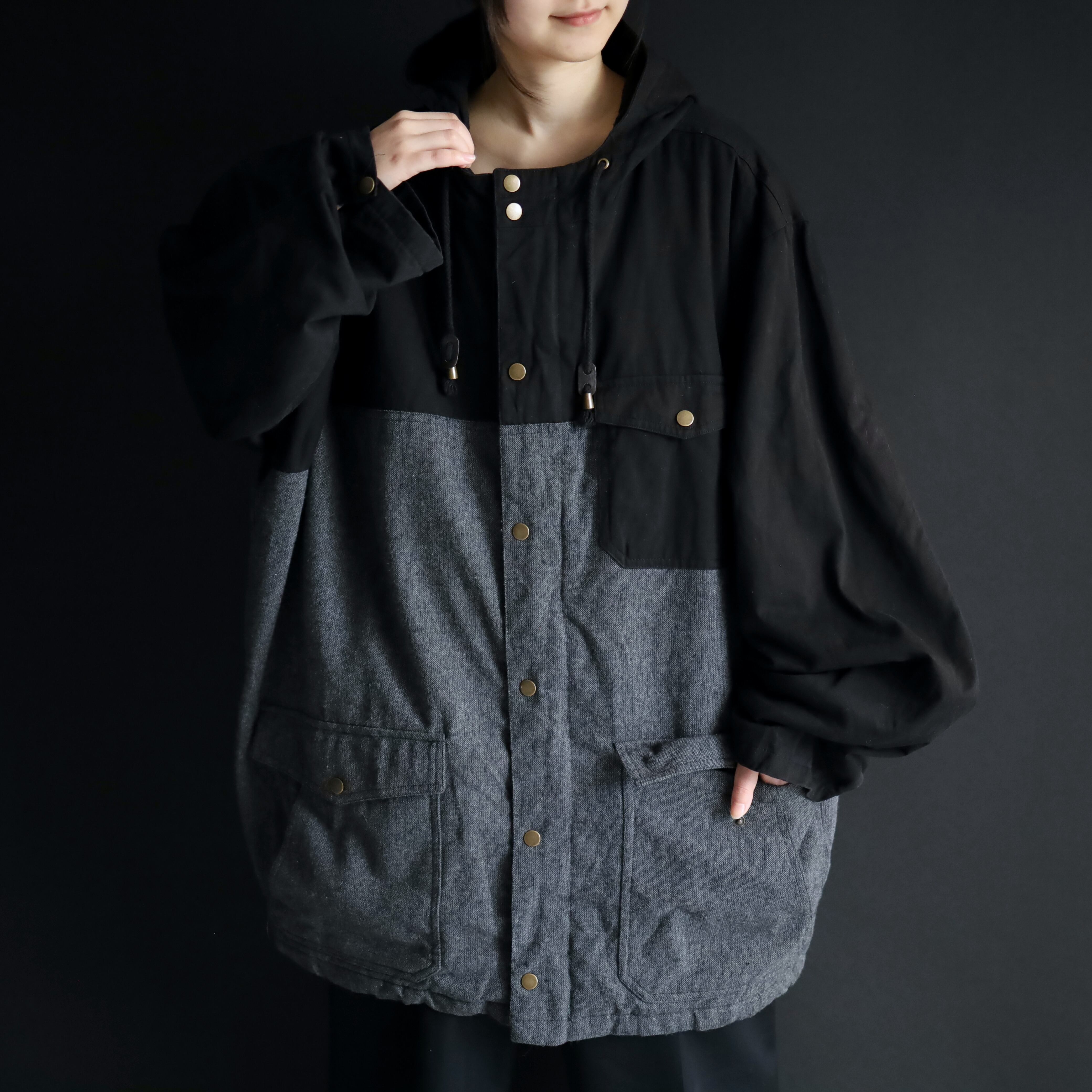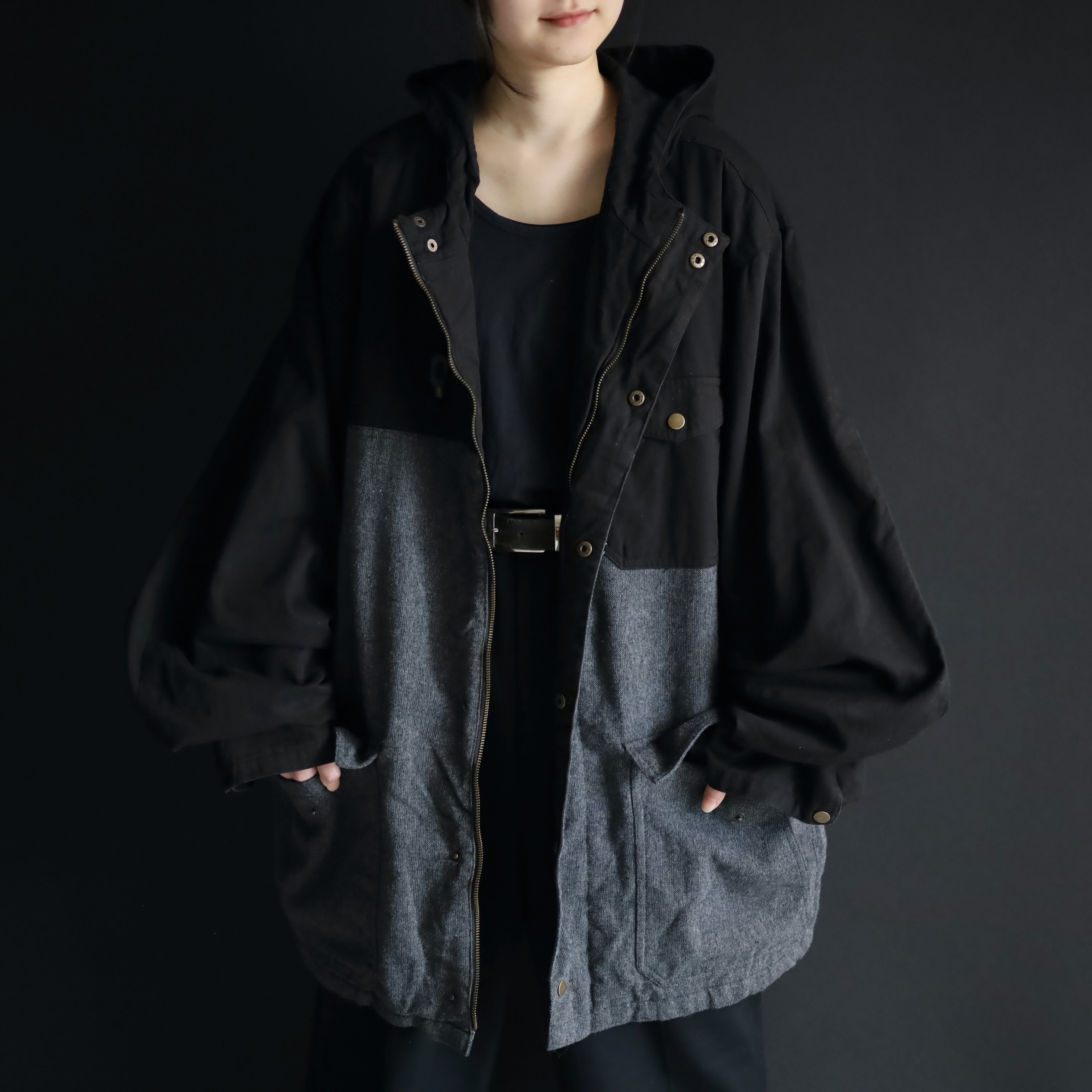 モノクロカラーの切替とこのビッグシルエットによって,ストモードなスタイルにハマる一枚です.