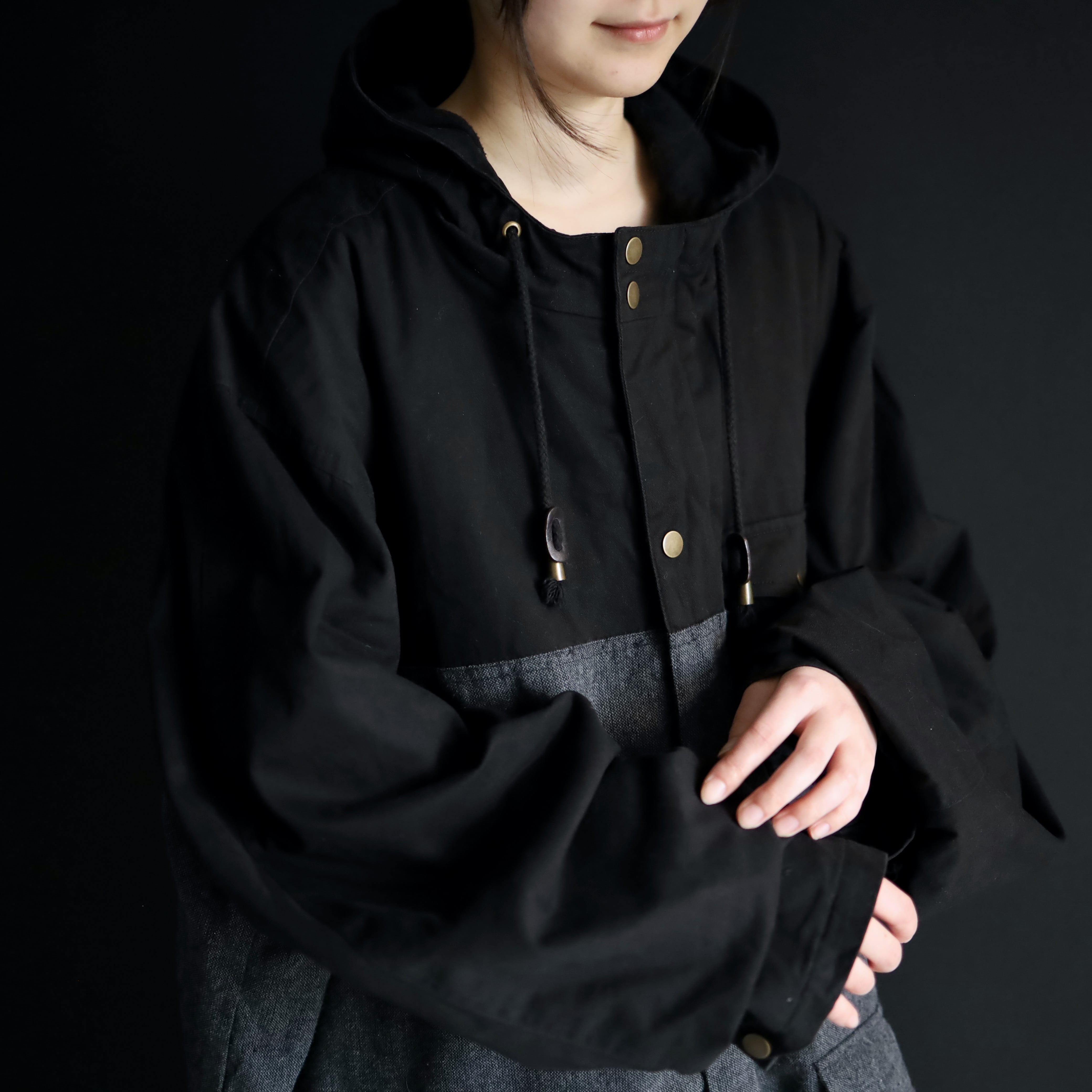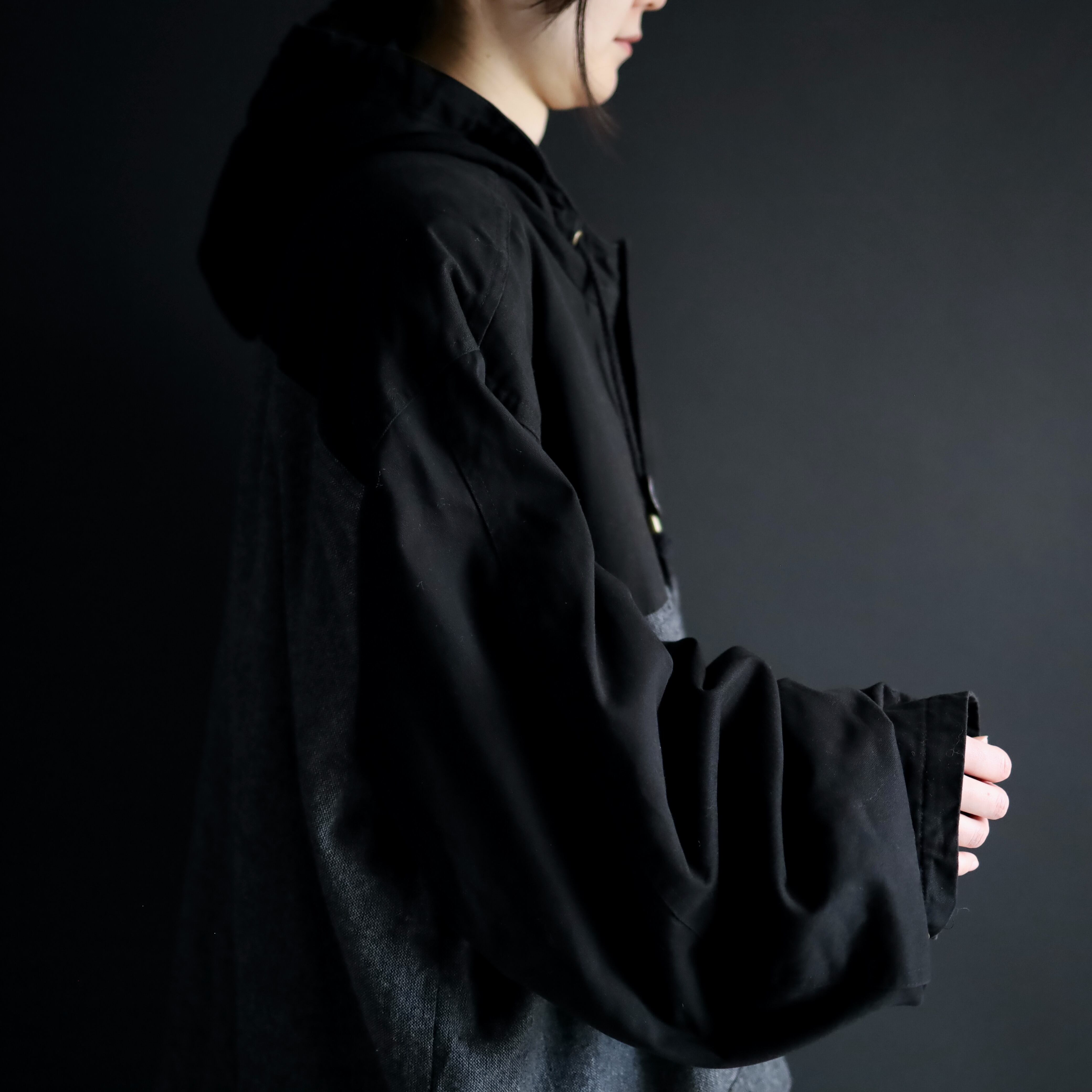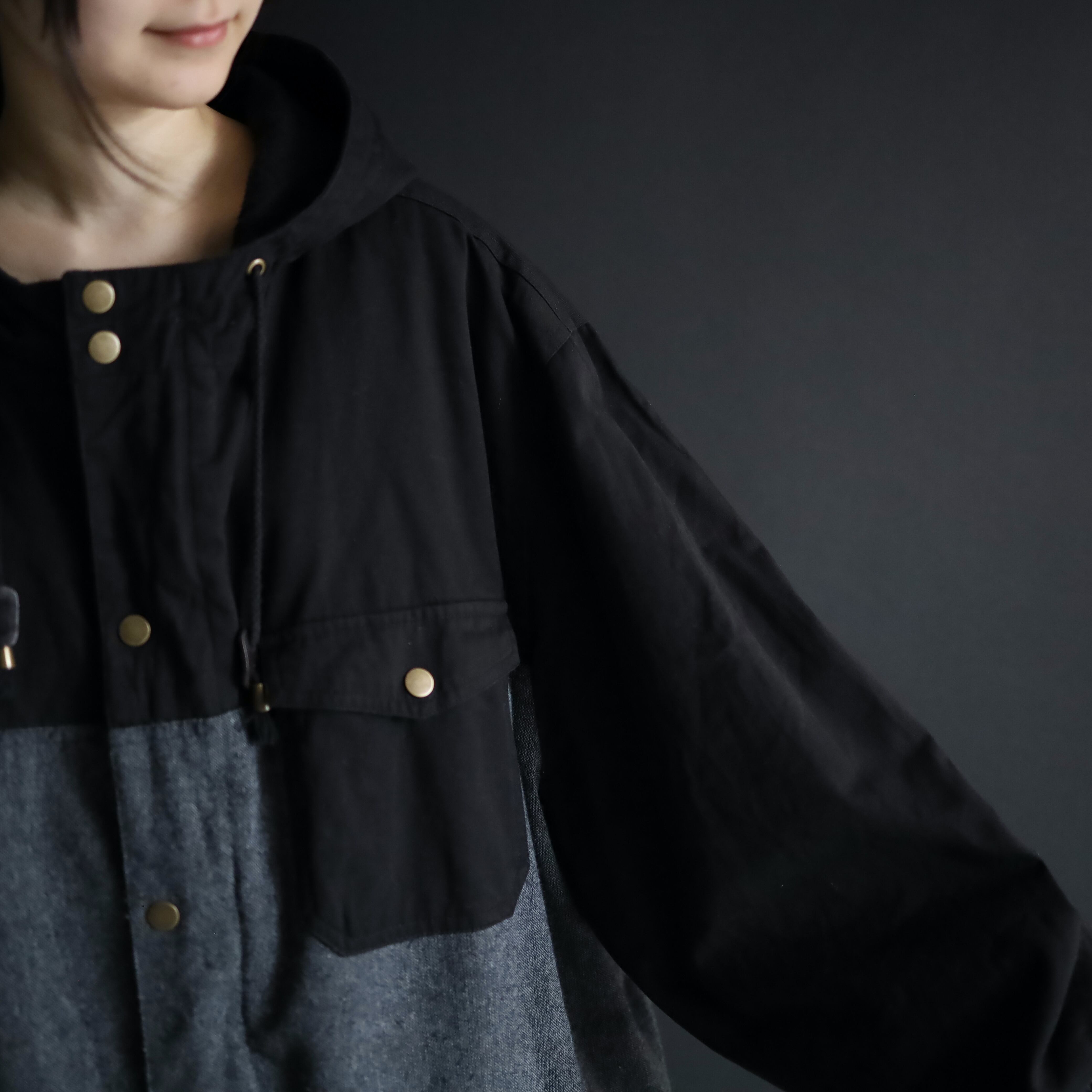 モノクロカラーの切替とこのビッグシルエットによって,ストモードなスタイルにハマる一枚です.