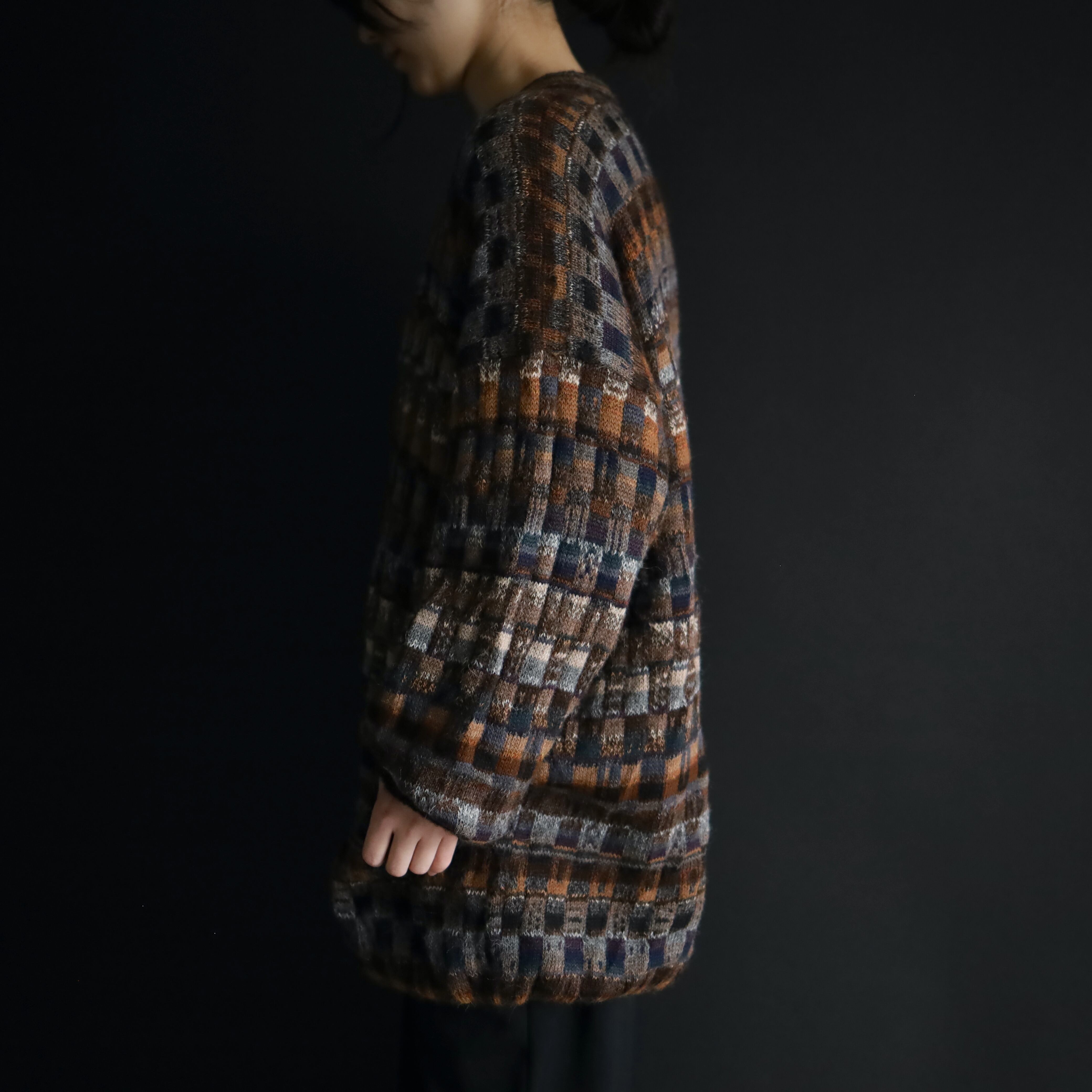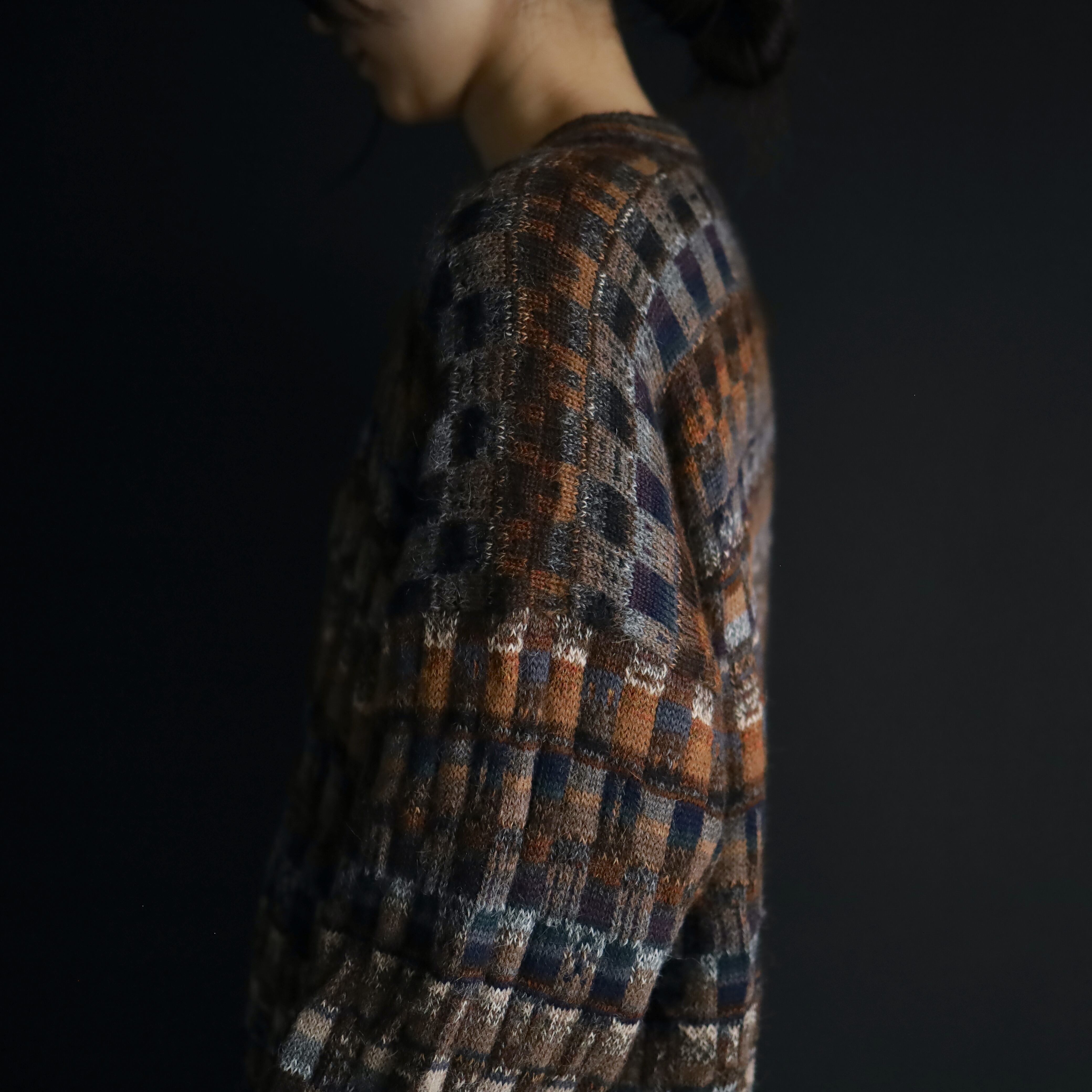 ブラウンやテラコッタ系の暖色をベースに,ネイビー,パープル,グリーン,グレーなど,マルチなカラーリングでデザインされた一枚.