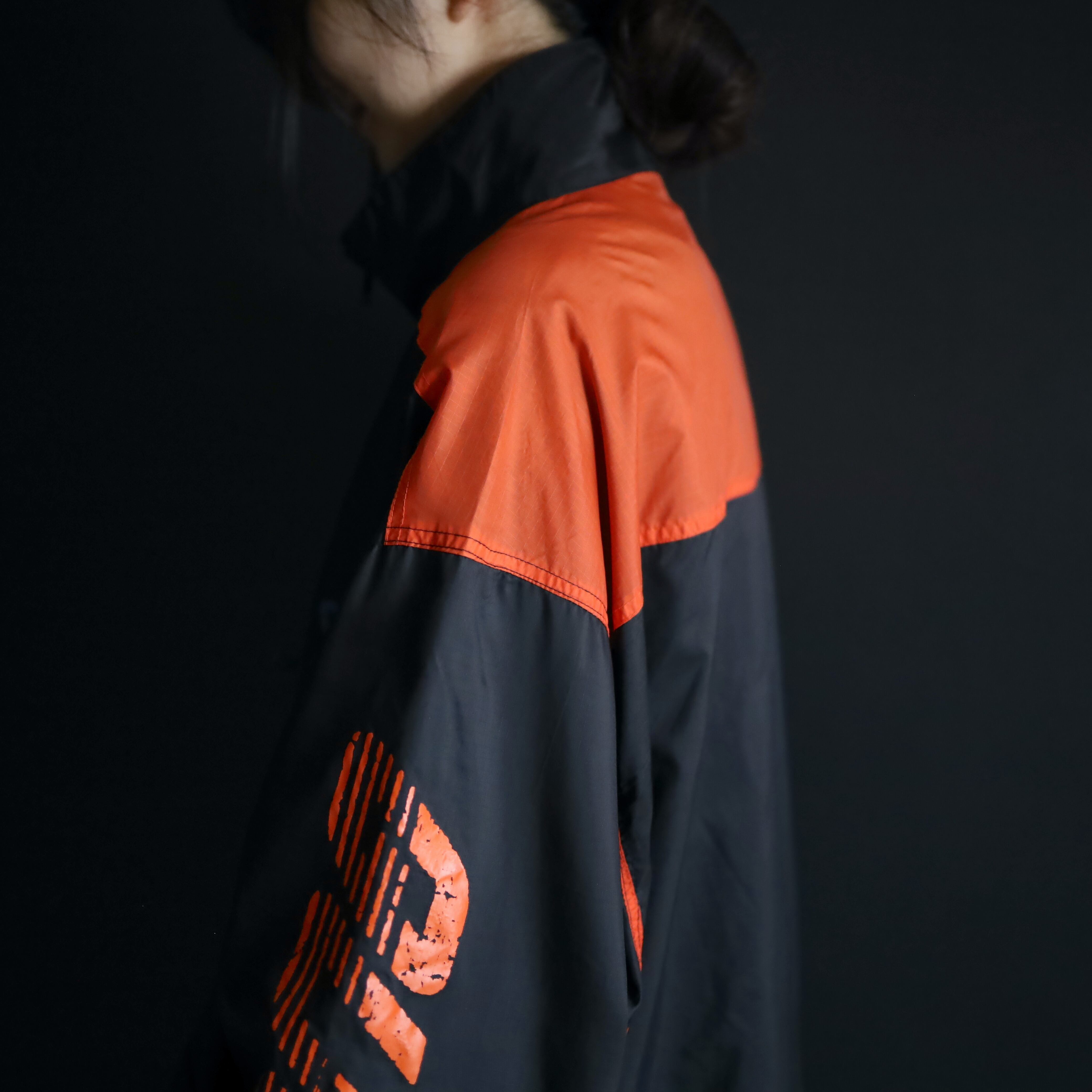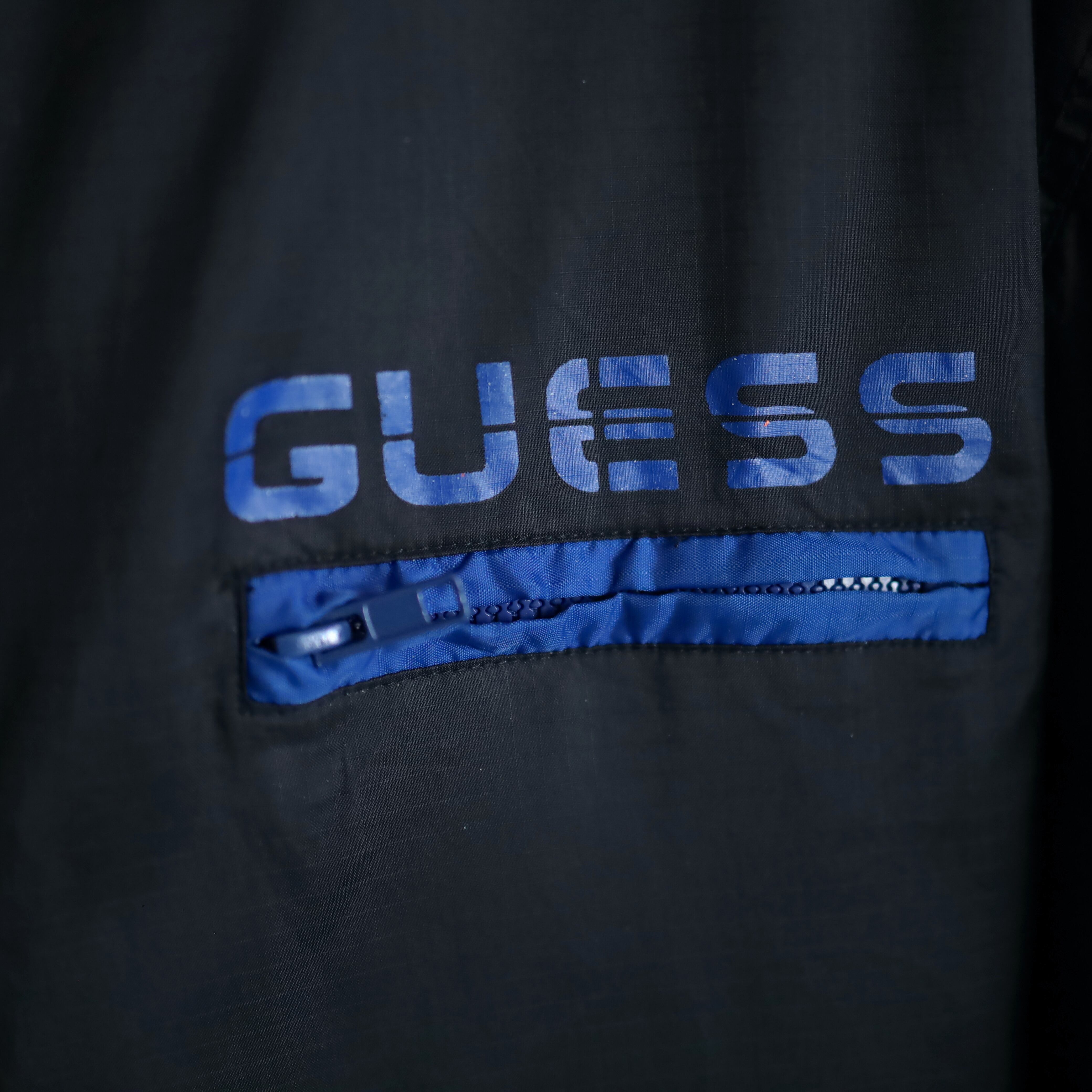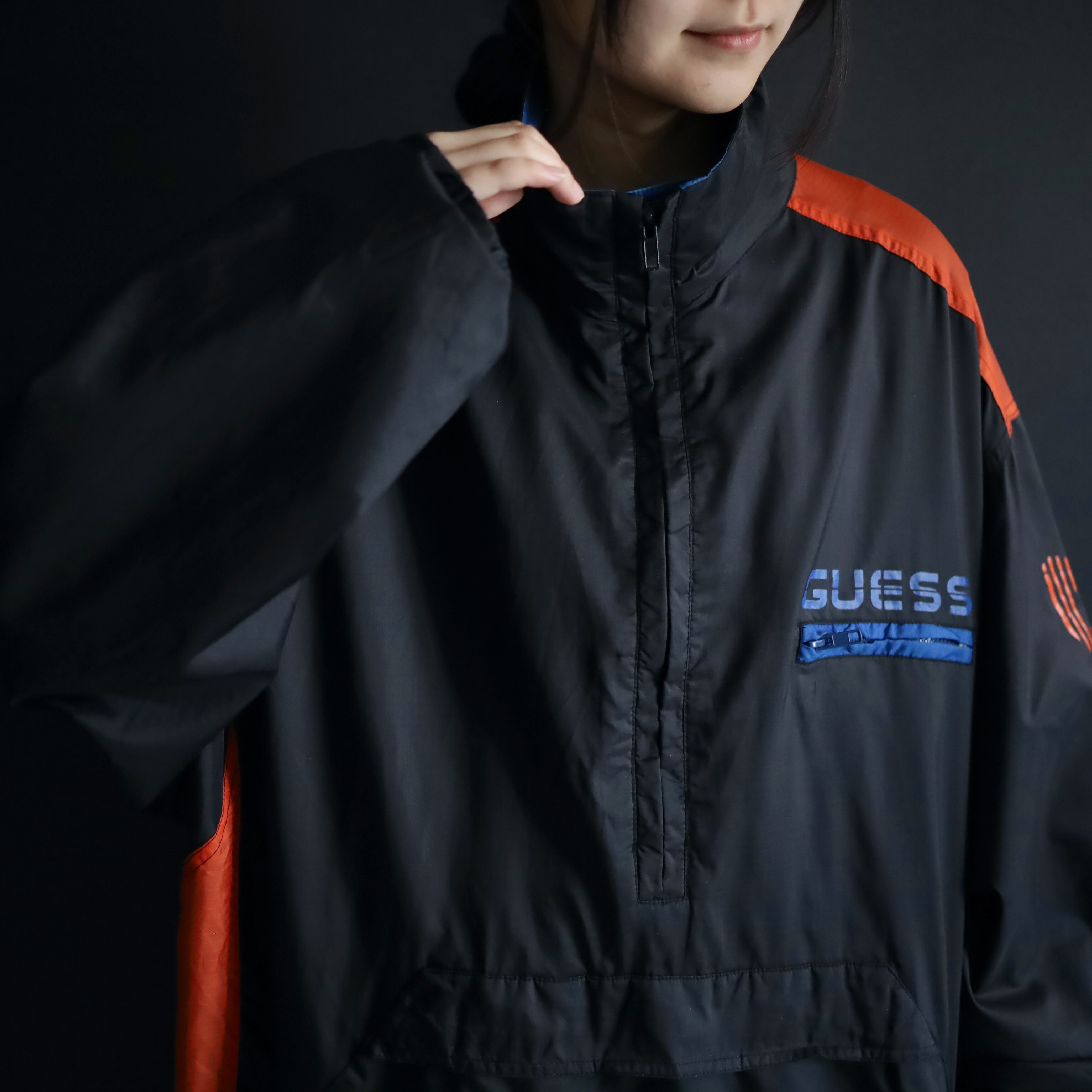 胸元にはブルーカラー,左袖にはオレンジカラーで,それぞれGUESSのブランド名プリントが施され,ストリート感溢れる一枚に仕上がってます.
