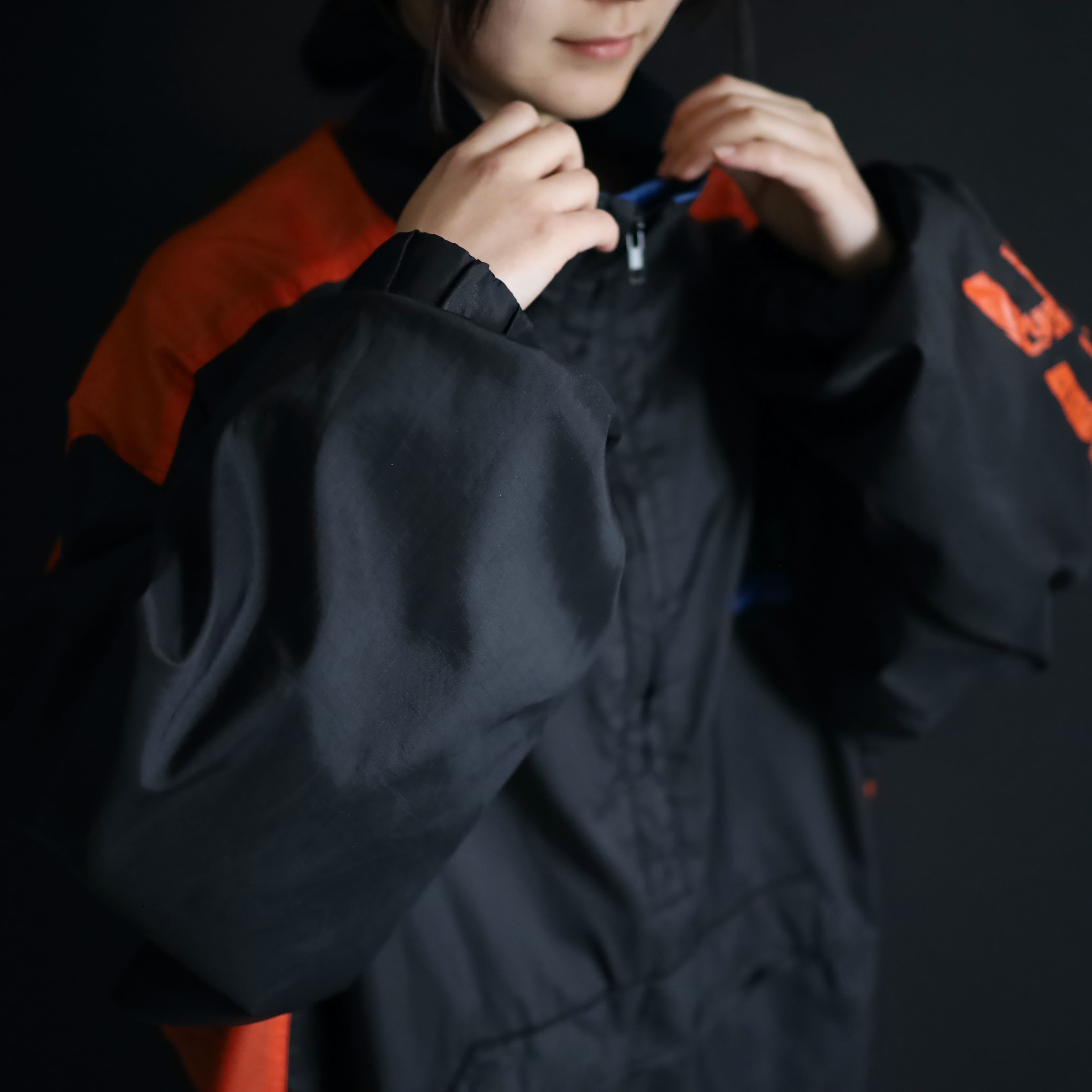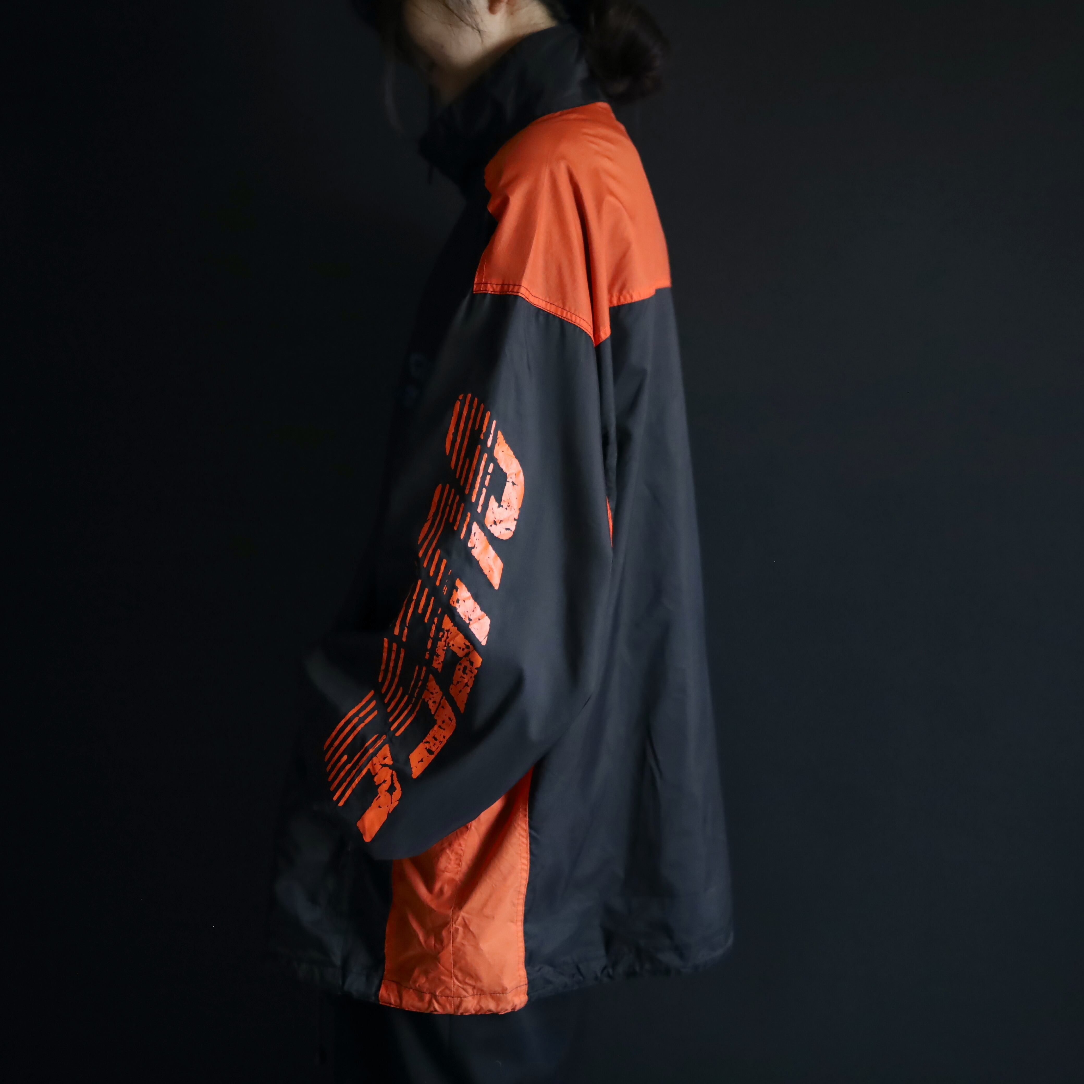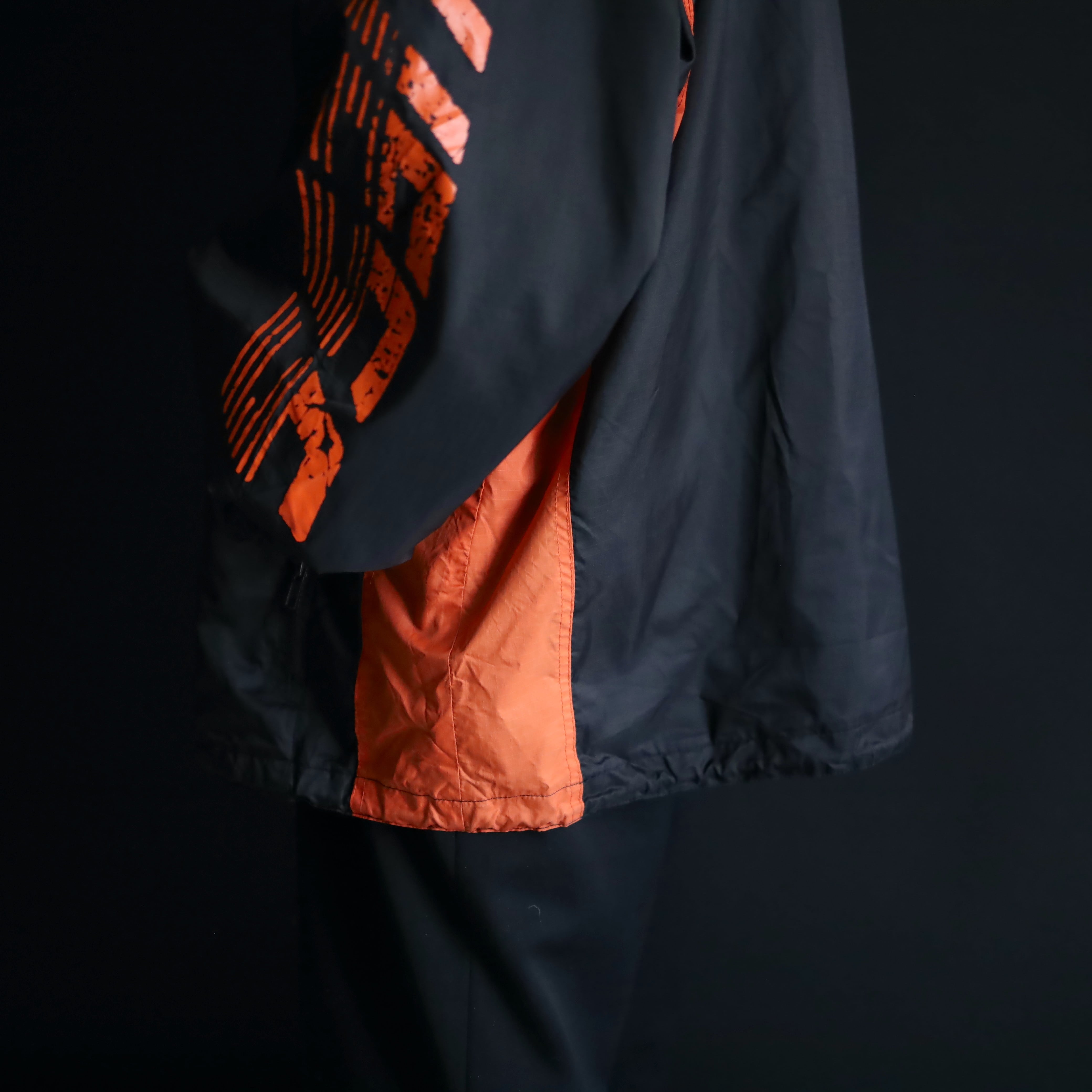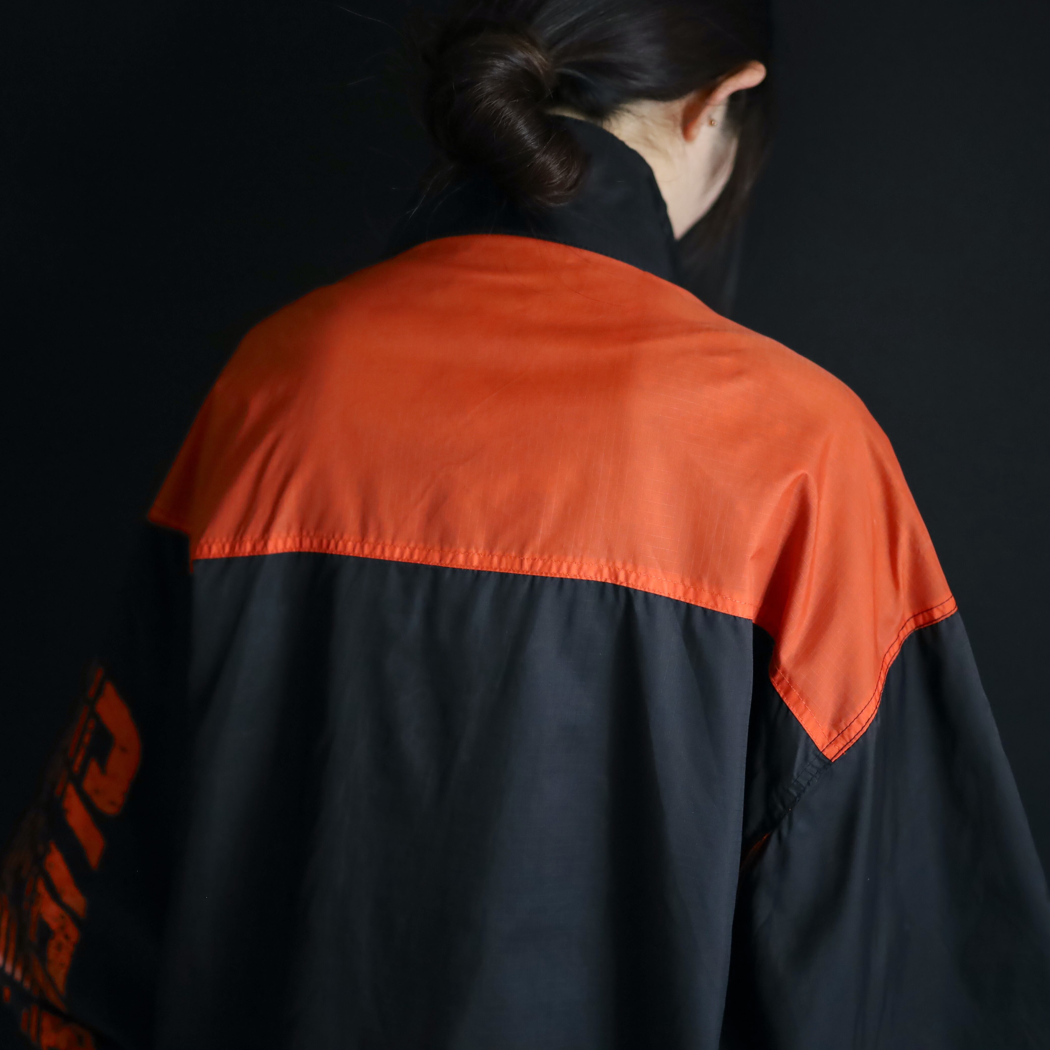 胸元にはブルーカラー,左袖にはオレンジカラーで,それぞれGUESSのブランド名プリントが施され,ストリート感溢れる一枚に仕上がってます.