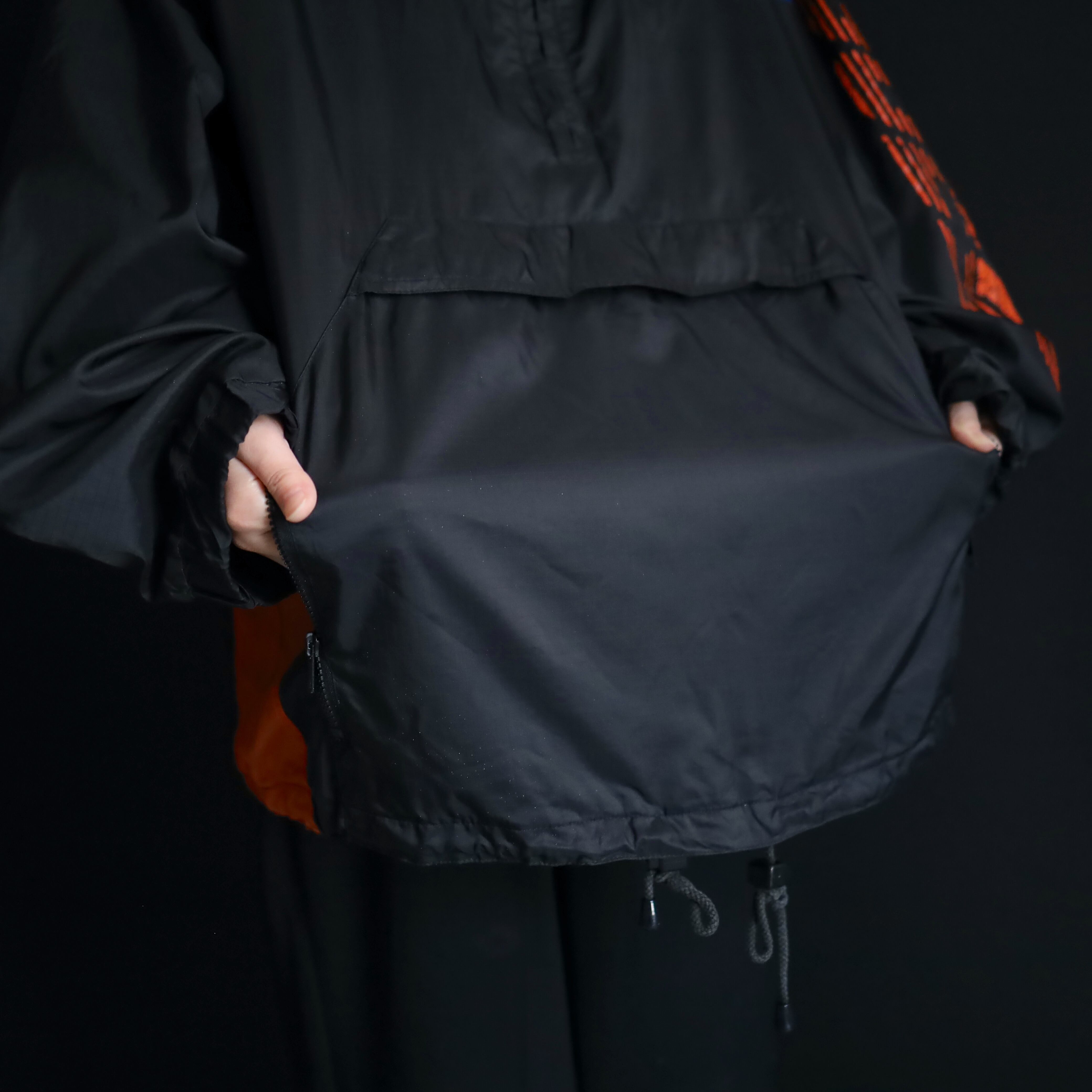 フロント裾にはドローコード付属されており,裾のシルエットを絞って着用することもできます.