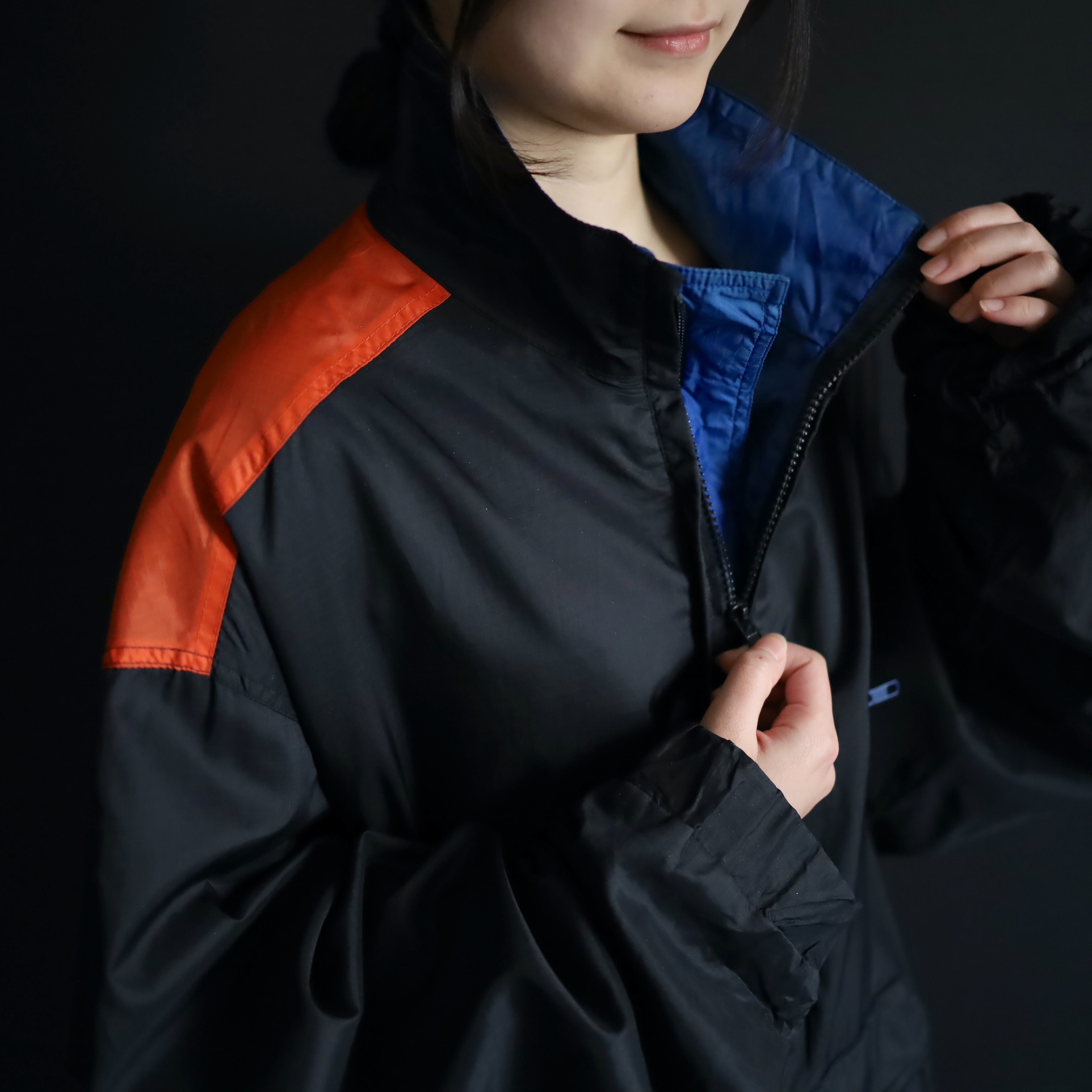 ハーフジップのプルオーバータイプで,春先のアウターとして重宝する一枚.