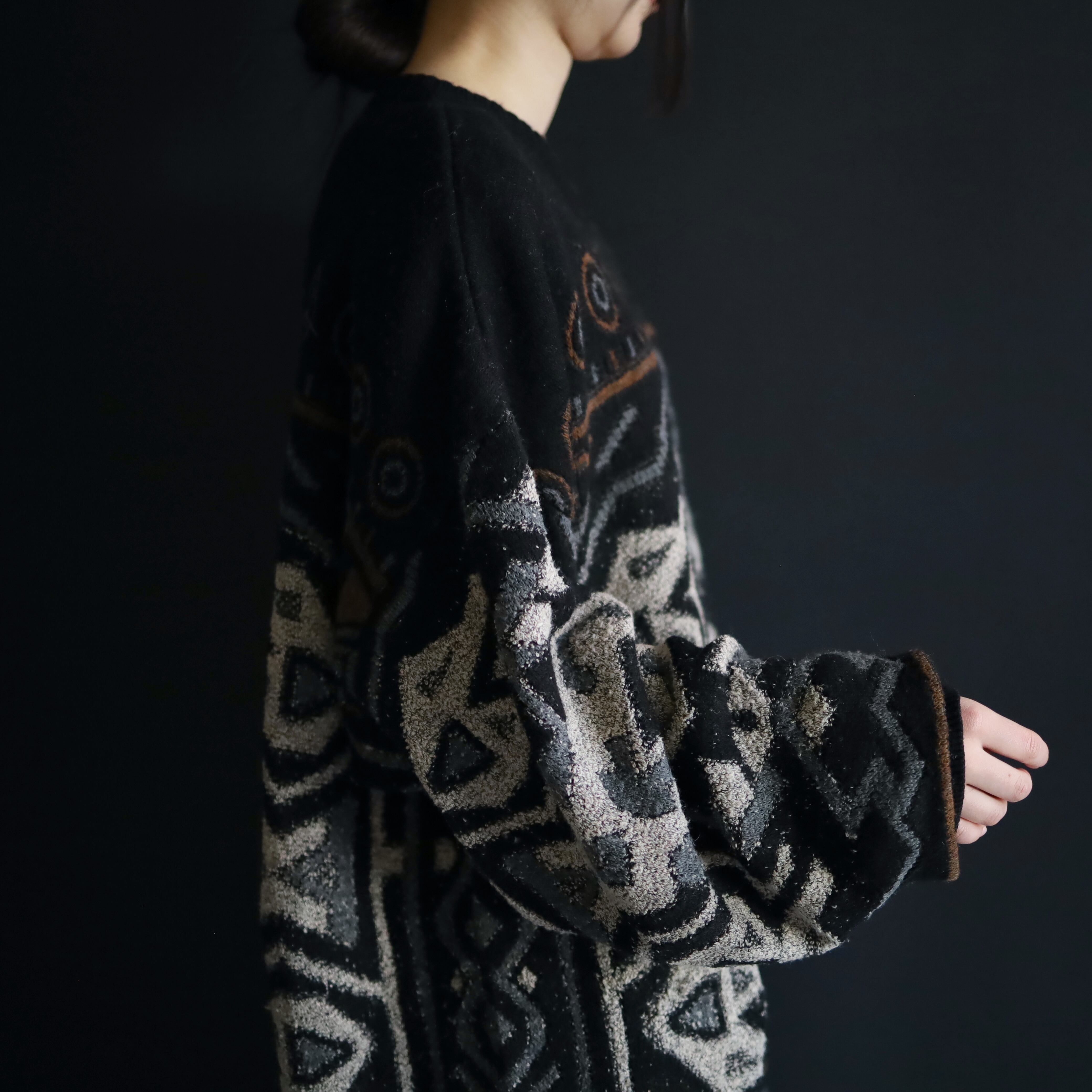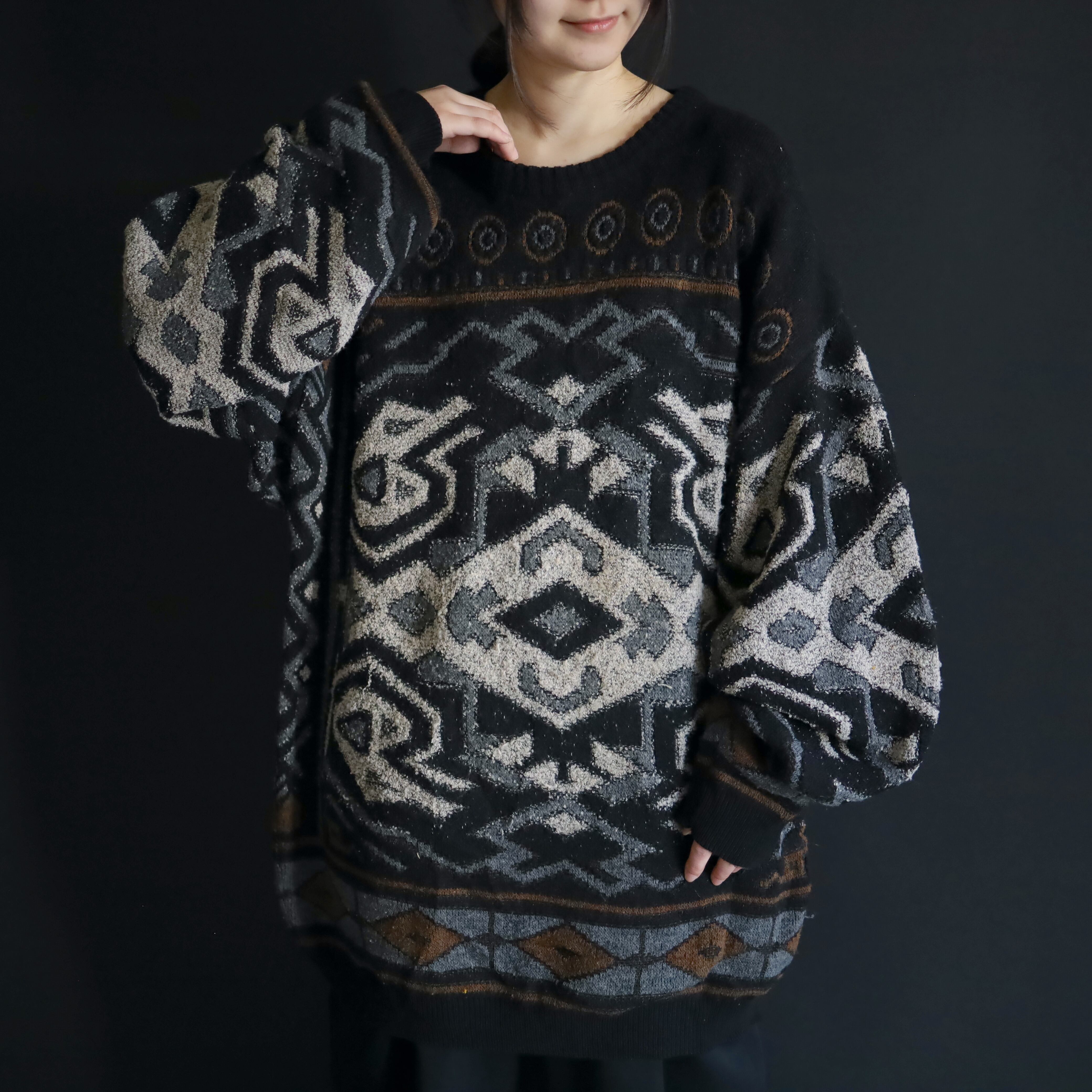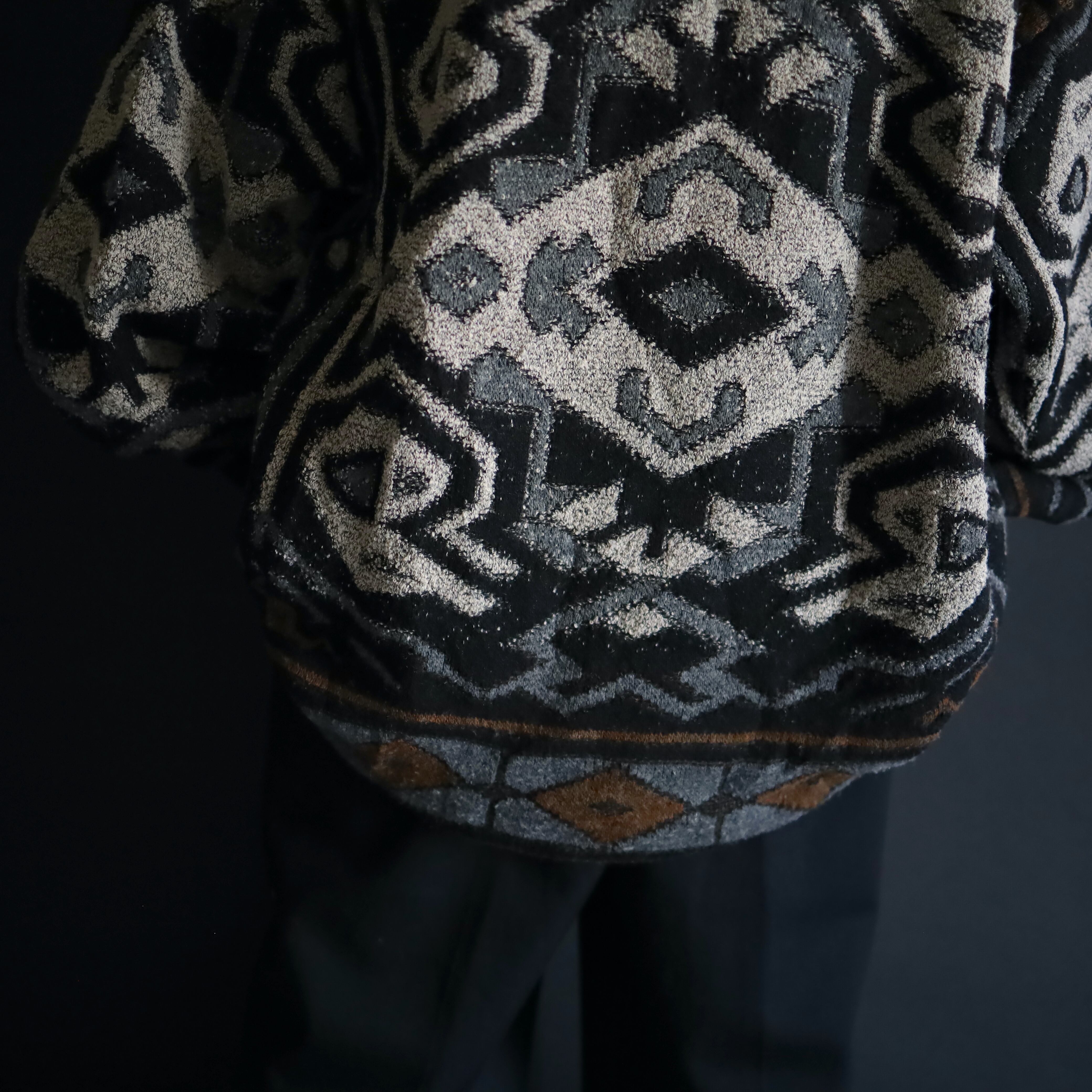 だぼっと着れるルーズなサイズ感に加え,左右対称的ににデザインされた独特なアートパターン.