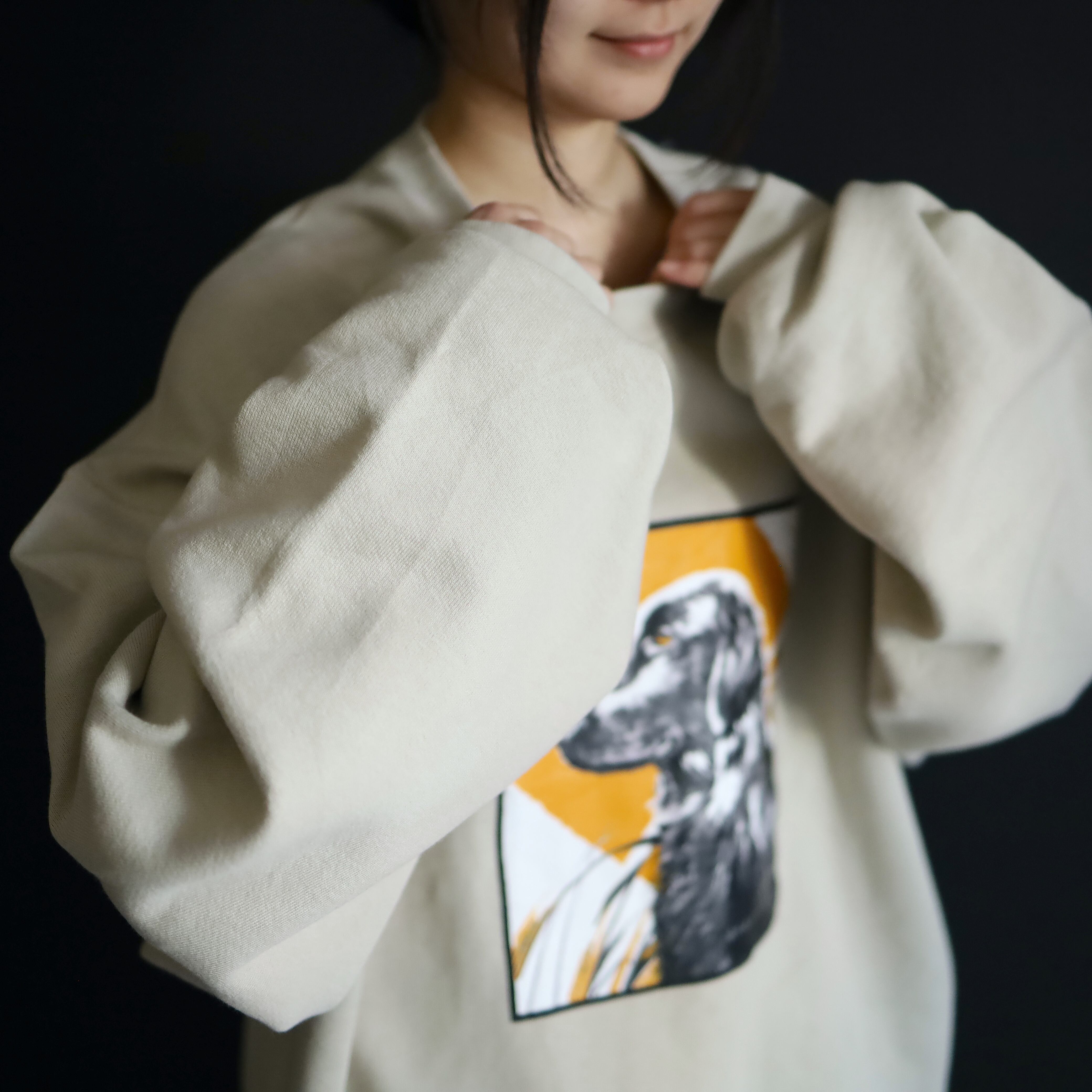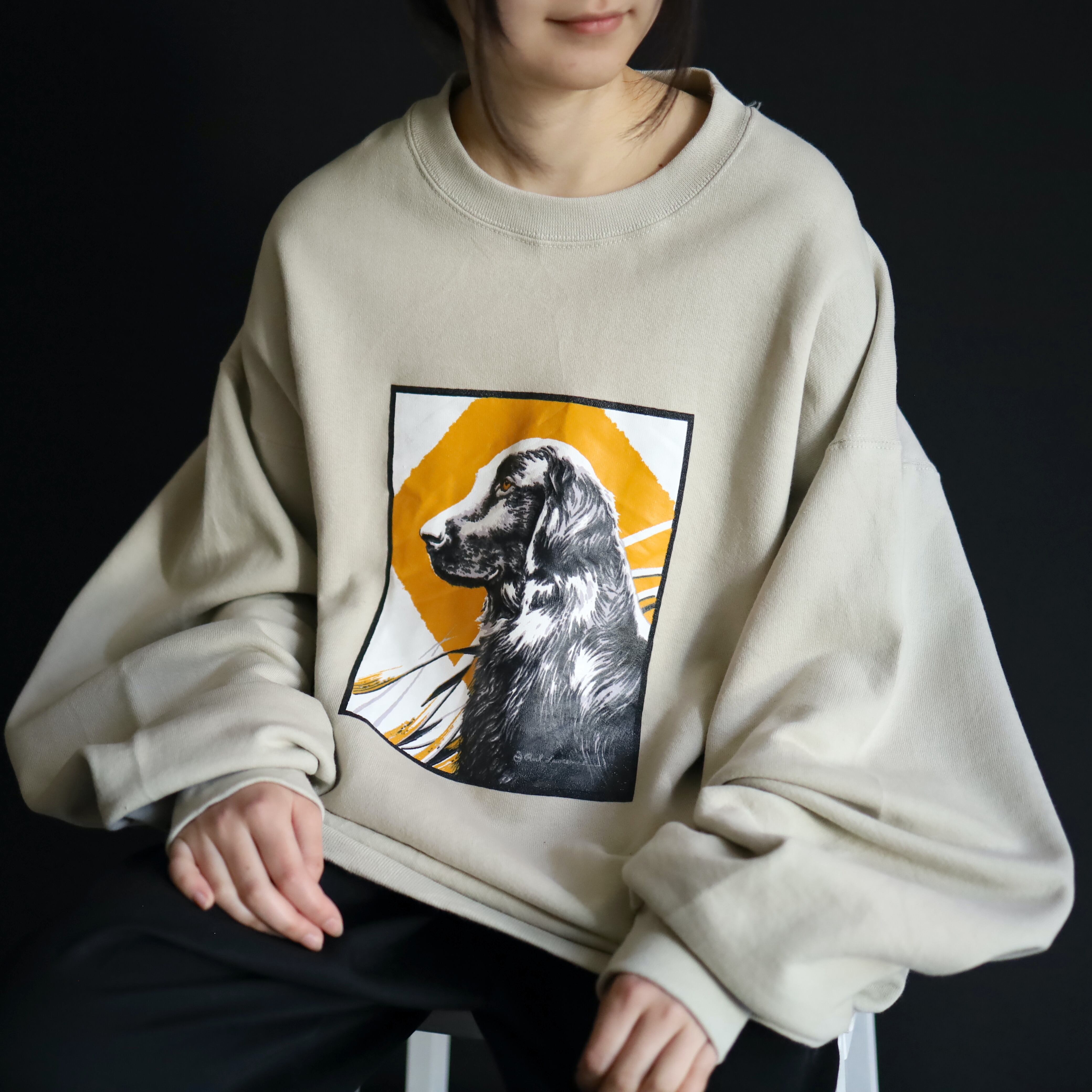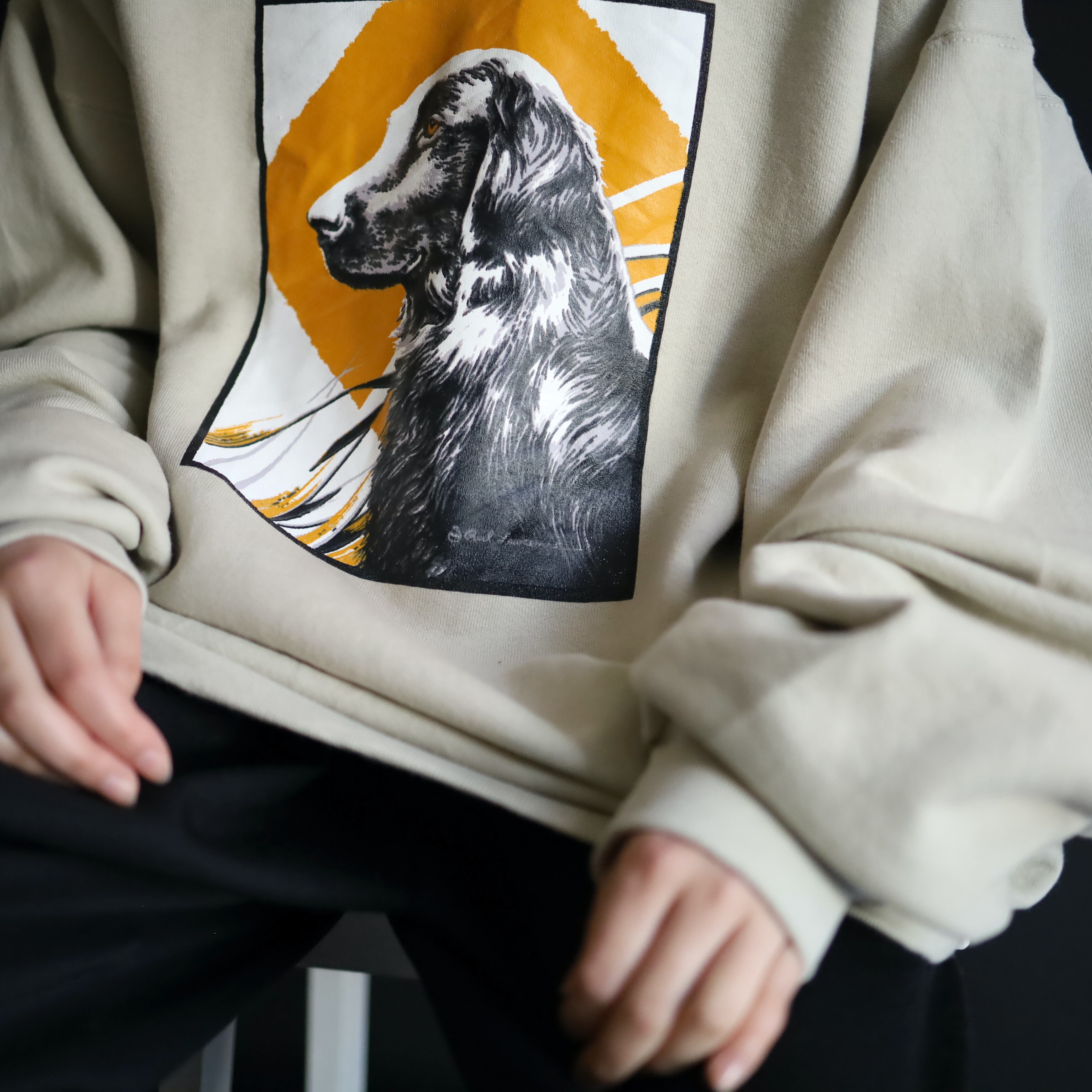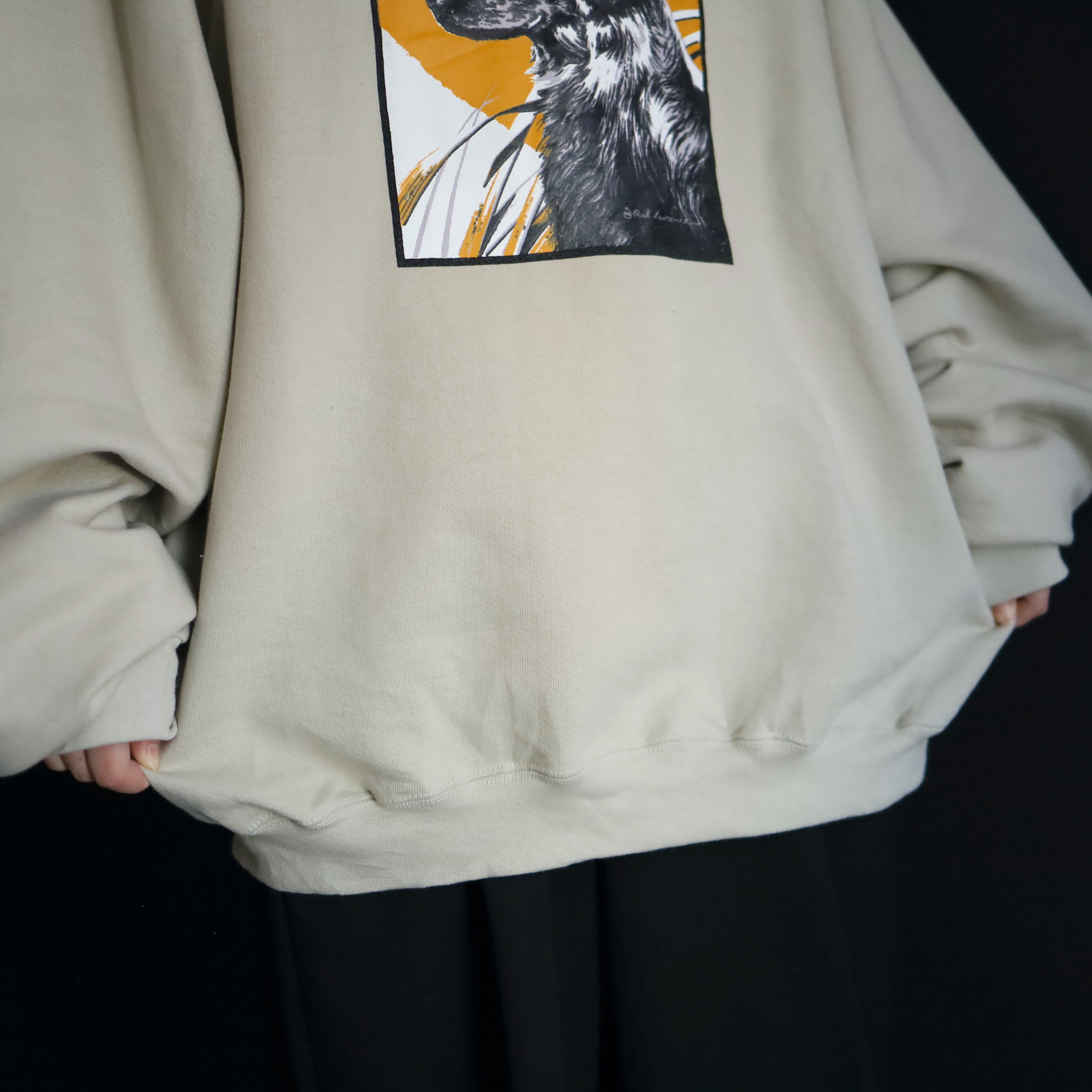 ゆるだぼサイズのプリントスウェットプルオーバー.