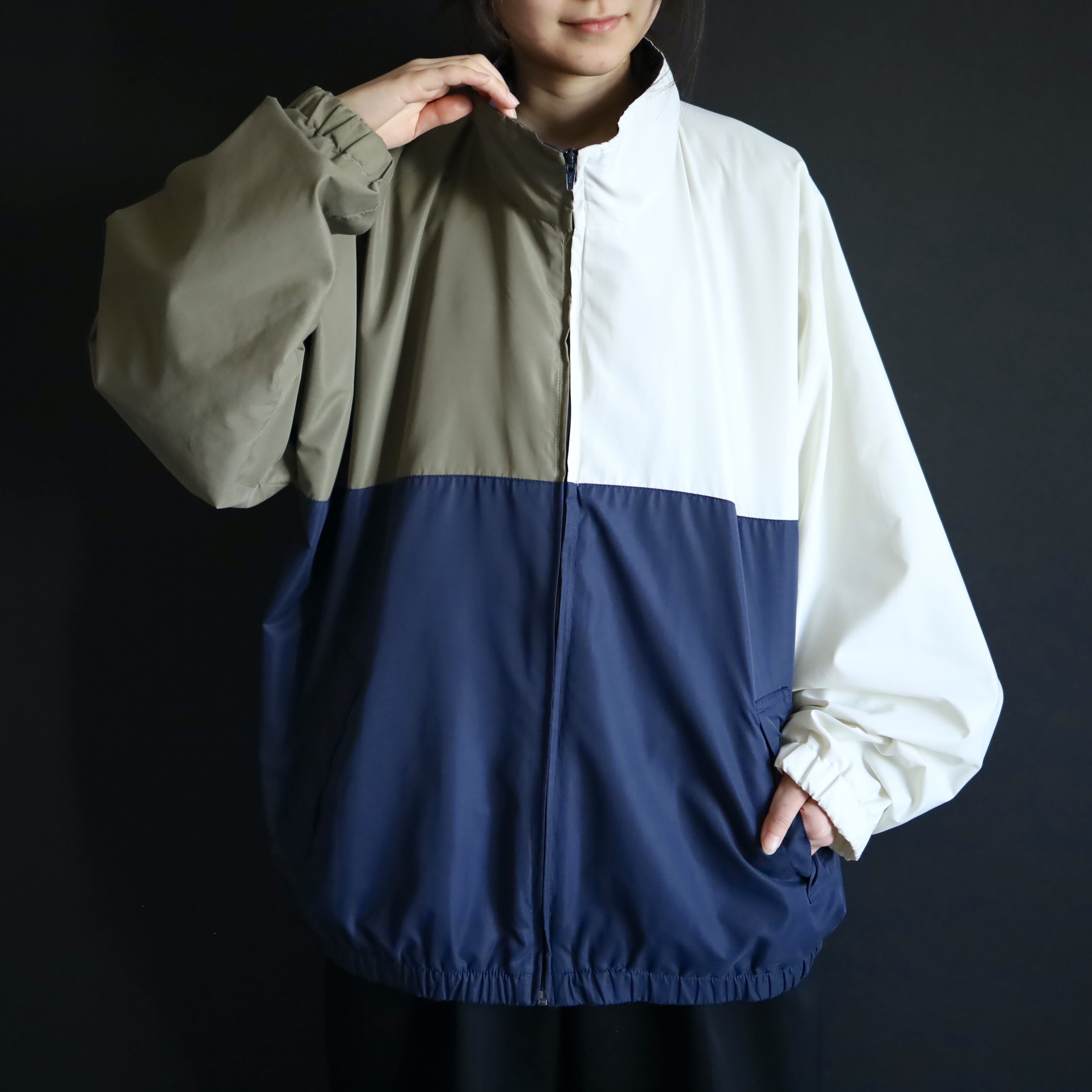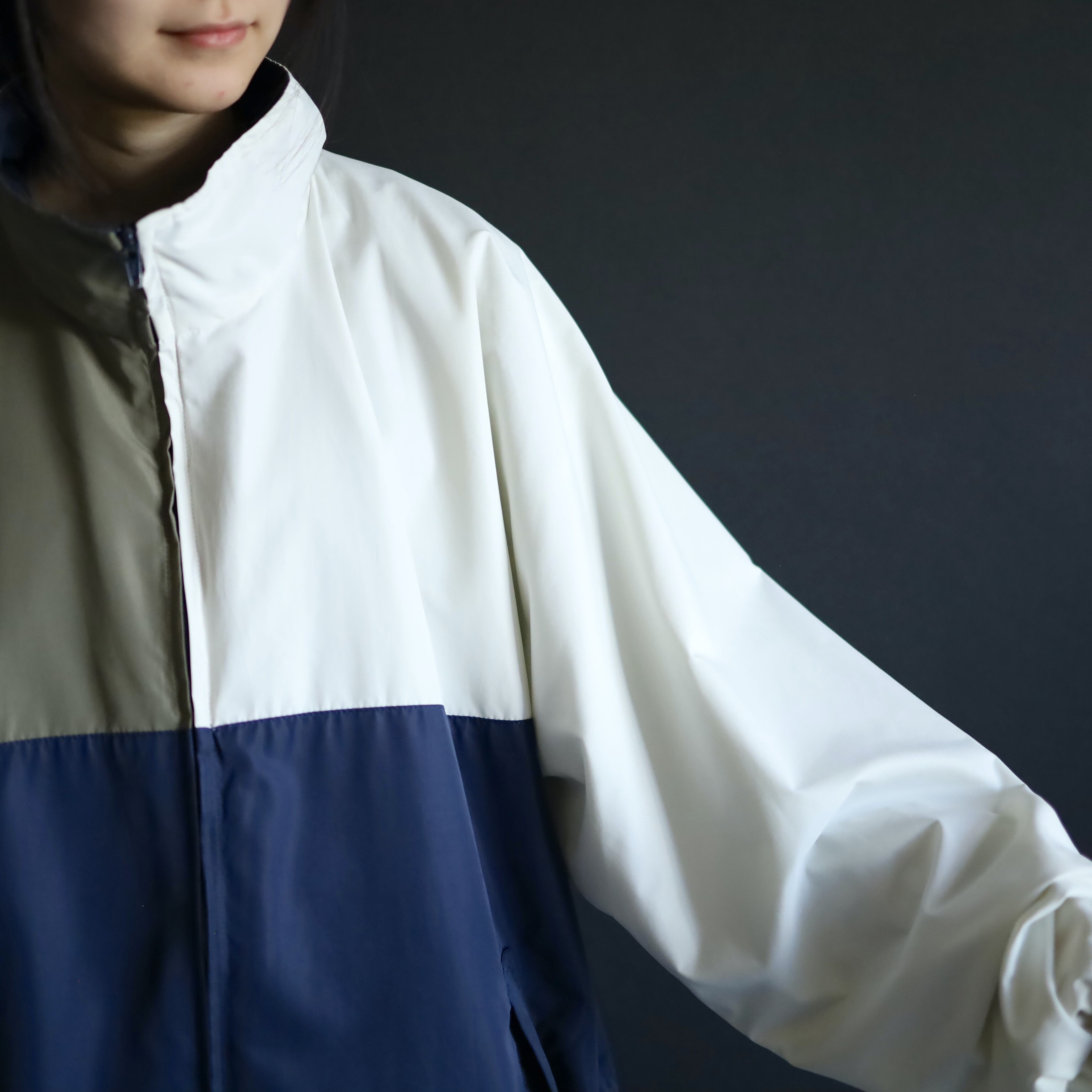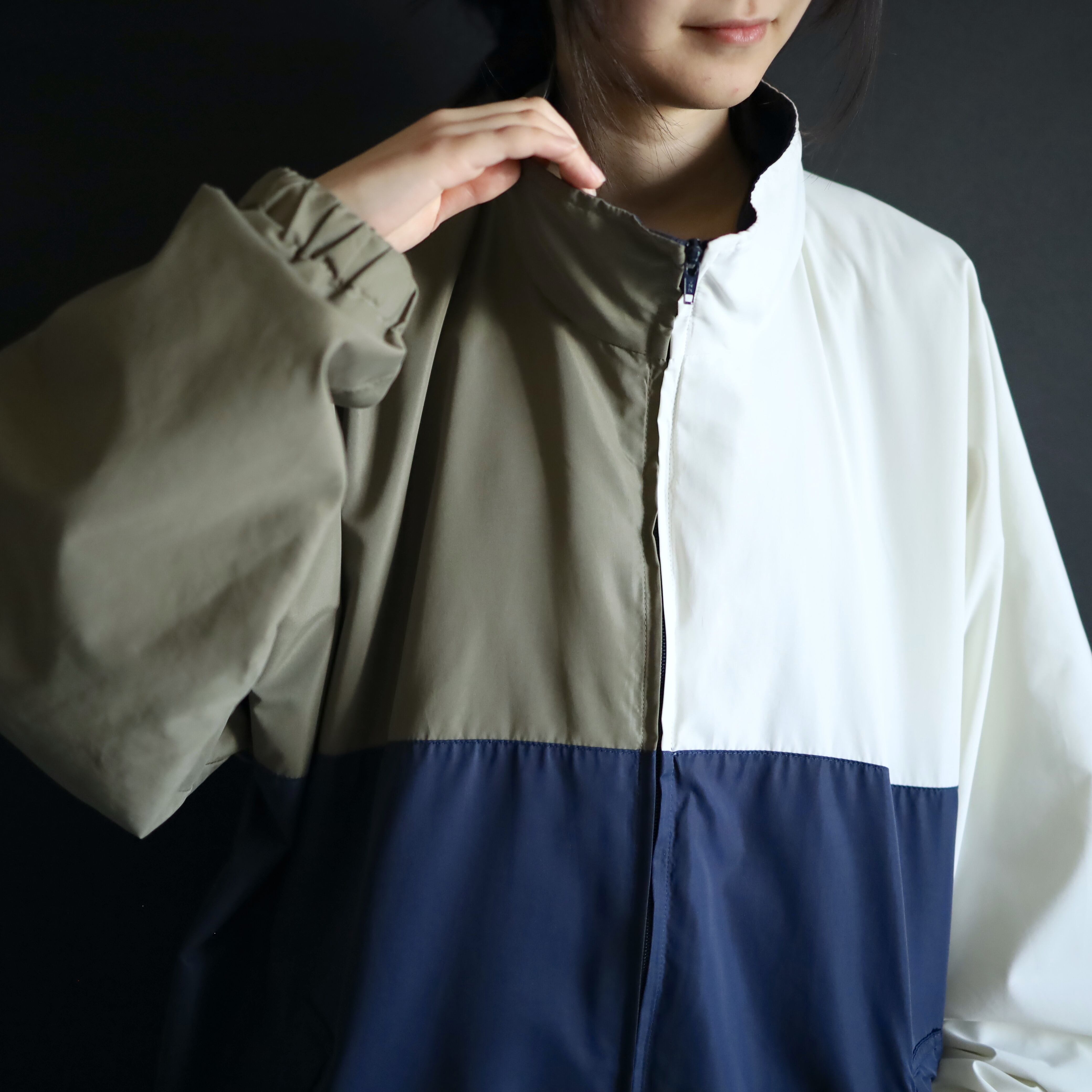 ホワイト×ネイビー×カーキのトライカラー切替.