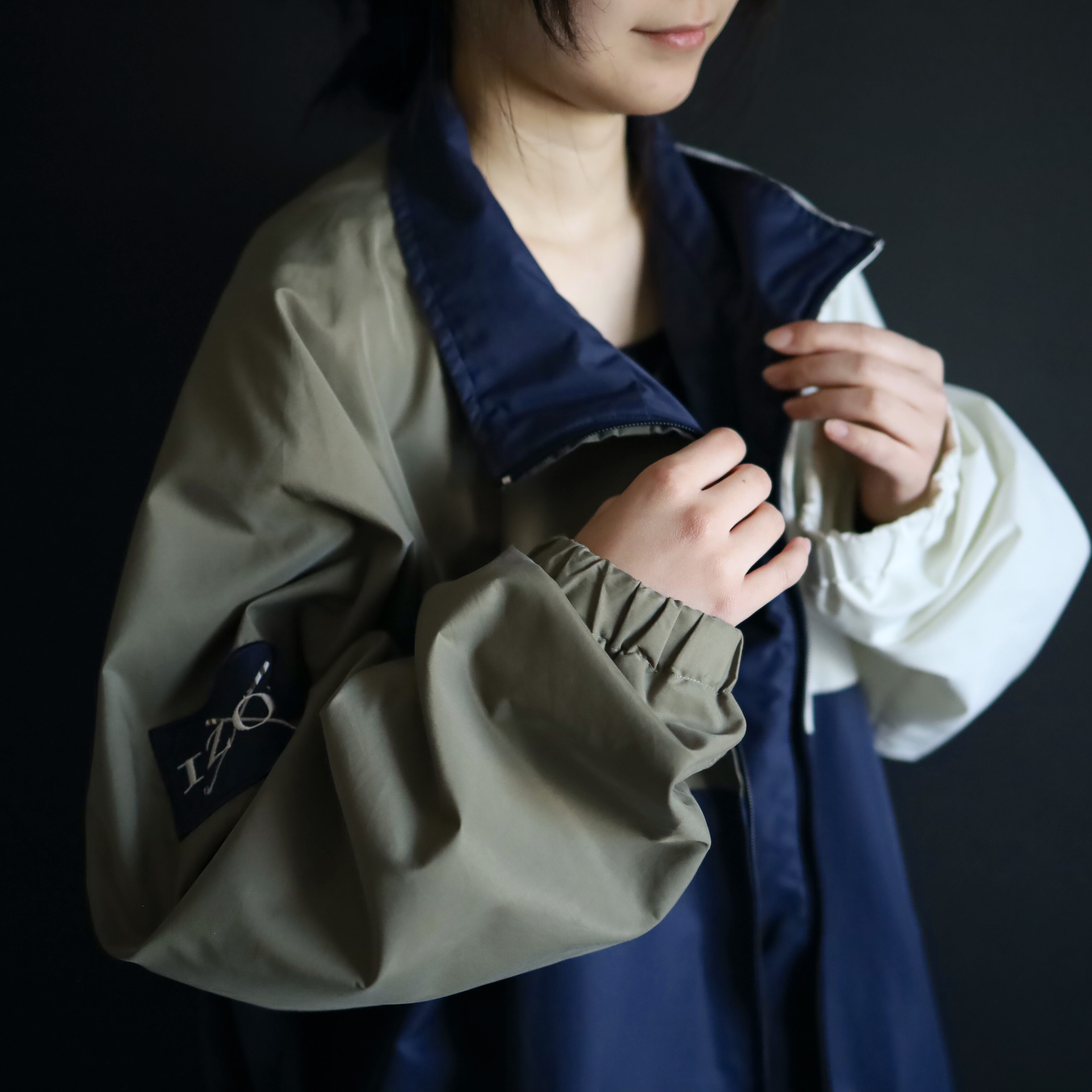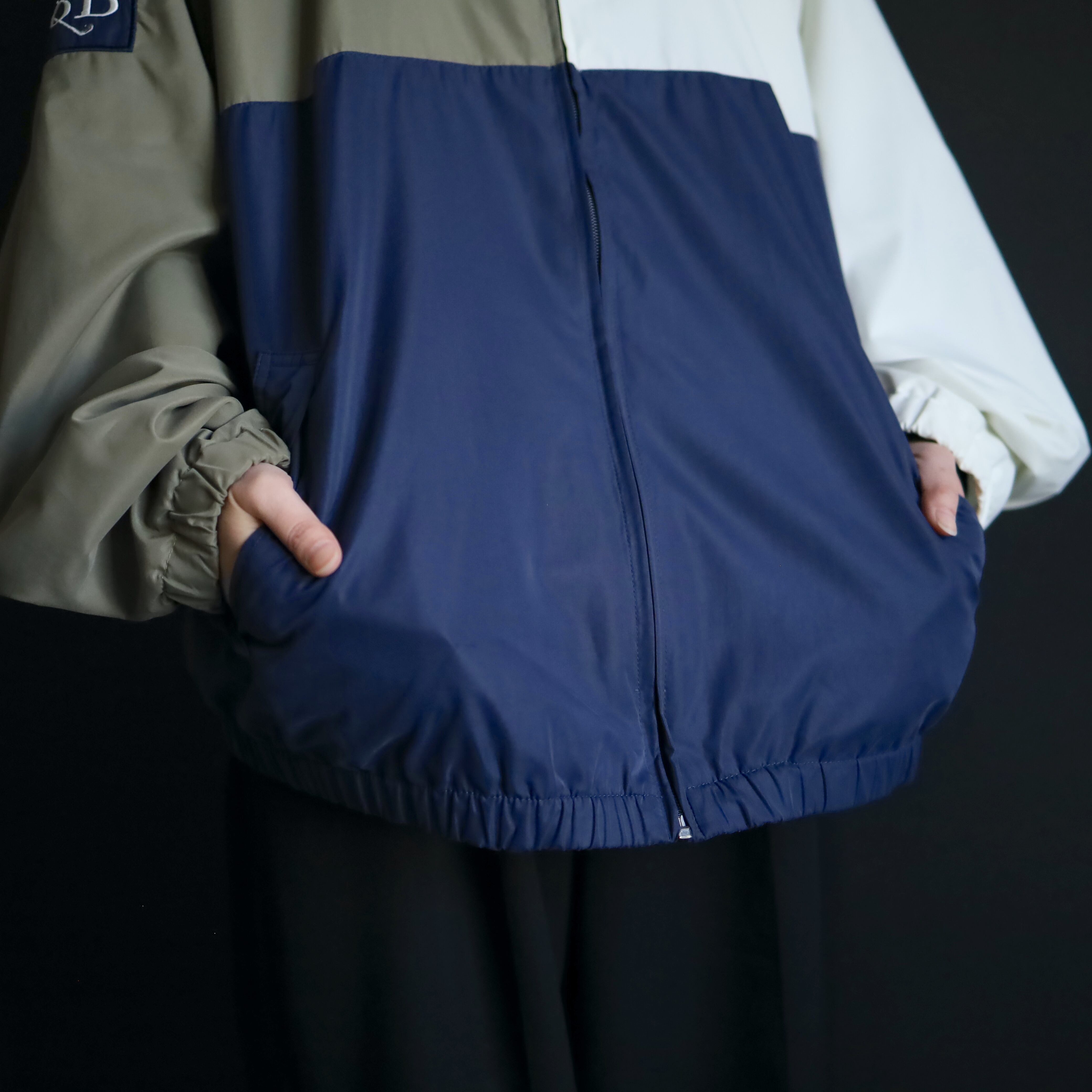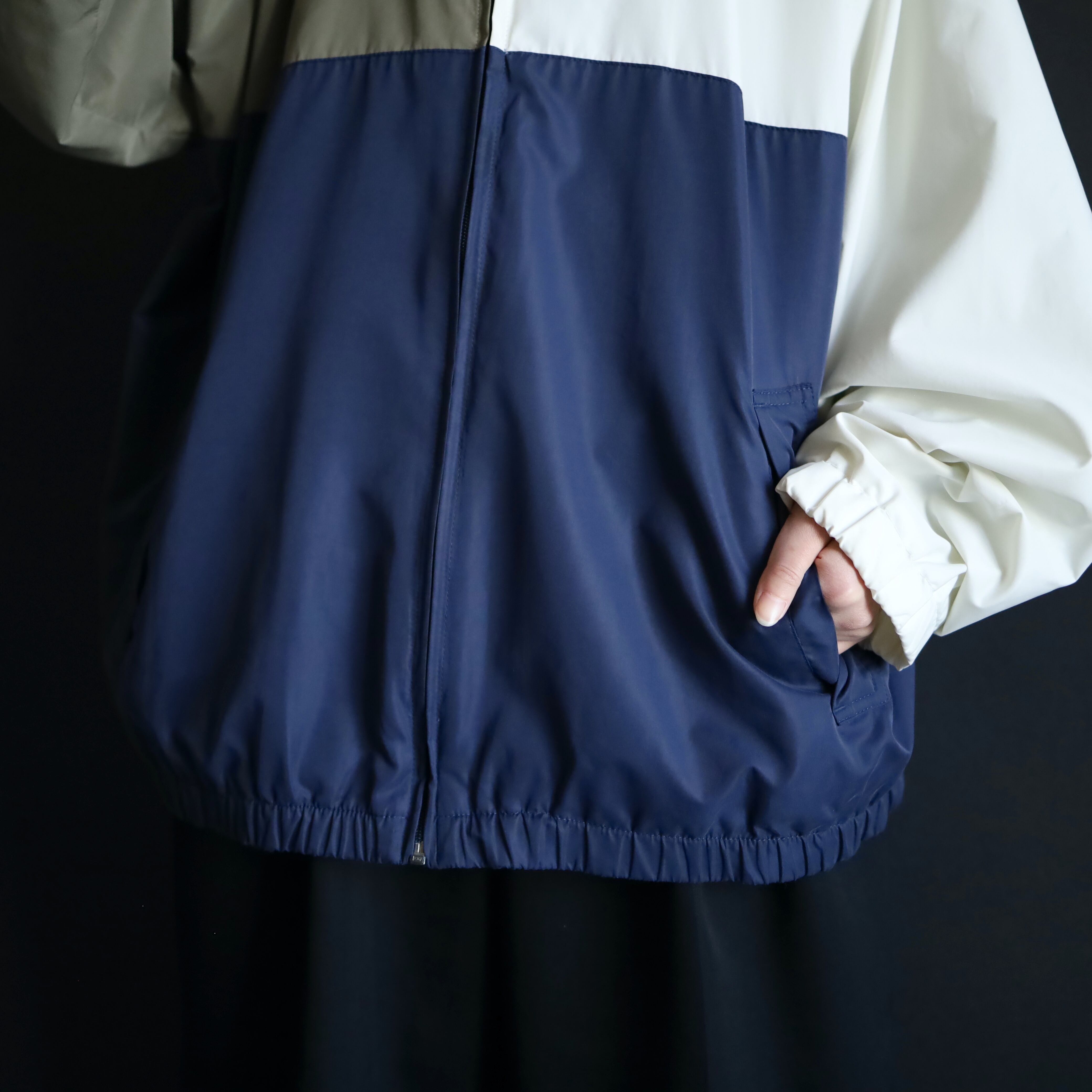 ホワイト×ネイビー×カーキのトライカラー切替.