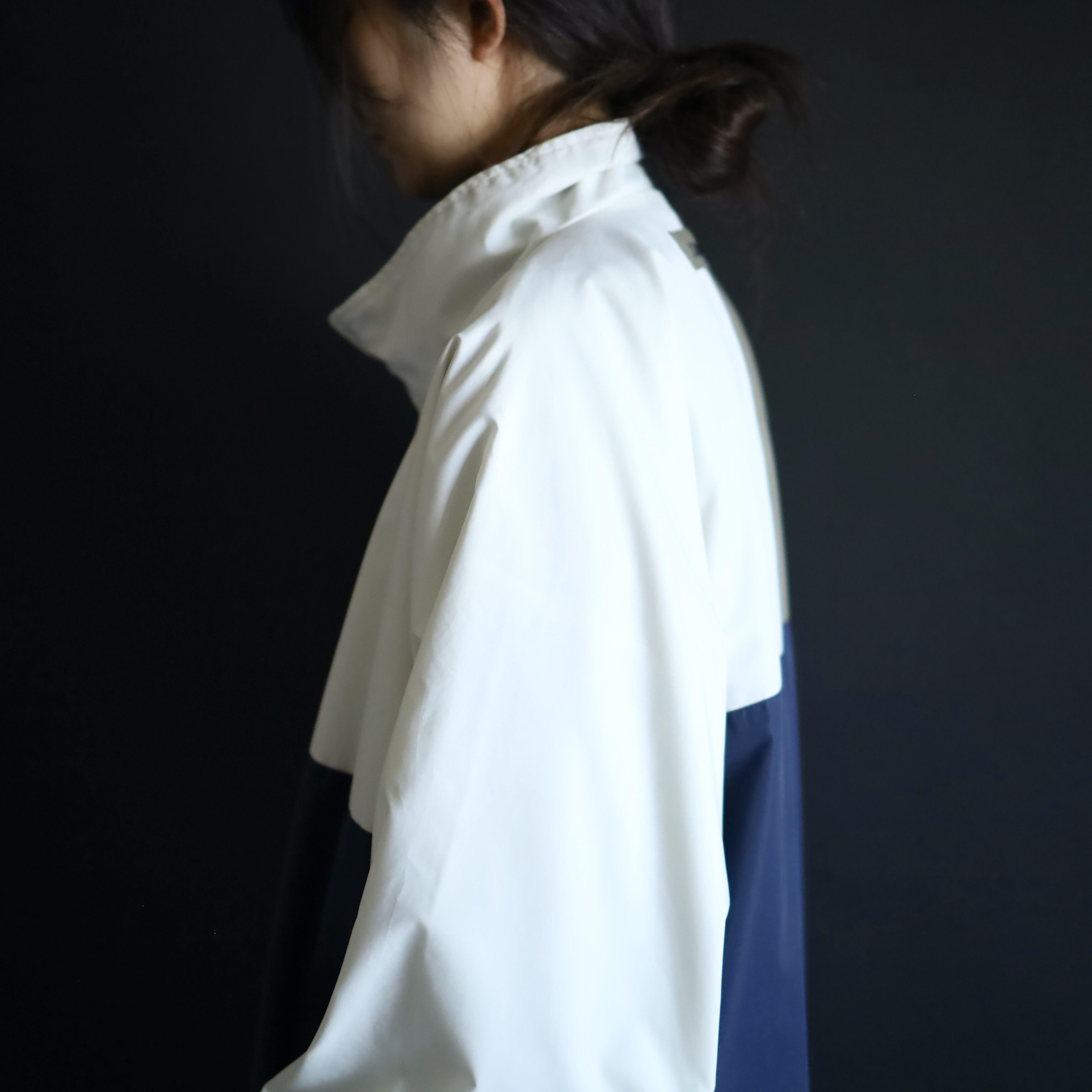 軽い着心地に加え,ナイロンのようなパリっと感もなく,シルエットも柔らかい表情の一枚です.