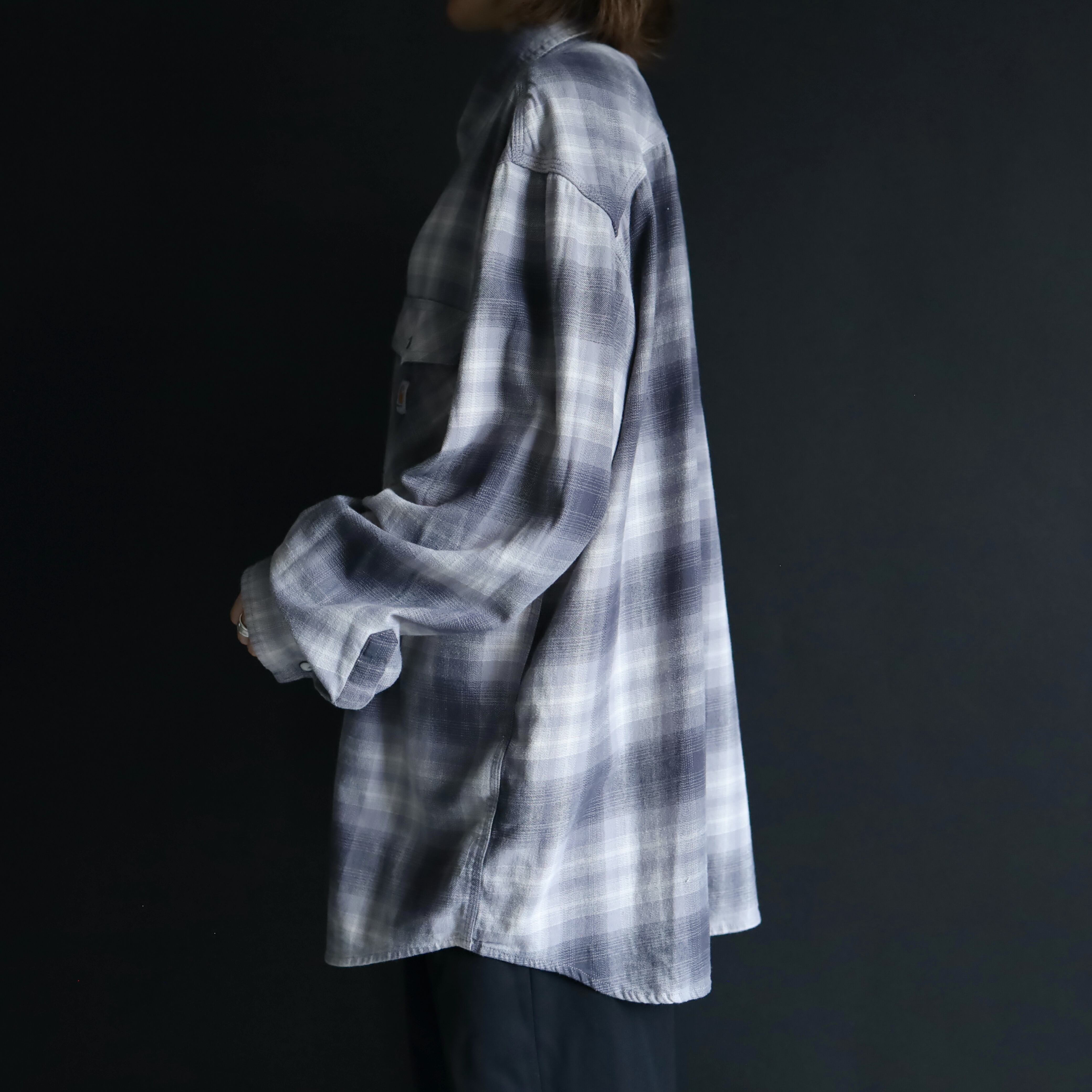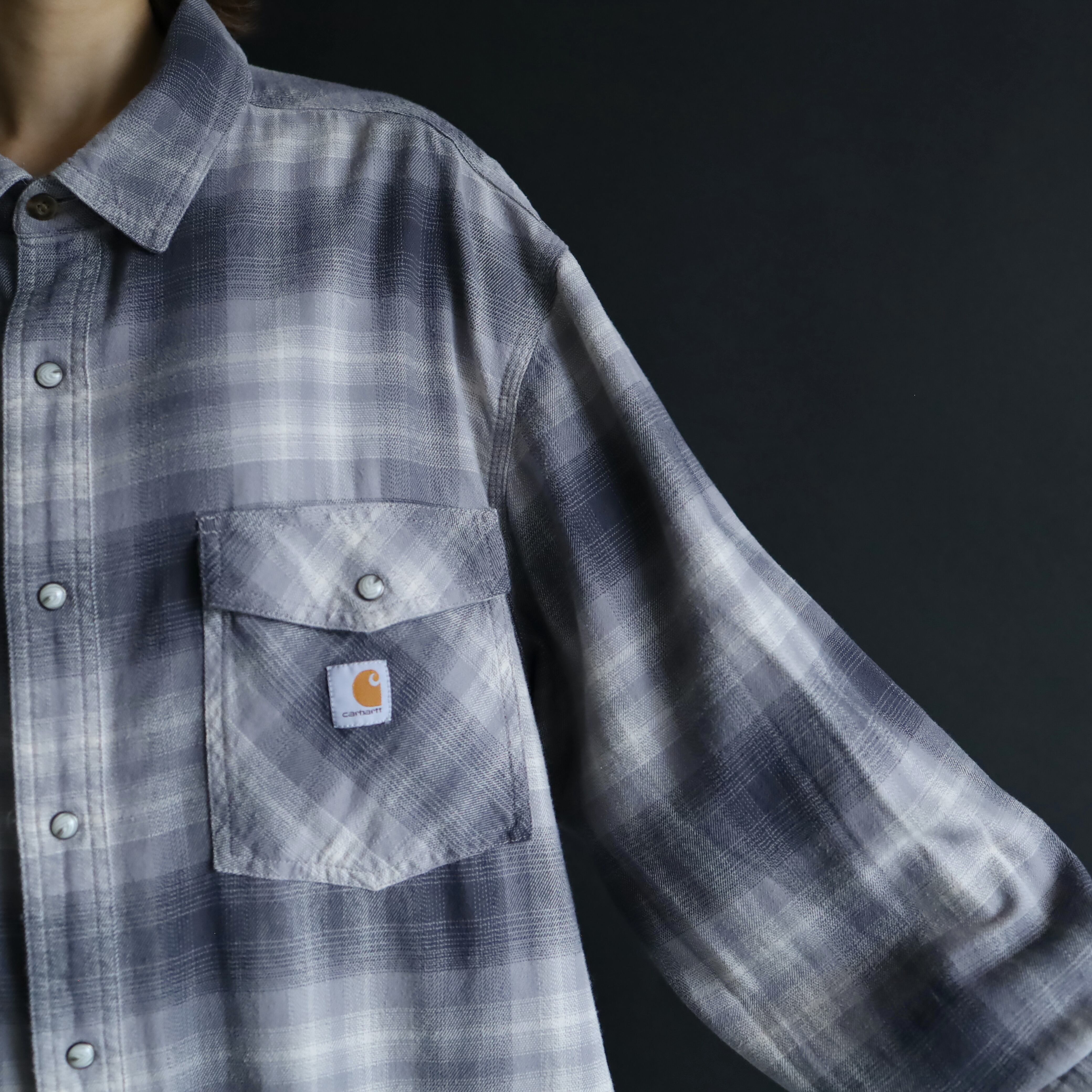 グランジ感溢れるオンブレチェックシャツをご紹介.
