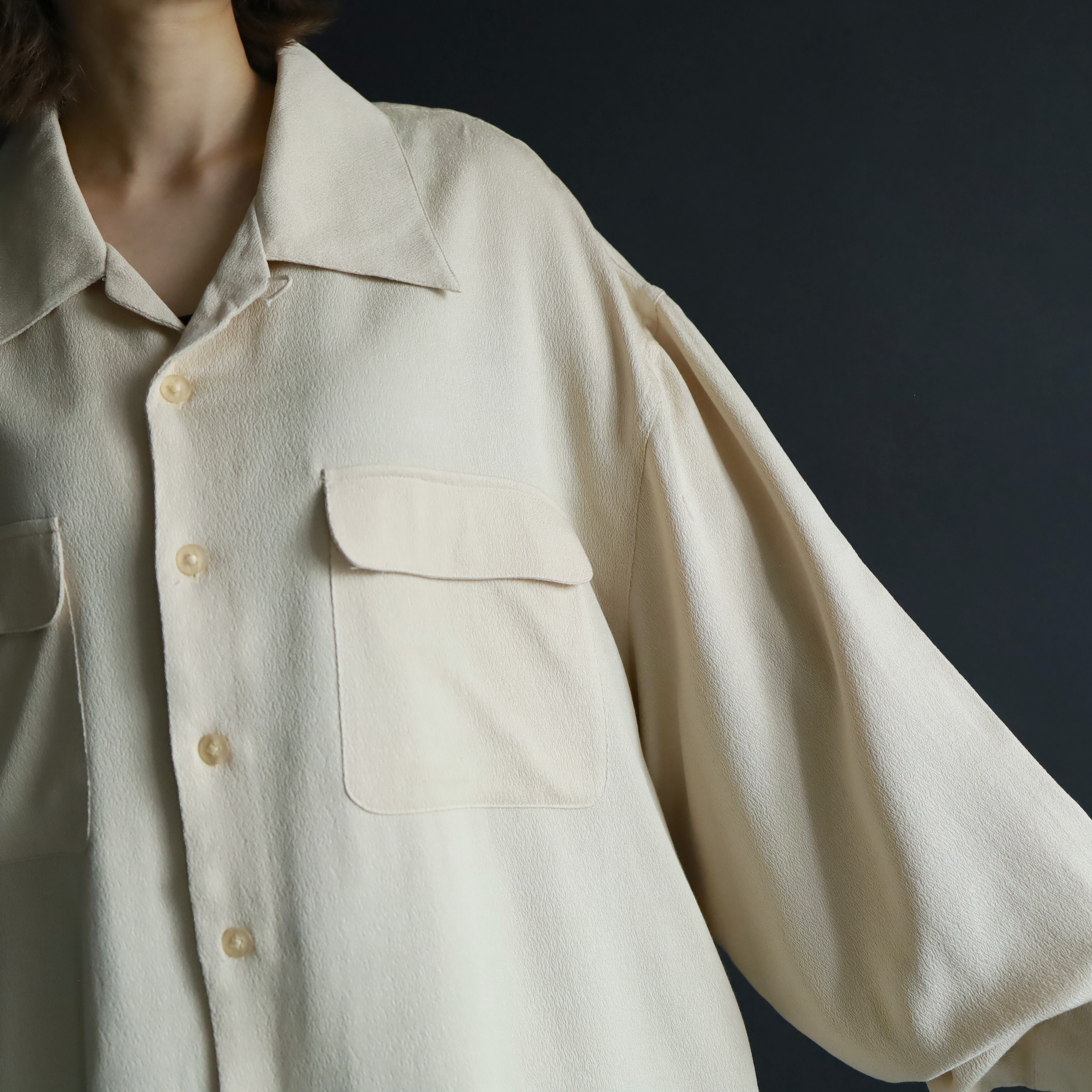 上品な光沢による高級感溢れるオープンカラーシャツ.