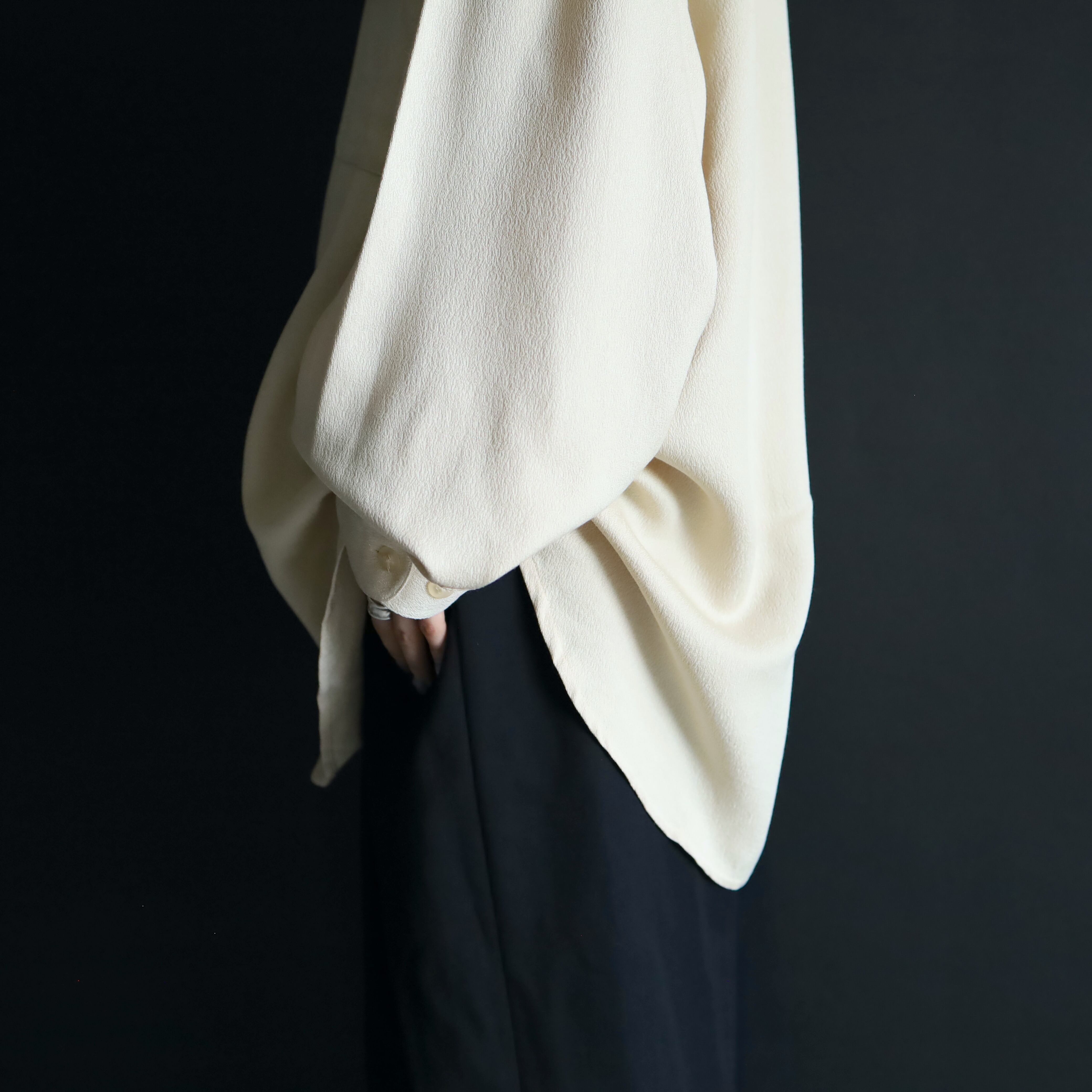 肩先や袖,身頃に至るまで,柔らかい生地による落ち感が綺麗に表れます.