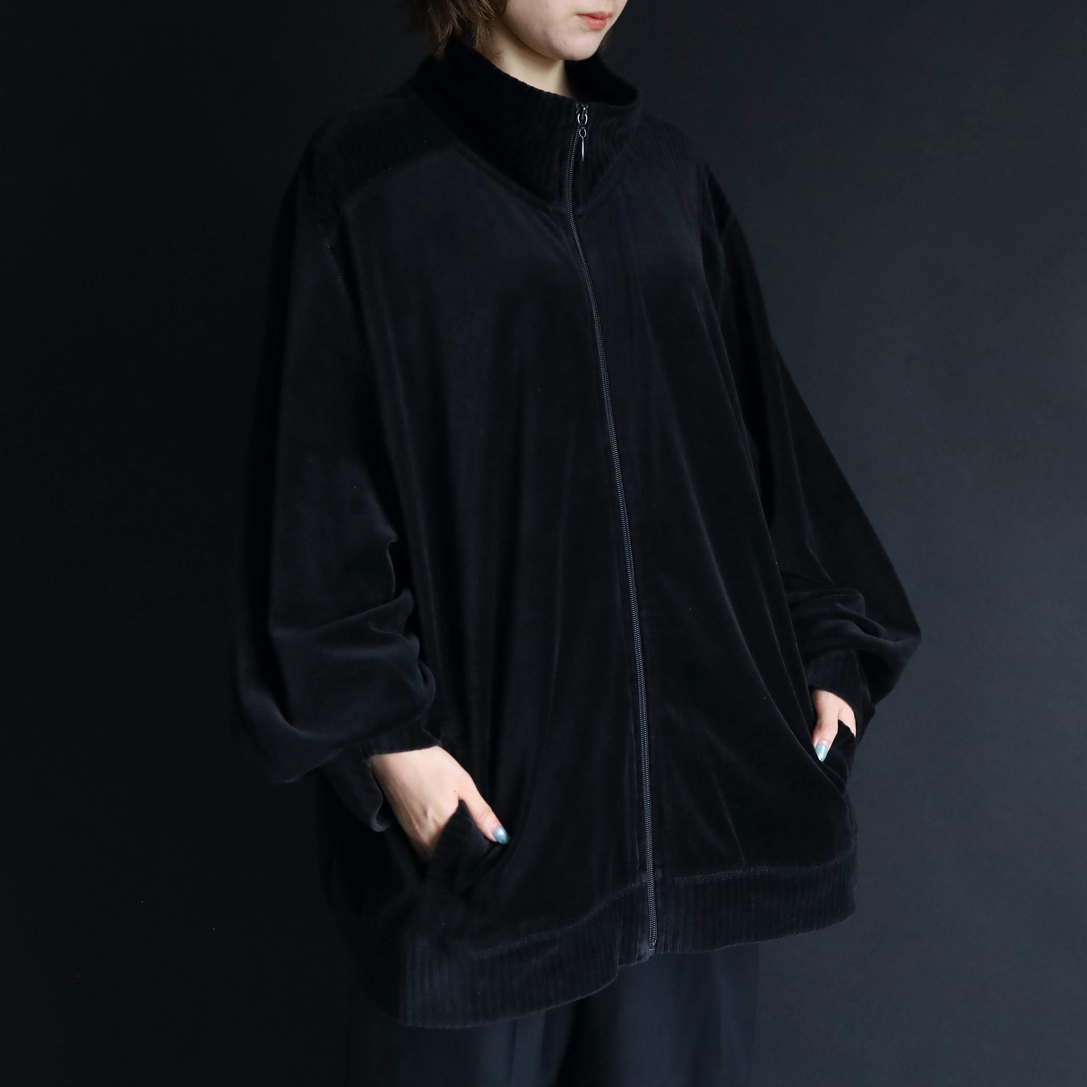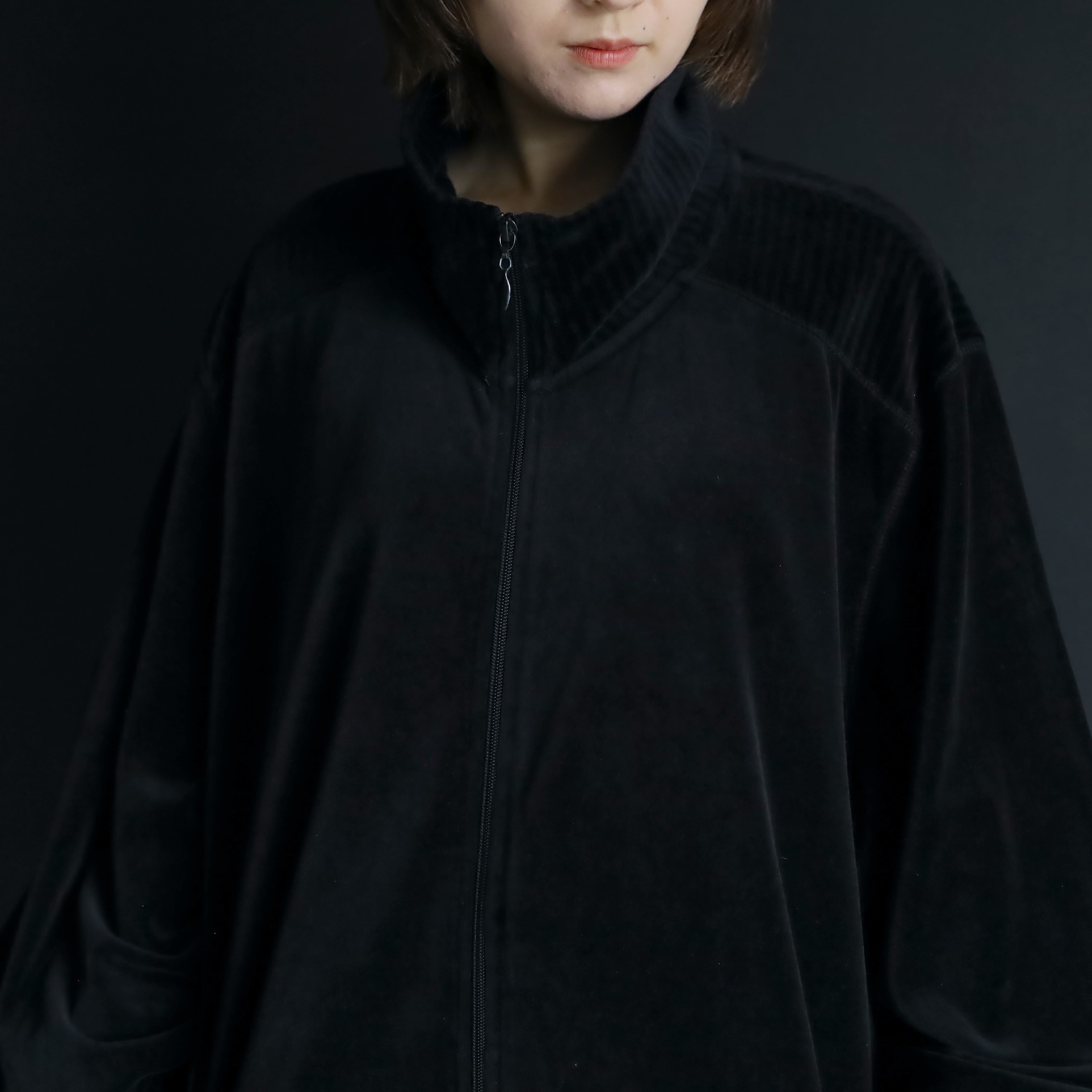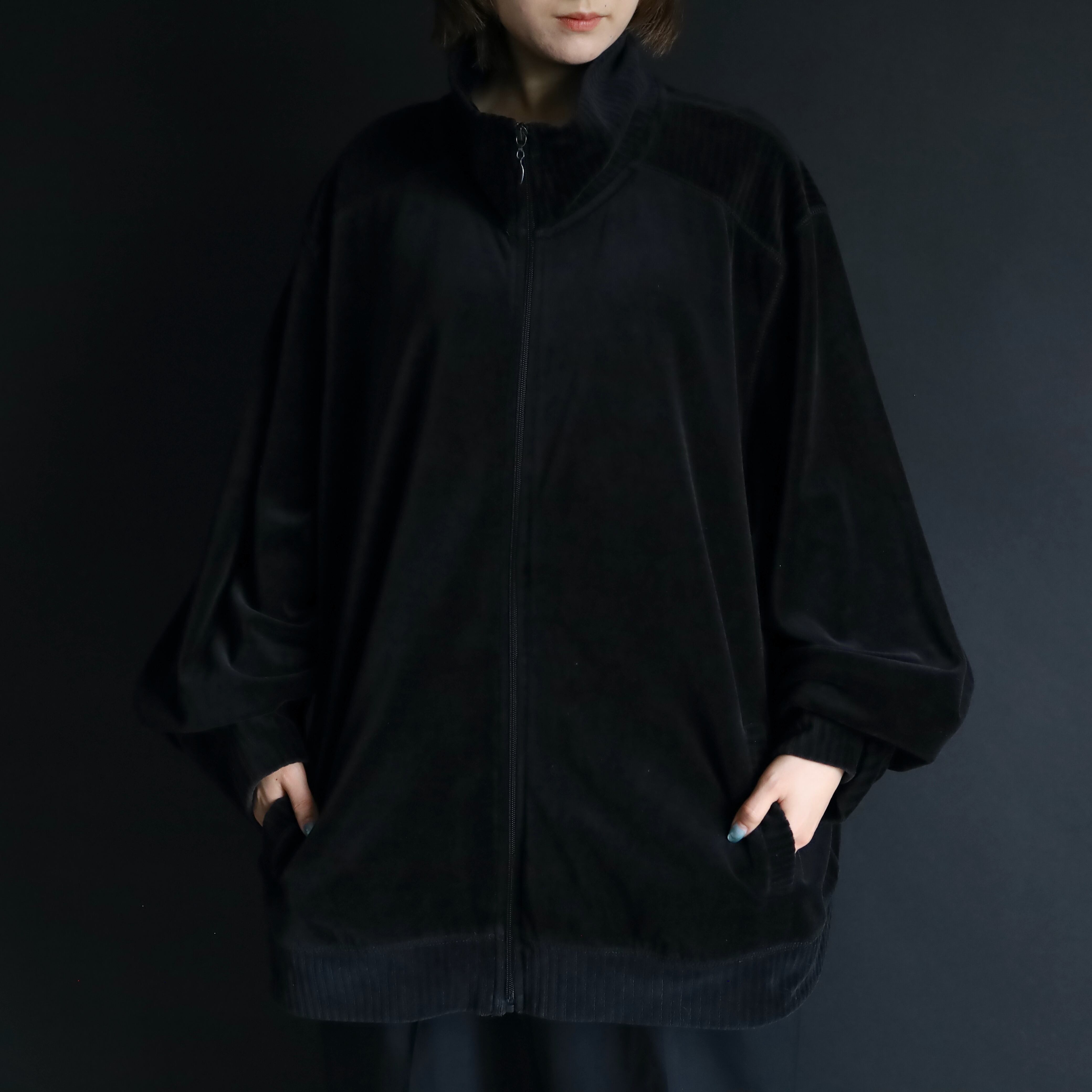 ブラック単色で構成されたトラックジャケットタイプ.