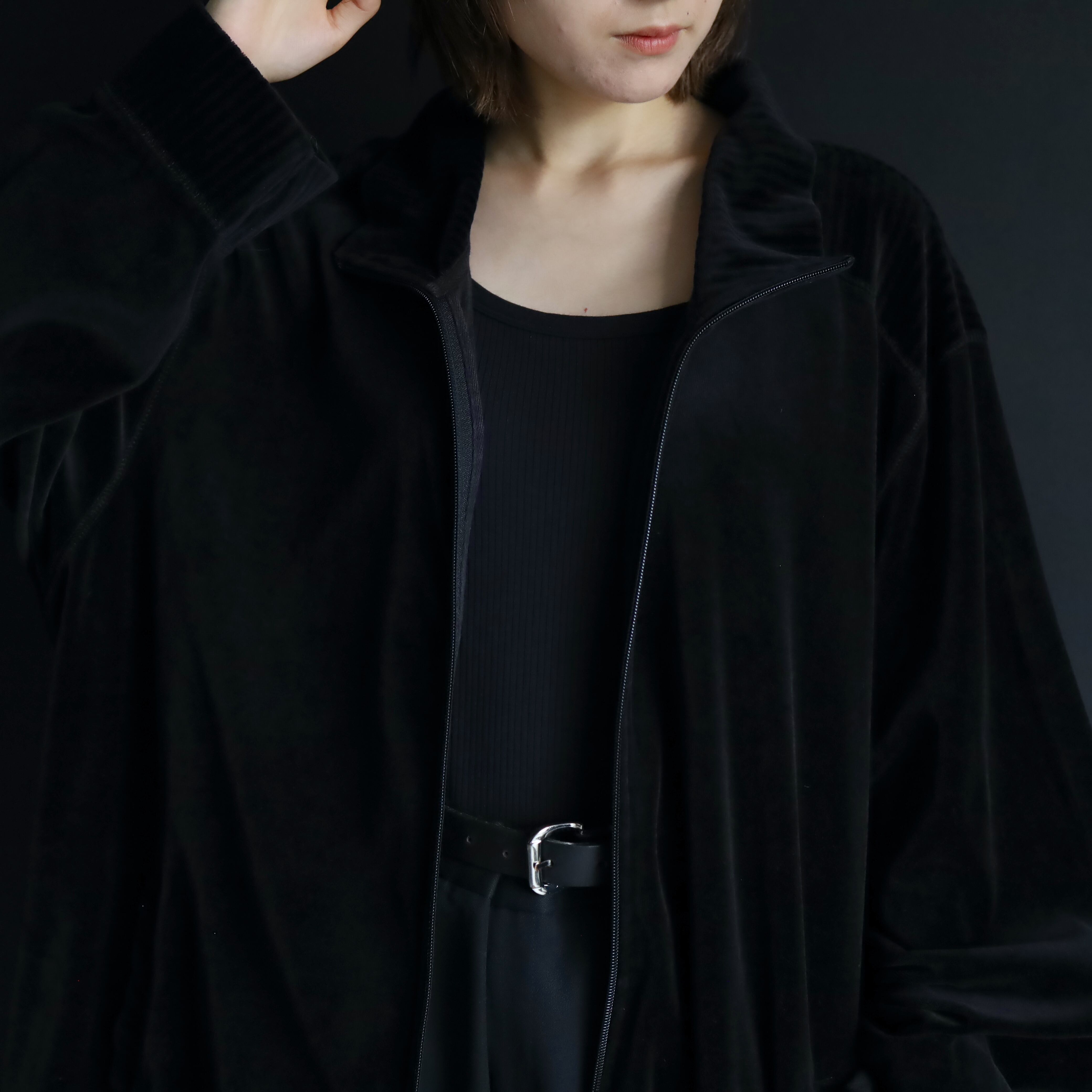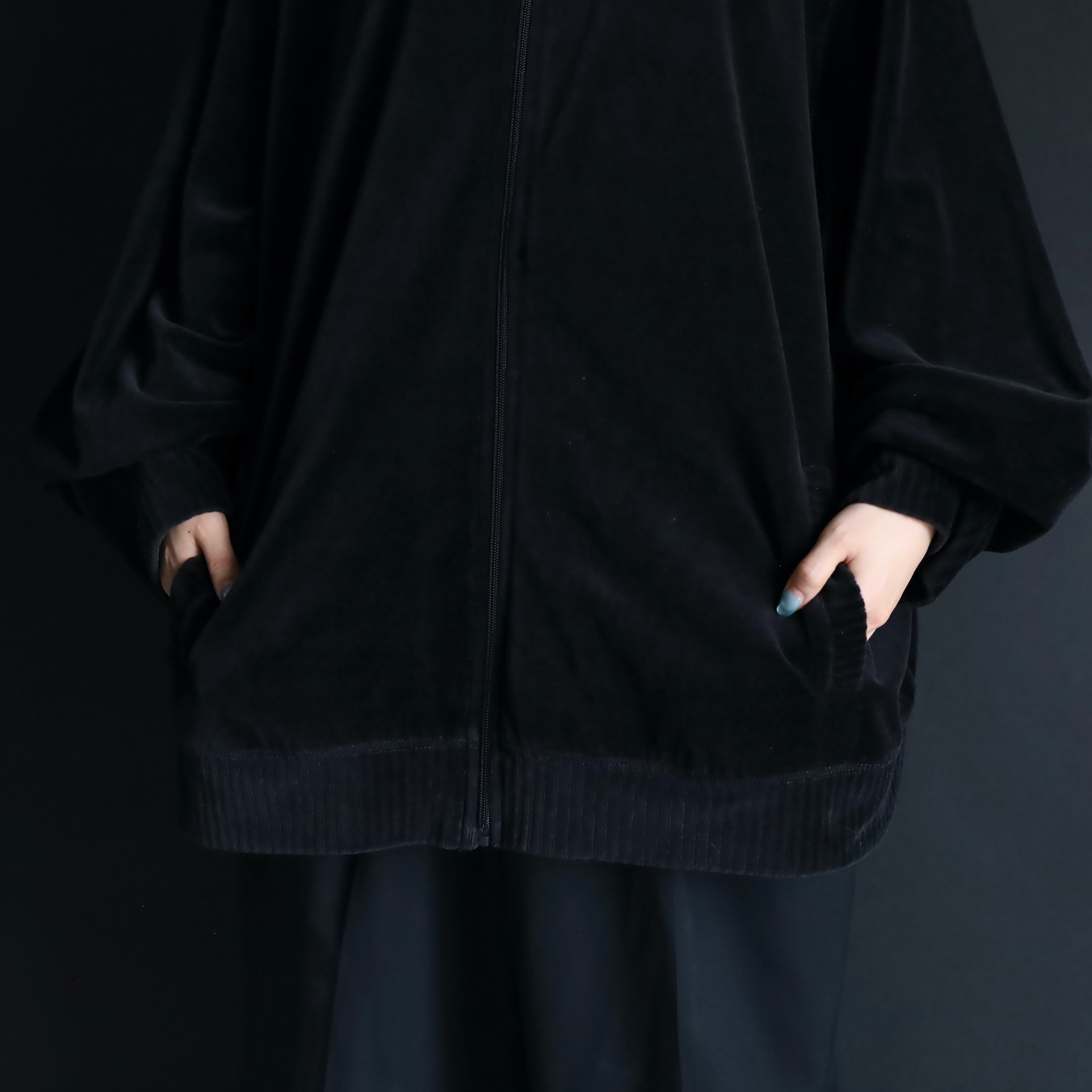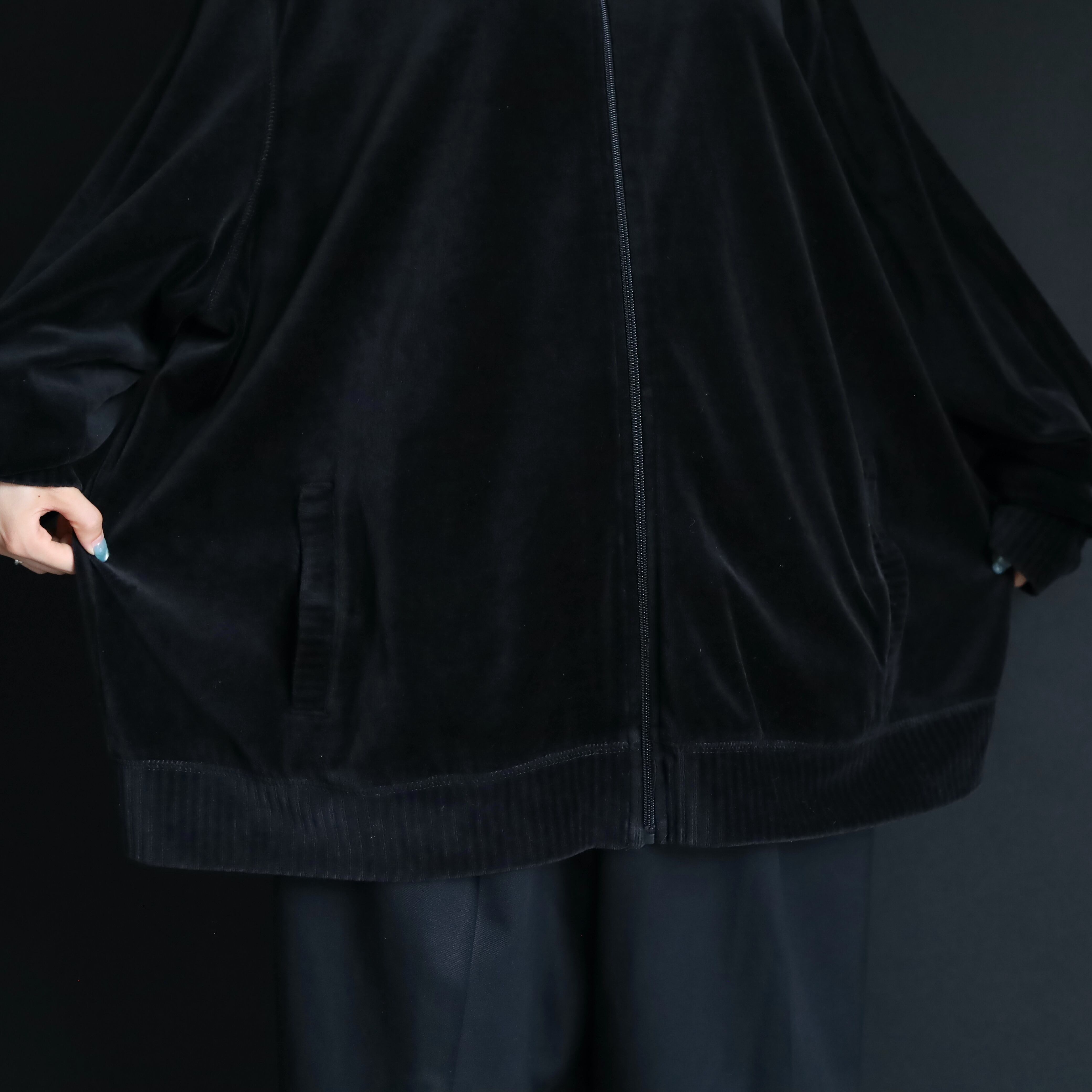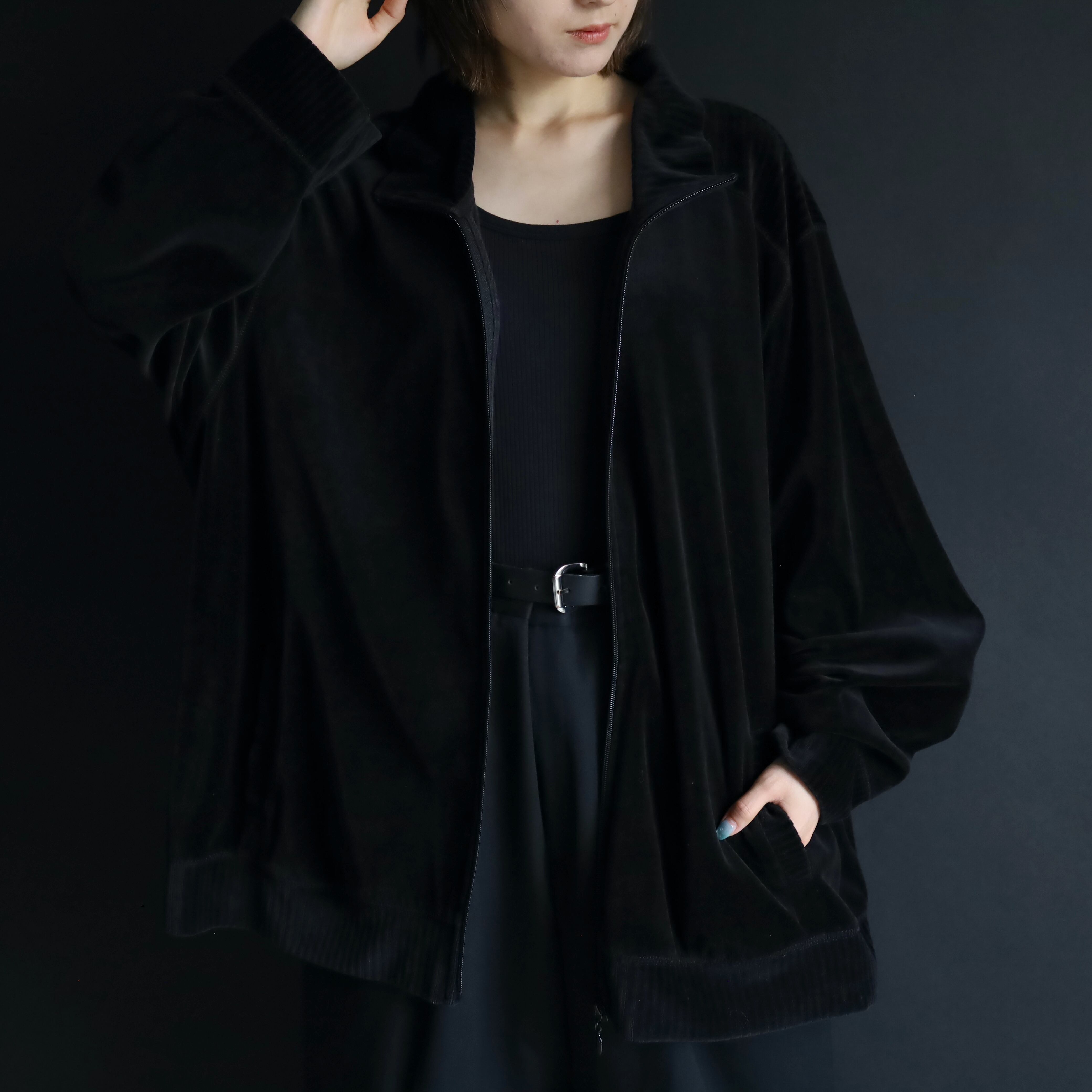 ブラック単色で構成されたトラックジャケットタイプ.