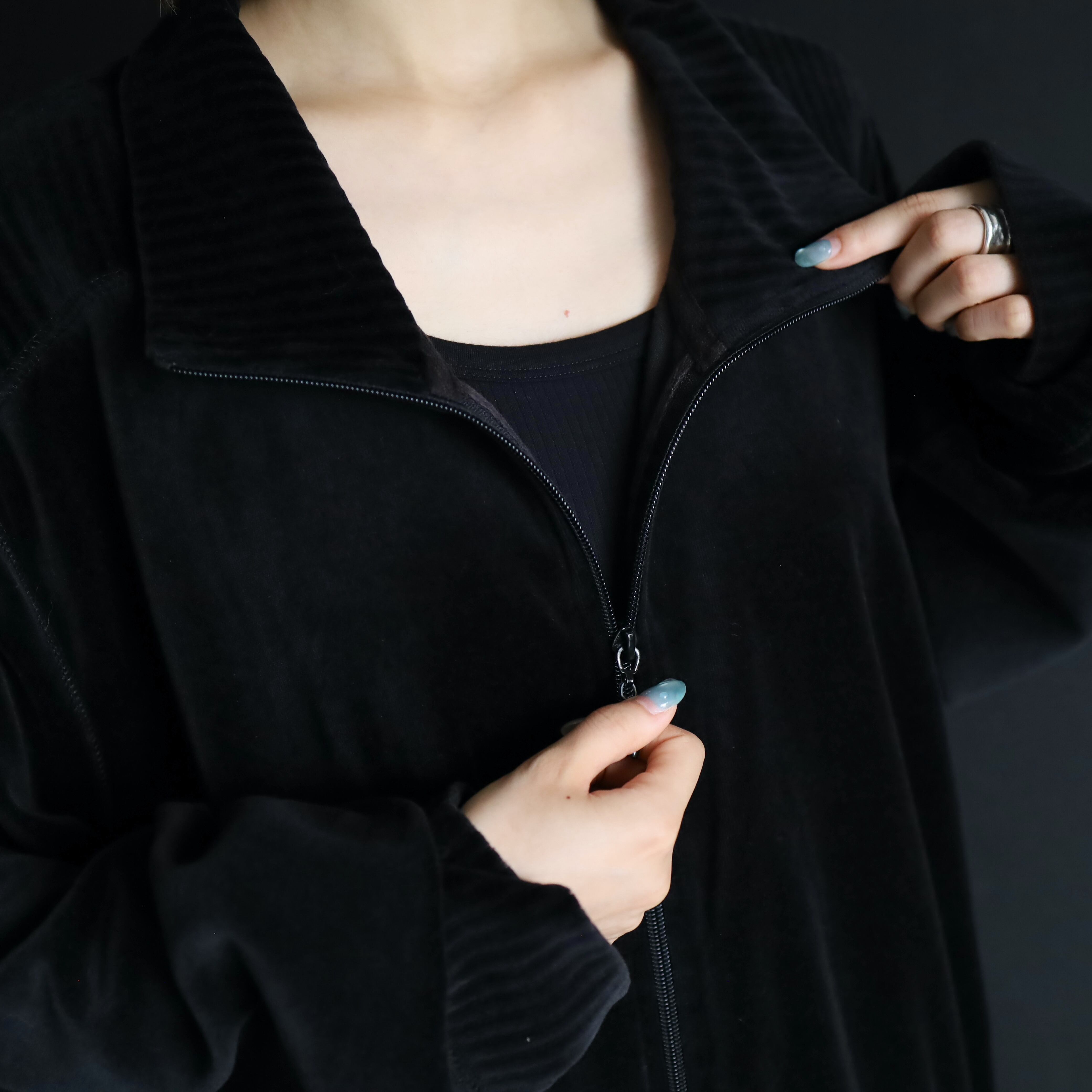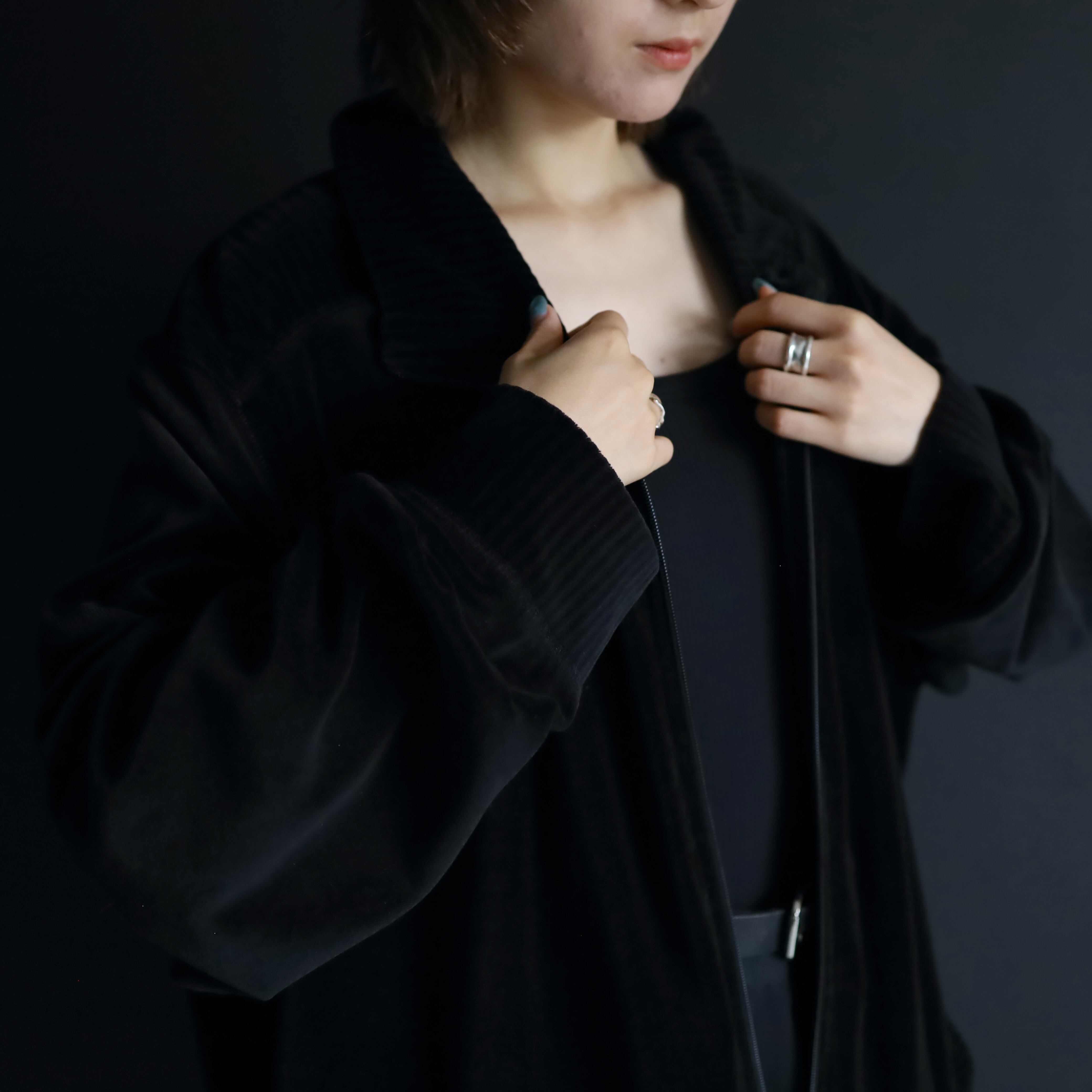気温の下がってきたシーズン,サラッと羽織れる形のいいベロアブルゾンの入荷です.