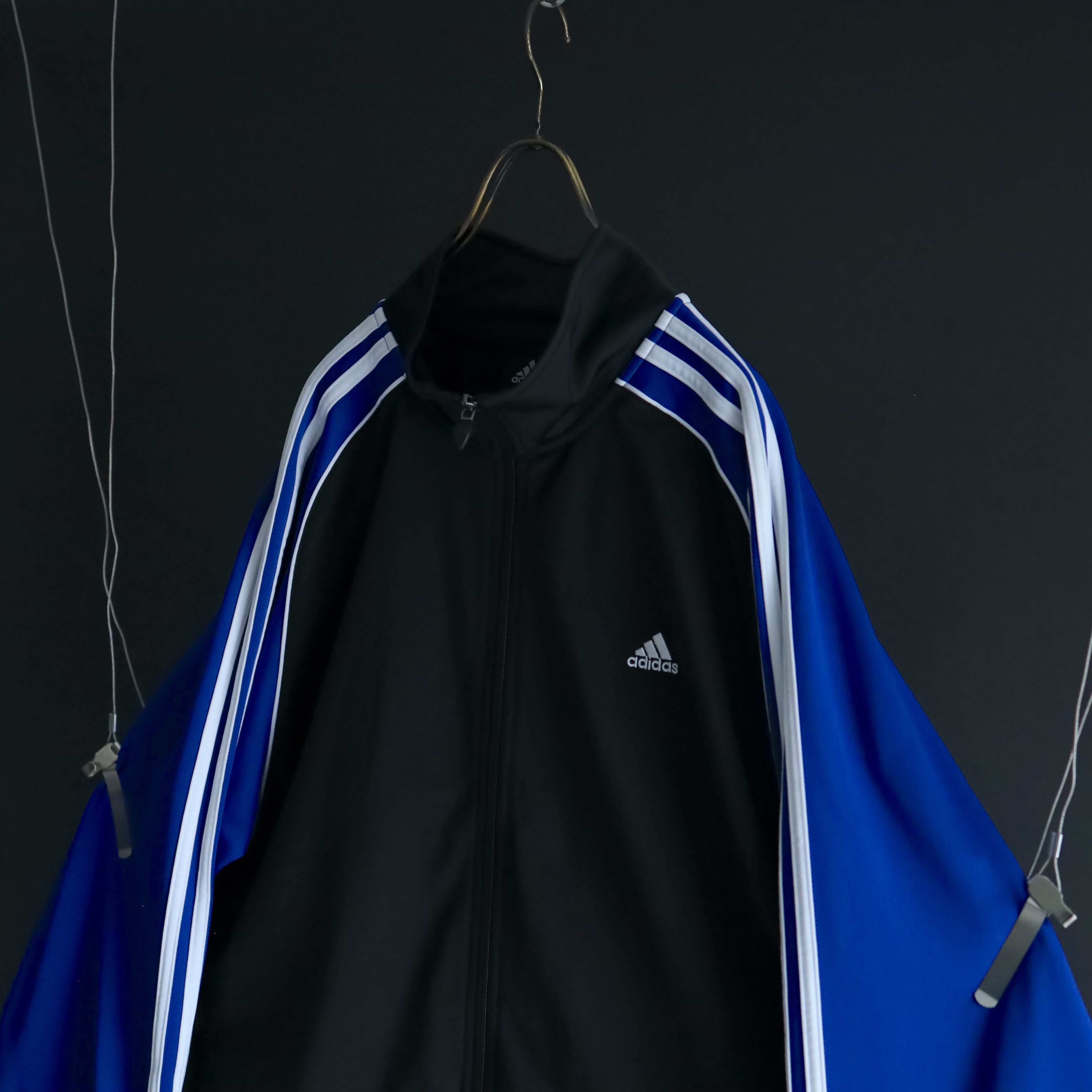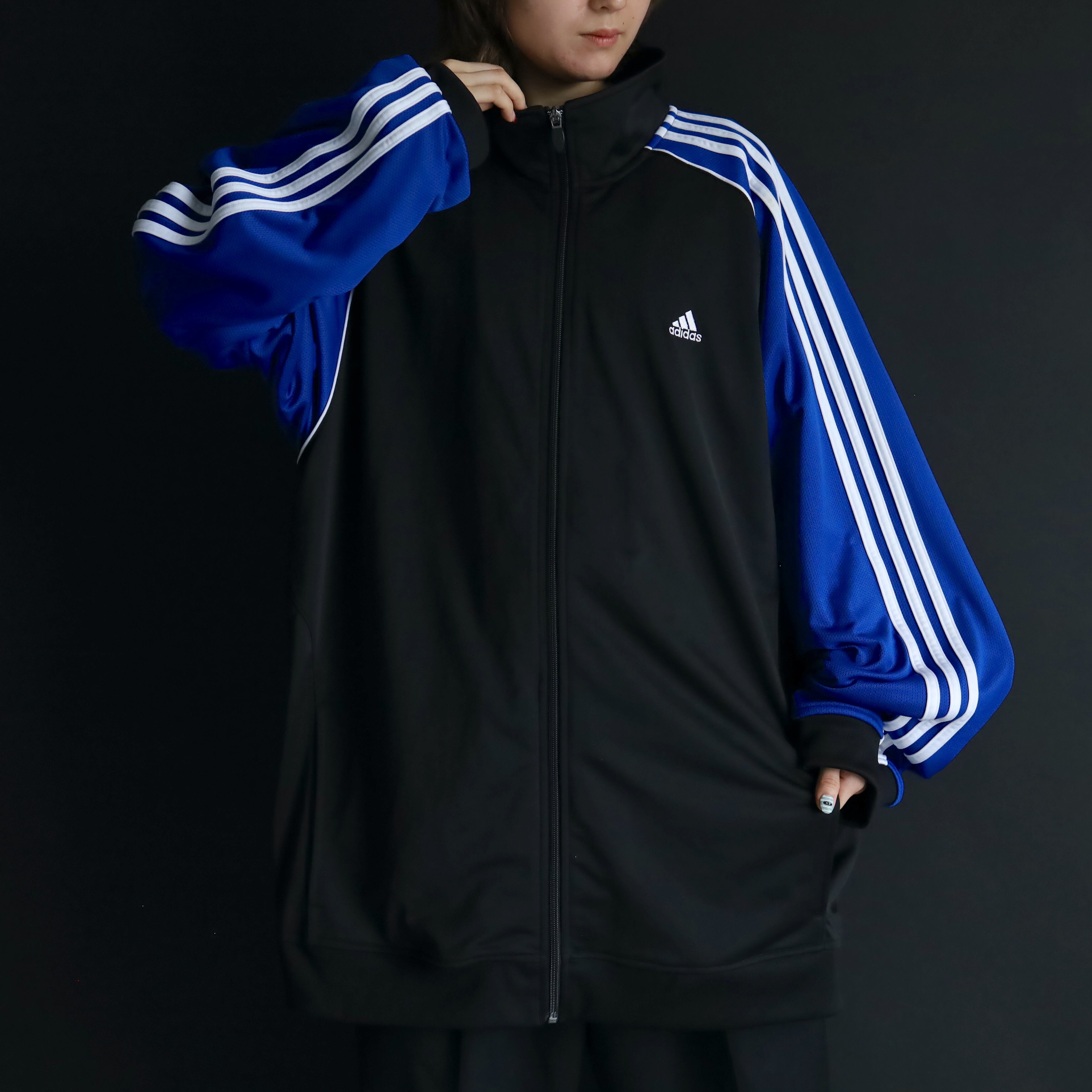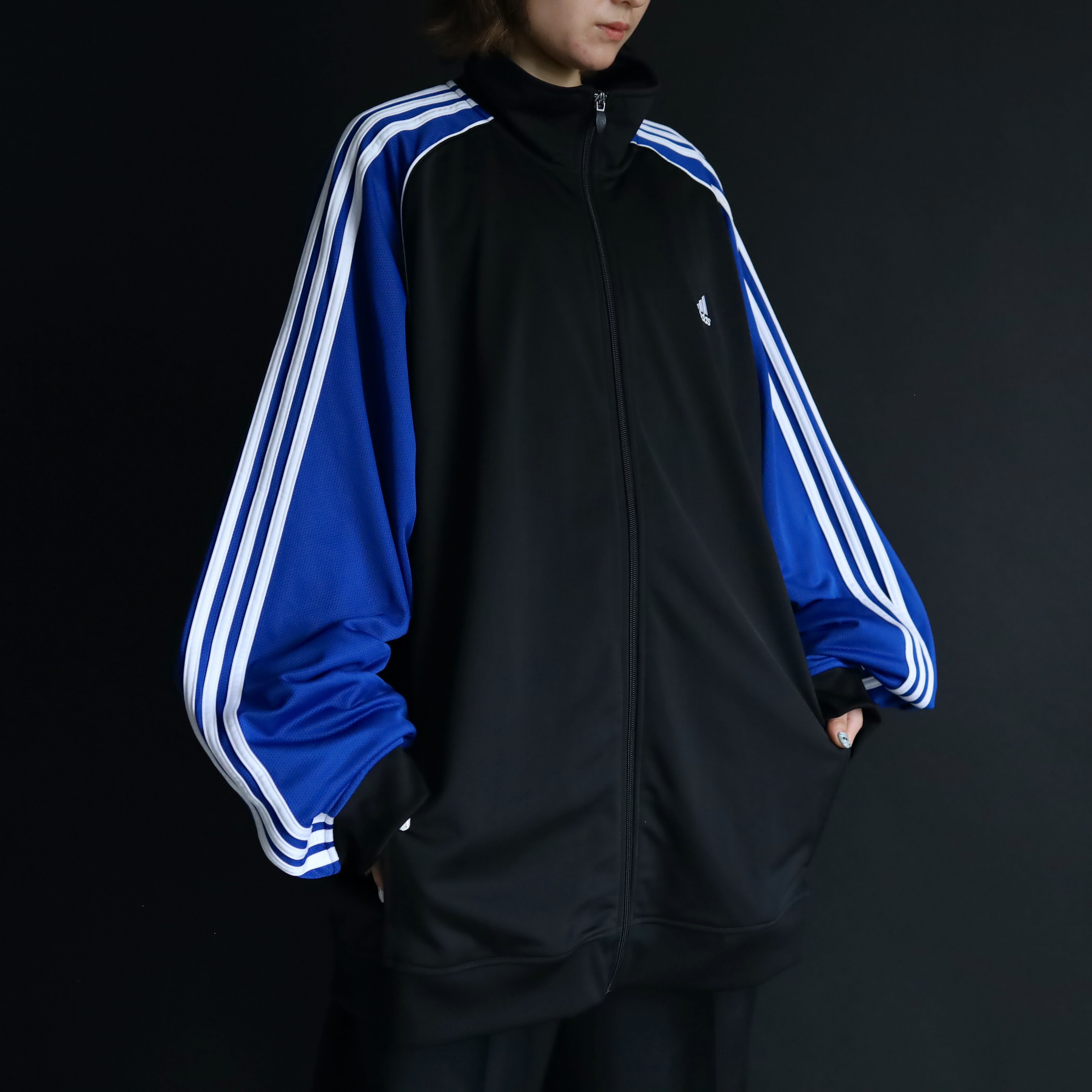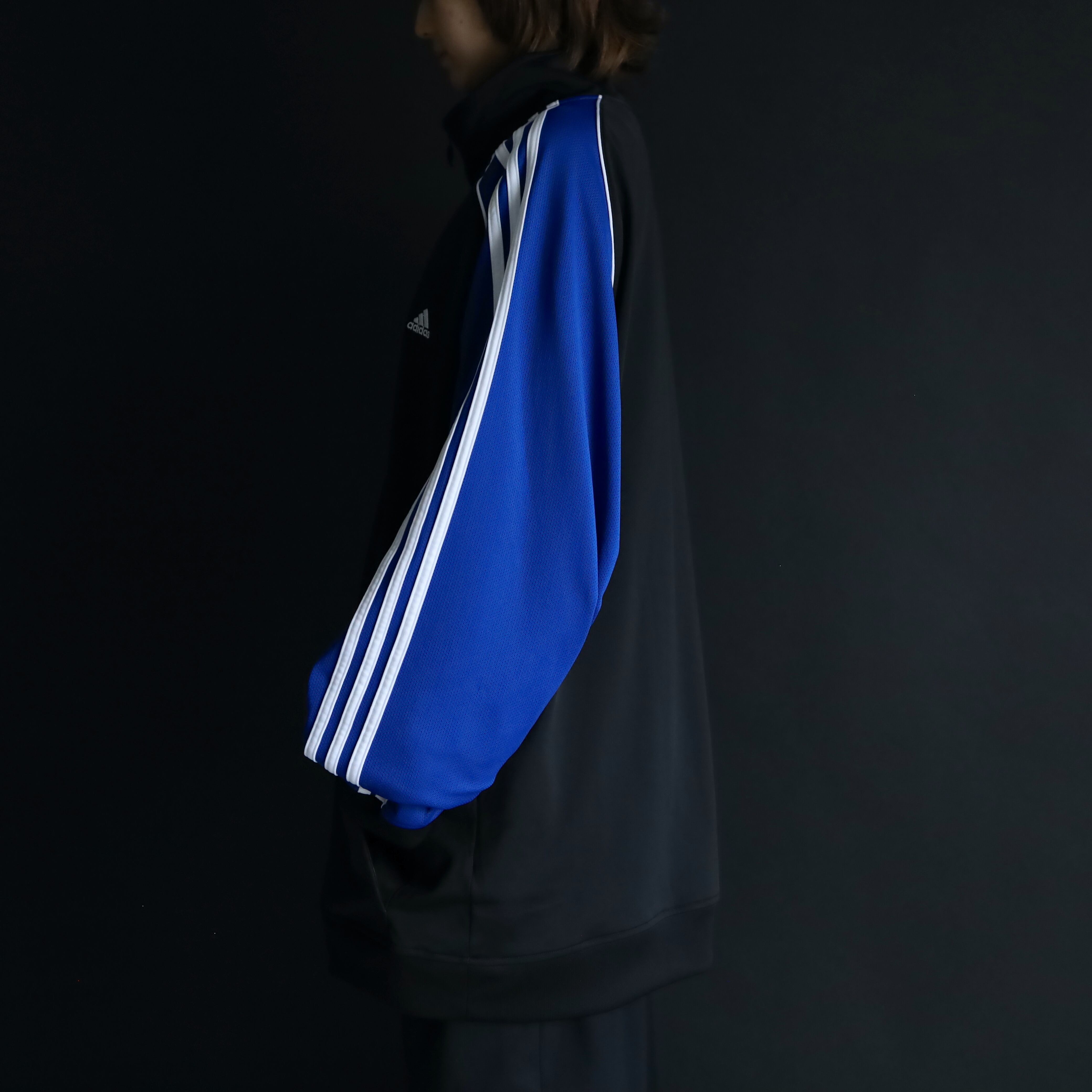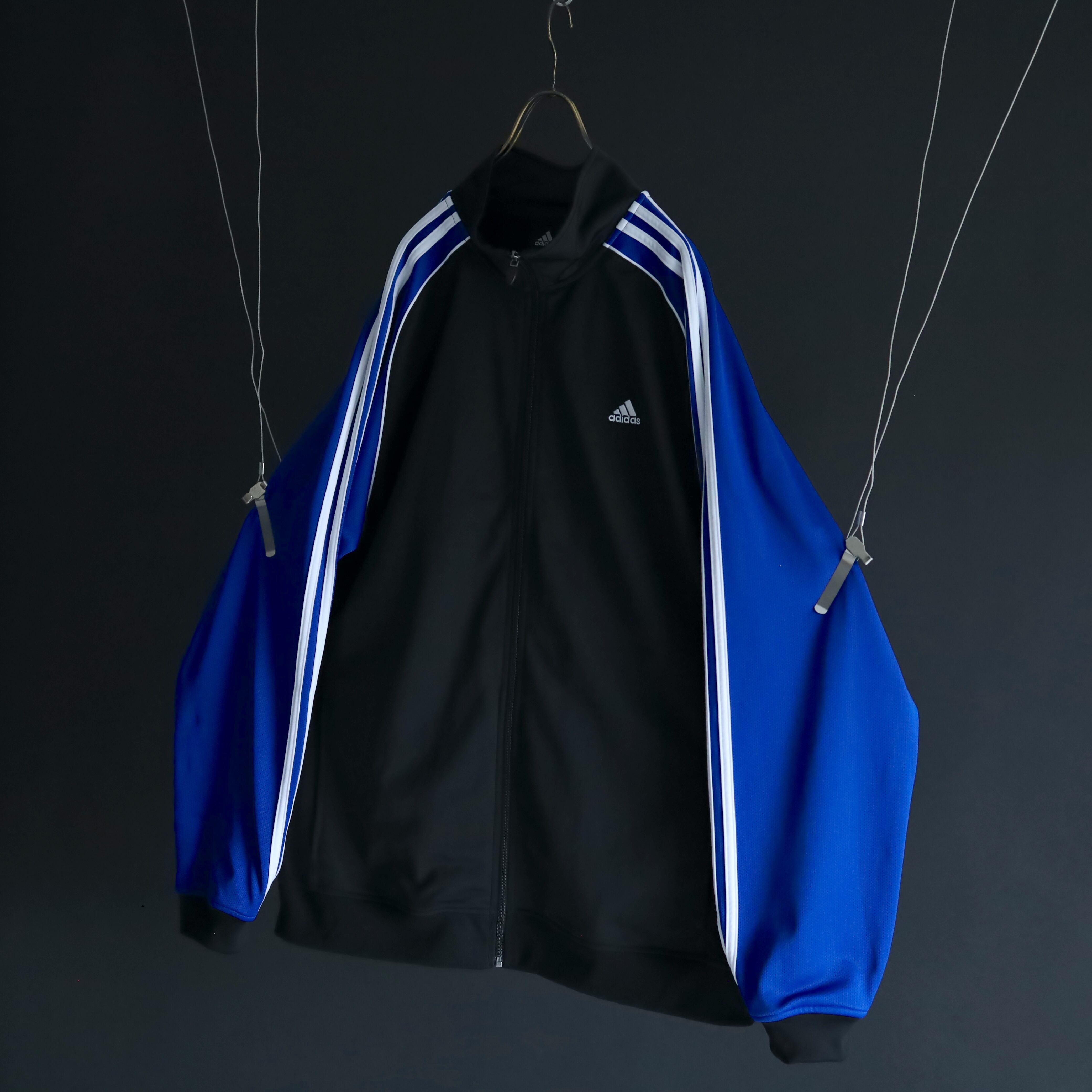 ブラックカラーの身頃に,ブルーカラーの袖切替.
