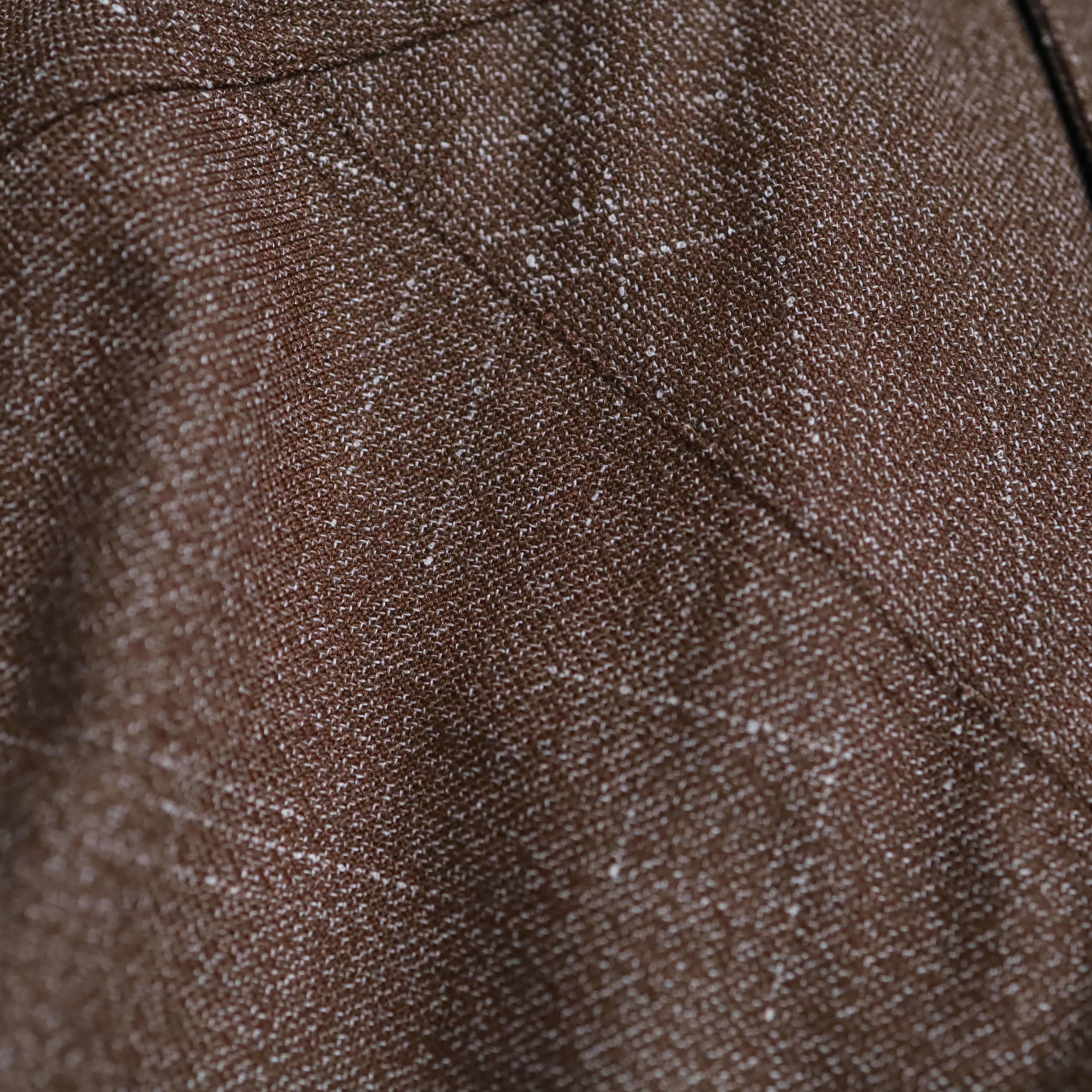 太めのポリエステル糸をギュッと織り込んだ生地で,ポリエステル生地特有のハリやツヤはなく,まるでコットンのようなコシのある生地感.