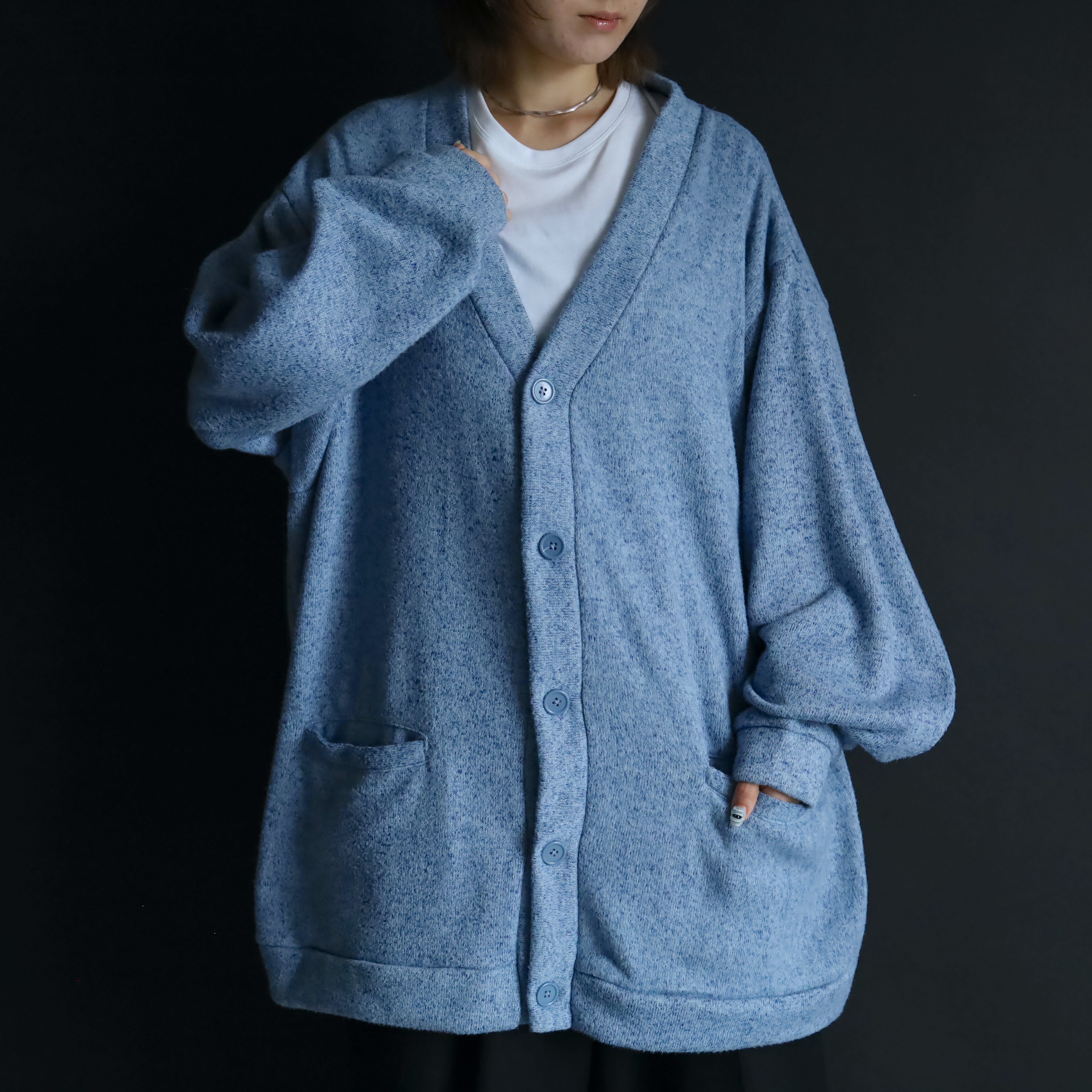 古着であまり見ない配色と素材感のニットカーディガン.