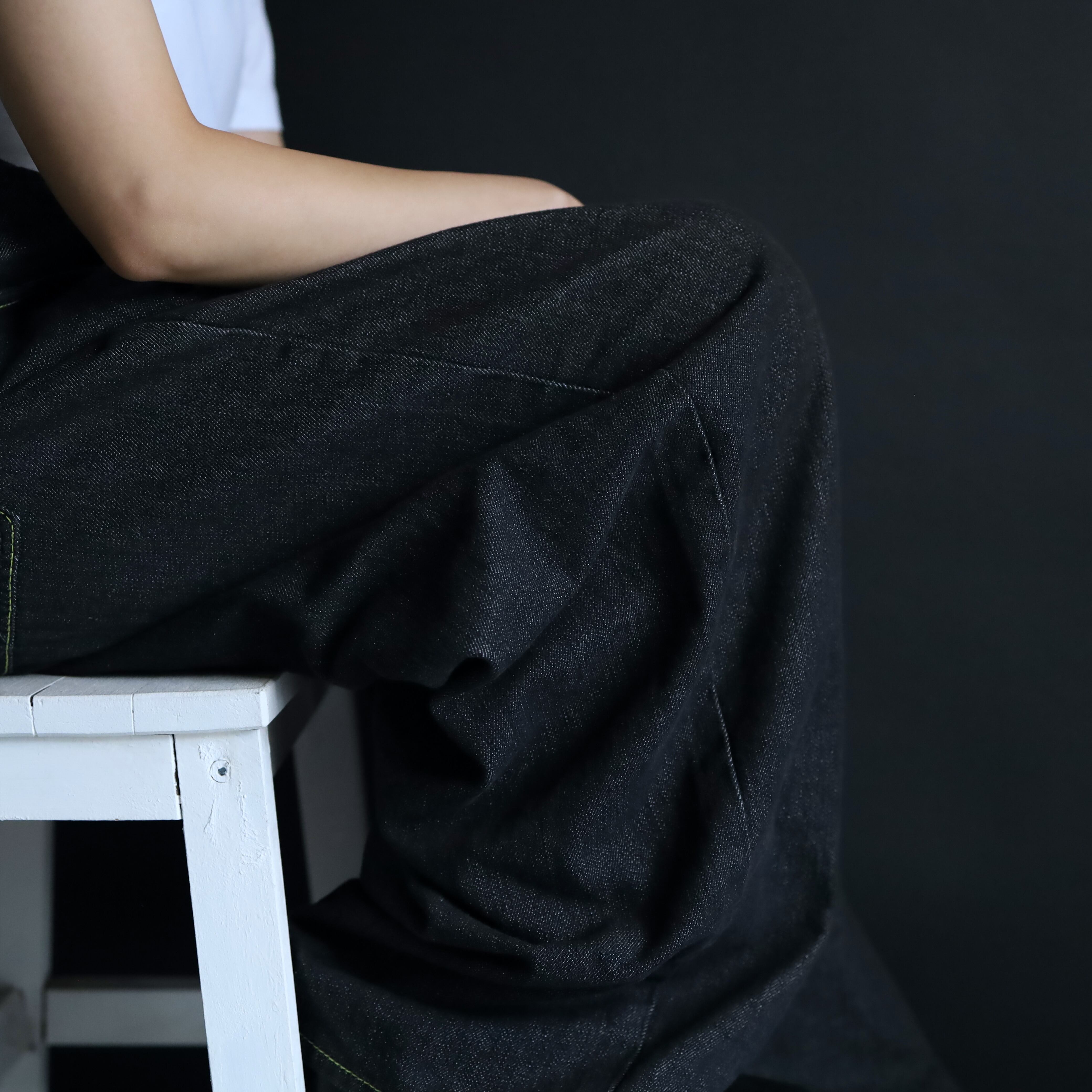 ブラックカラーのライトオンスデニム.
