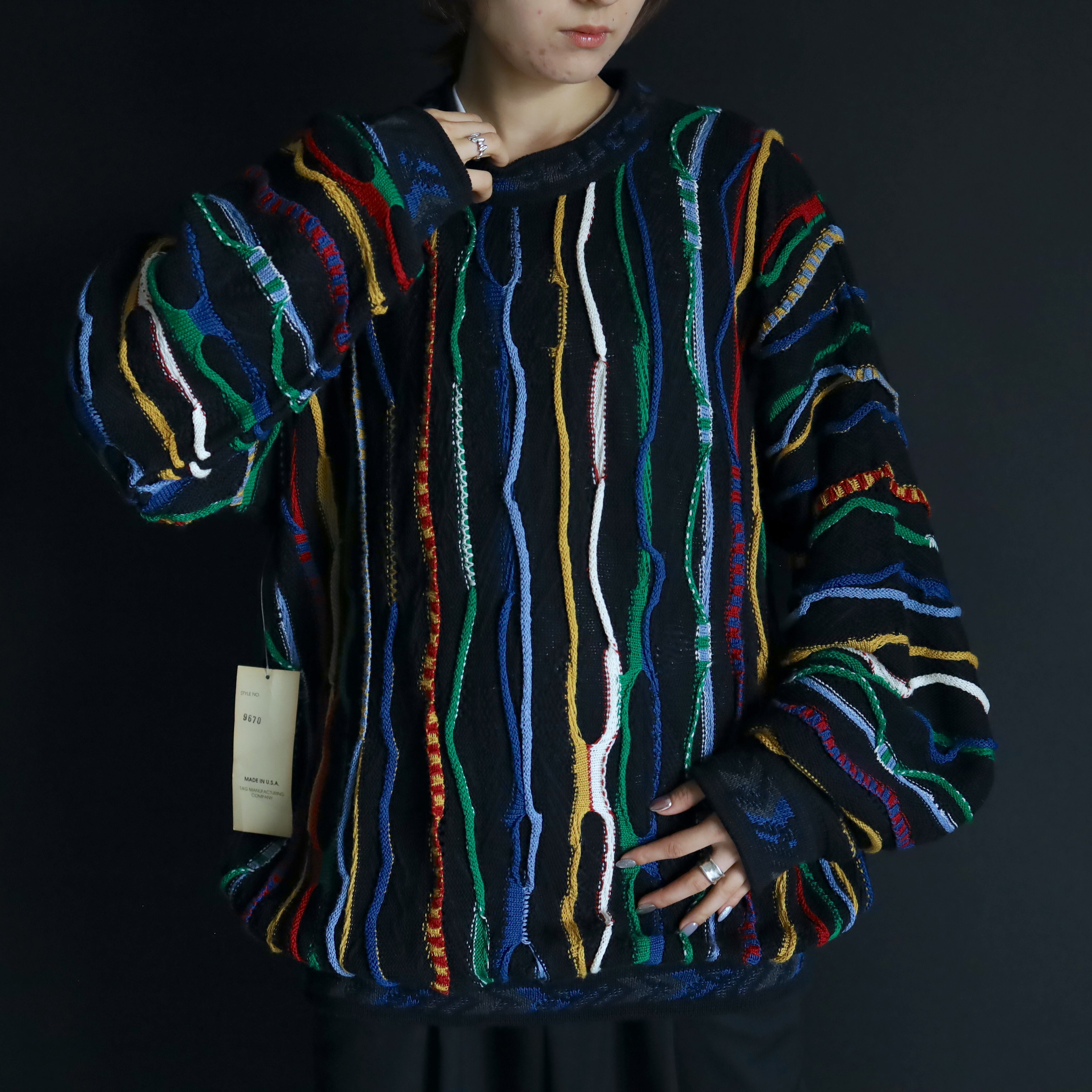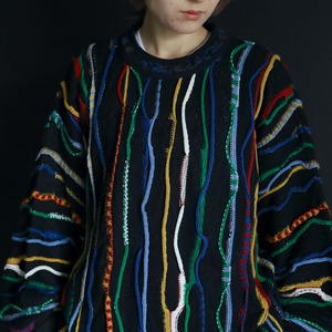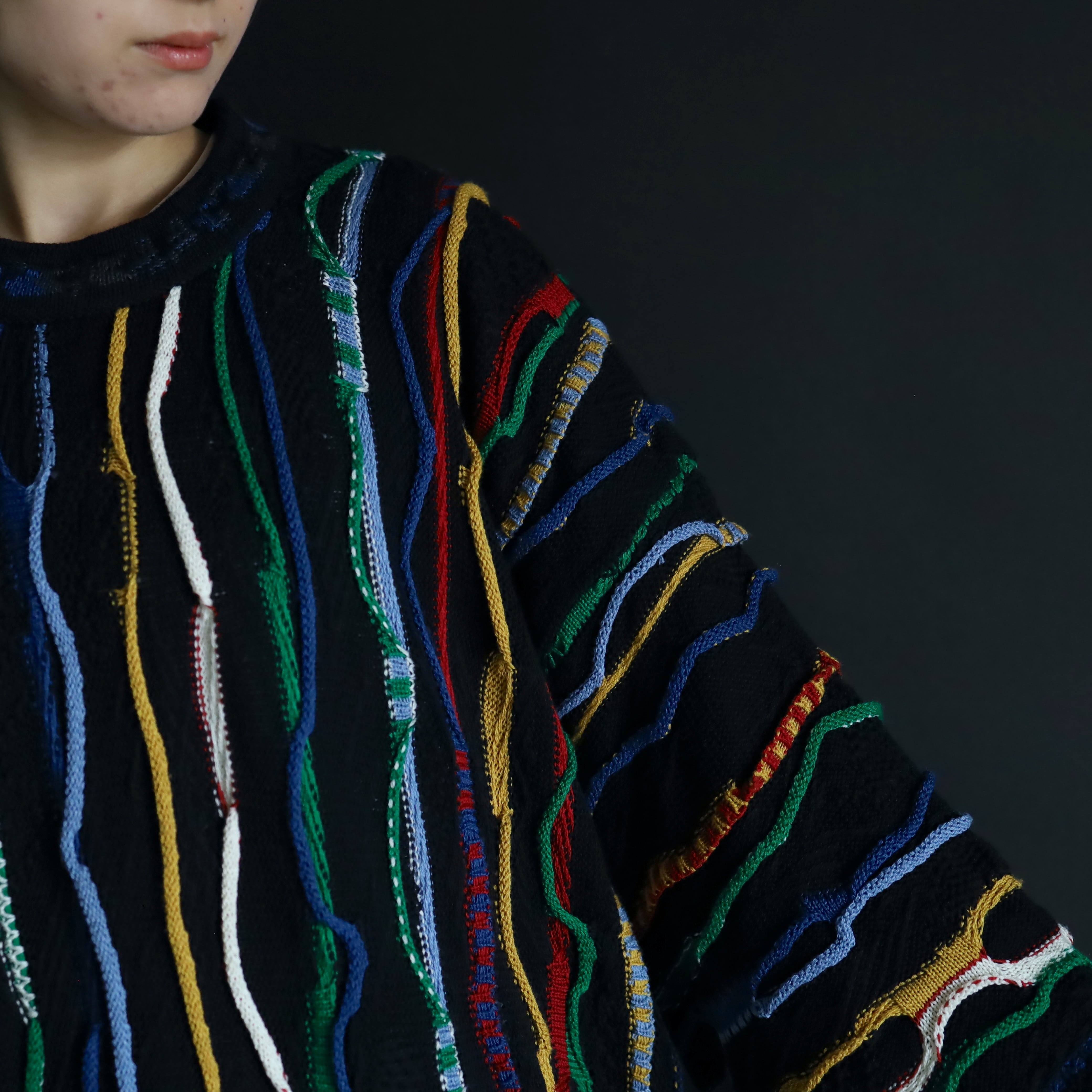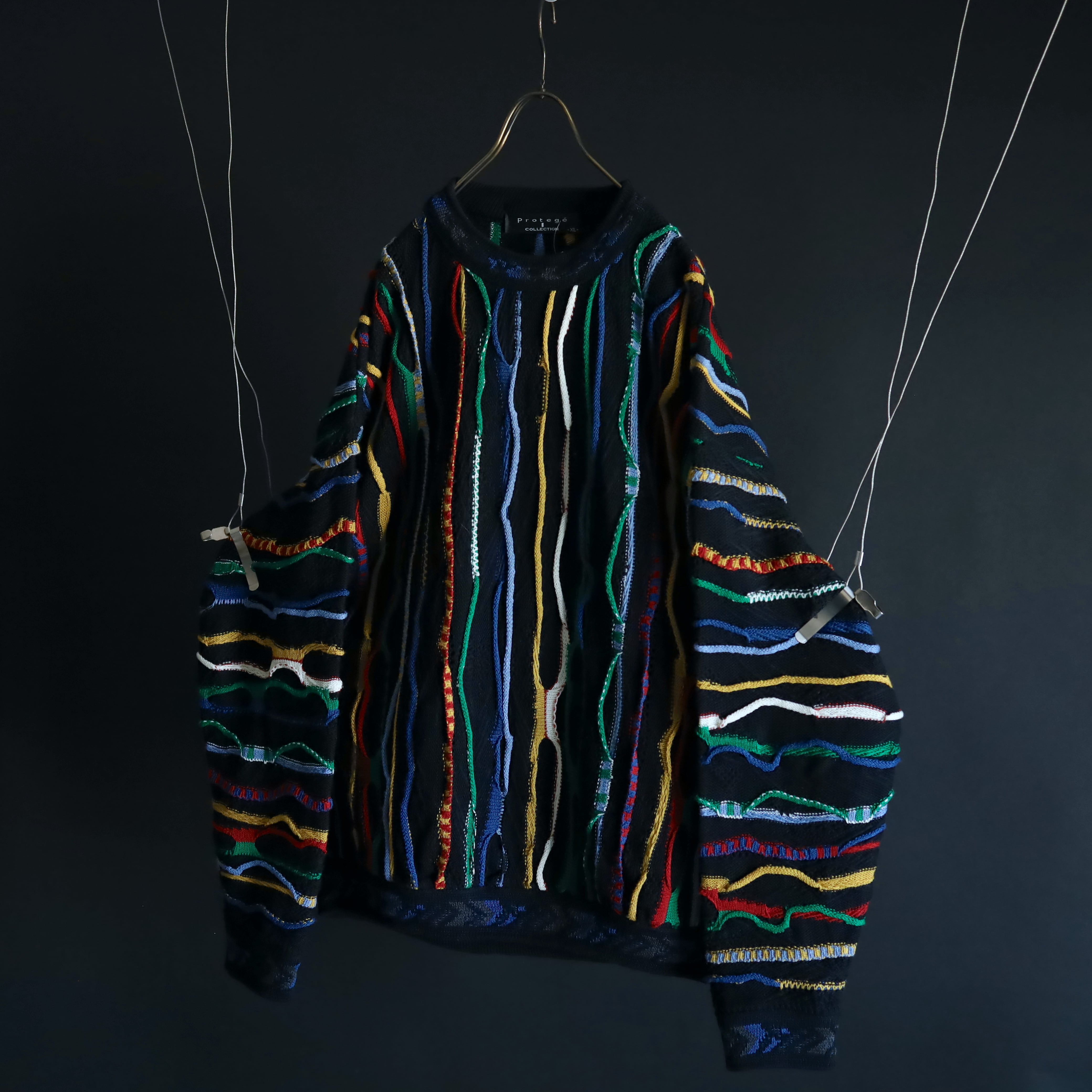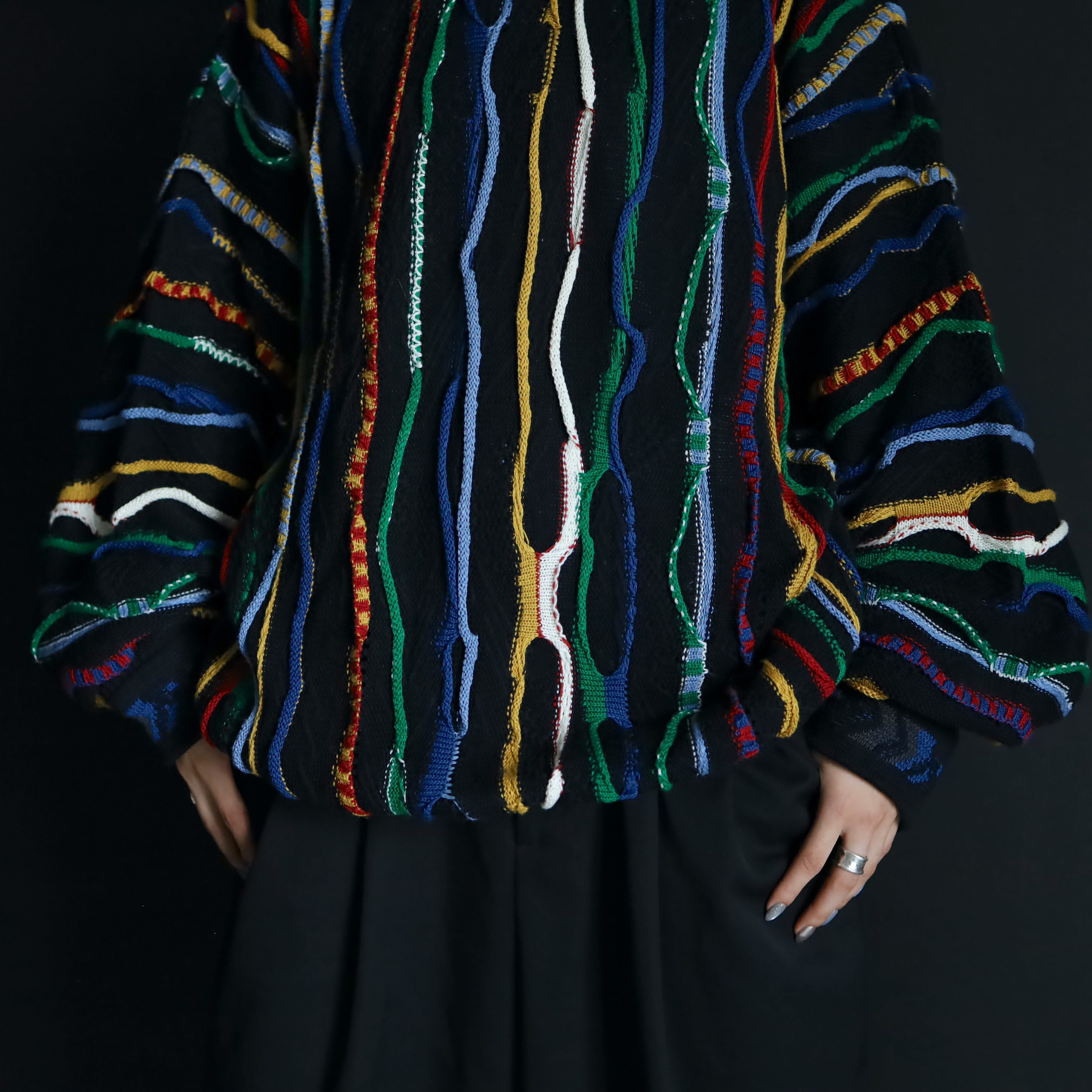 3Dニットの肝である立体的な畝は,レッド,ブルー,イエロー,グリーン,ホワイトなど,マルチカラーで不規則に構成されています.