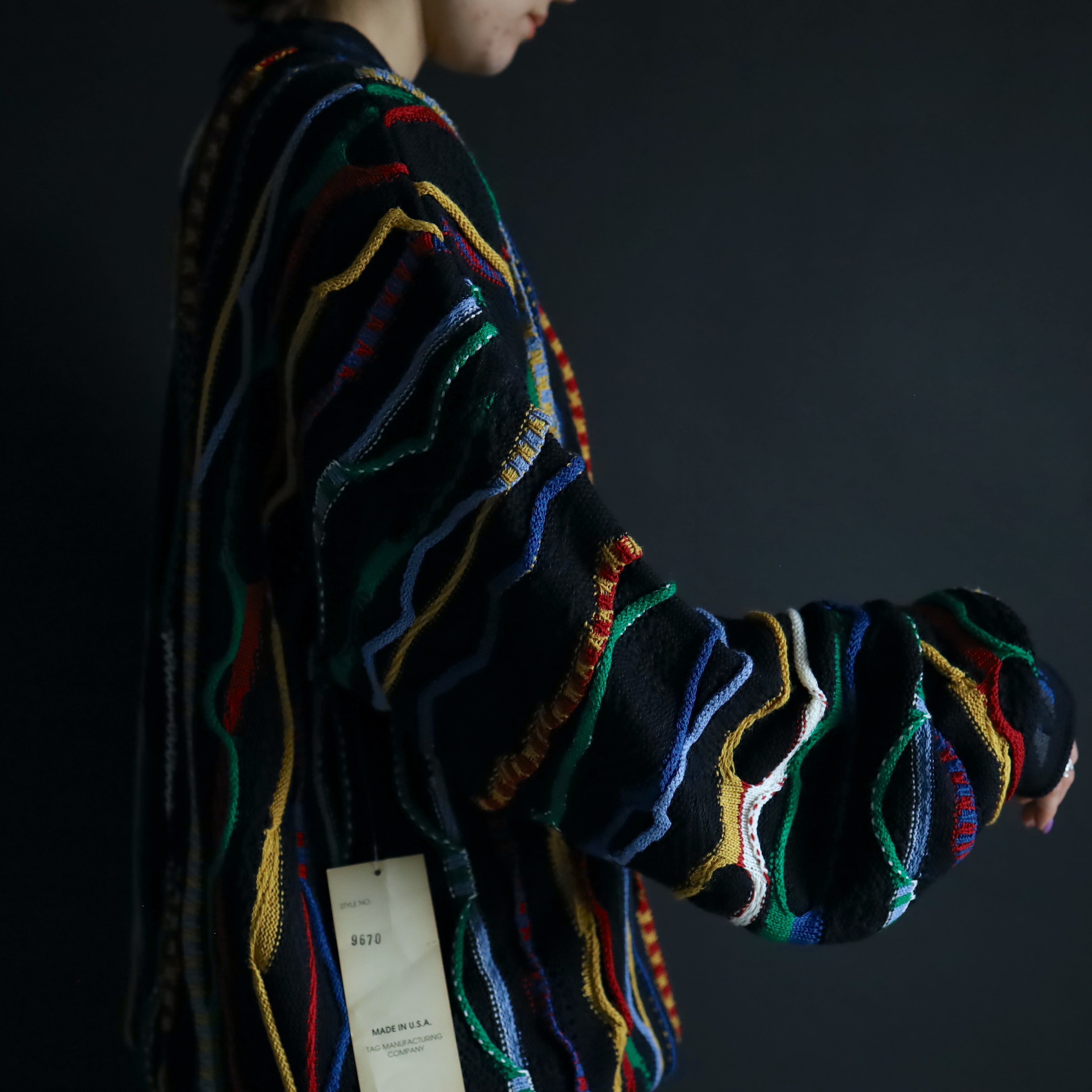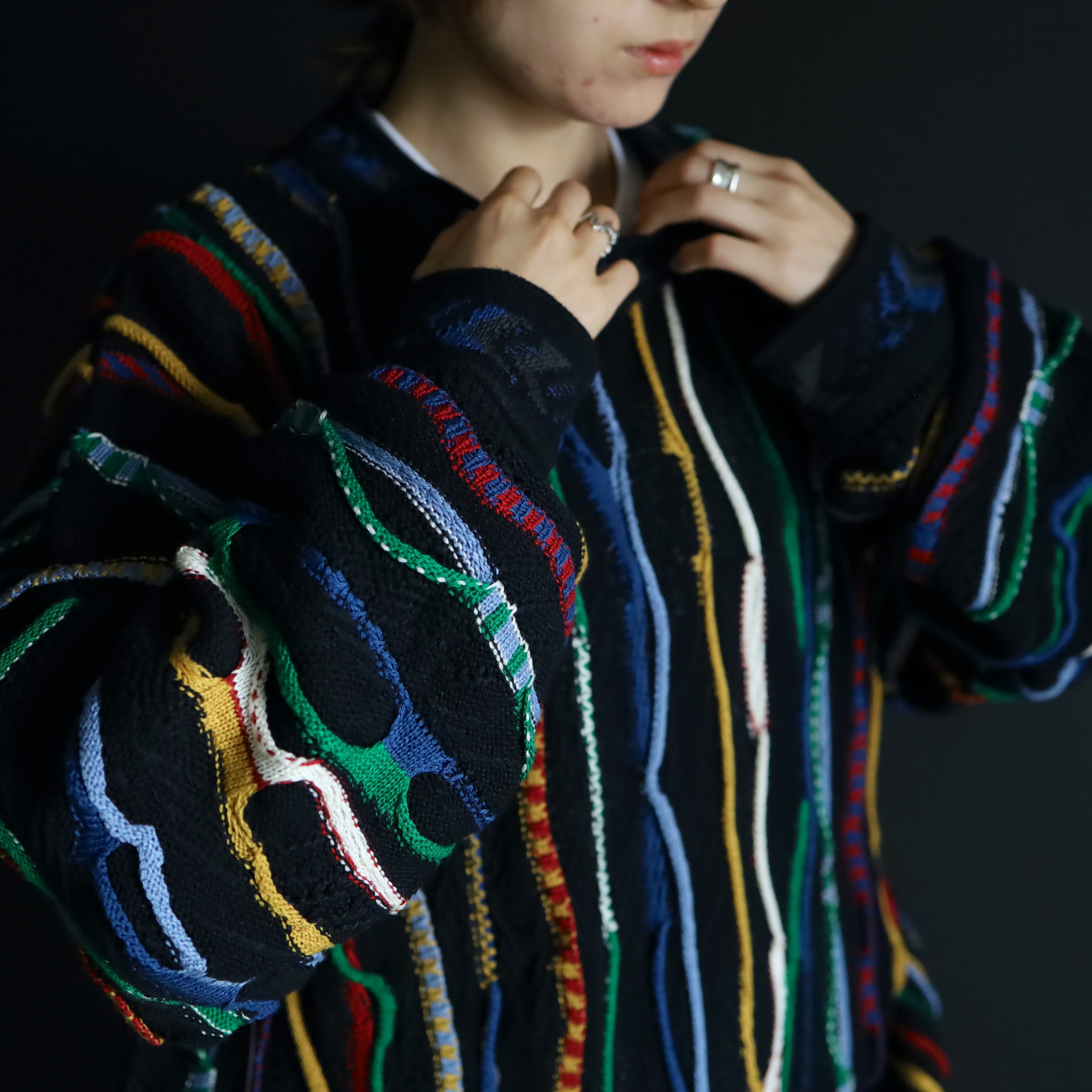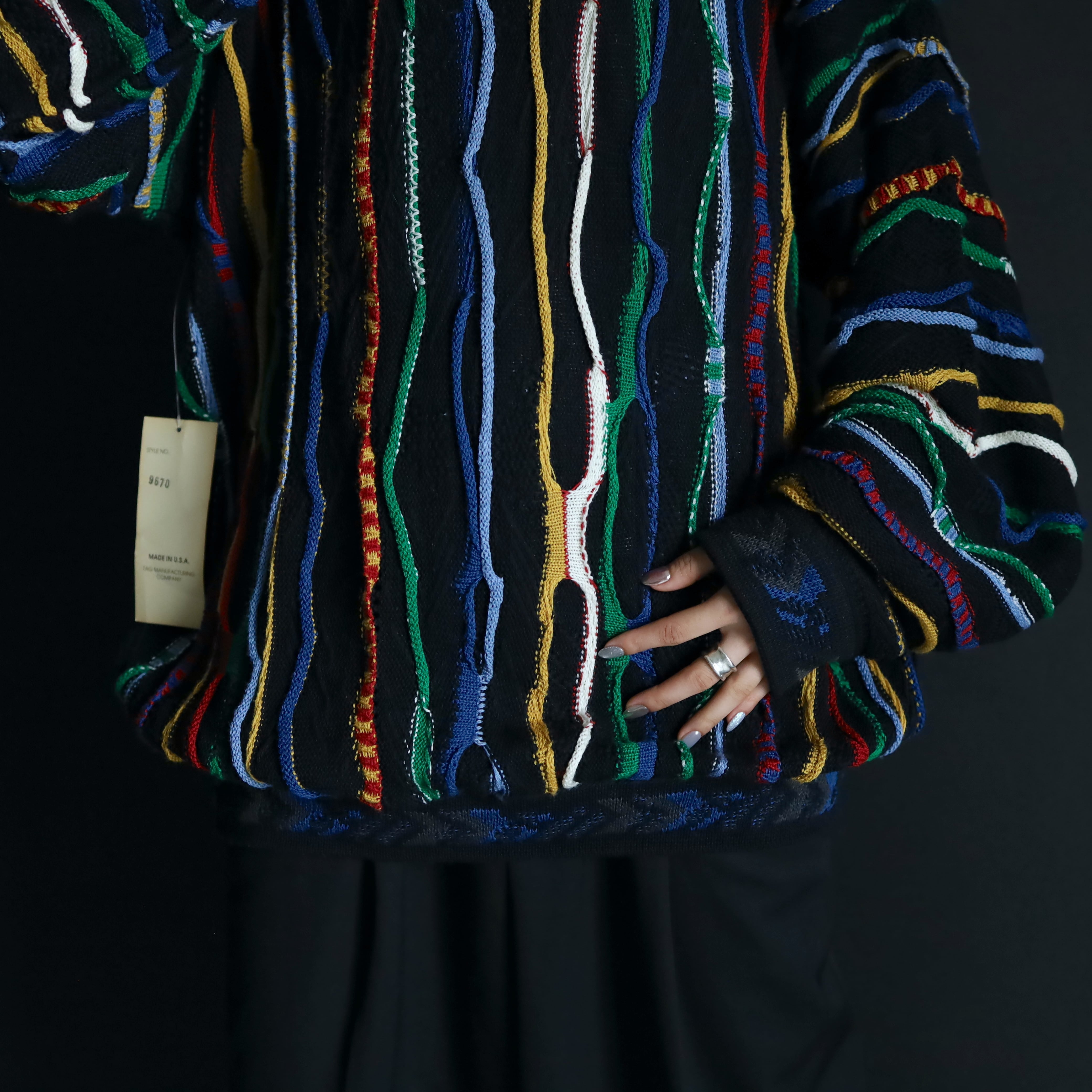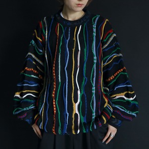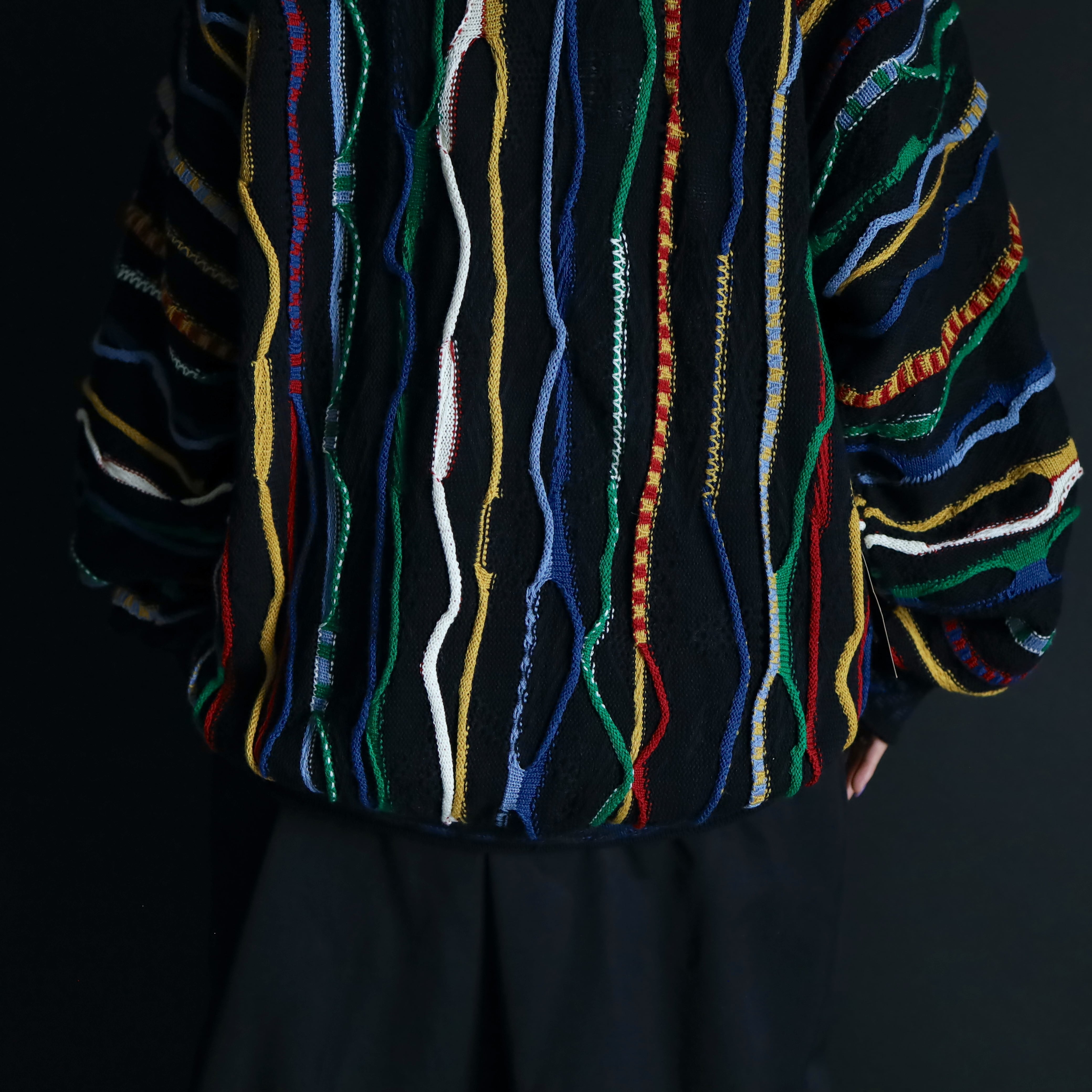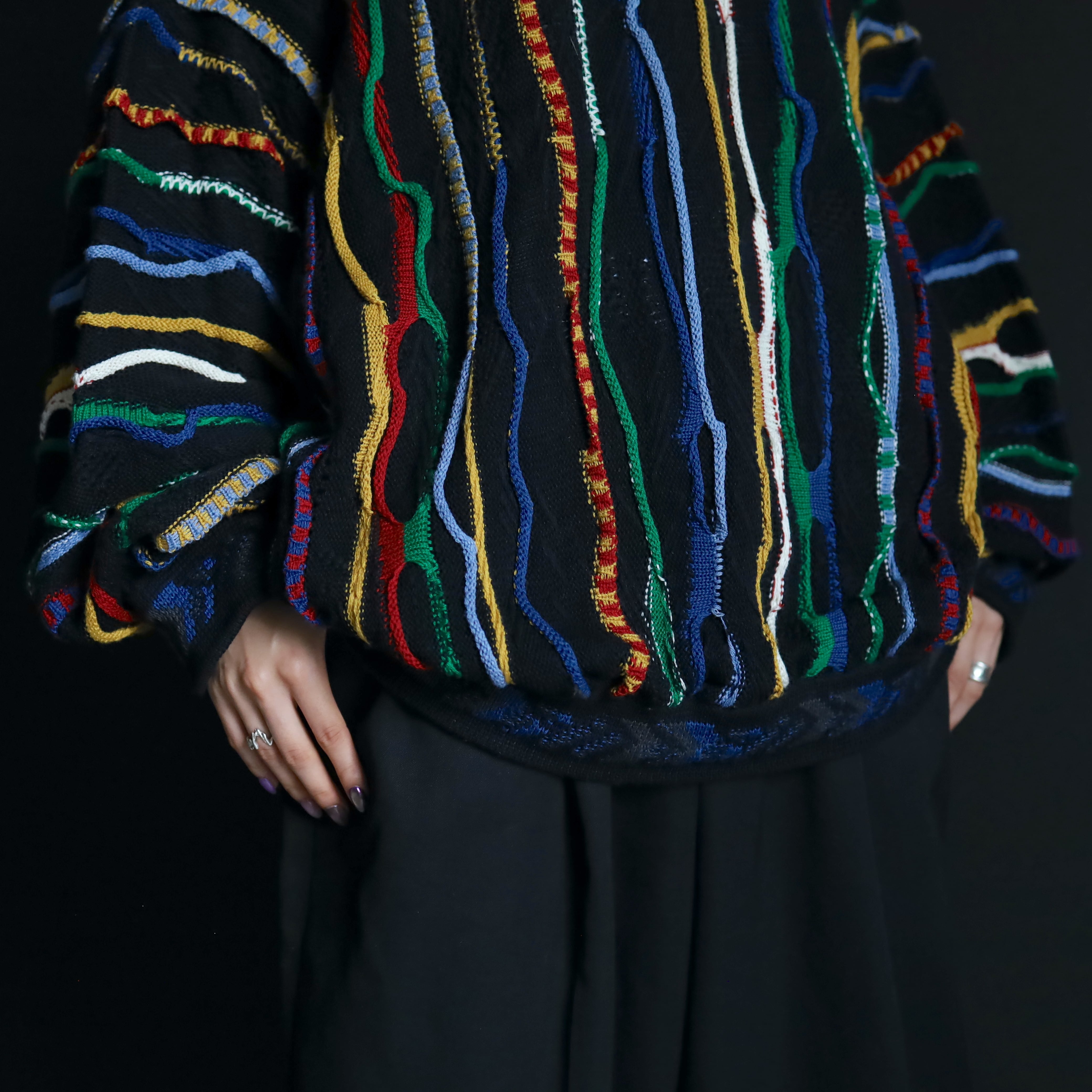 3Dニットの肝である立体的な畝は,レッド,ブルー,イエロー,グリーン,ホワイトなど,マルチカラーで不規則に構成されています.