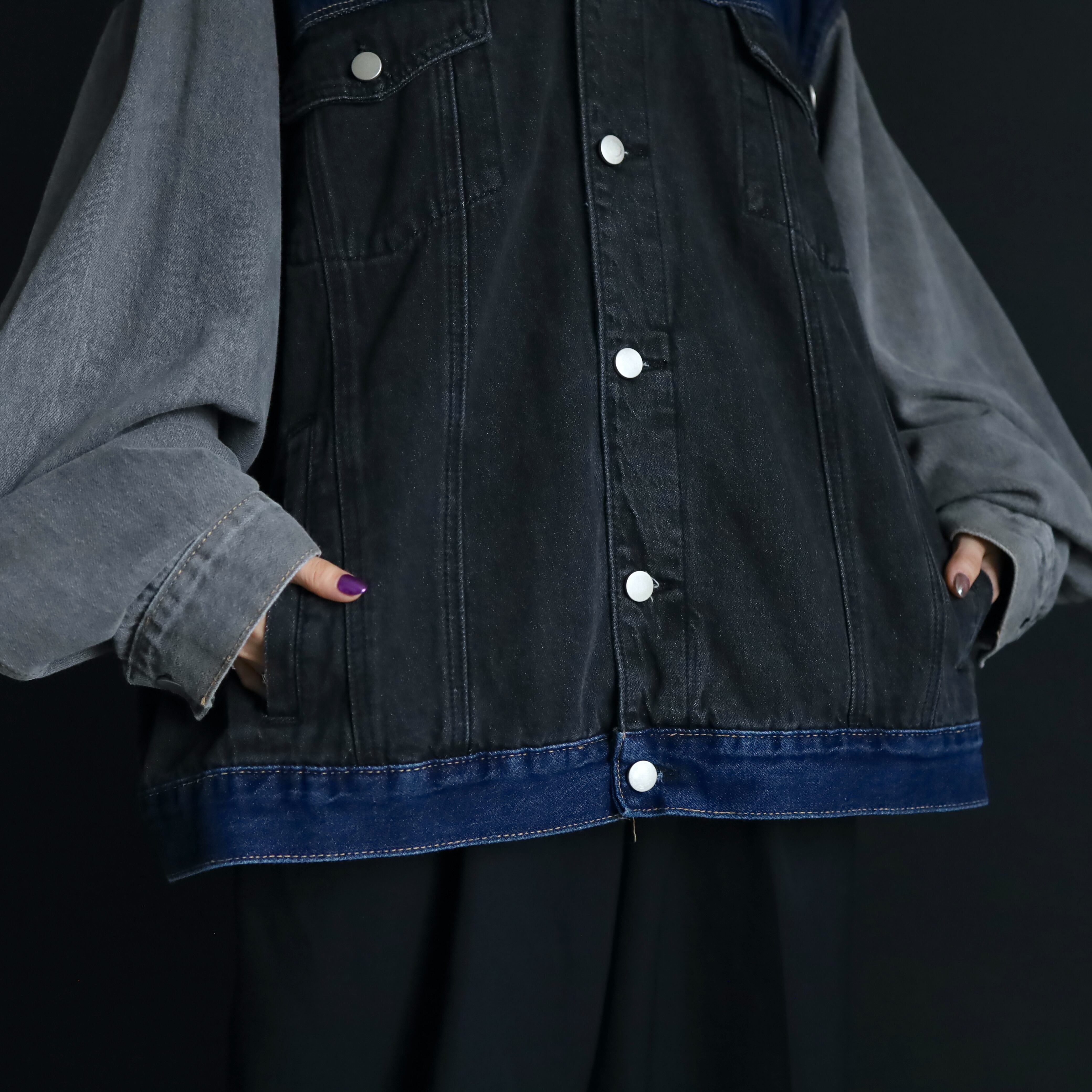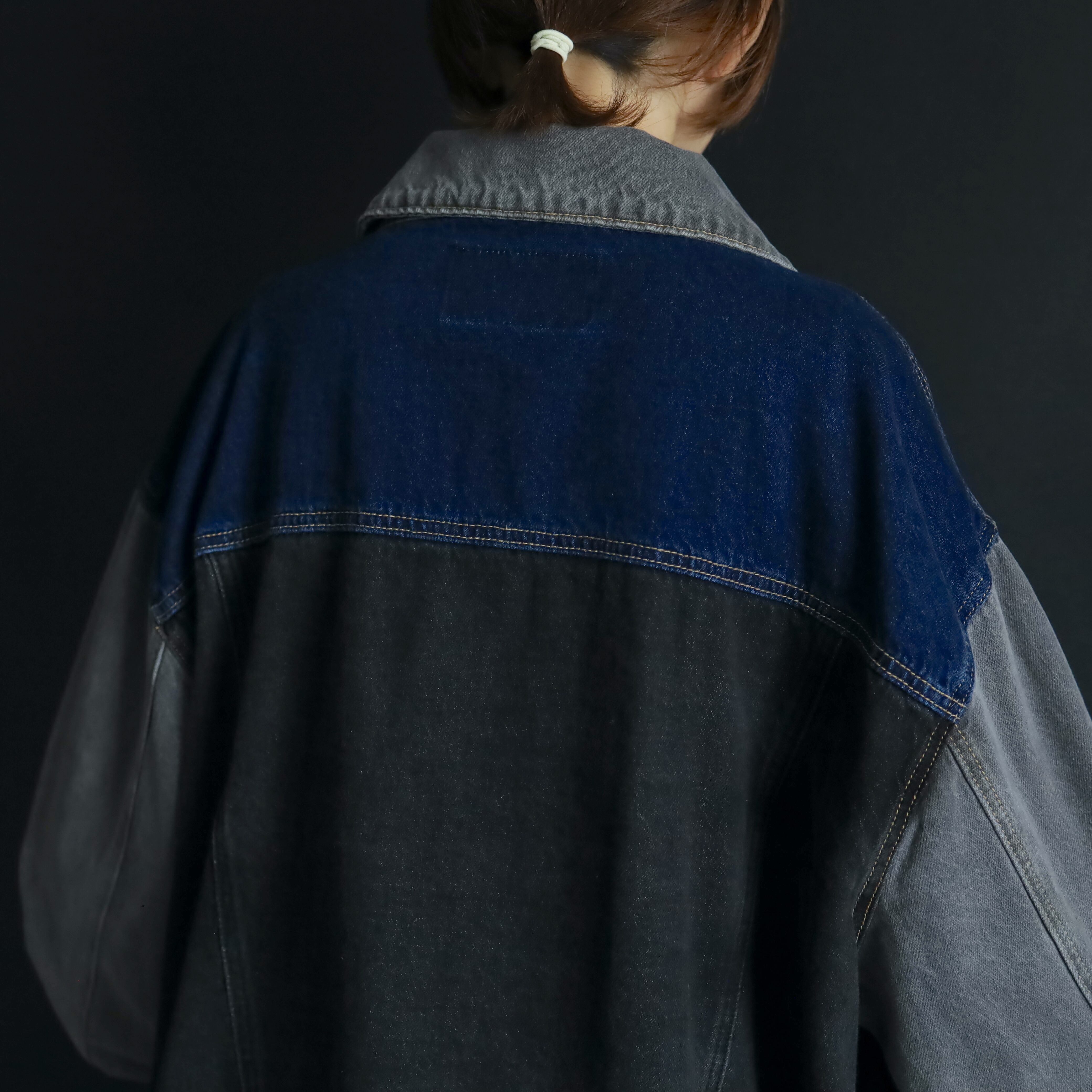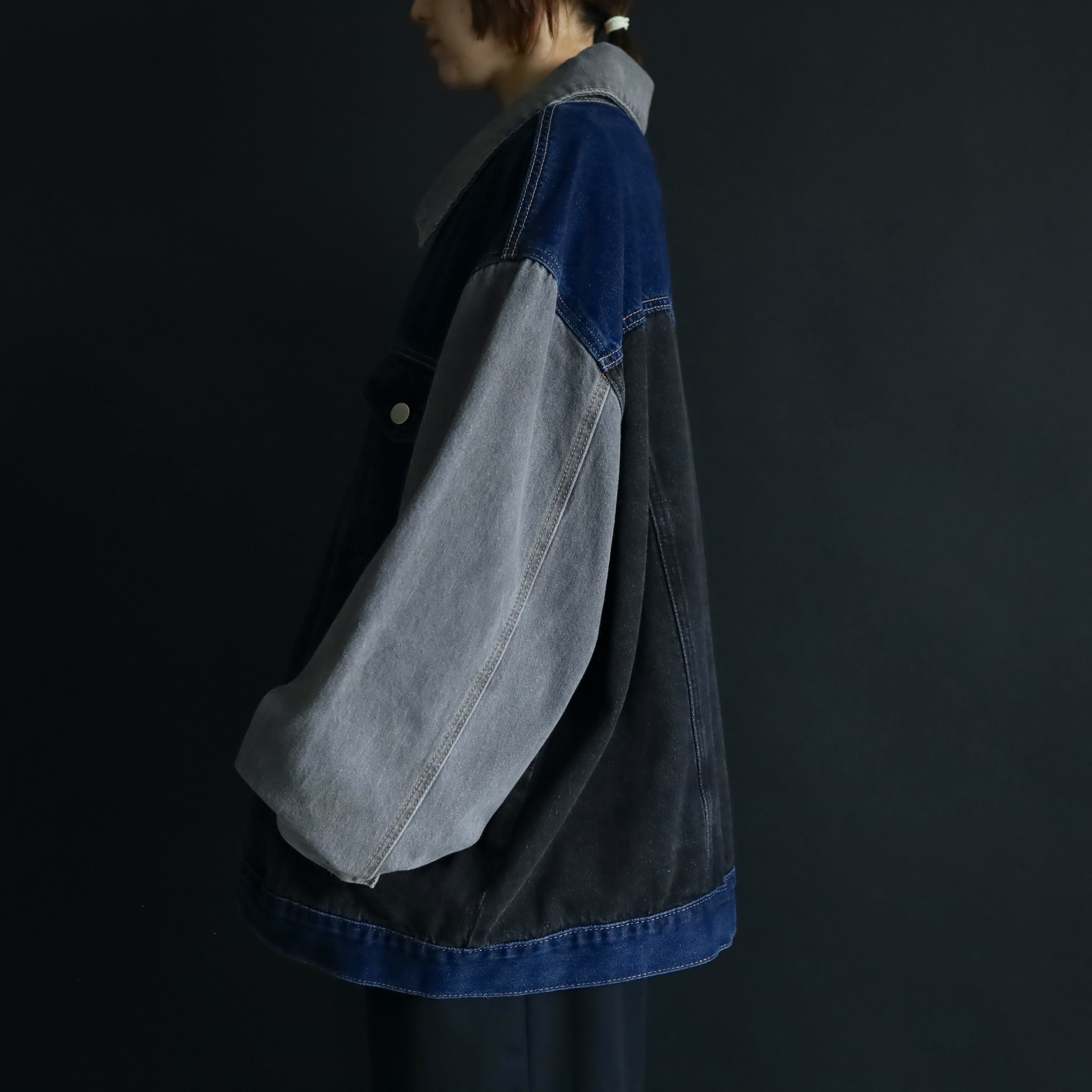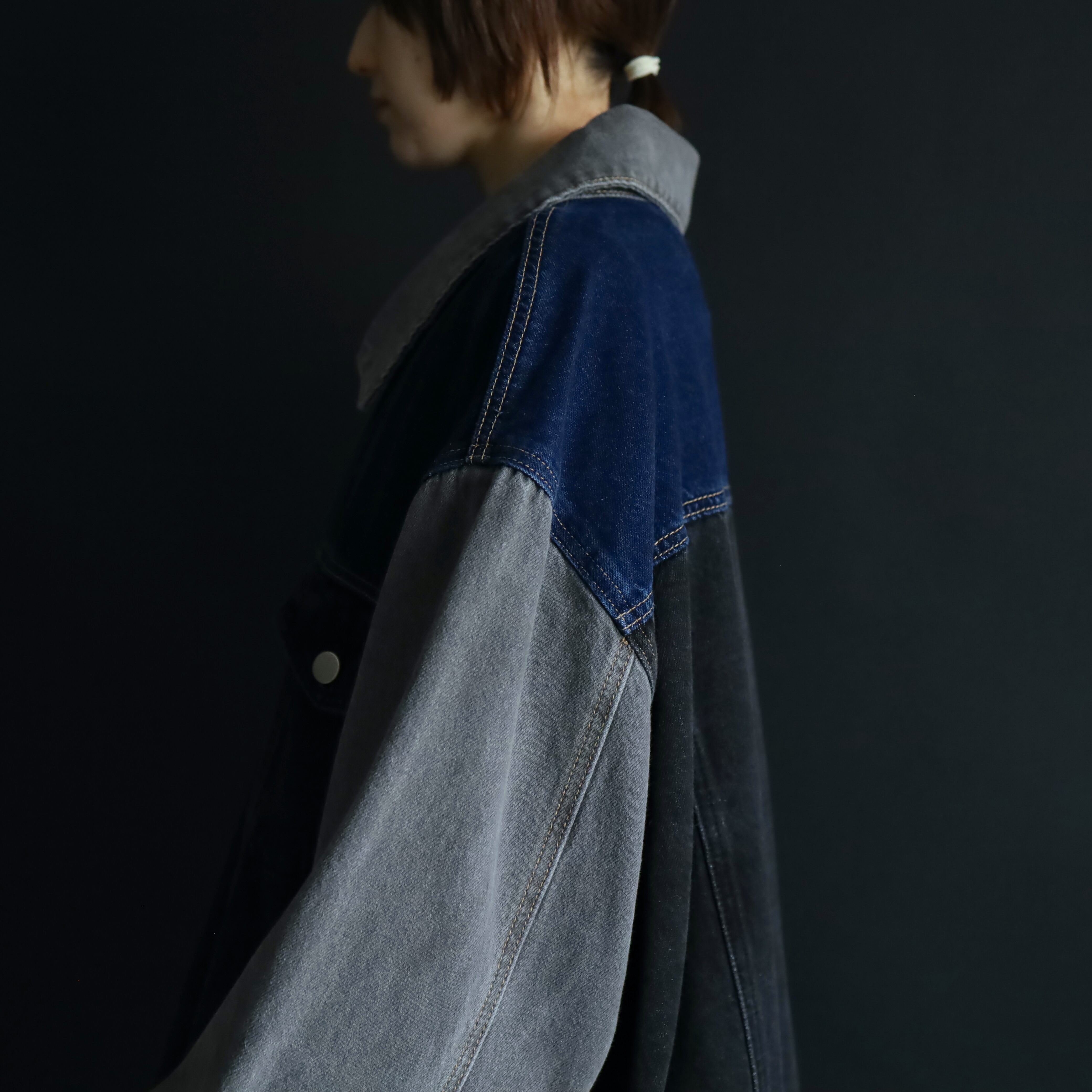 ブラック,グレー,インディゴの3カラーデニム切替.