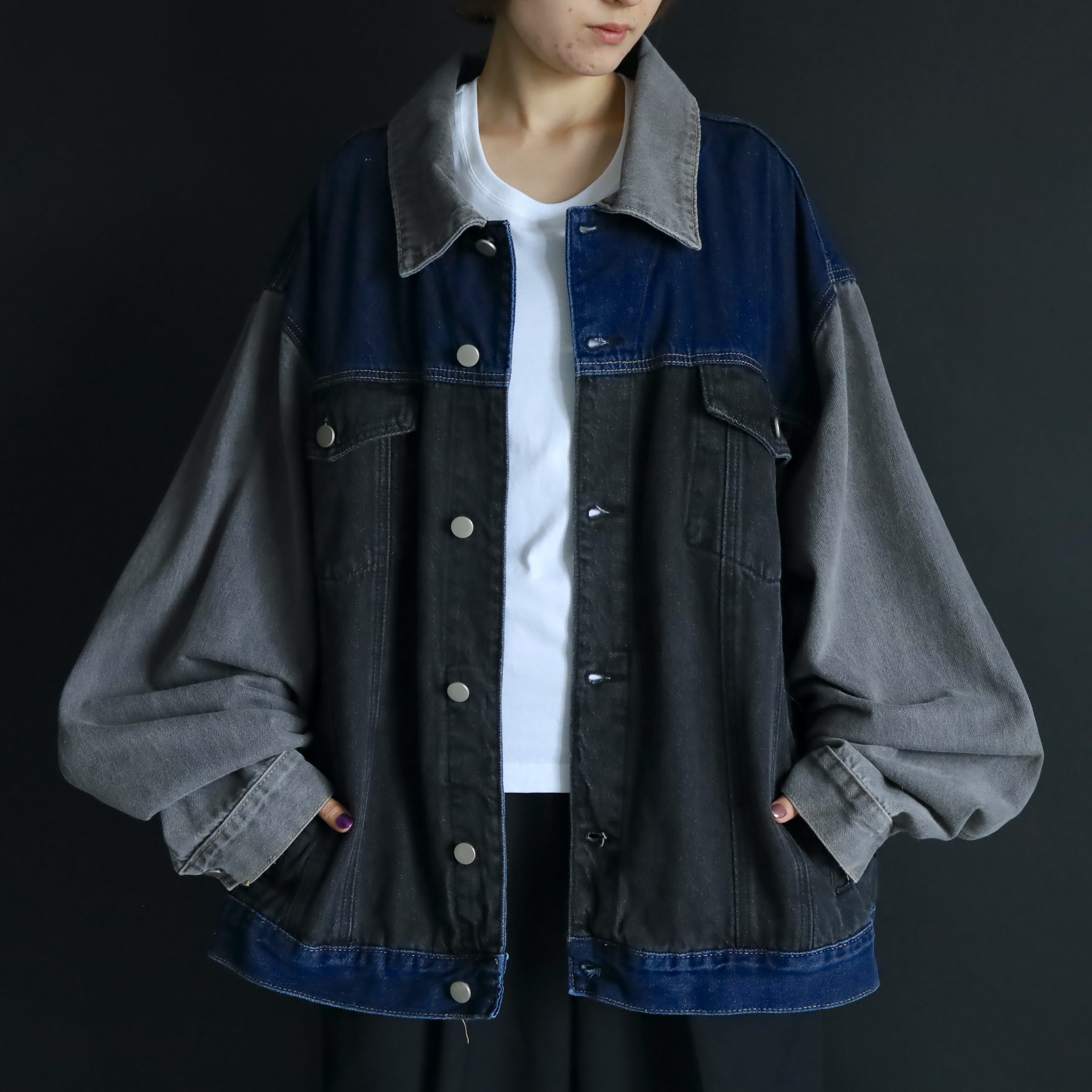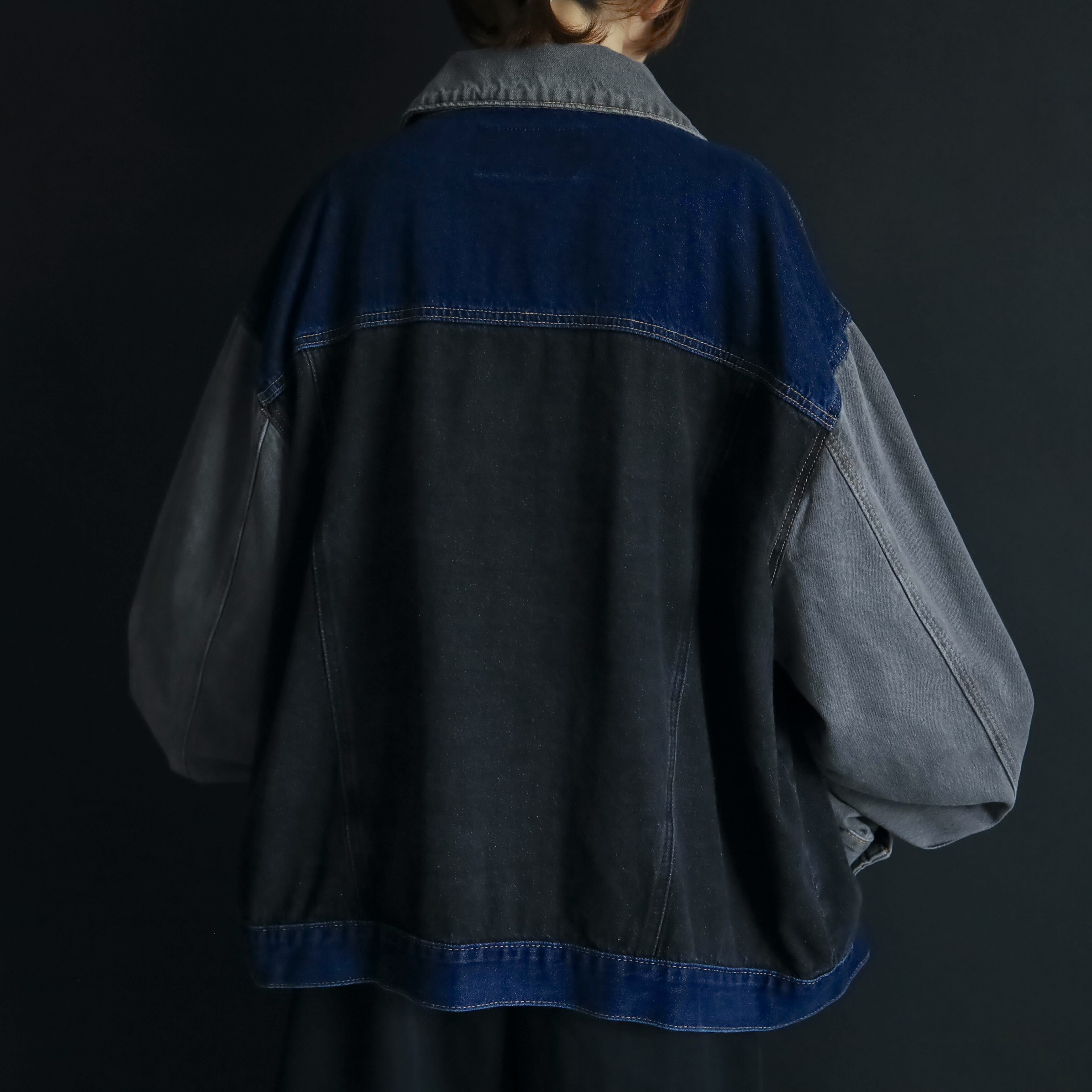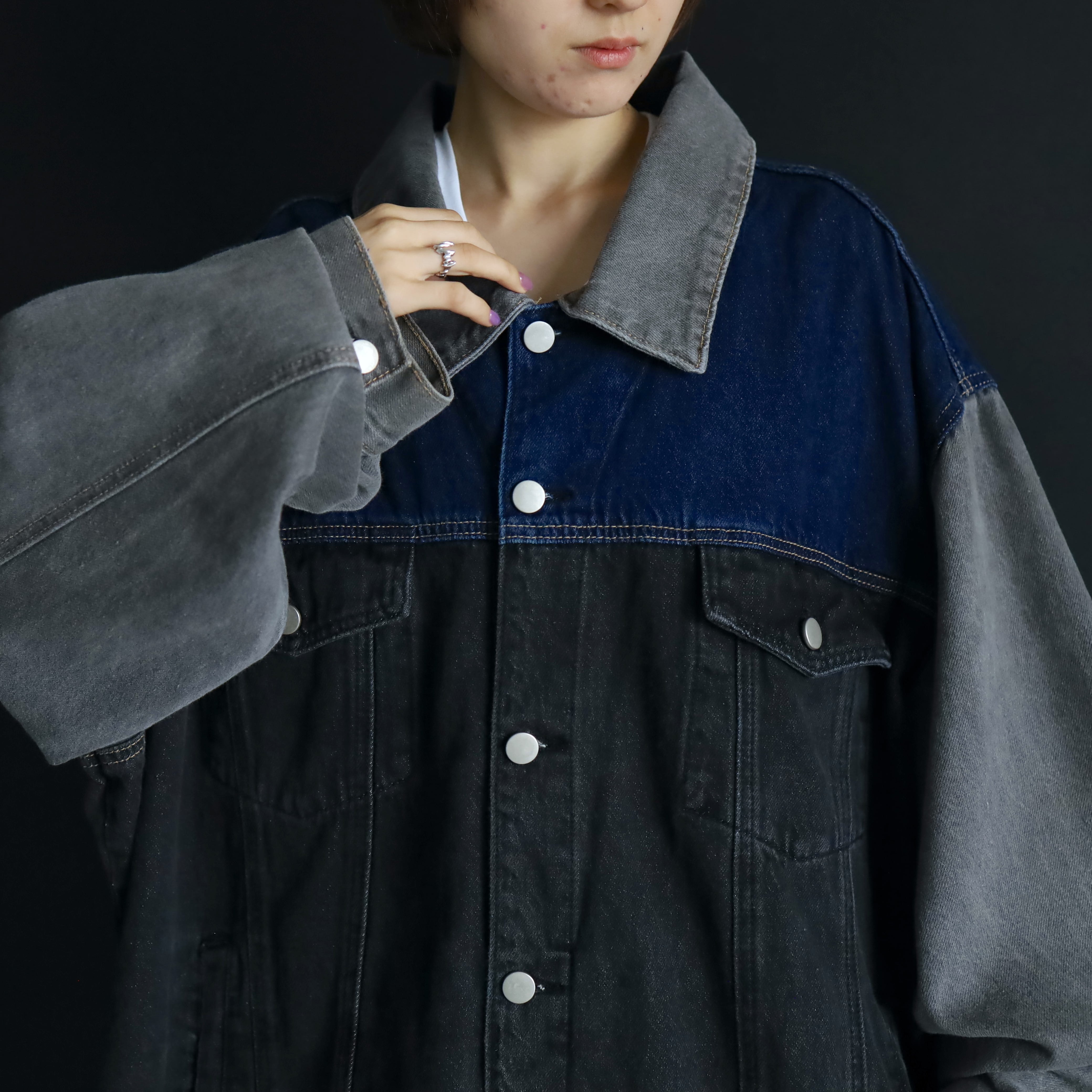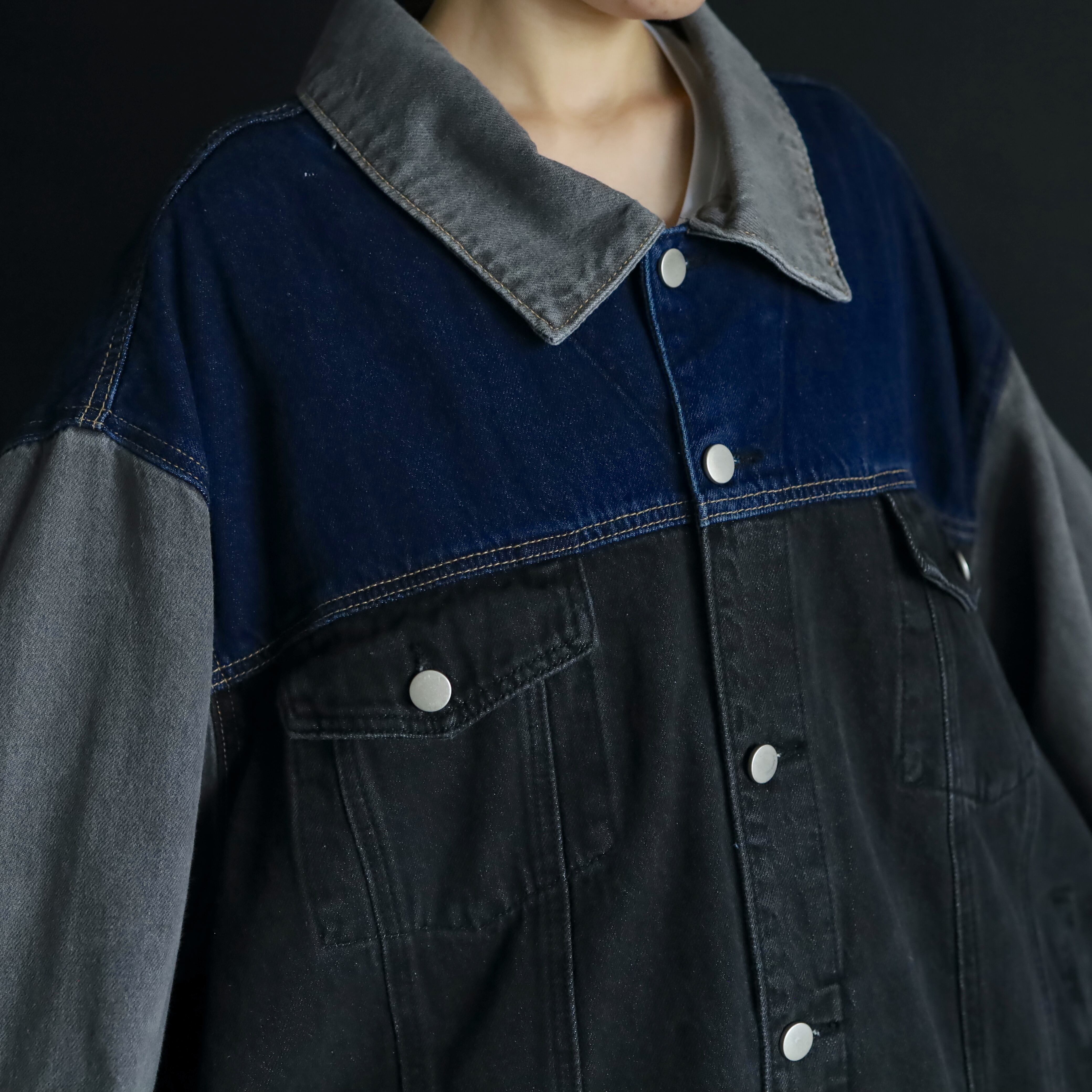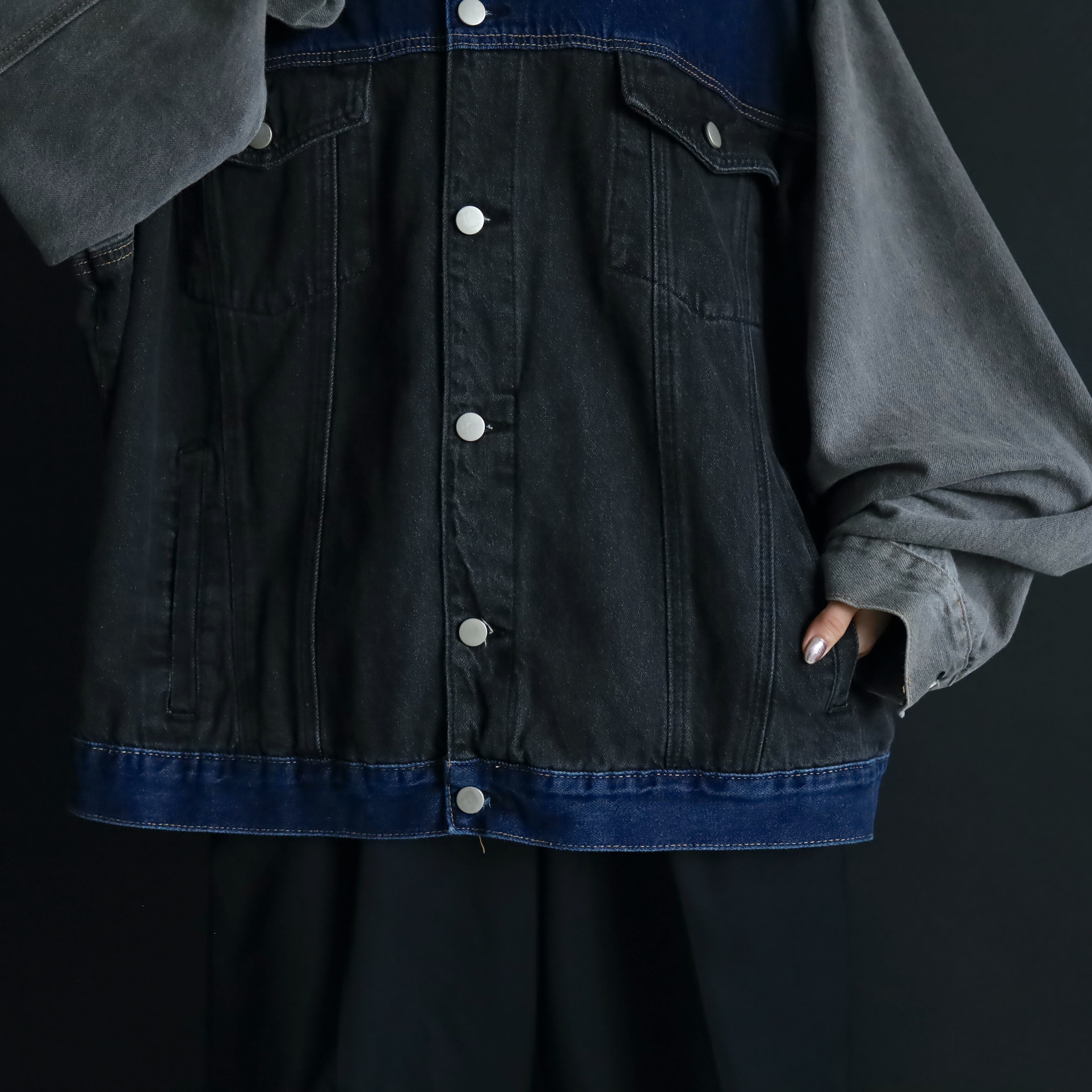ブラック,グレー,インディゴの3カラーデニム切替.