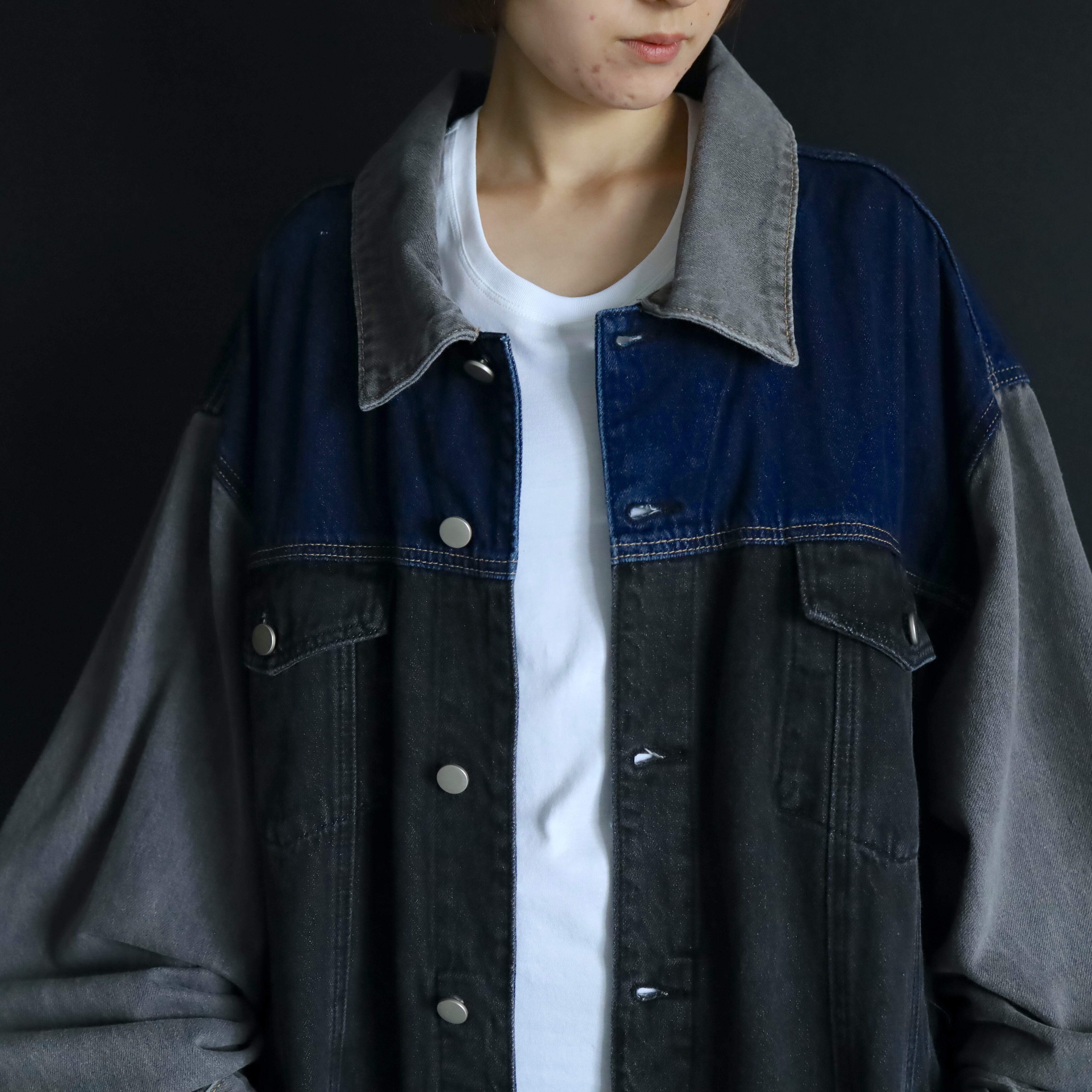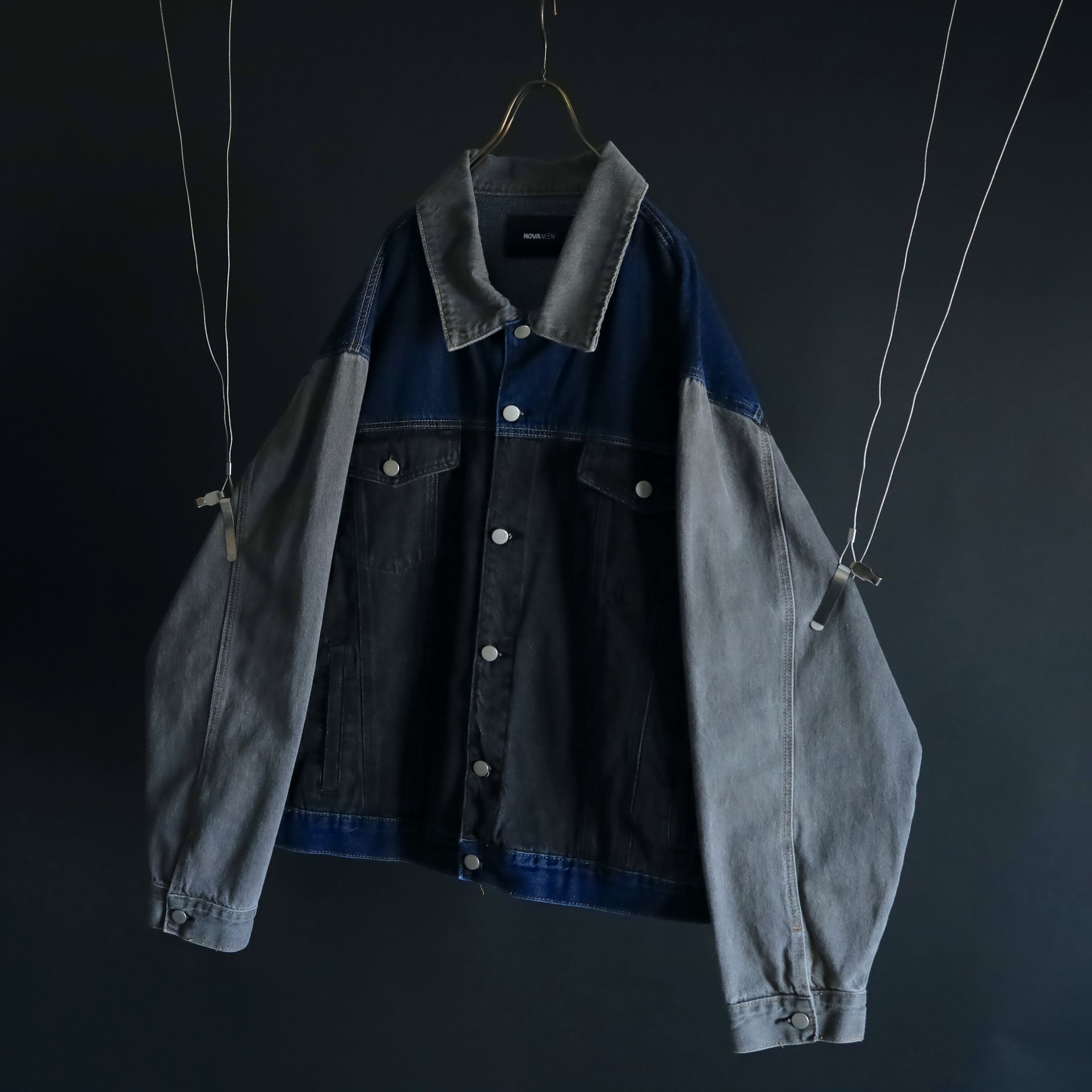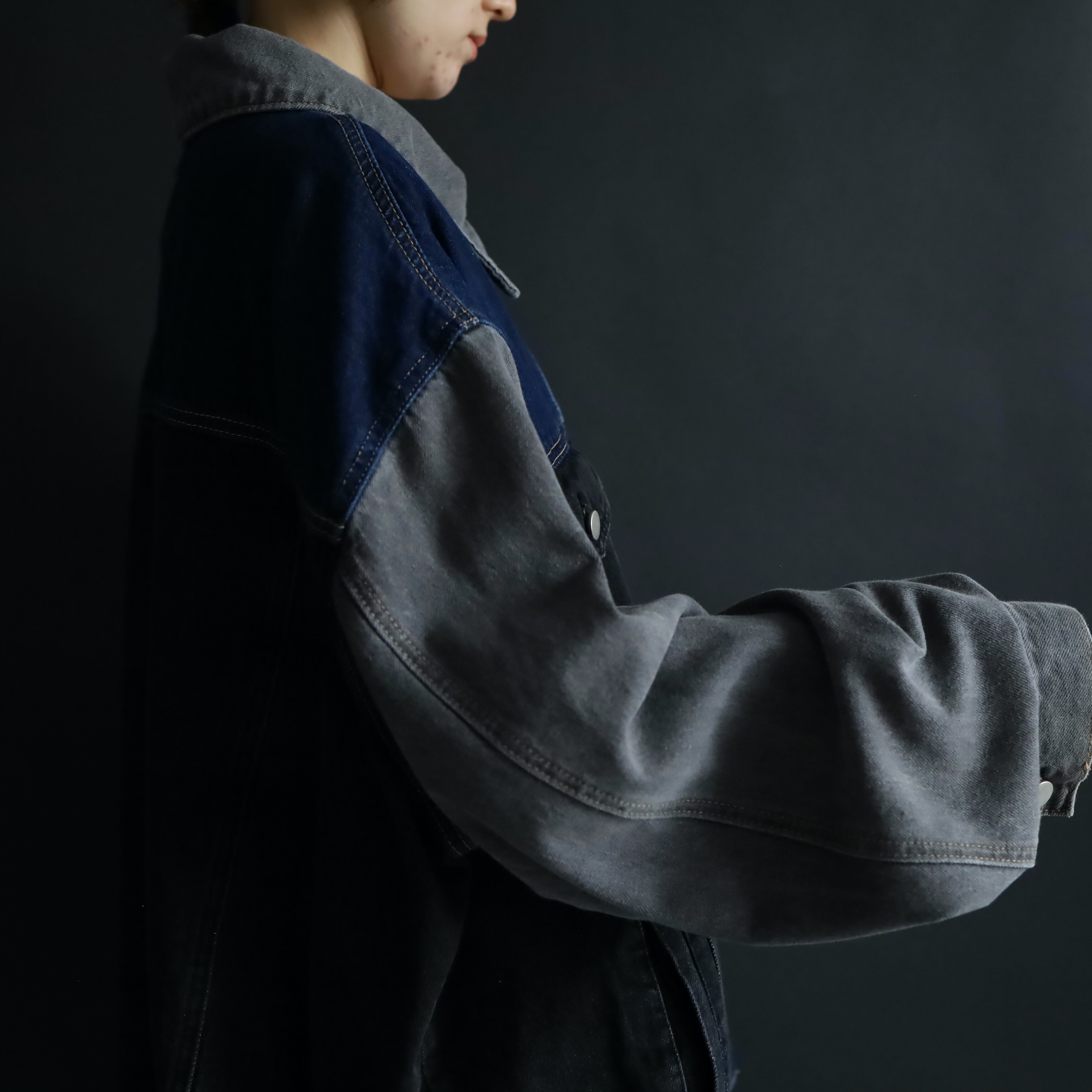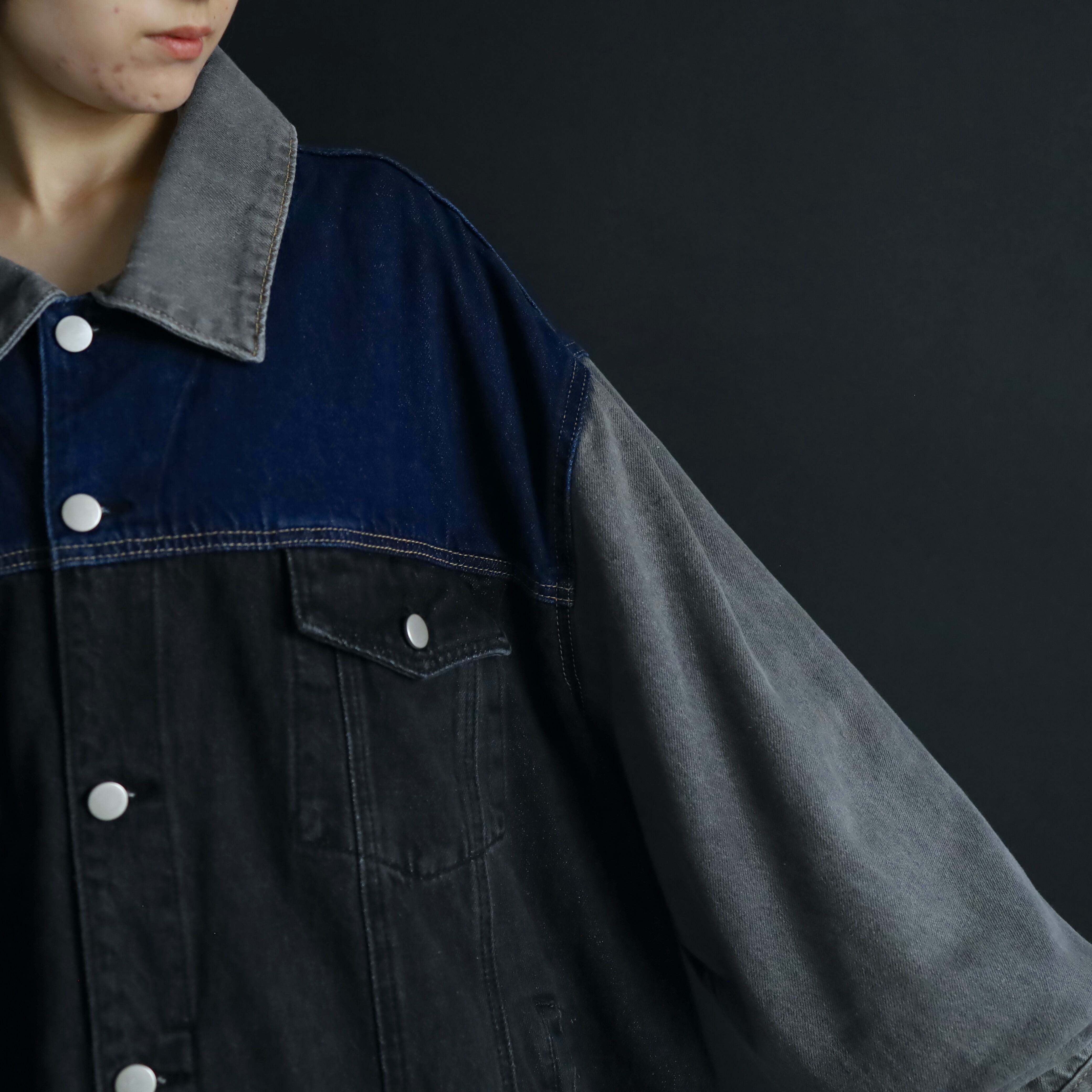 ブラック,グレー,インディゴの3カラーデニム切替.